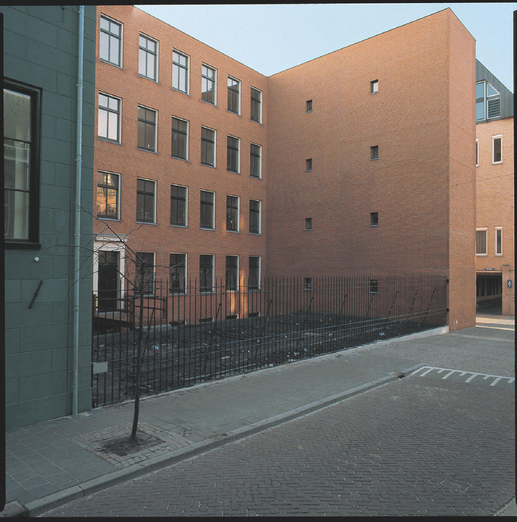 Infine la soluzione adottata per il fronte sulla Broerstraat/Academieplein è soprattutto una risultante: la risultante del reciproco disporsi sull’area dell’isolato dei volumi funzionali. Tuttavia questa soluzione, anche perché da luogo al completo isolamento del Monument n. 24 (accentuandone la già notevole monumentalità) e alla formazione di un giardino aperto sullo spazio pubblico, risulta alla fine adeguata e coerente con le caratteristiche architettoniche di questo spazio ricco di episodi diversi.