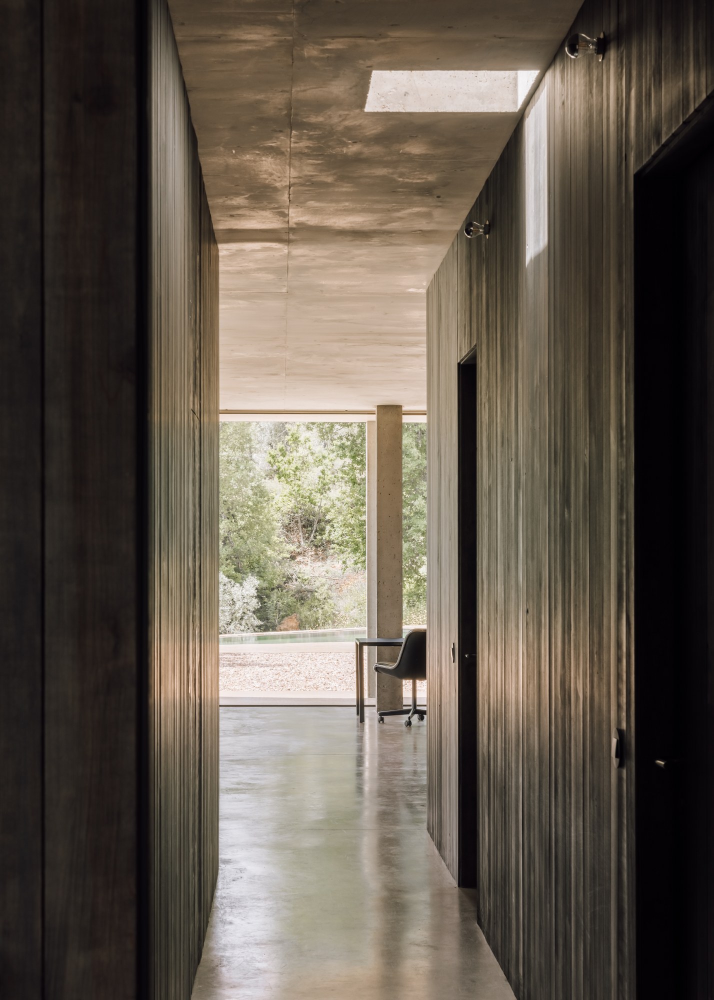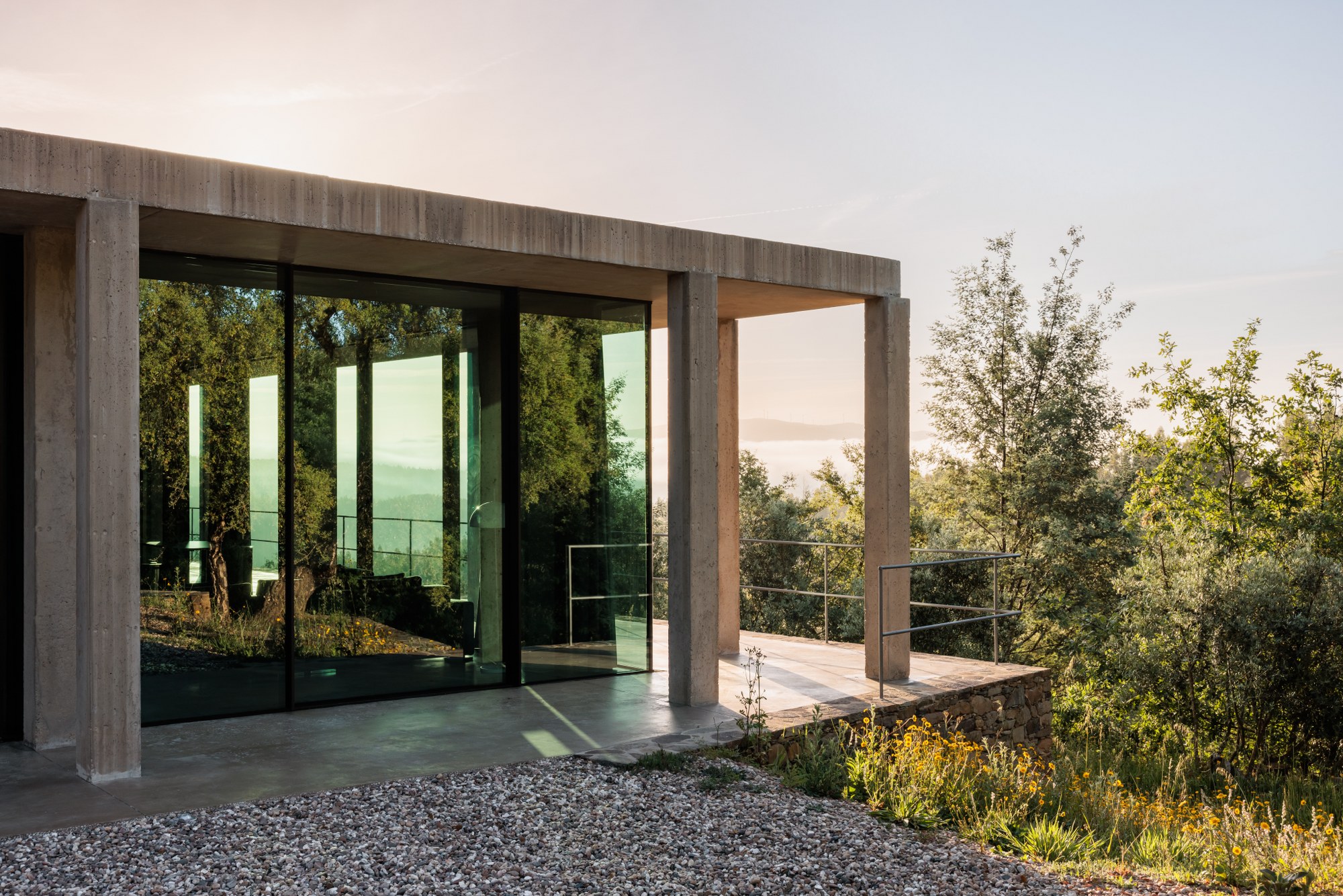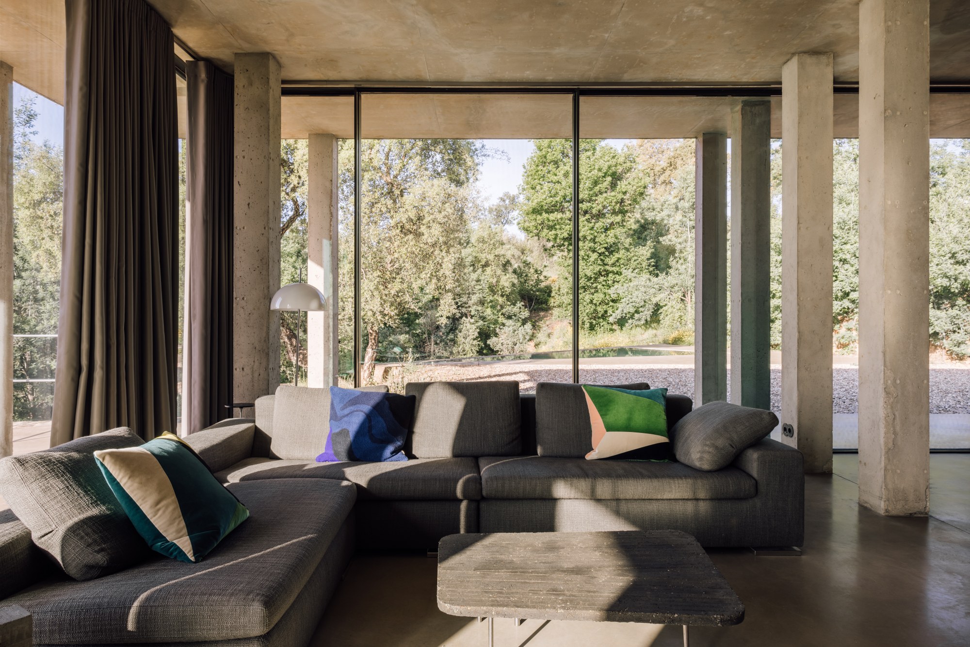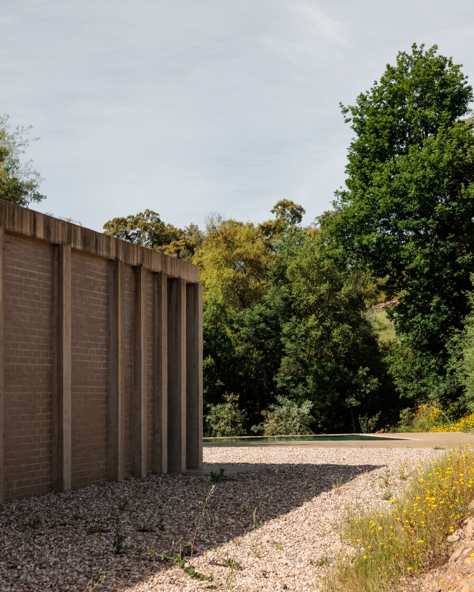 It became clear that the project should recover and lie on these terraces. And the feeling that that topography did not call for a traditional house, from an archetypal point of view, but rather something more undefined, like an inhabited structure. The solution was an abstract construction made of countless columns arranged in an irregular mesh of variable density – a hypostyle structure – seeking to achieve at the same time spatial fluidity and three-dimensional filtering between private spaces and the exterior landscape. Five years later, the surroundings are green again and the new structure now also becomes part of this built landscape system.