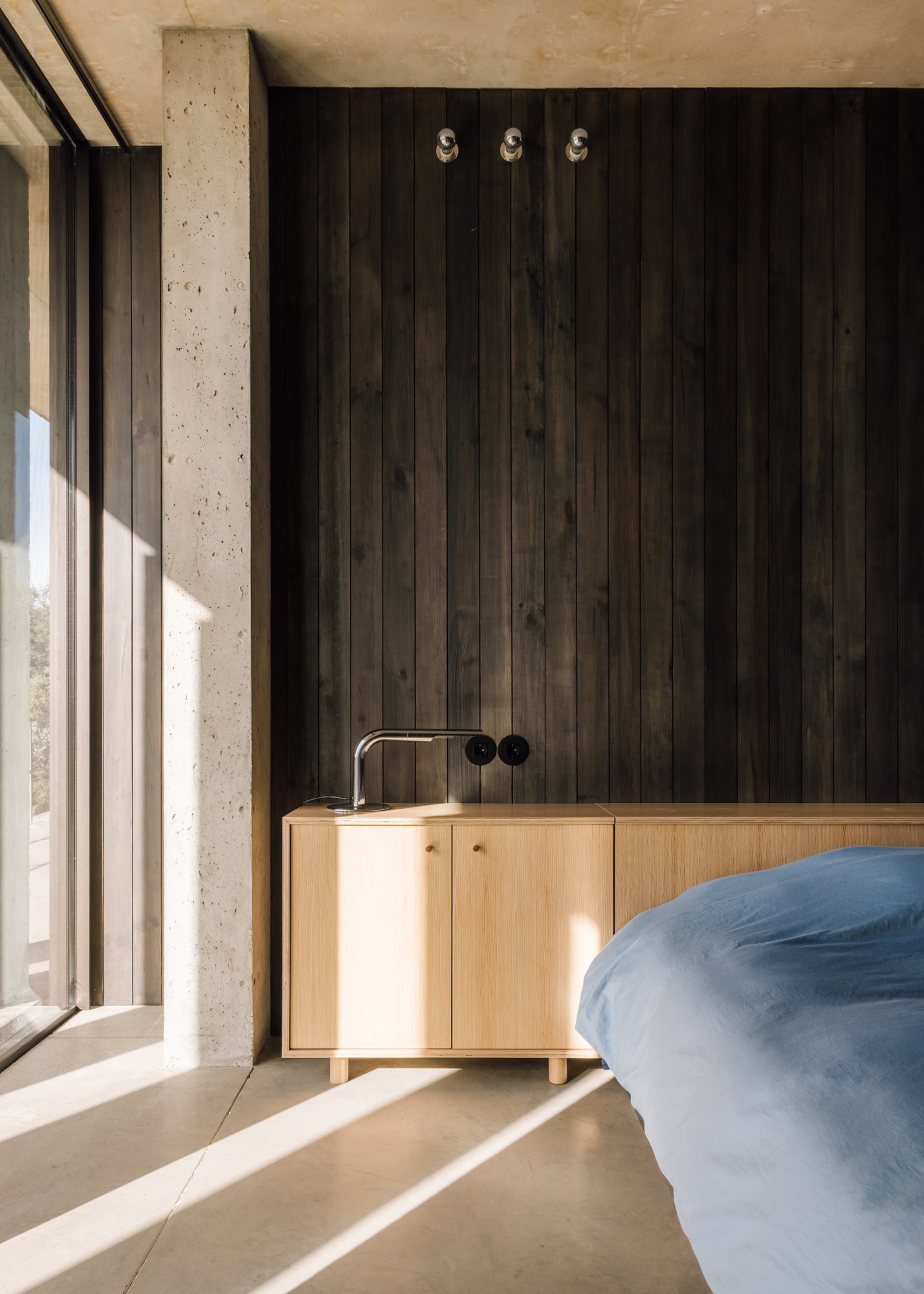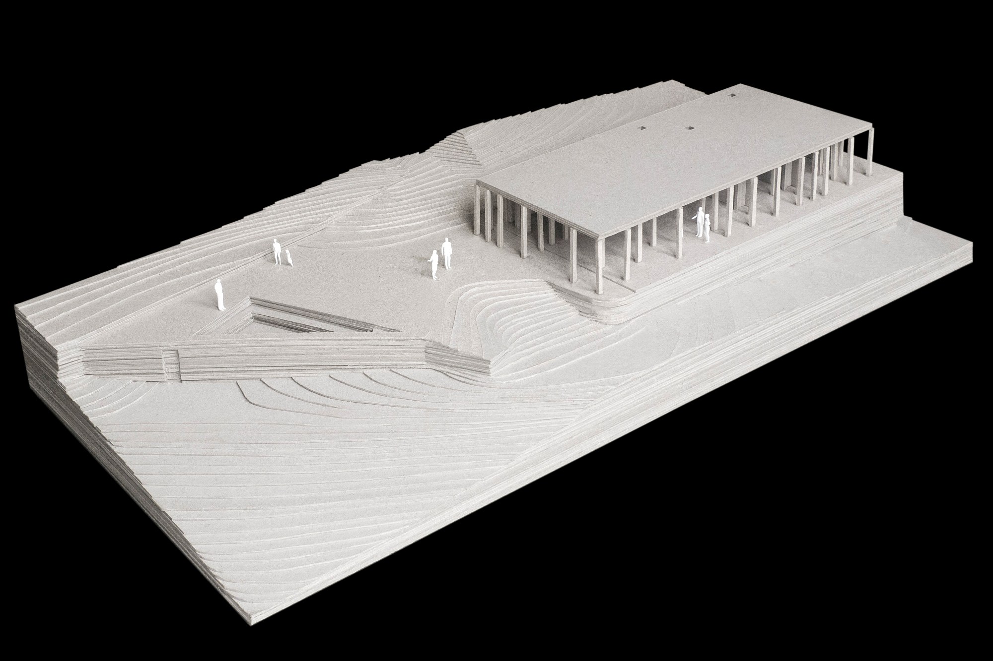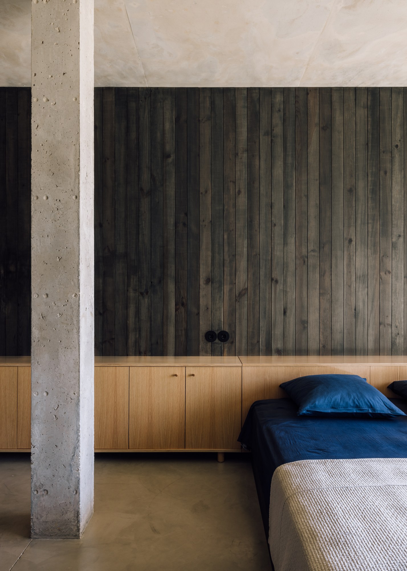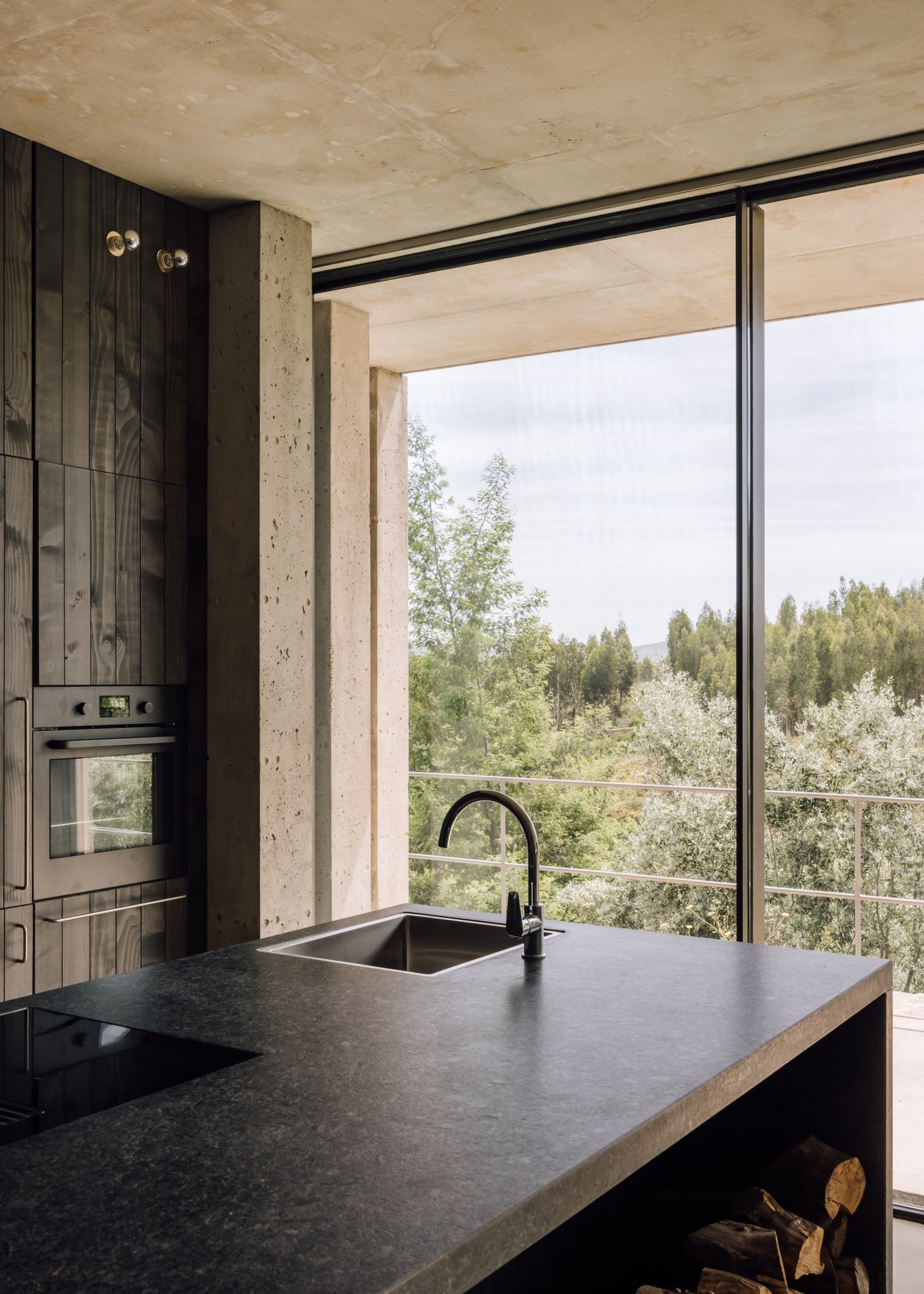 It became clear that the project should recover and lie on these terraces. And the feeling that that topography did not call for a traditional house, from an archetypal point of view, but rather something more undefined, like an inhabited structure. The solution was an abstract construction made of countless columns arranged in an irregular mesh of variable density – a hypostyle structure – seeking to achieve at the same time spatial fluidity and three-dimensional filtering between private spaces and the exterior landscape. Five years later, the surroundings are green again and the new structure now also becomes part of this built landscape system.