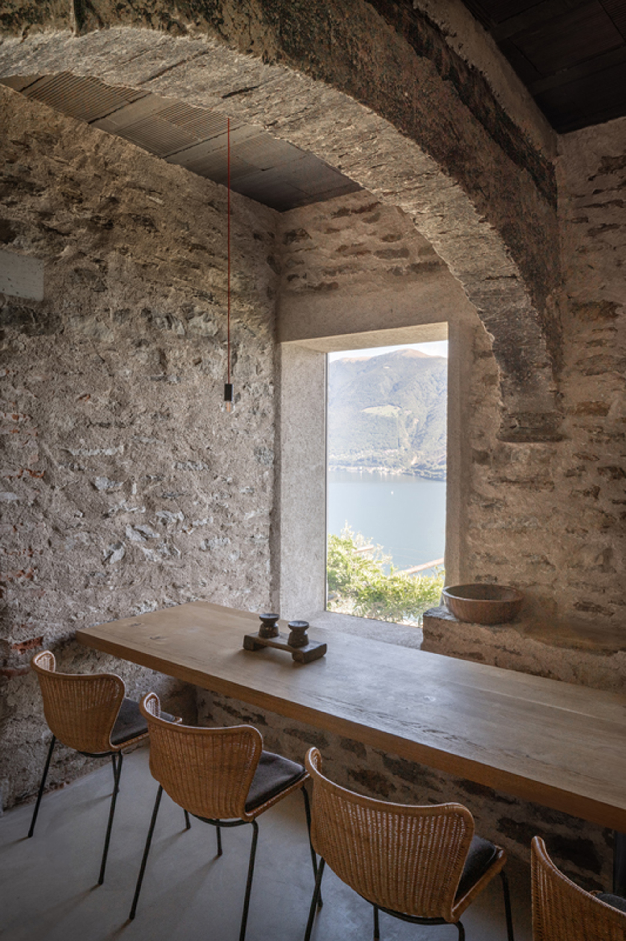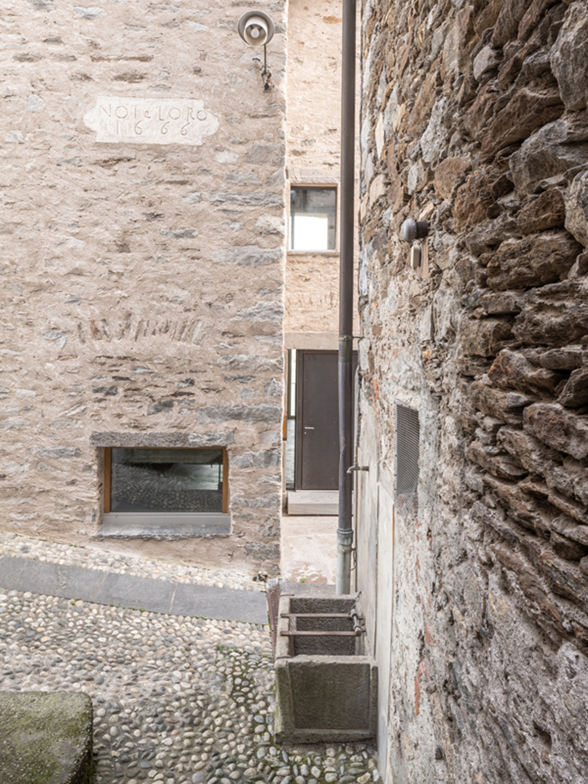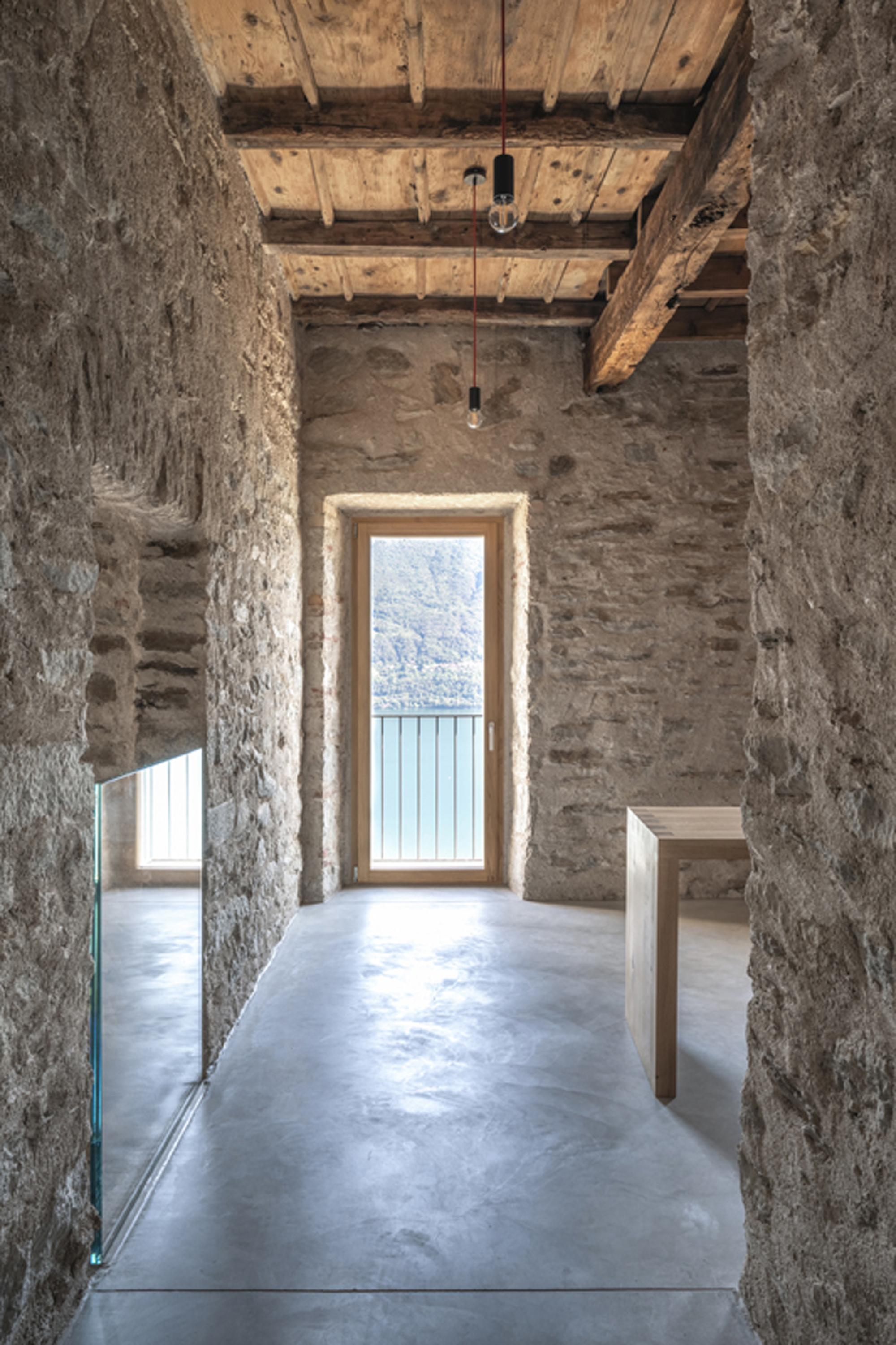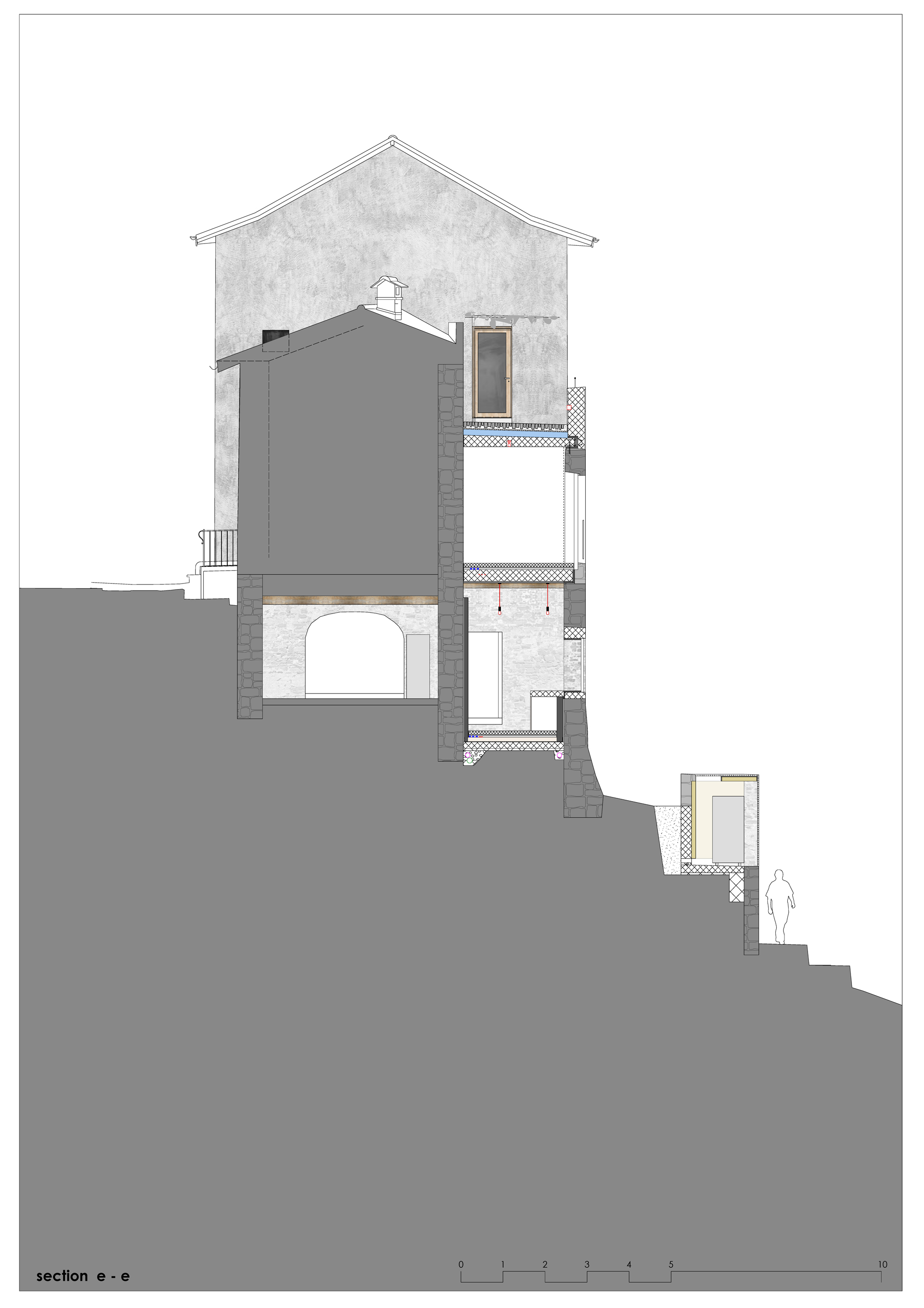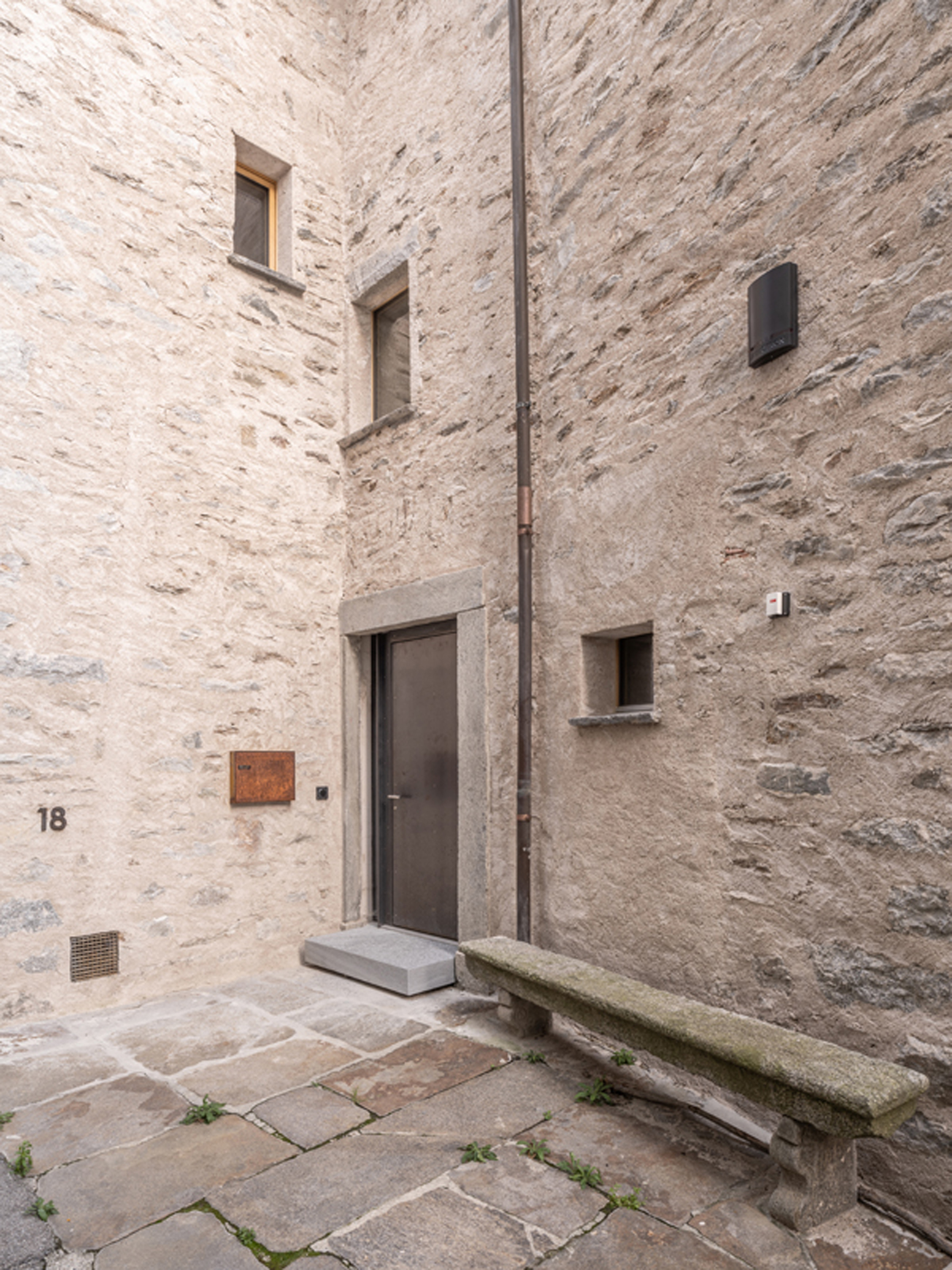 The existing historic building in the village of Brissago Piodina has its own vineyard and an unobstructed view of Lake Maggiore and the mountains. It can be reached on foot uphill from the village and downhill by car directly from the road, where there is also a garage.