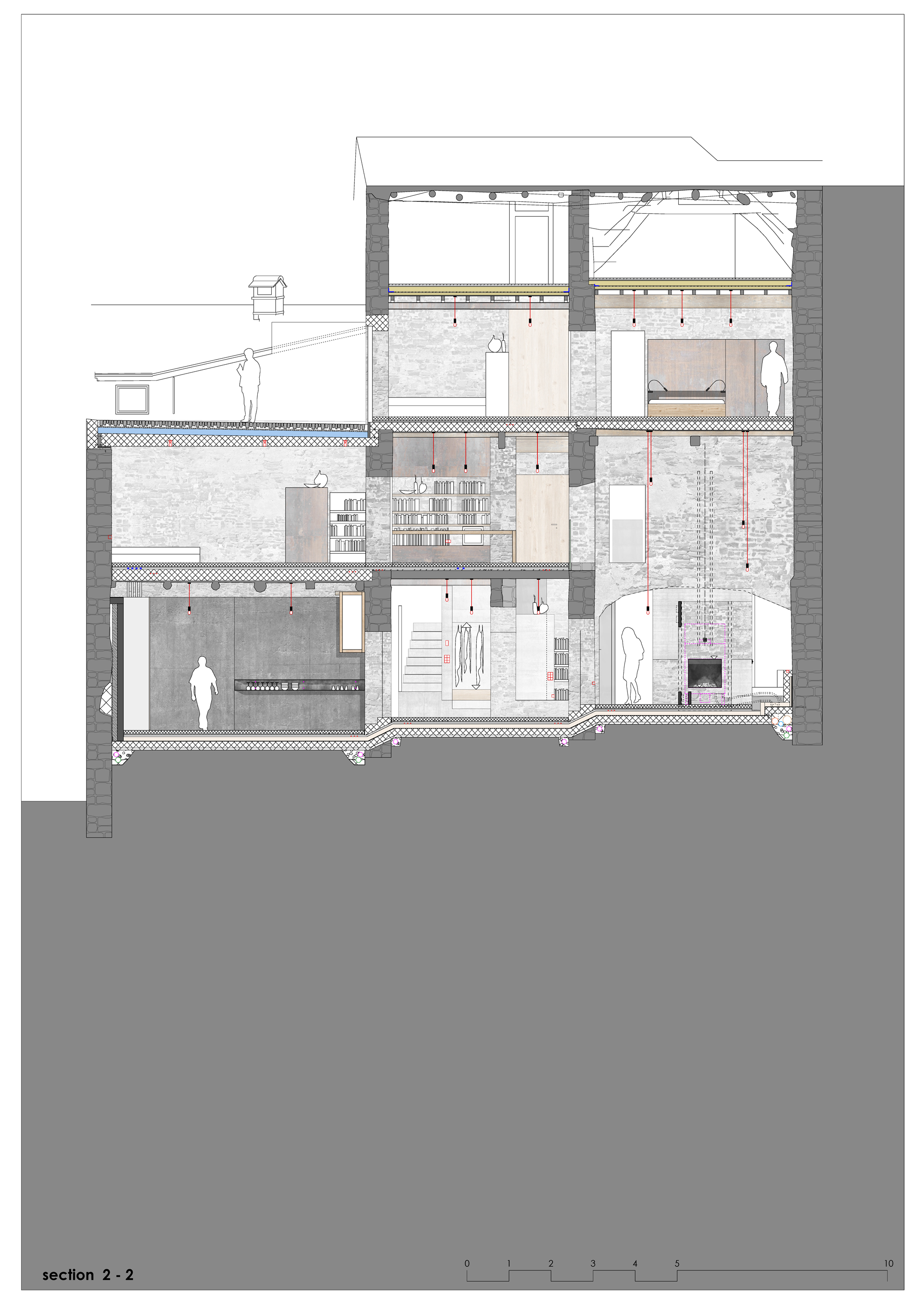 This project is intended as a gentle conversion, with the aim of revealing and strengthening the existing architectural qualities, which are now mostly hidden.