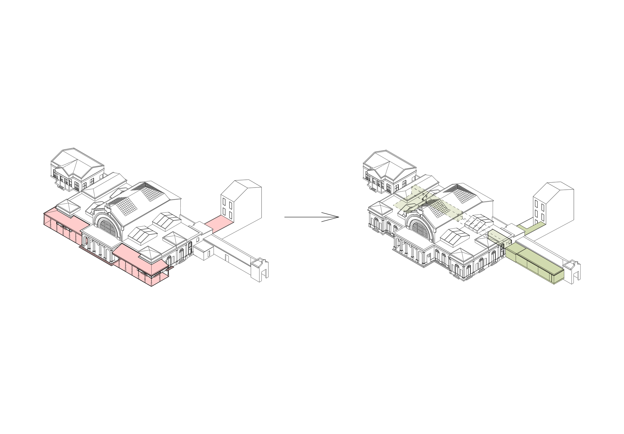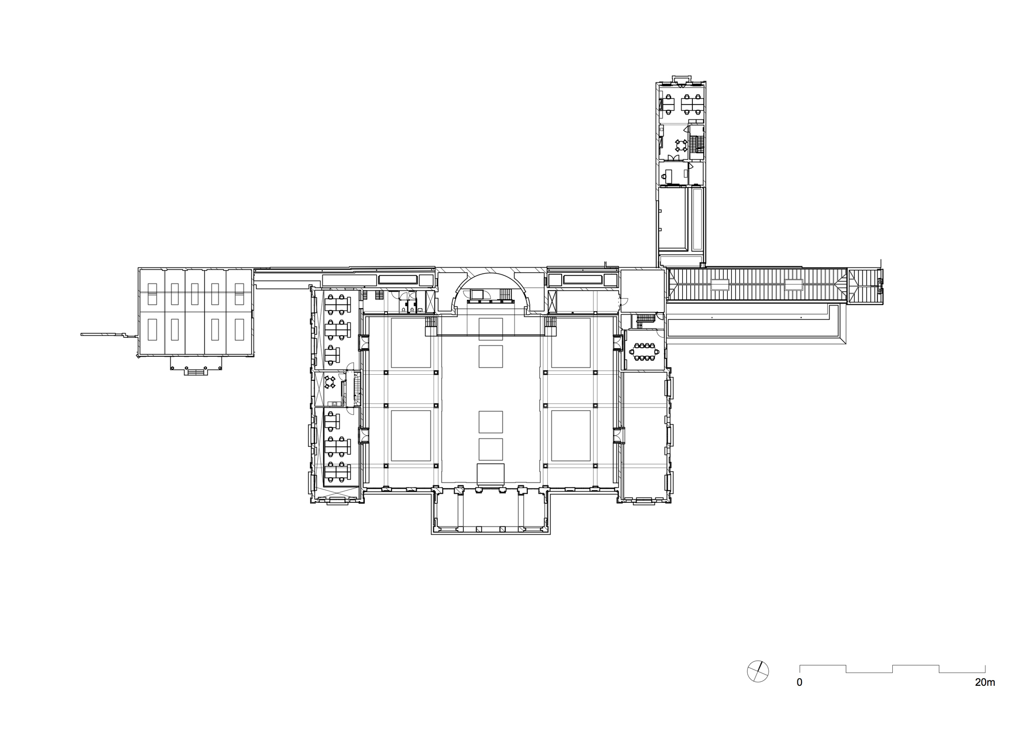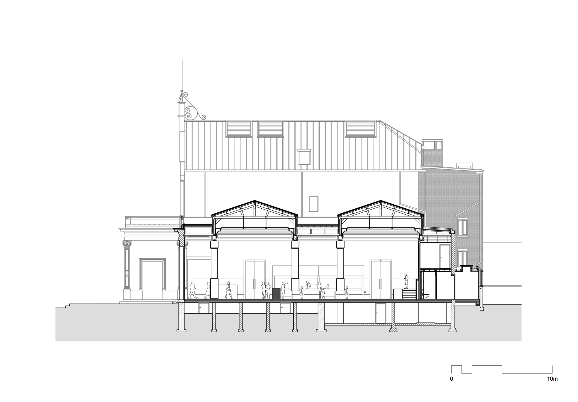 “De Harmonie” project is an attempt to develop further in a seemly natural way the existing complex. Through targeted cultural questioning of the given structures at all levels, we sought for a meaningful reorganisation and reinterpretation of the existing ones. A new guiding principle for the entire ensemble was developed step by step during this process. The result is a building complex that preserves the bourgeois culture of the 19th century as an artefact and at the same time makes it appropriate to the needs of the 21st century. The appearance of the entire complex has been homogenised through cleaning, reinterpretation and abstraction of existing building structures. It now presents itself as an almost ideal-typical architecture of abstracted classicism, as it never actually existed. In other words, the architecture follows a creative, time-bound and partly subjective model in Viollet-Le-Duc’s sense and explores the possibility of a quasi-authentic continuation of the existing buildings in the sense of the original idea.