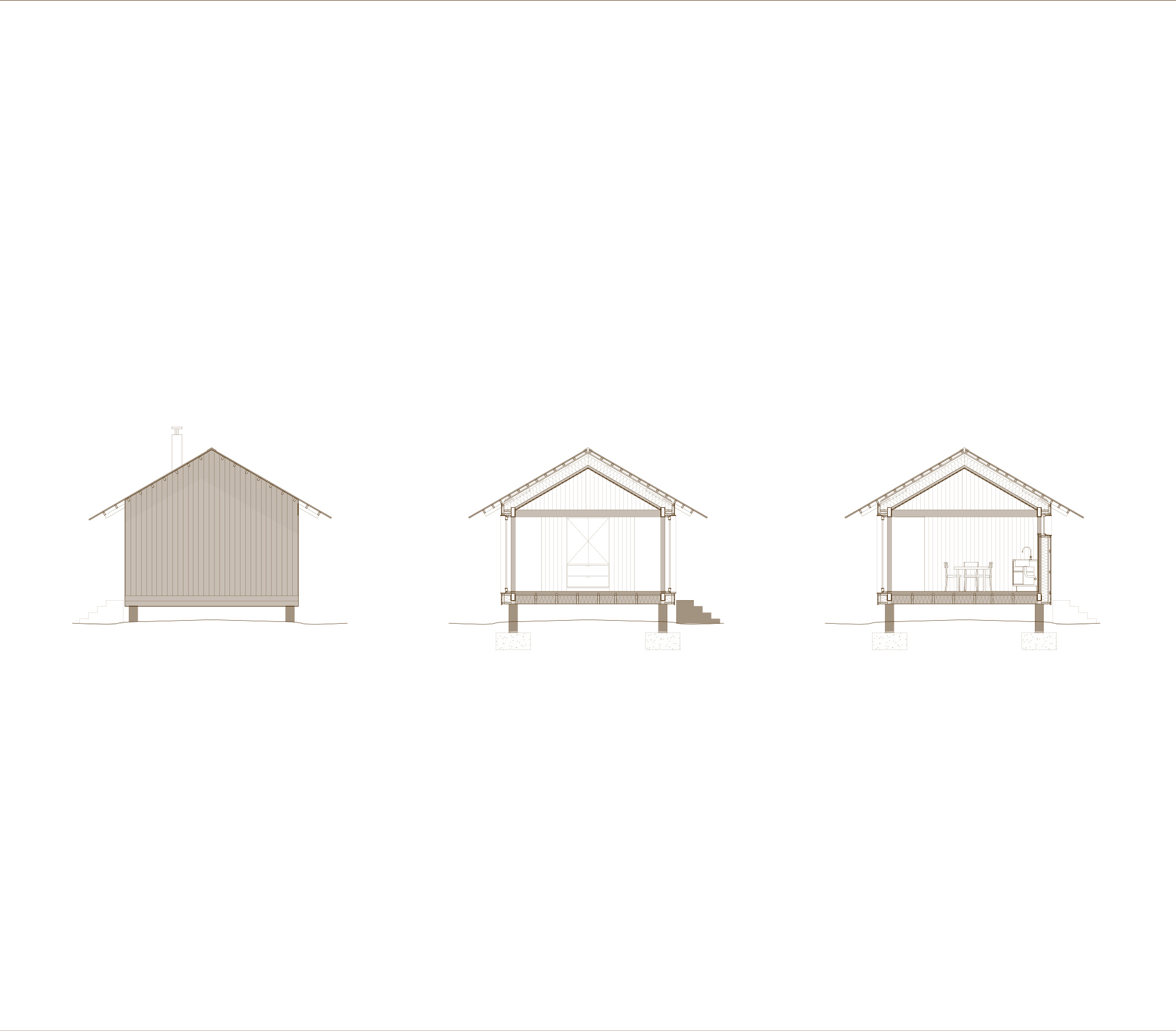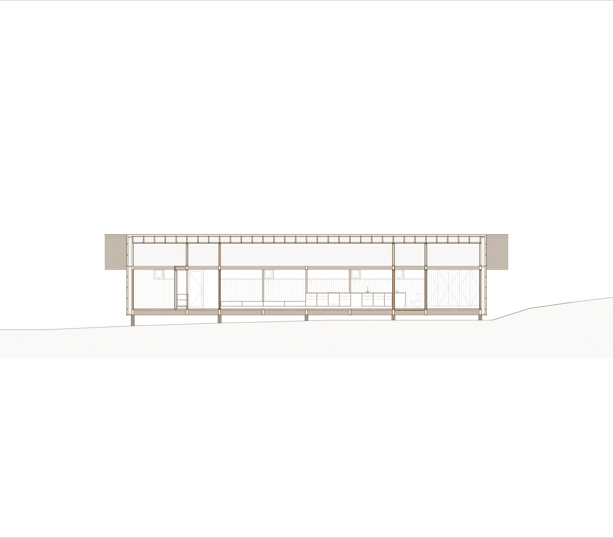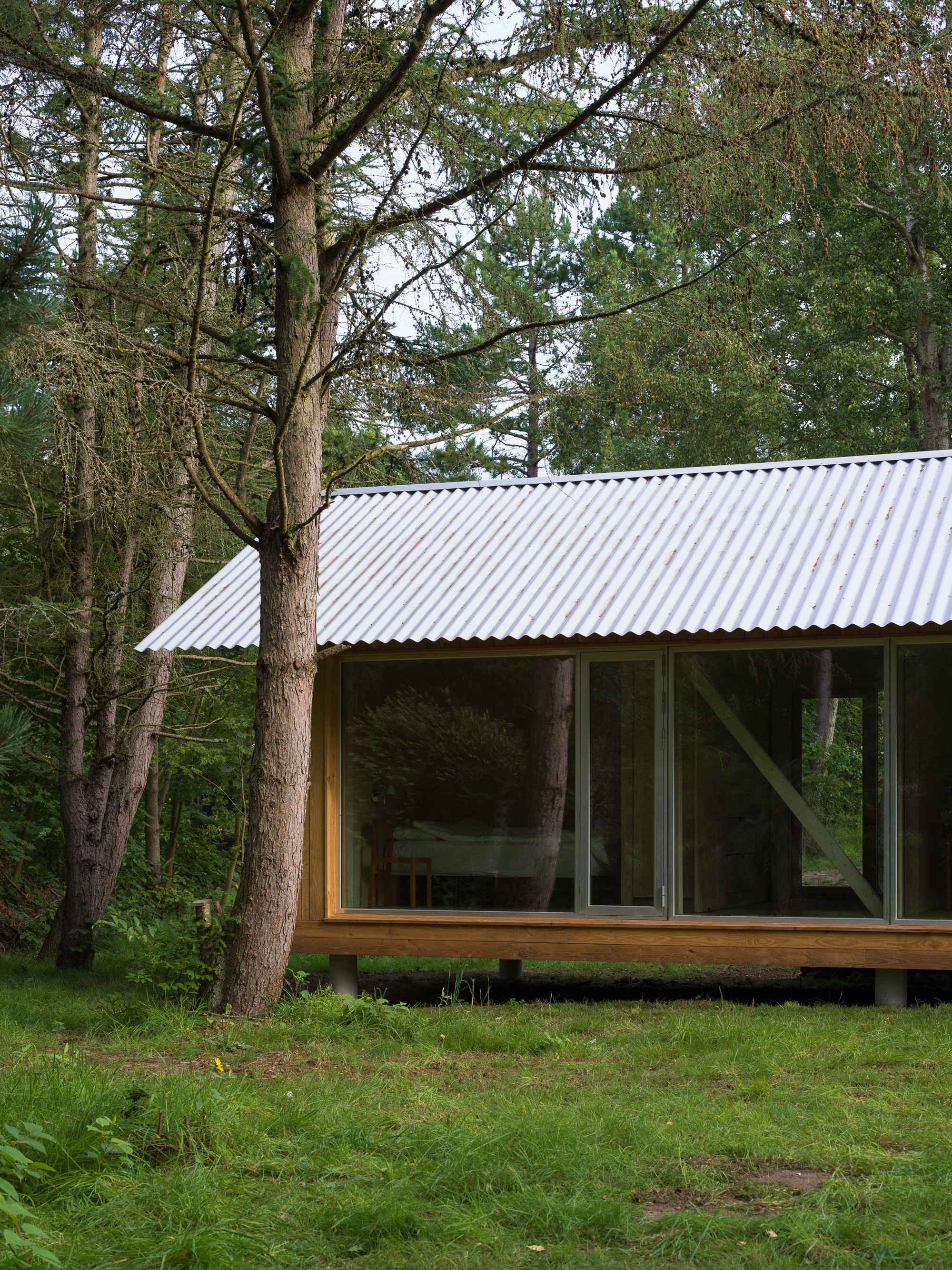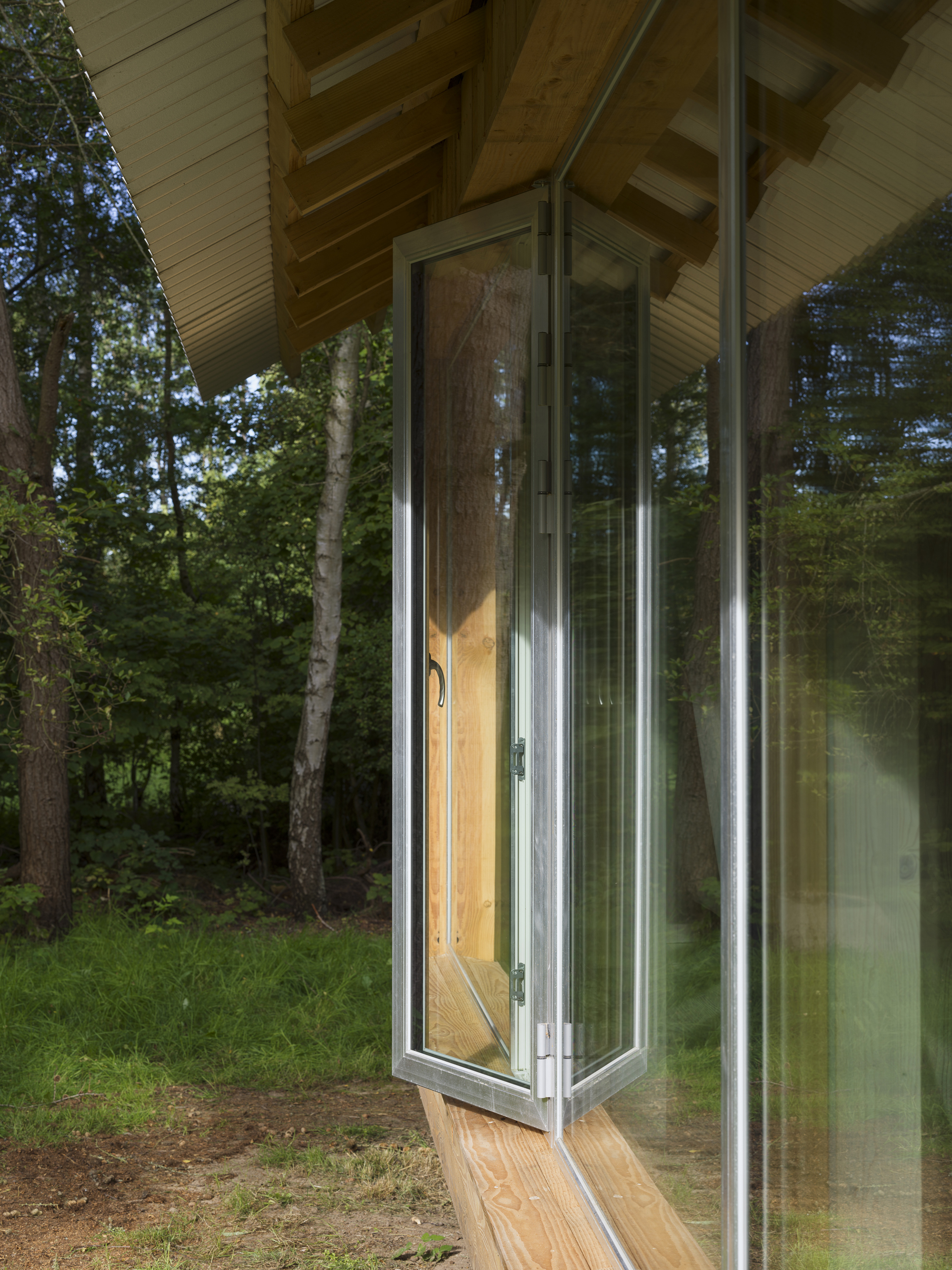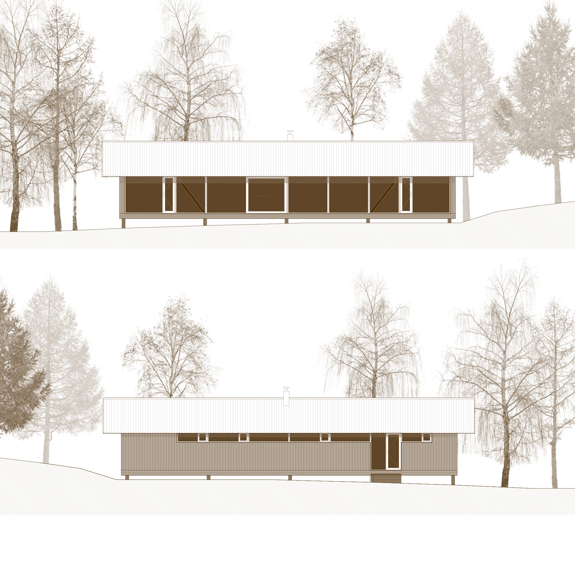 The summer house is an interpretation of a traditional longhouse typology and the vernacular architecture found in the area with the characteristic barns clad in wood. The construction is designed around a grid made of glulam, which rests on cast point foundations. The intention has been to anchor the house more gently and be able to preserve the old trees on the site and hopefully create the impression that it rests on tree trunks and that the architecture does not oppress its natural surroundings and the forest floor.