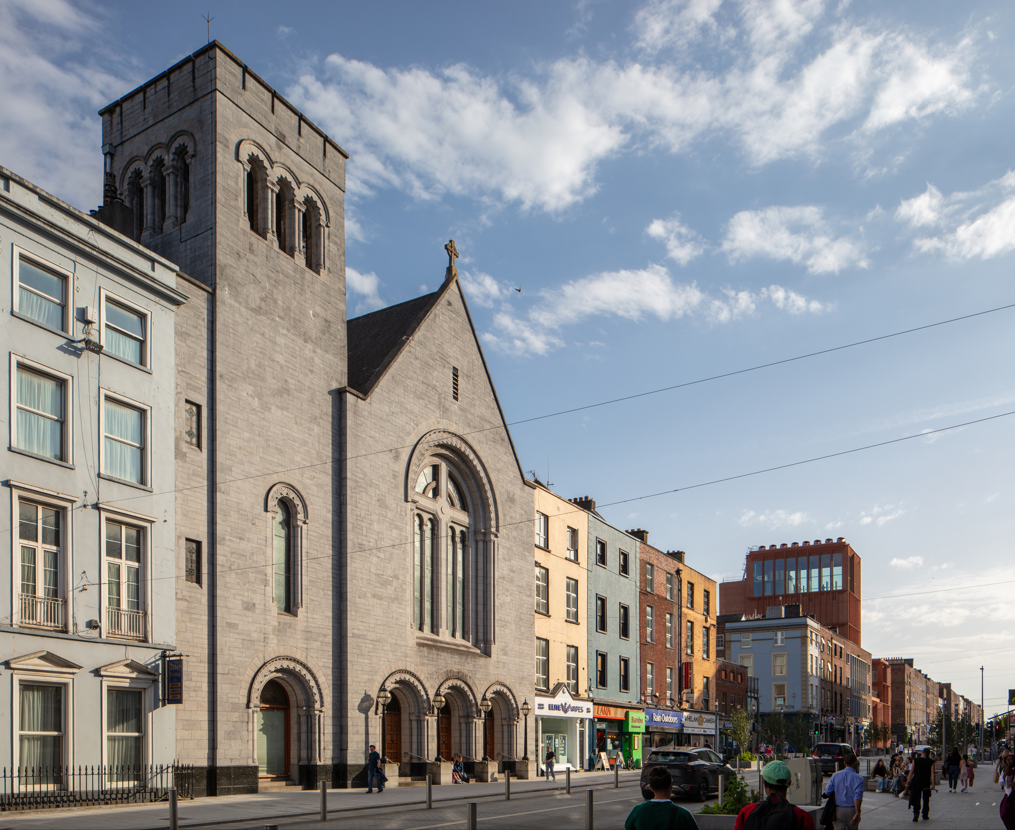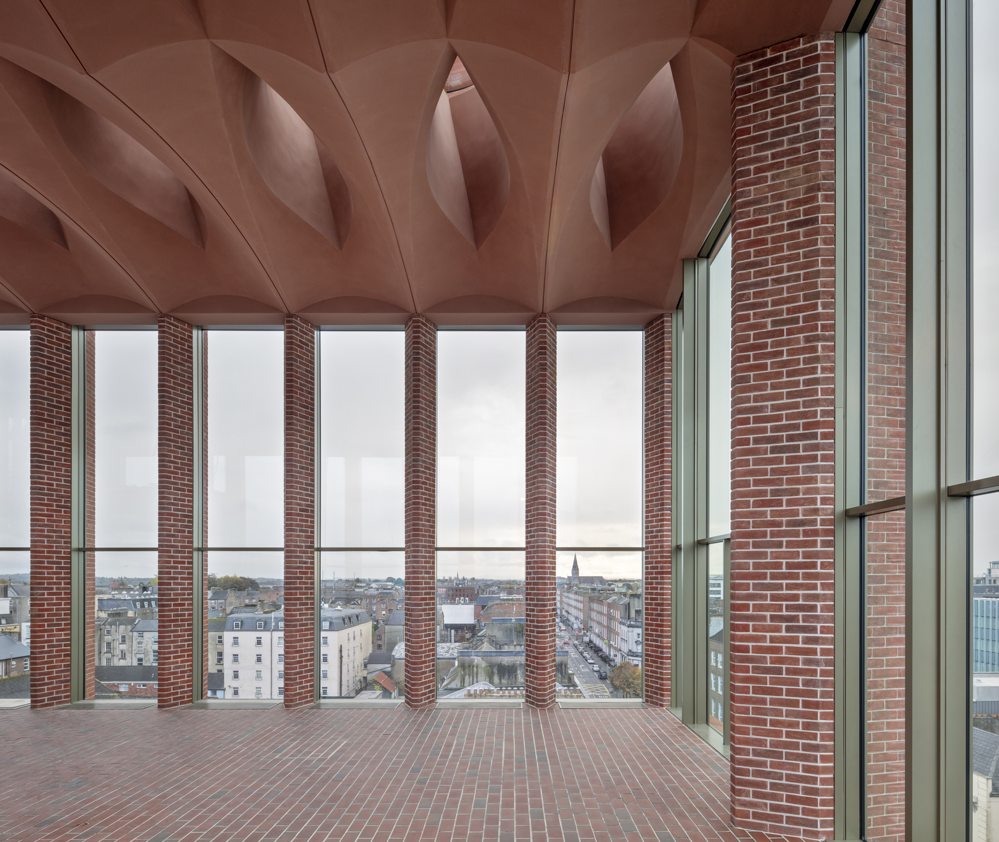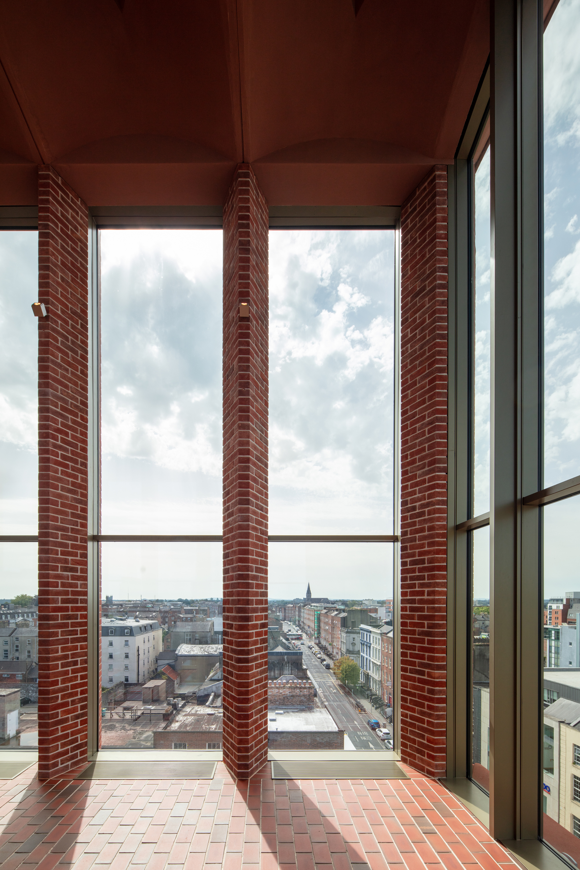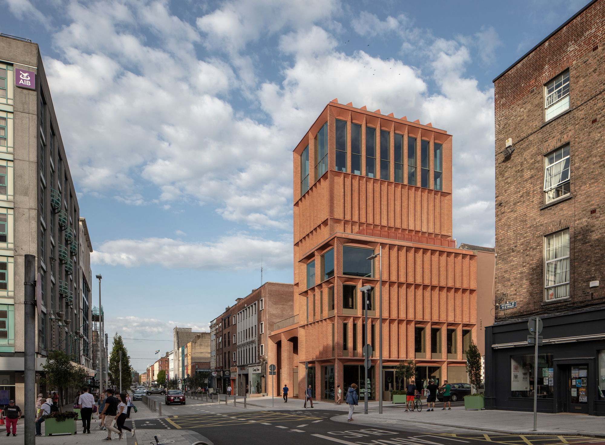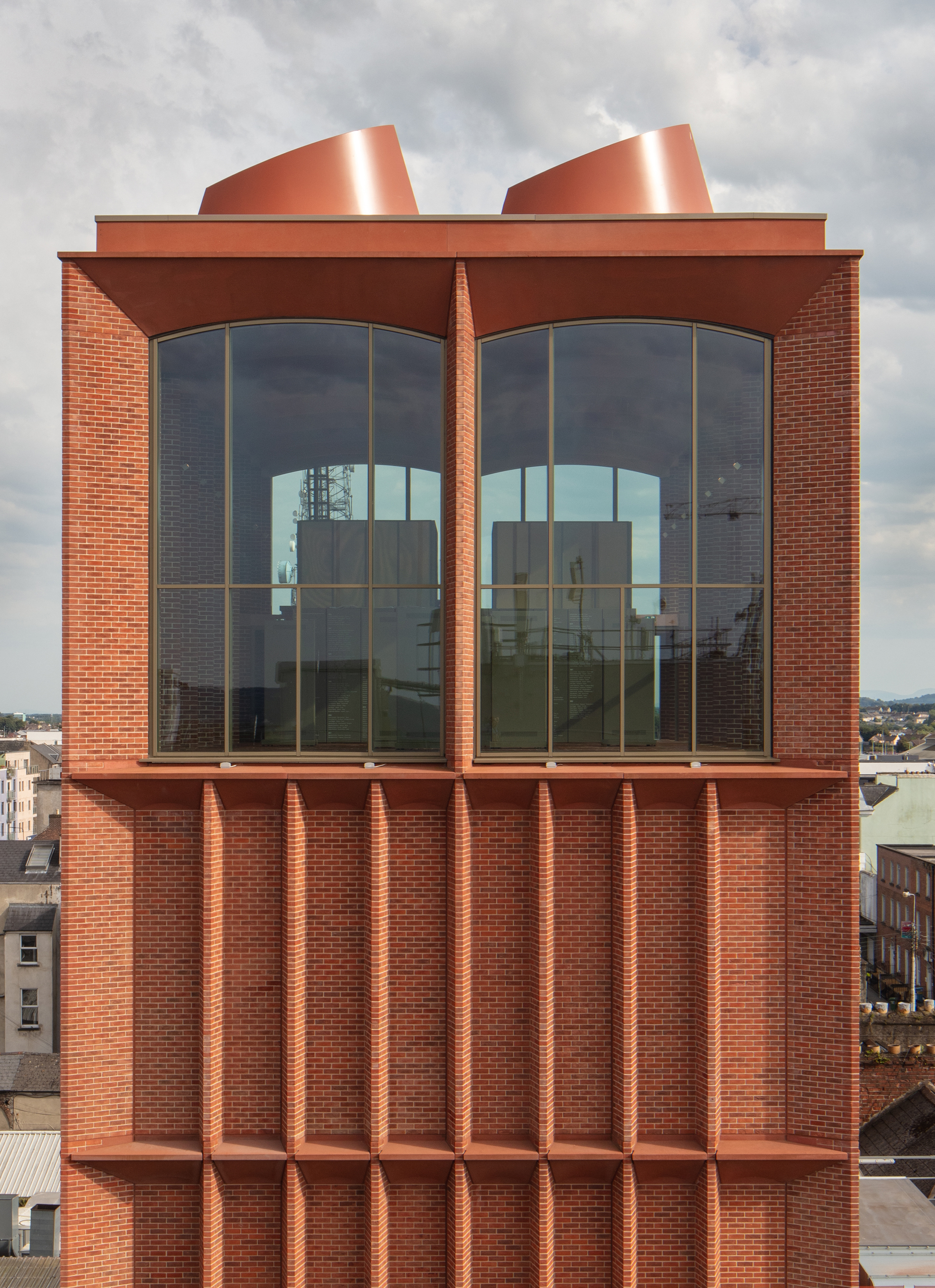 The new building sits on the edge of a conservation area within Limerick’s Georgian Quarter. On such a tight urban site, the challenge lies in creating a building with capacity for the intended use but that sits comfortably in the context of the finer grain of the Georgian Quarter. The design approach was to consider this as a special civic building rather than a townhouse and the architectural proposals were developed through research into historic civic buildings set in Georgian streetscapes, referencing the scale of churches and civic halls.
