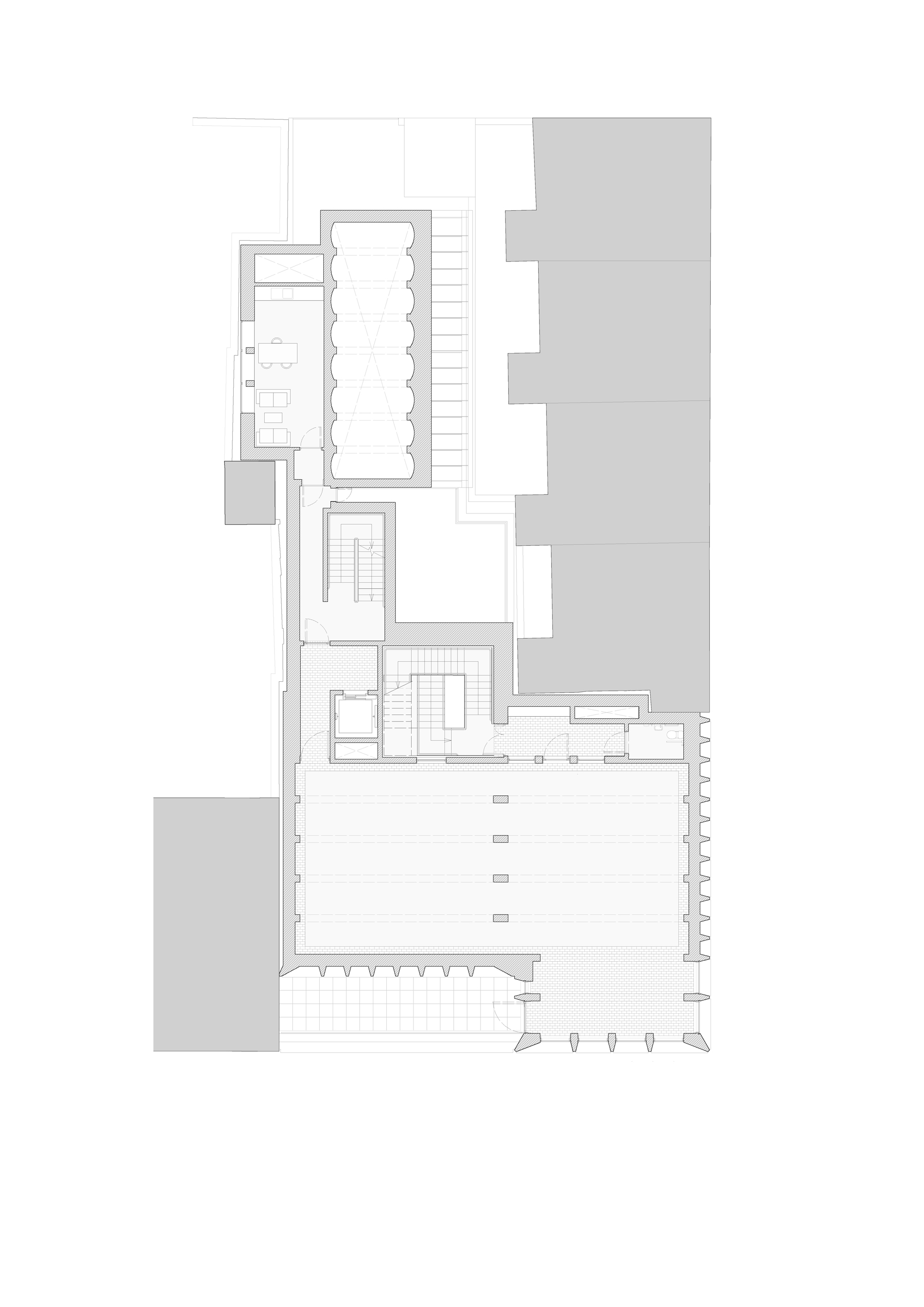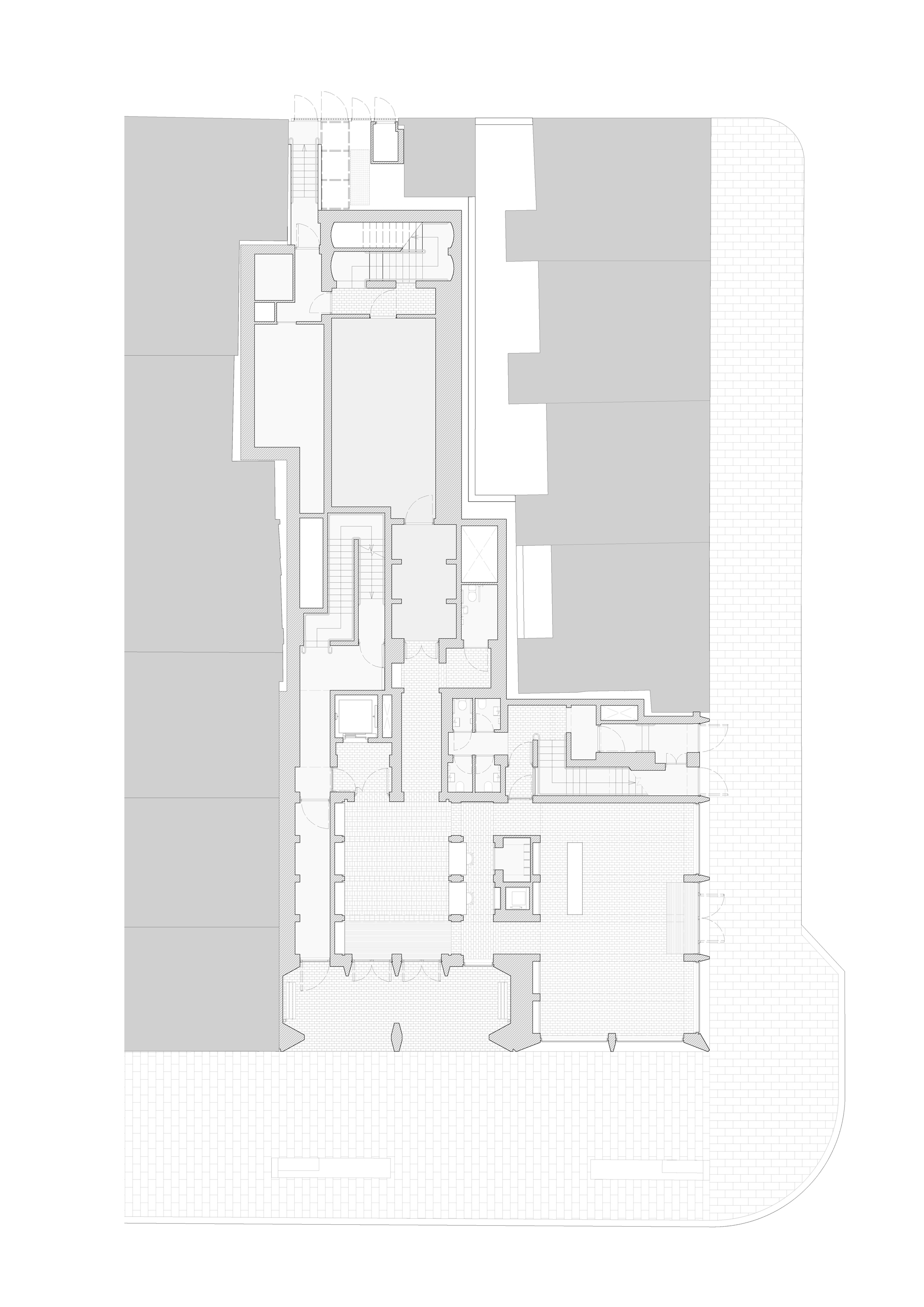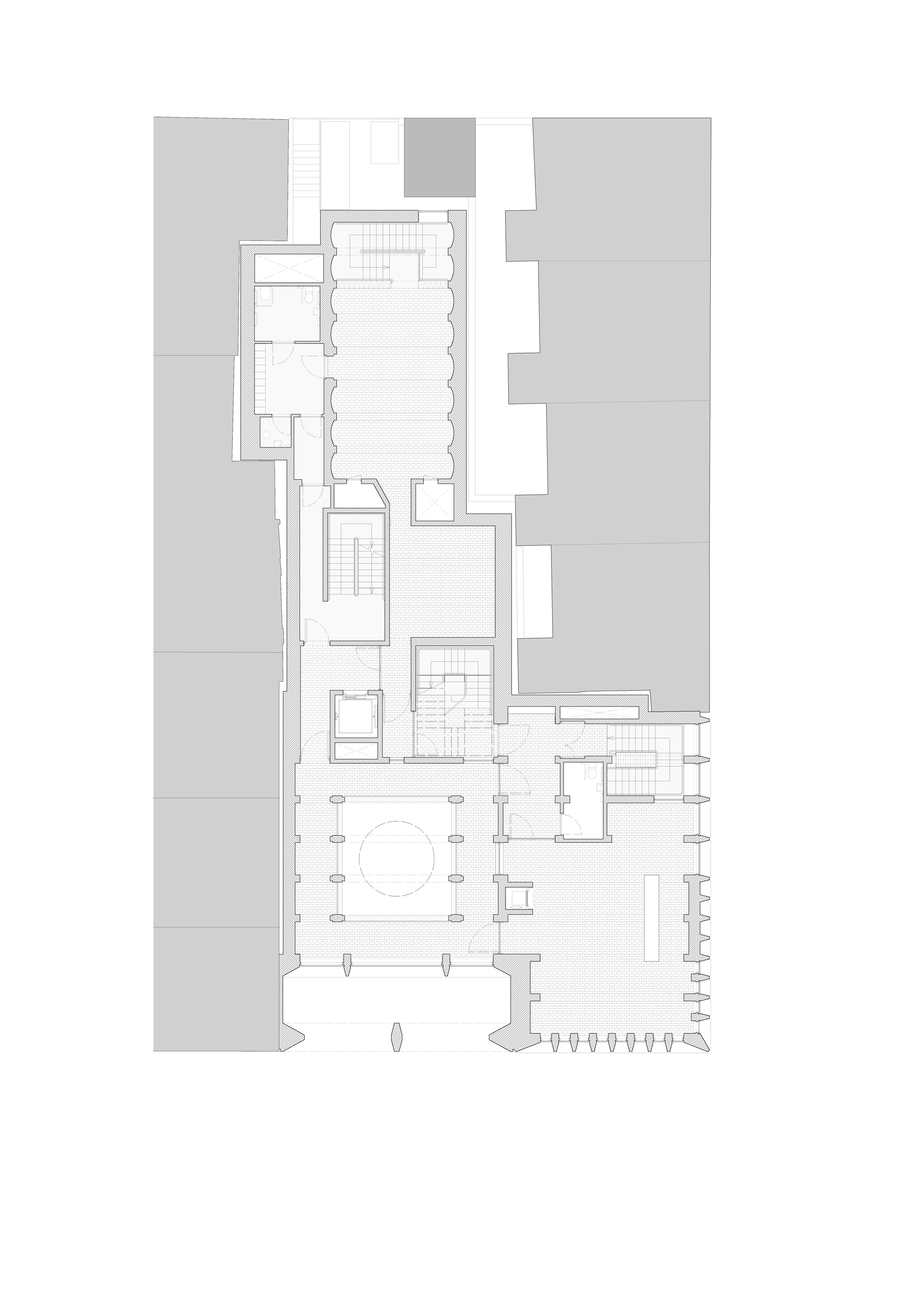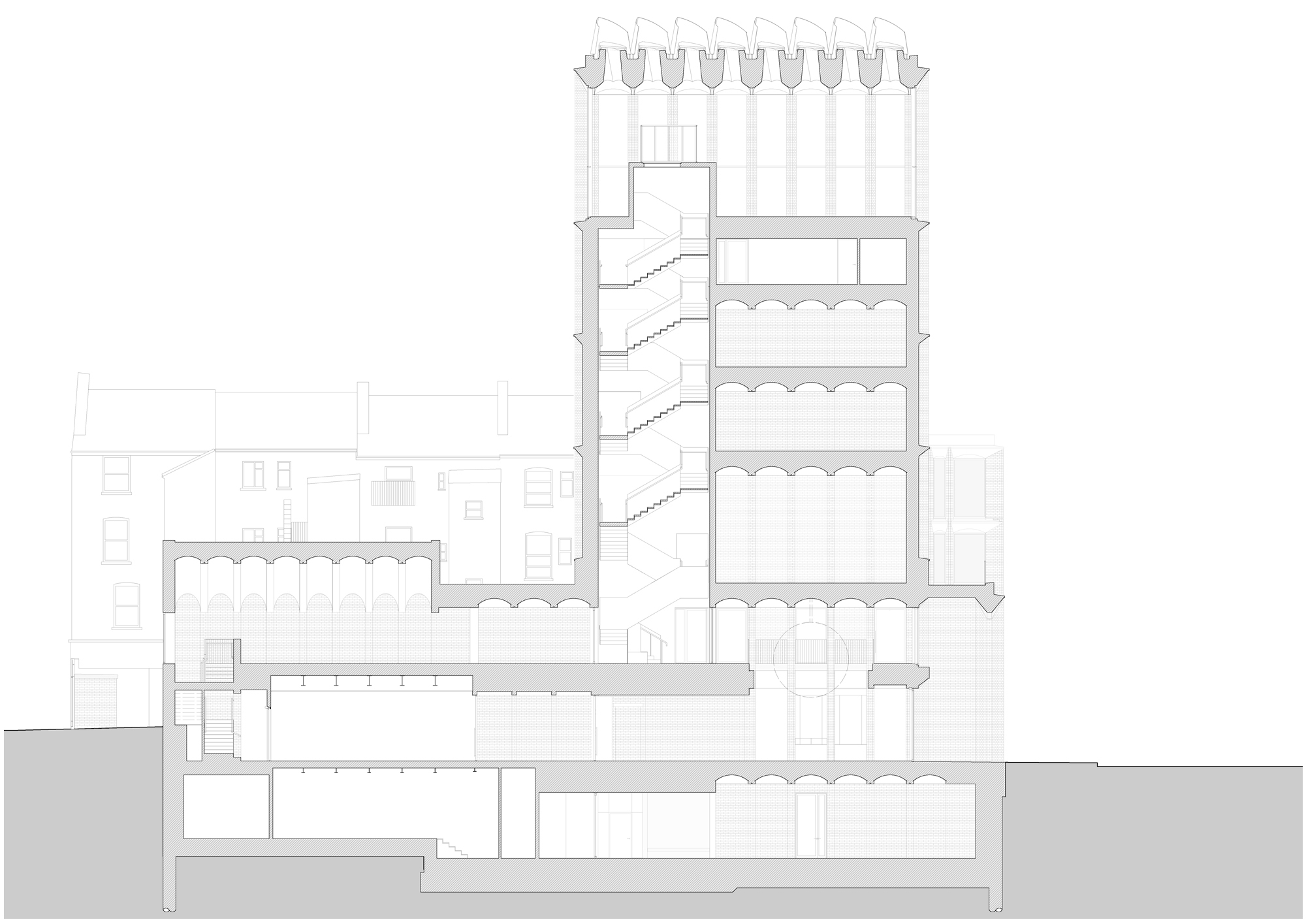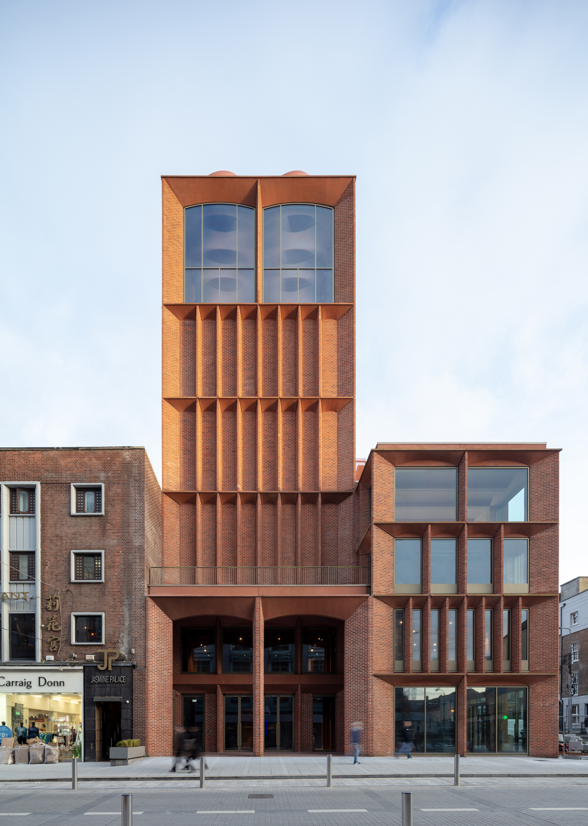 The new building sits on the edge of a conservation area within Limerick’s Georgian Quarter. On such a tight urban site, the challenge lies in creating a building with capacity for the intended use but that sits comfortably in the context of the finer grain of the Georgian Quarter. The design approach was to consider this as a special civic building rather than a townhouse and the architectural proposals were developed through research into historic civic buildings set in Georgian streetscapes, referencing the scale of churches and civic halls.