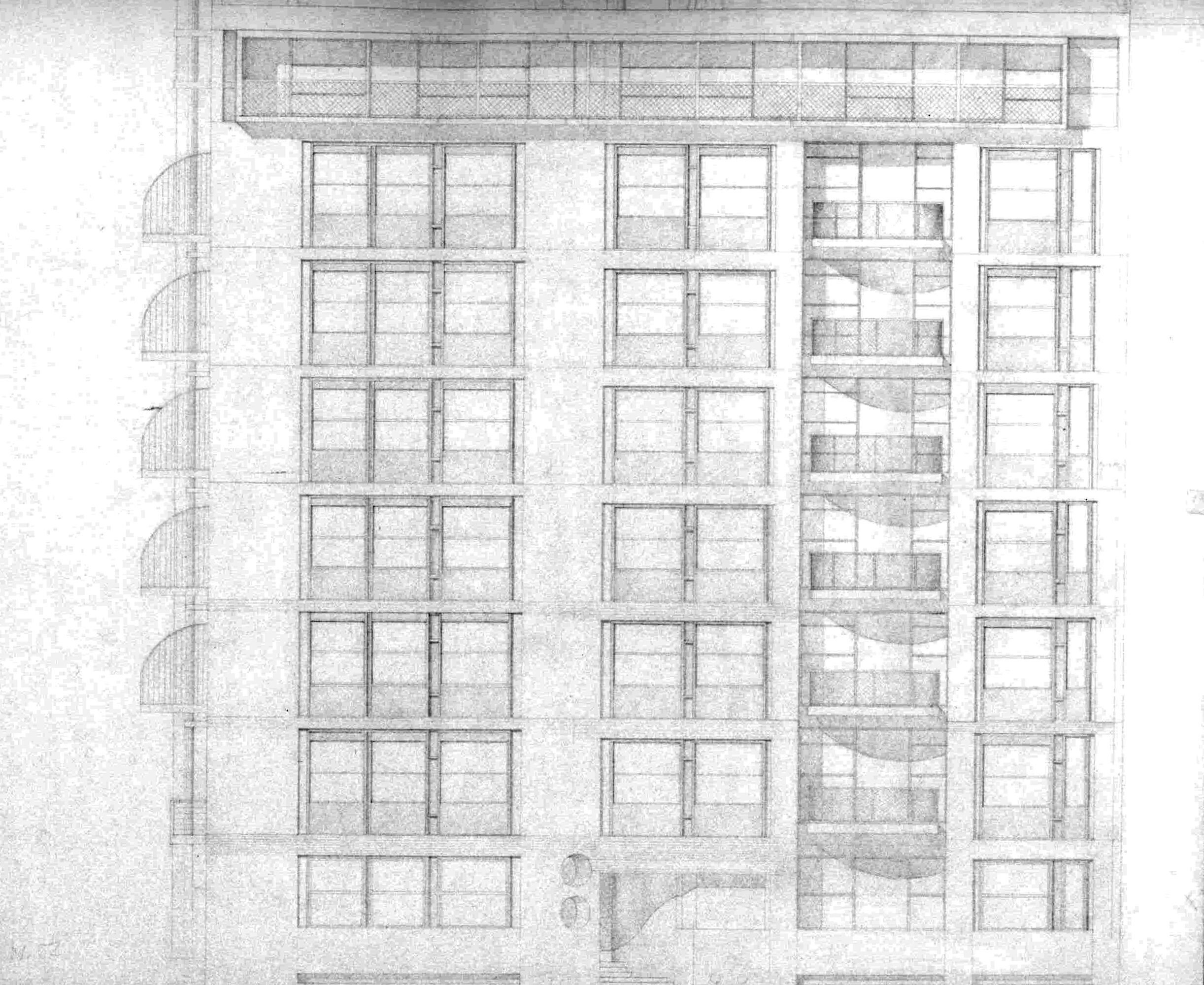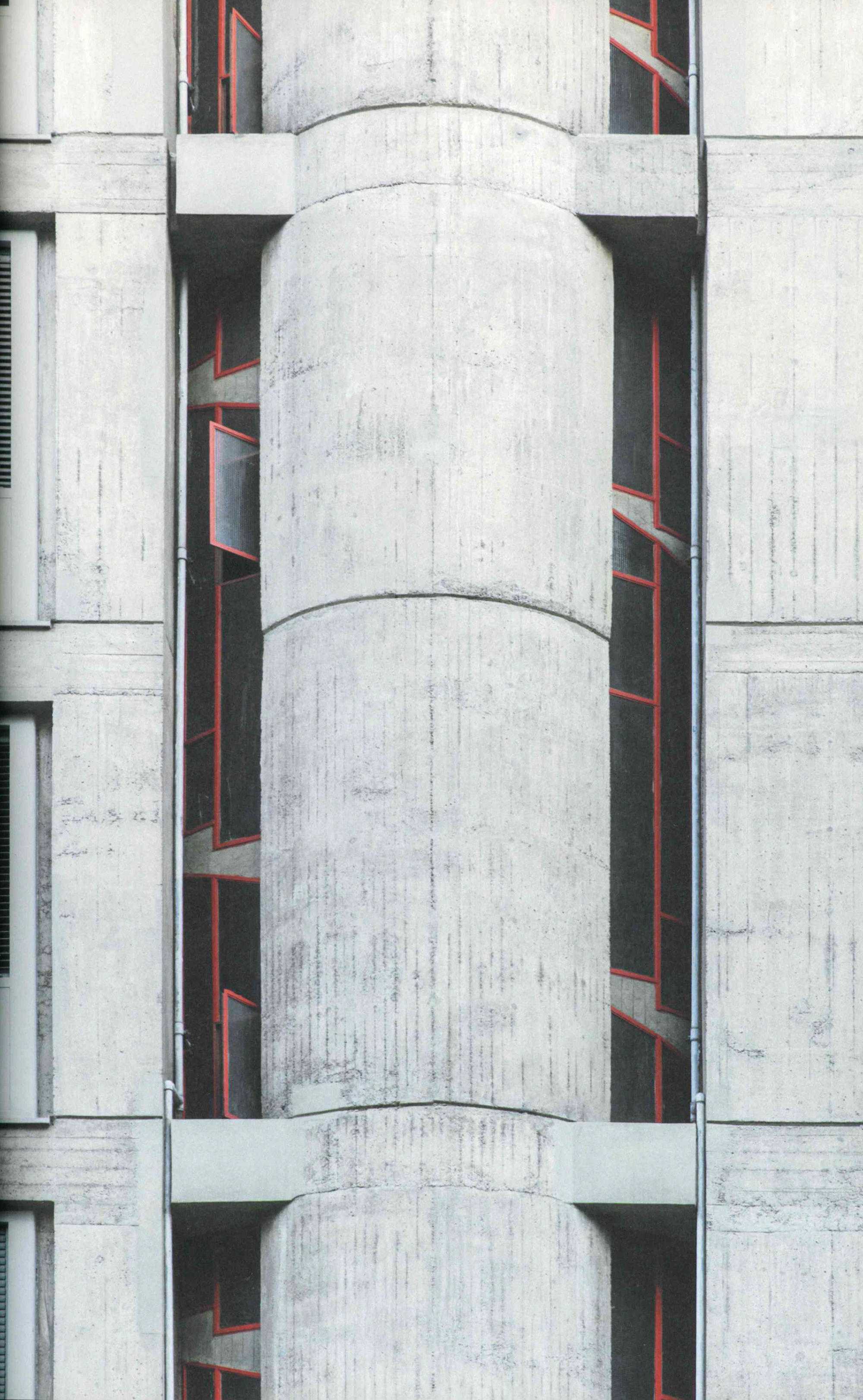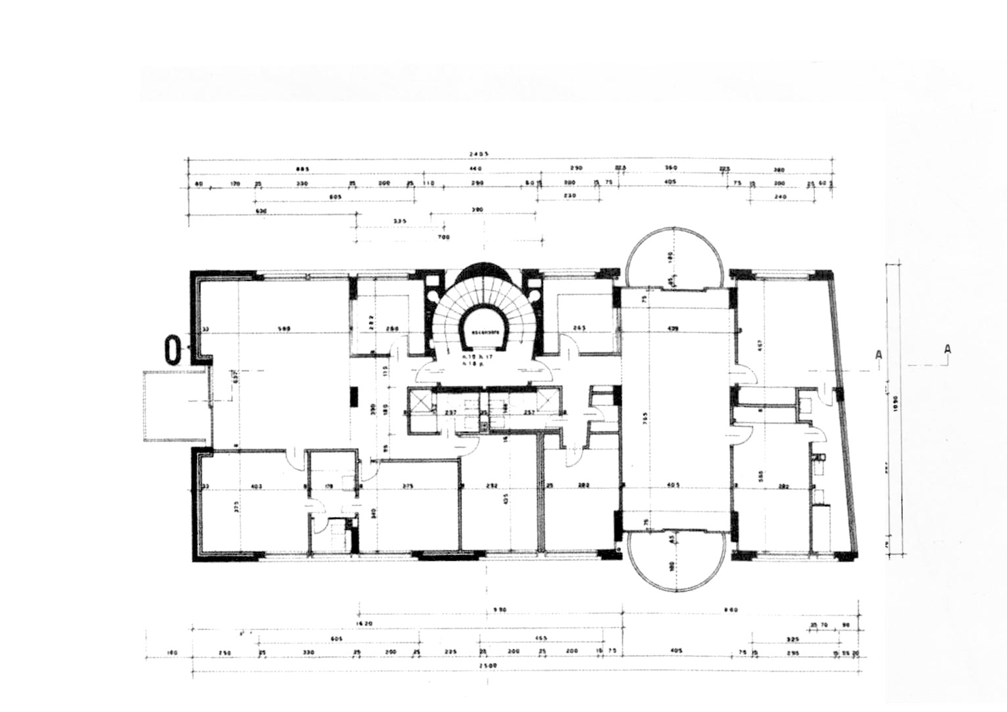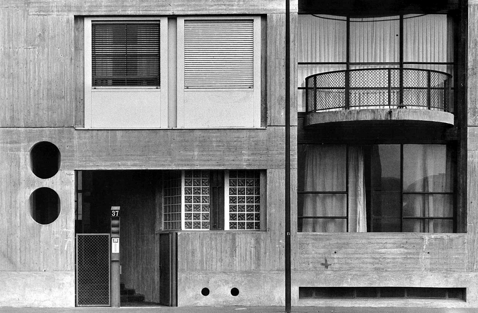 A significant example of Riva’s attention to construction technologies, the building in via Paravia – designed for a cooperative with little economic means – proves to be a brilliant exercise of ingenuity, which resorts to the use of prefabricated exposed concrete panels to close a skeleton composed of reinforced concrete partitions, exploiting its intrinsic characteristics of economy and expressive capacity. These principles inspired the unusual choice of aluminum windows and doors with painted sheet metal frames, which at the time were still little used in domestic contexts. The building is entirely intended for apartments, two for each of the standard floors, which provide different distributions: the apartments located in the northern section have views facing the garden and the street, with pass-through living rooms that occupy the entire depth of the building. building and which are equipped with two large balconies, with a semicircular plan; those to the south have windows open on three sides, but a corner living room and a single terrace.