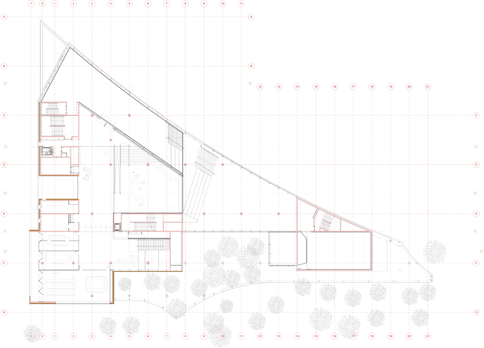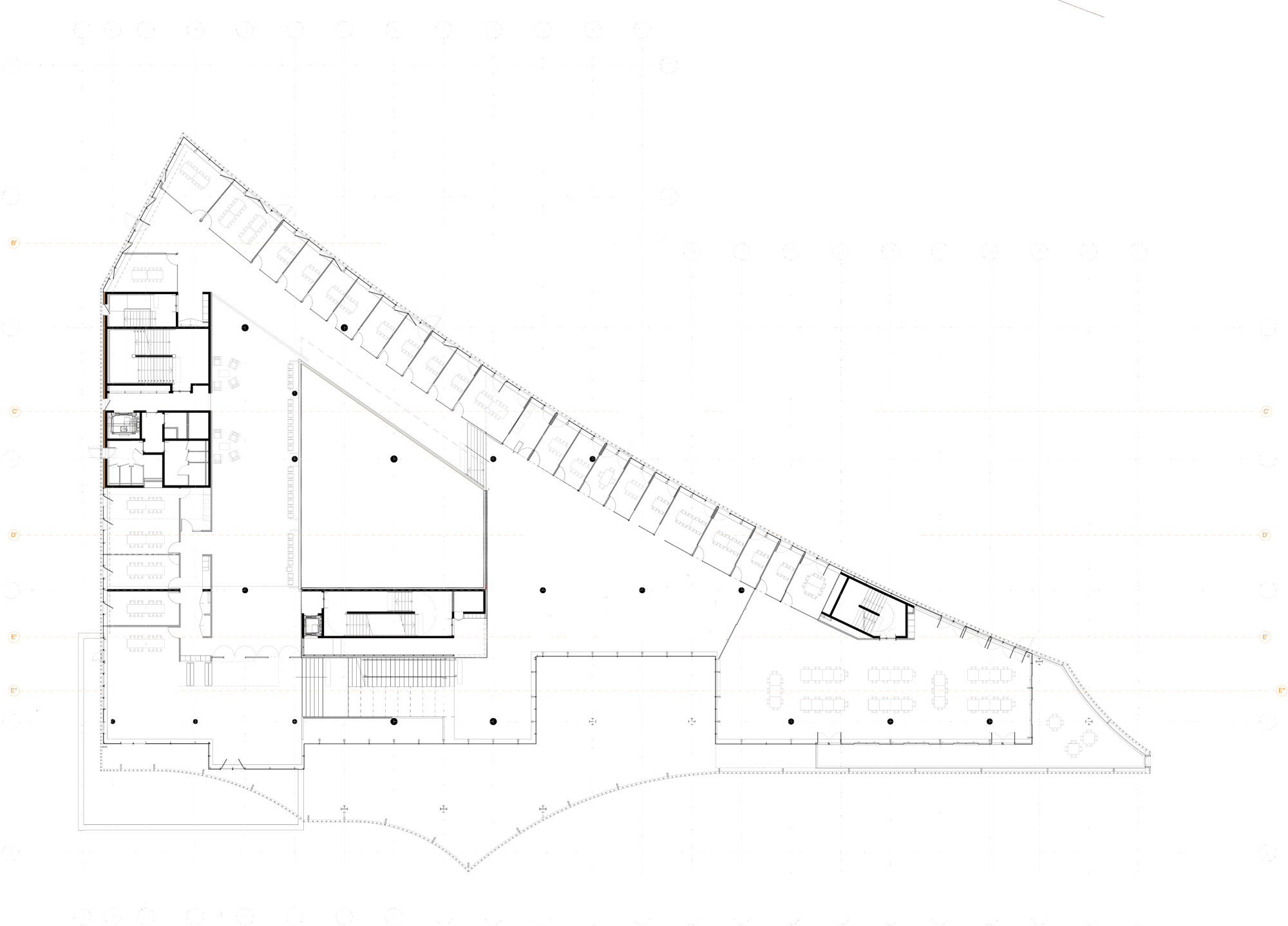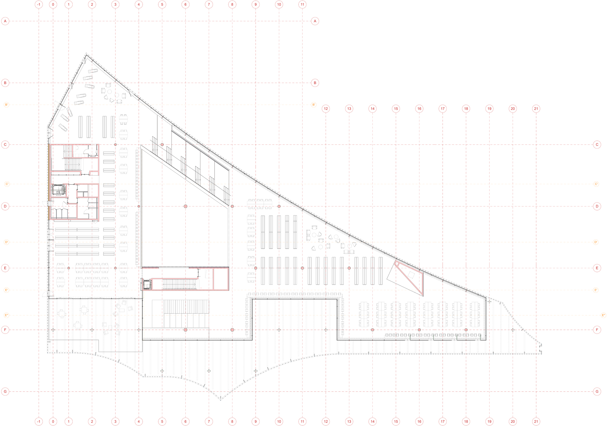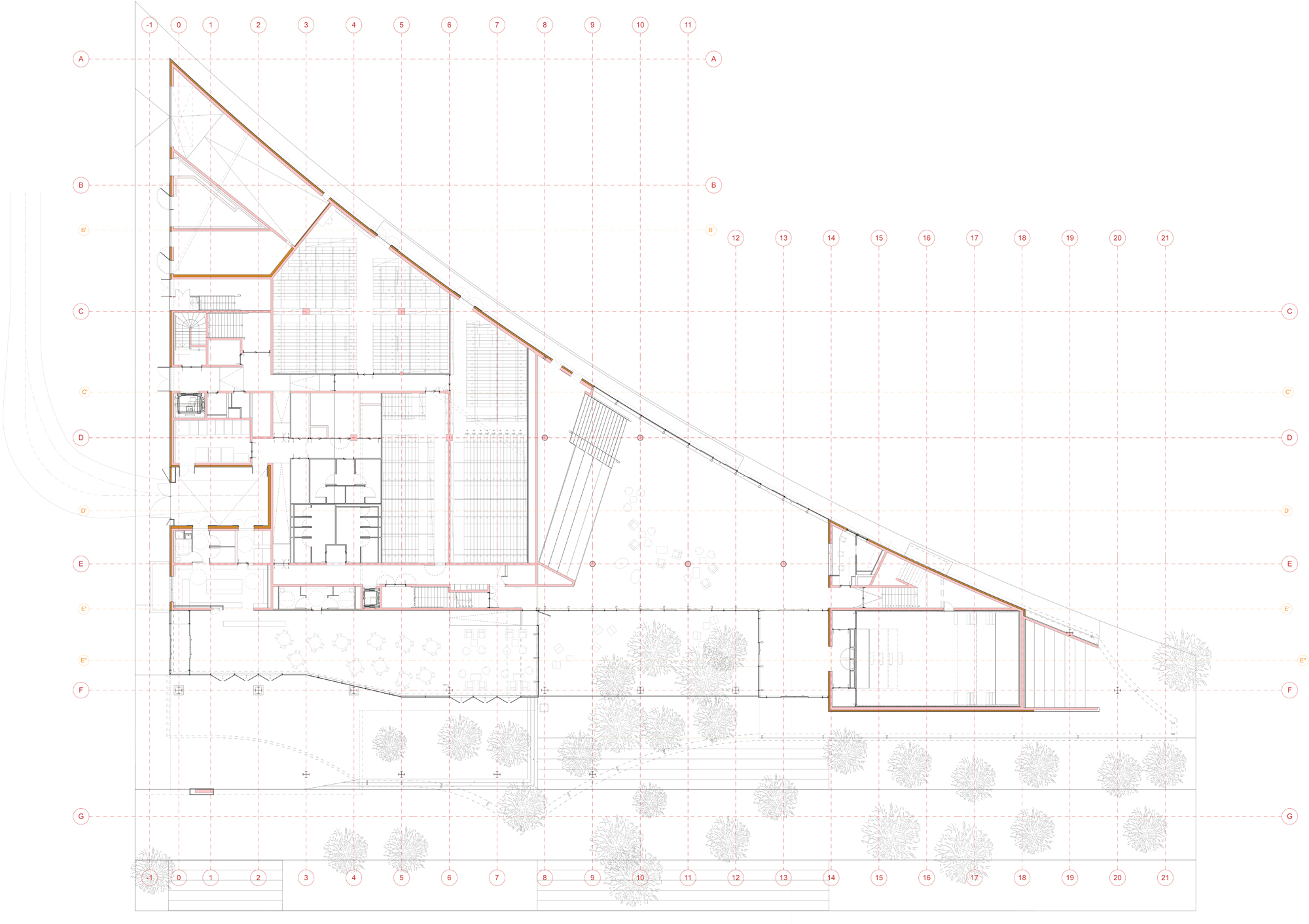 The “Lumen”, a learning center at the University of Paris Saclay, is based on a sober and expressive design due to its unifying program.The curved lines of the project soften the angular geometry of the site and accompany the arc traced by the aerial metro. The building is largely open to the outside and seeks lightness. The use of white metal columns, to filter the light, makes it possible to install an intermediate space between the public domain and the interior of the library. The steel structure is a tree structure protecting the interior by allowing a softened and changing light to filter through. The intermediate space serves as an extension of the park facing the building. The Lumen is formed of a single space rising in a spiral around an atrium. The space is fluid, it offers a slow drift among the collections and suggests the sharing of knowledge. The atmosphere of the building is bright, calm and serene, to convey the pleasure of reading and research. The building takes this flexibility into account, reducing the presence and size of the structures. The spaces are discovered in a succession of perspectives open from one place to another, where each function is easily identifiable. A belvedere terrace on the last level is the culmination of this interior journey.