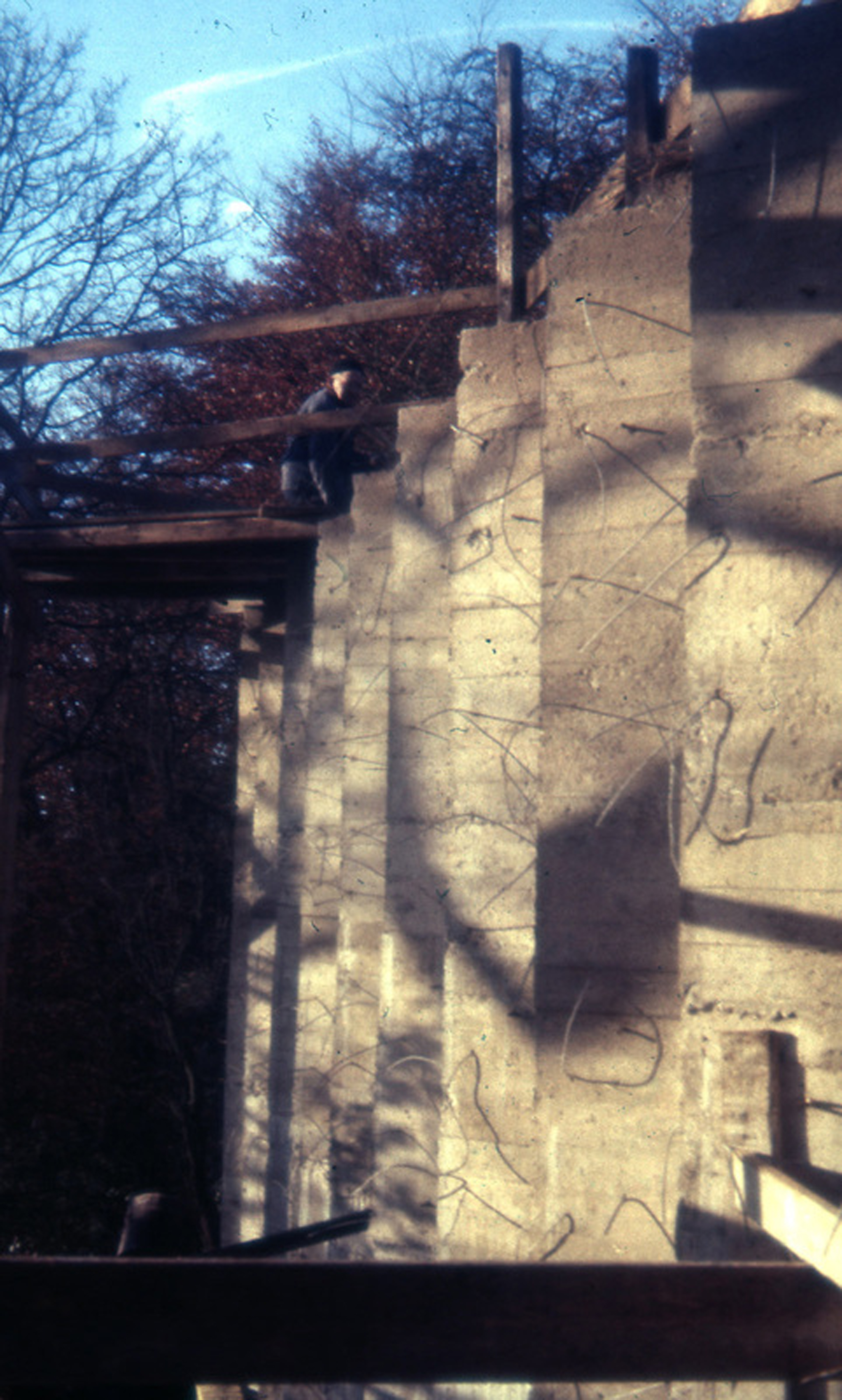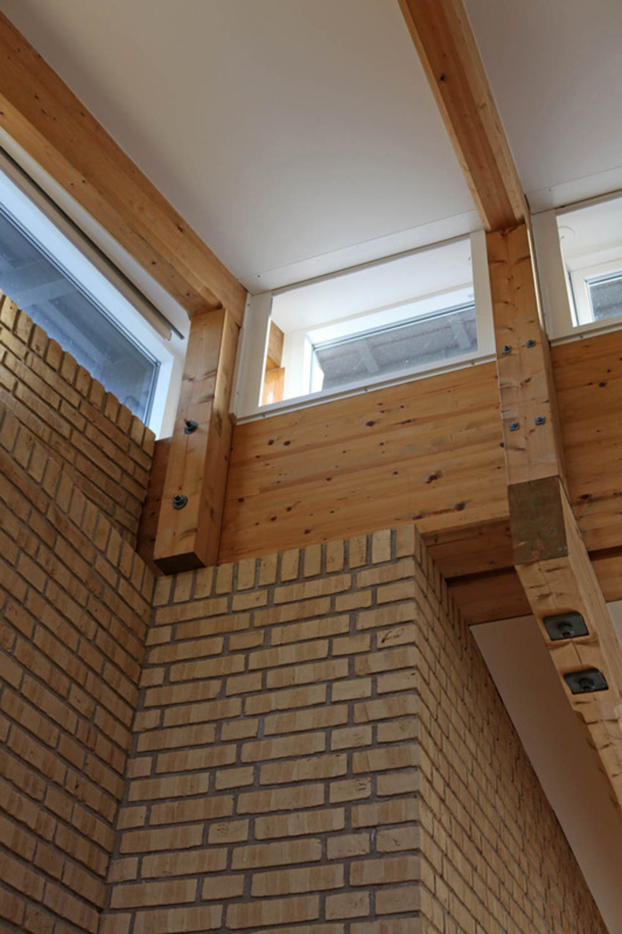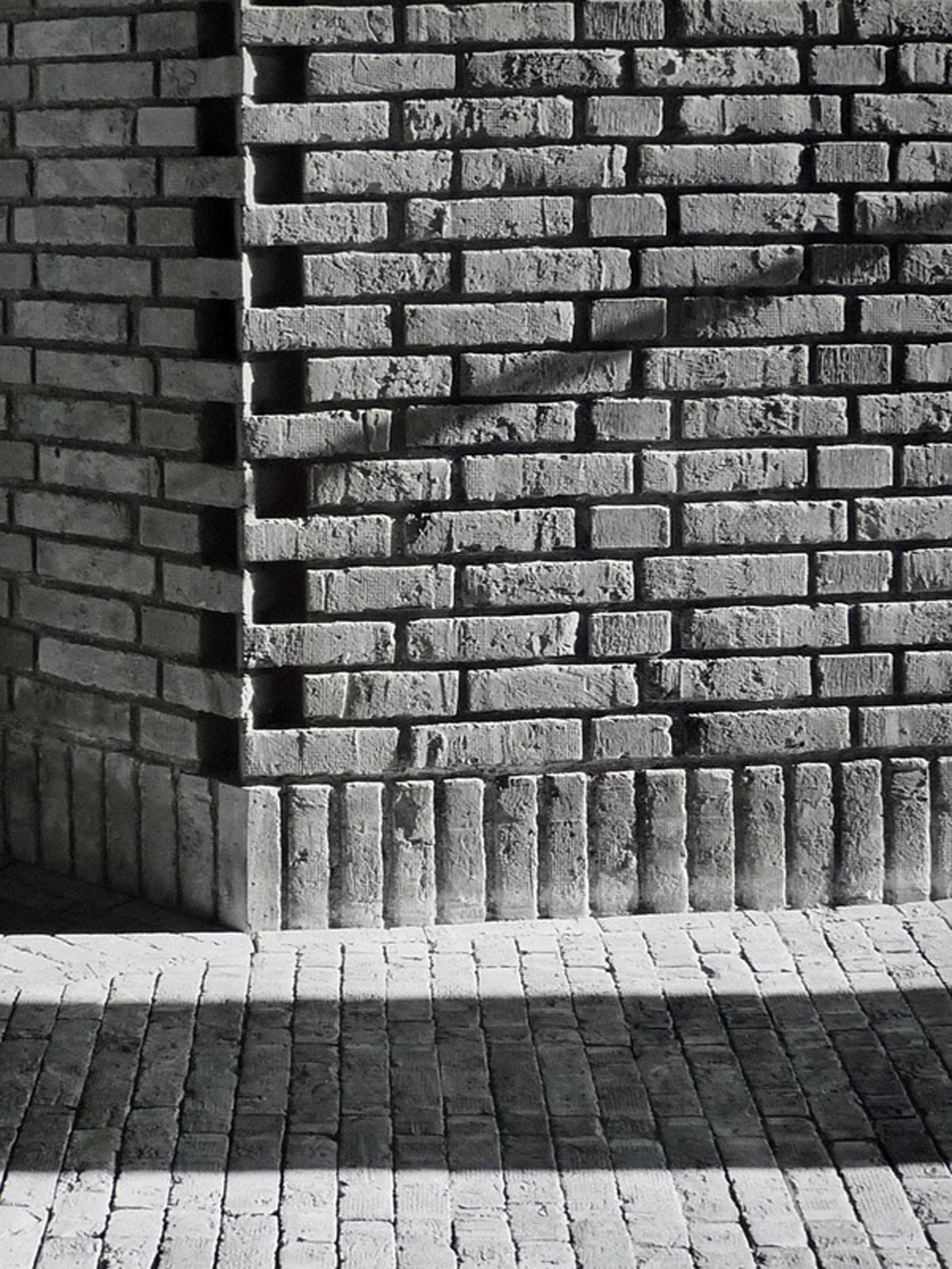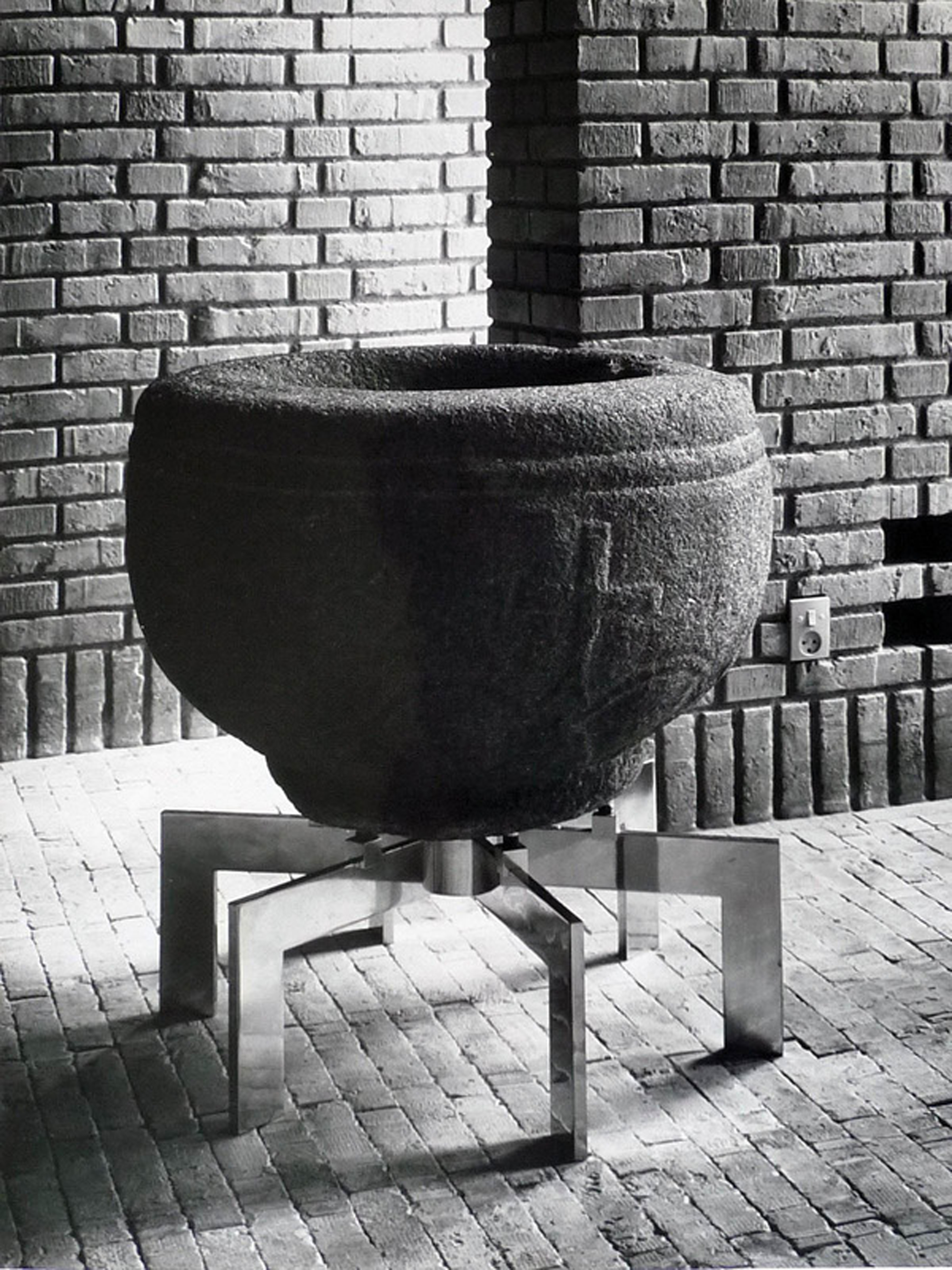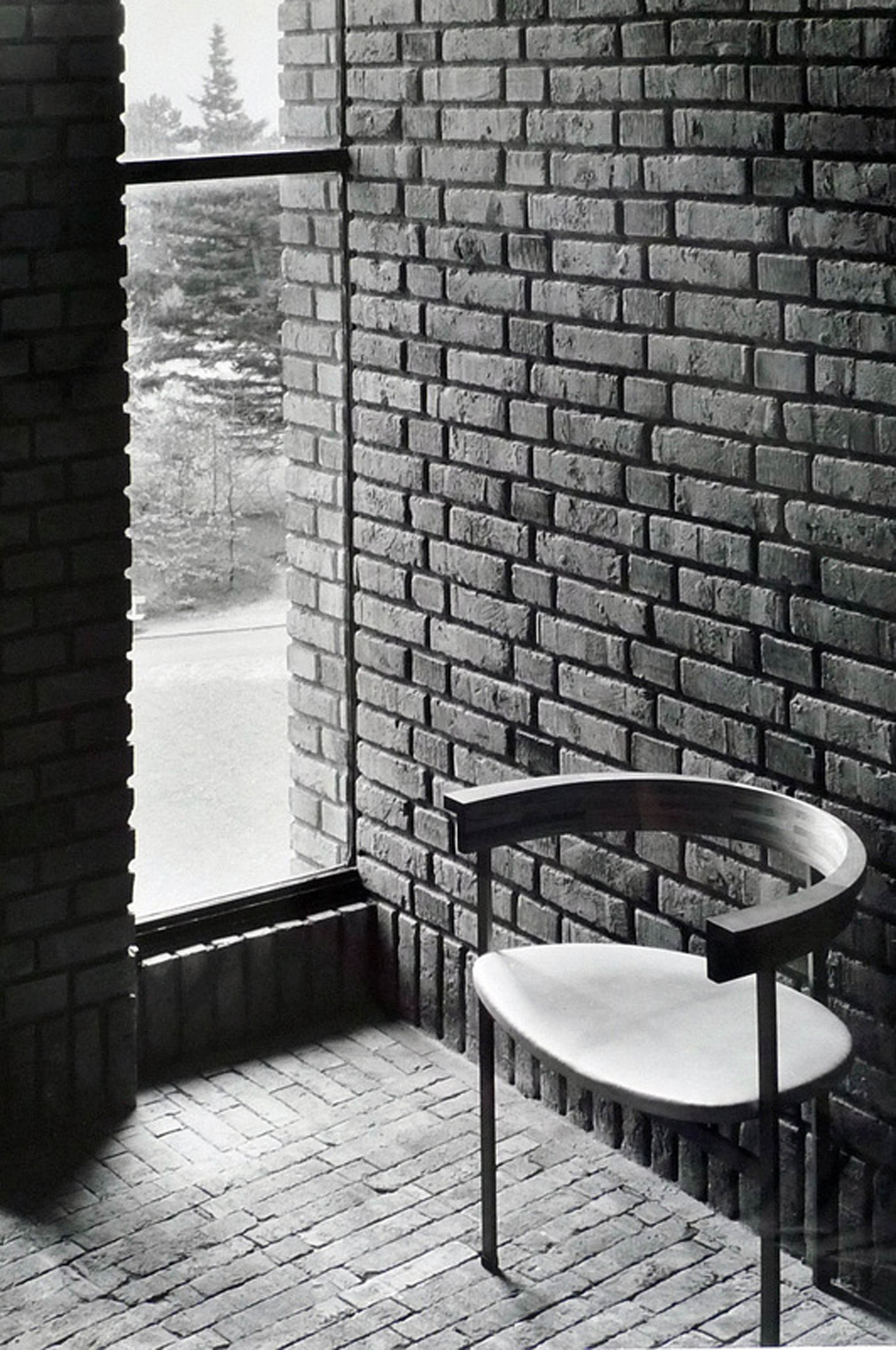 The pentagonal church space opens behind the altar towards a magnificent view. Yellow brick is used everywhere, for walls, floors, benches, the lower part of the organ and the altar elevation. Likewise, the priest’s door between the sacristy and the church room.“