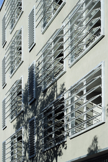 Tanto la ventilación natural, como la abundante luz natural en todos los espacios, están garantizadas por la distribución interior y por disponer todas las unidades de dos fachadas opuestas abiertas. Aprovechando el clima mediterráneo, la entrada a los apartamentos se realiza mediante una calle elevada en la parte posterior del edificio que mira hacia un típico patio interior de manzana barcelonés.