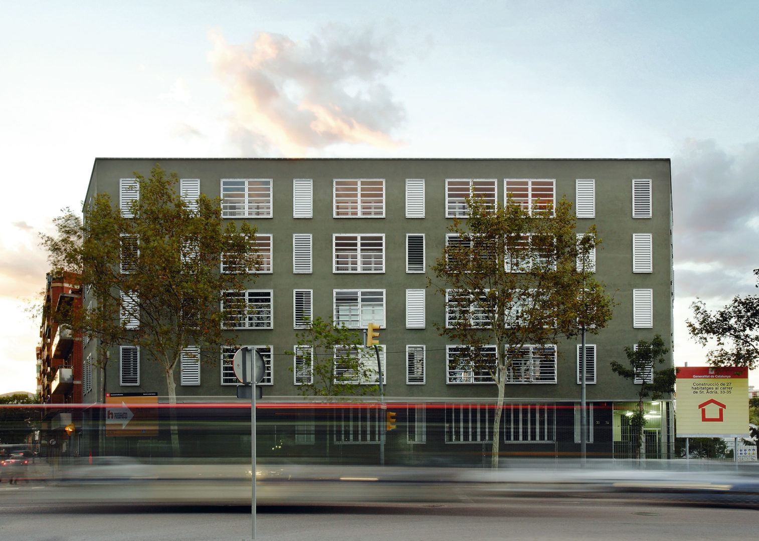 Se trata de un proyecto de veintisiete viviendas para jóvenes resultado de un concurso organizado en 2003 por la Generalitat de Catalunya y el COAC para arquitectos menores de 40 años. El programa pedía 6 viviendas por rellano: 5 para 1 o 2 personas de 40m2 útiles y una para 2-3 personas de 50m2 útiles. Las viviendas resultantes son 5 de 44m2 útiles y una de 51m2 útiles. El edificio se ubica en un solar trapezoidal en el barrio barcelonés de Sant Andreu.