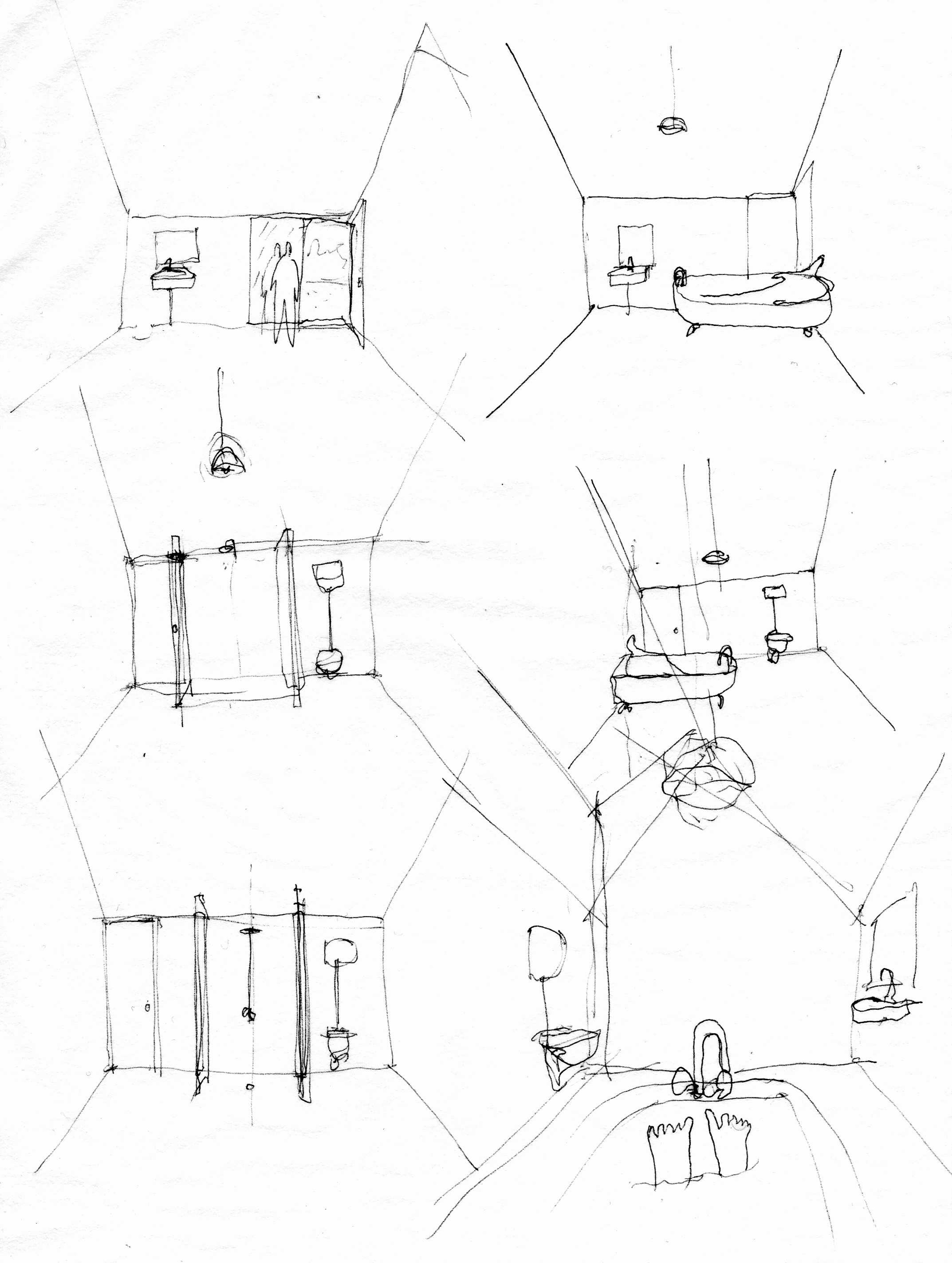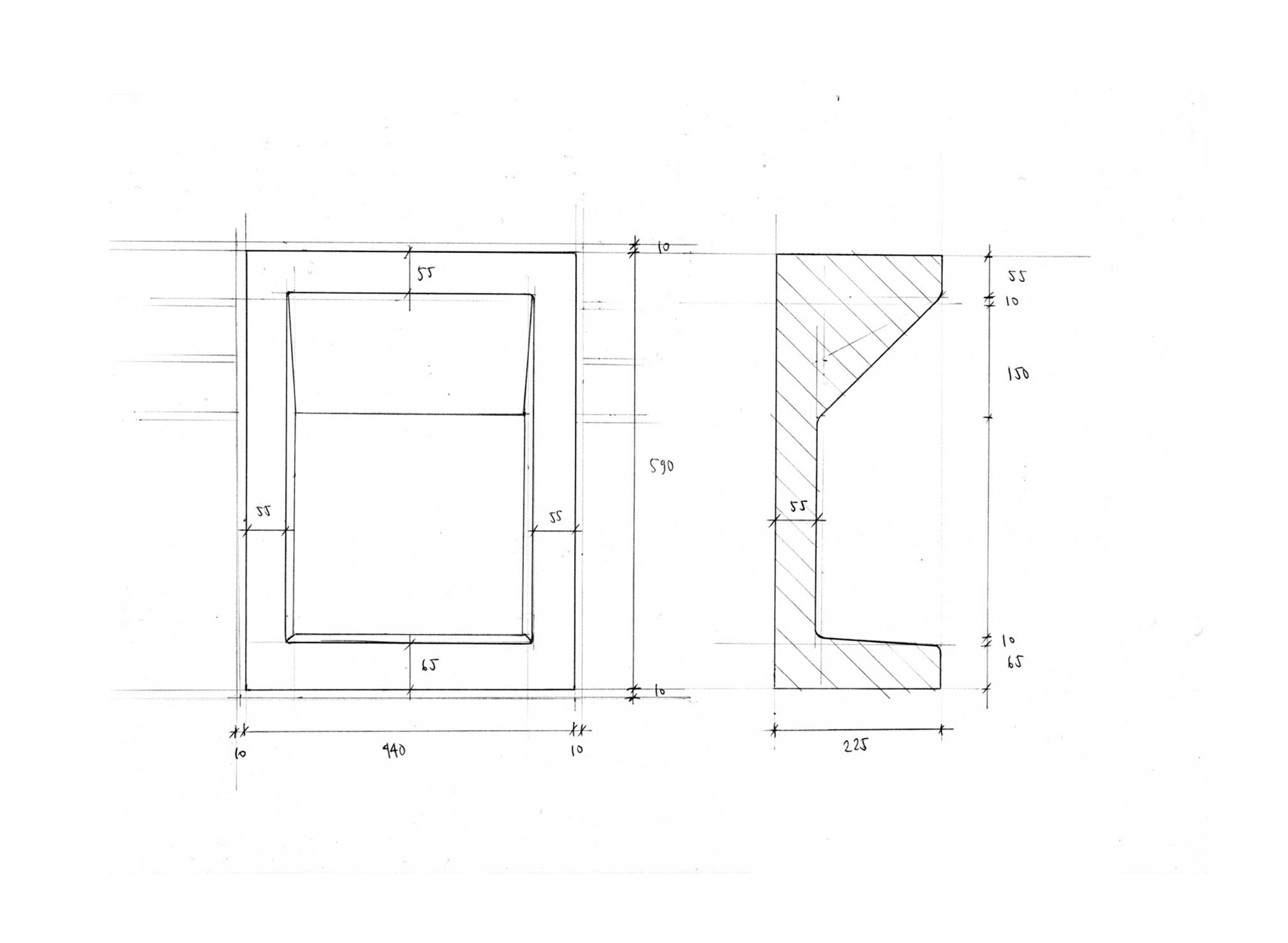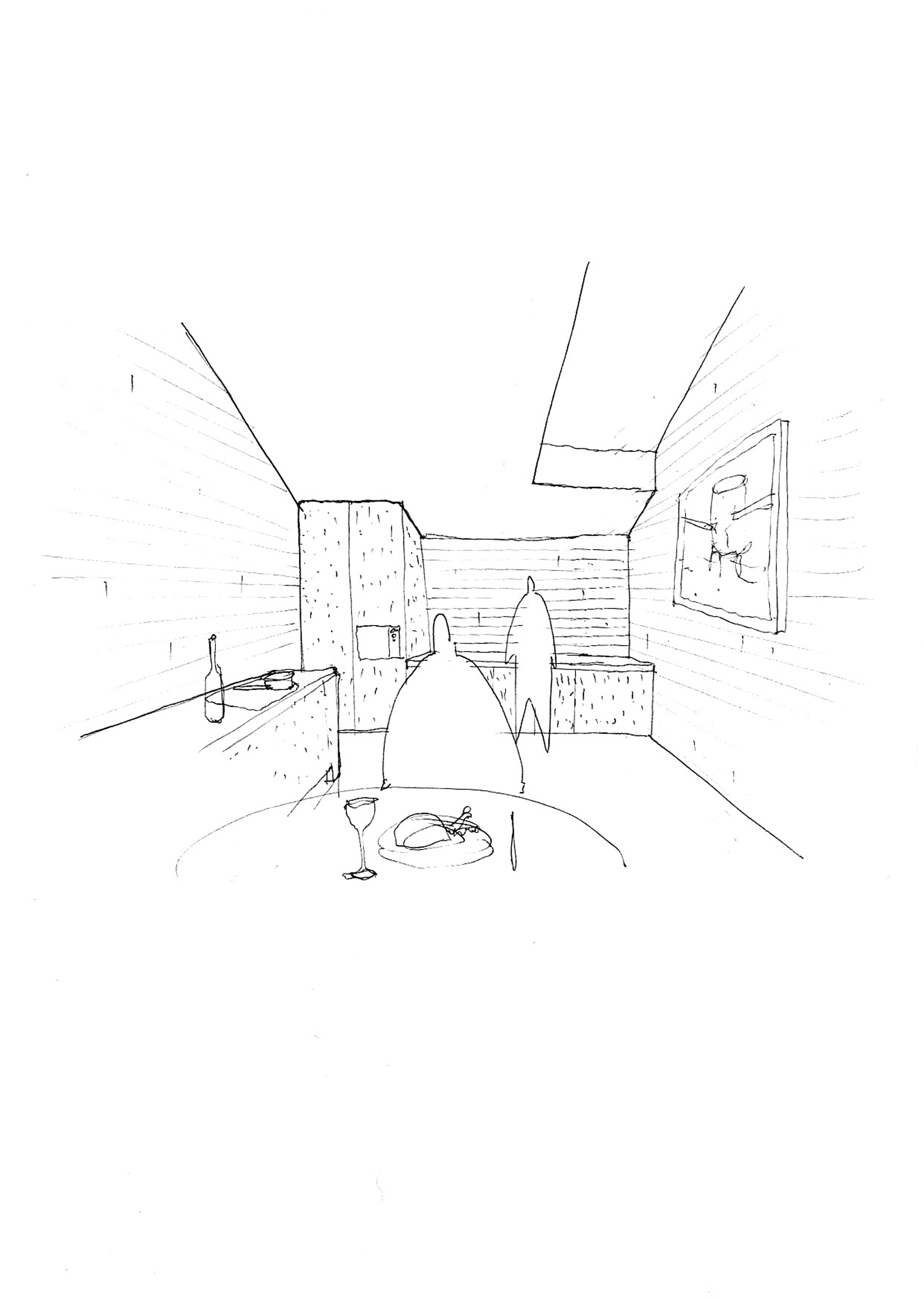 There are two entrances to the house, one in the centre and one at the end, into the kitchen. At each there is a cast concrete aedicule set into the adjacent brick walls. A section through the aedicule is a scaled version of the whole house. They recall shrines for Roman household gods but are now usually home to keys.