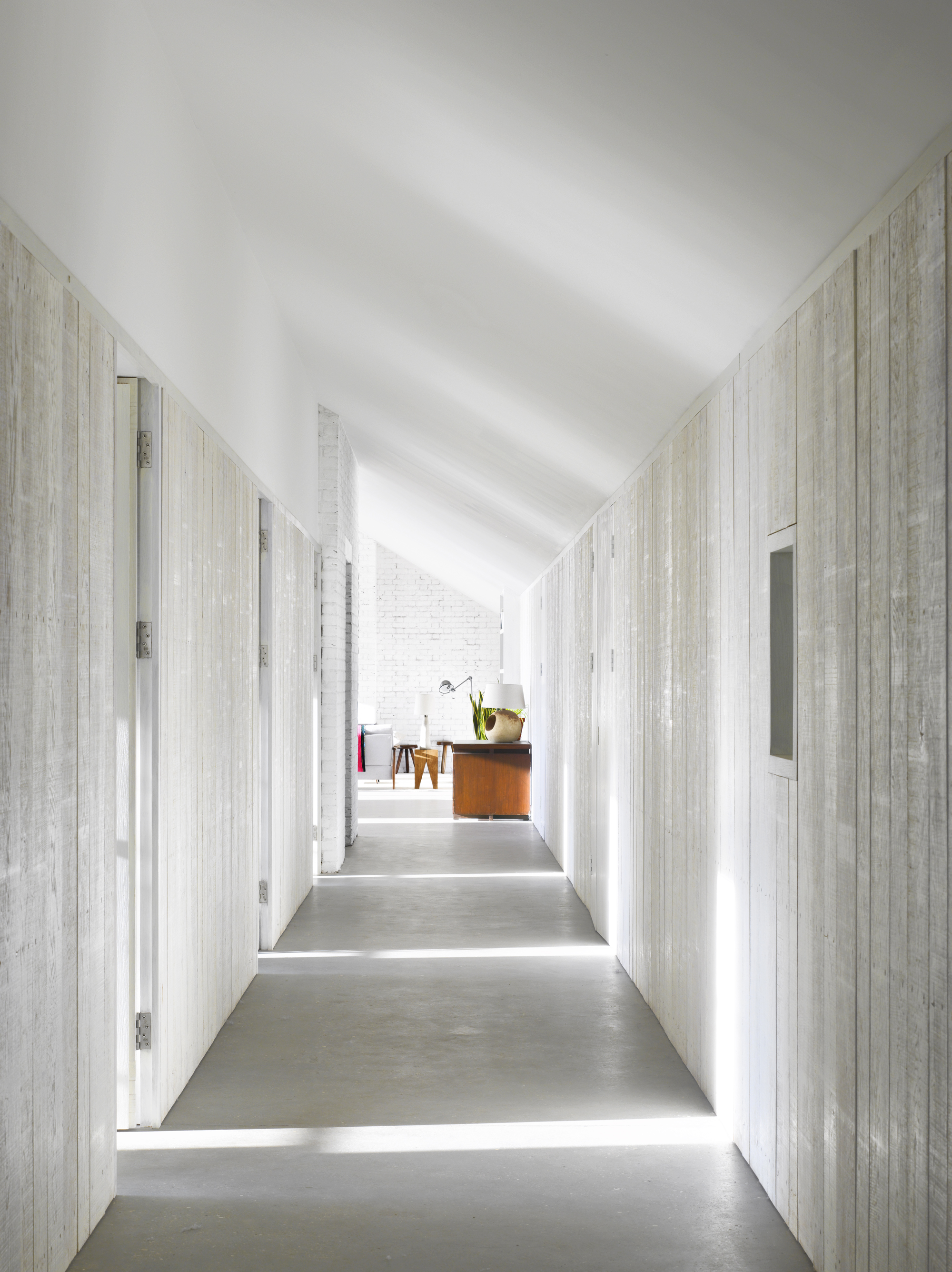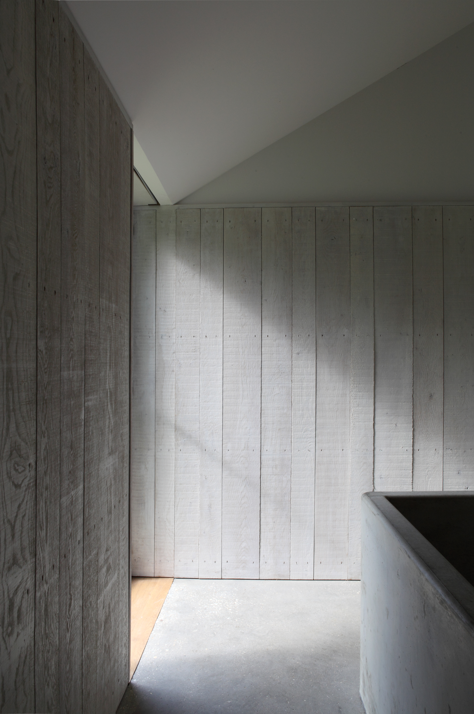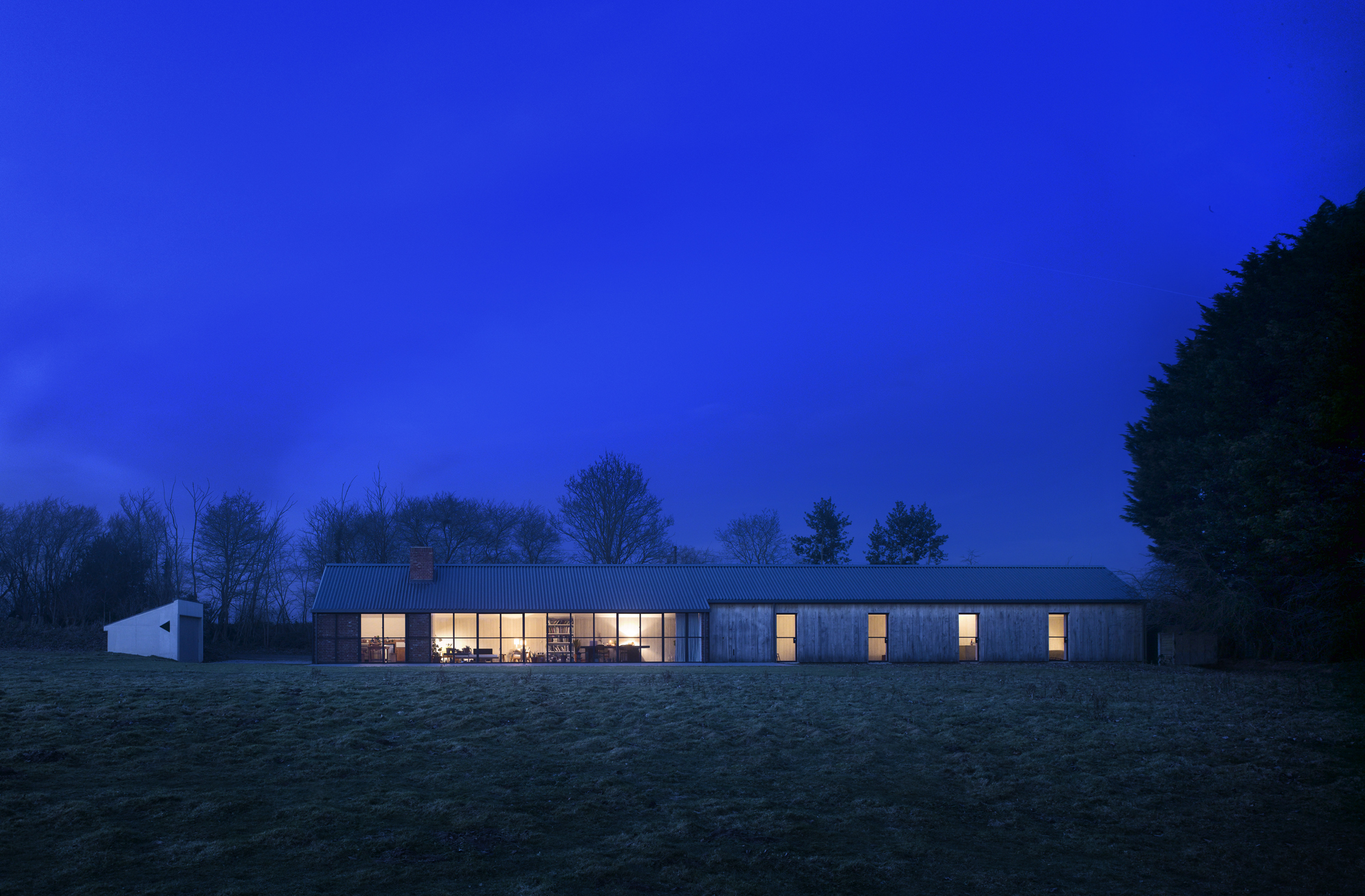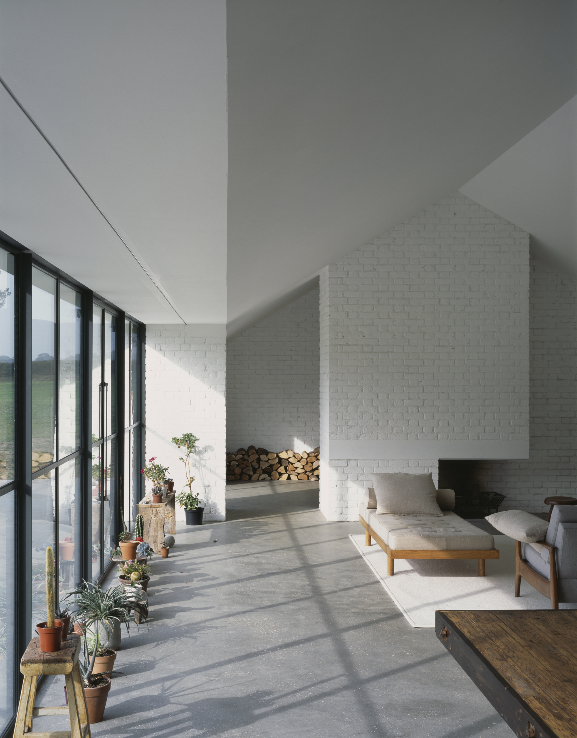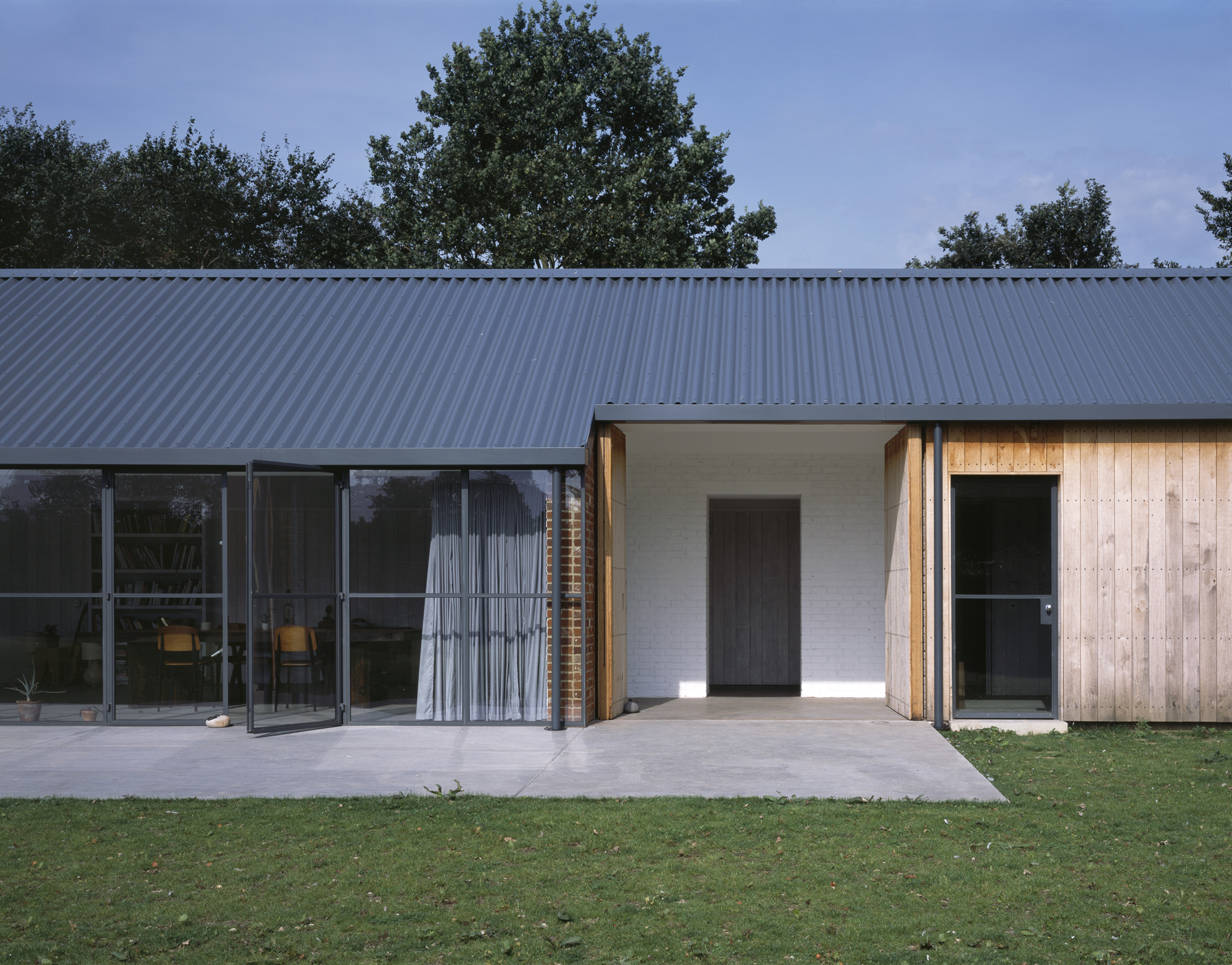 Built on the footprint of a nineteenth century stable block and retaining some its original walls, the building has a long narrow plan. It is divided equally into living and sleeping quarters, with each room in the house opening directly onto the south-facing garden and views across the flat Norfolk landscape.