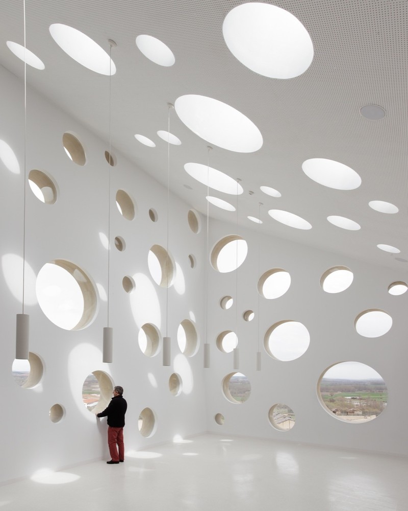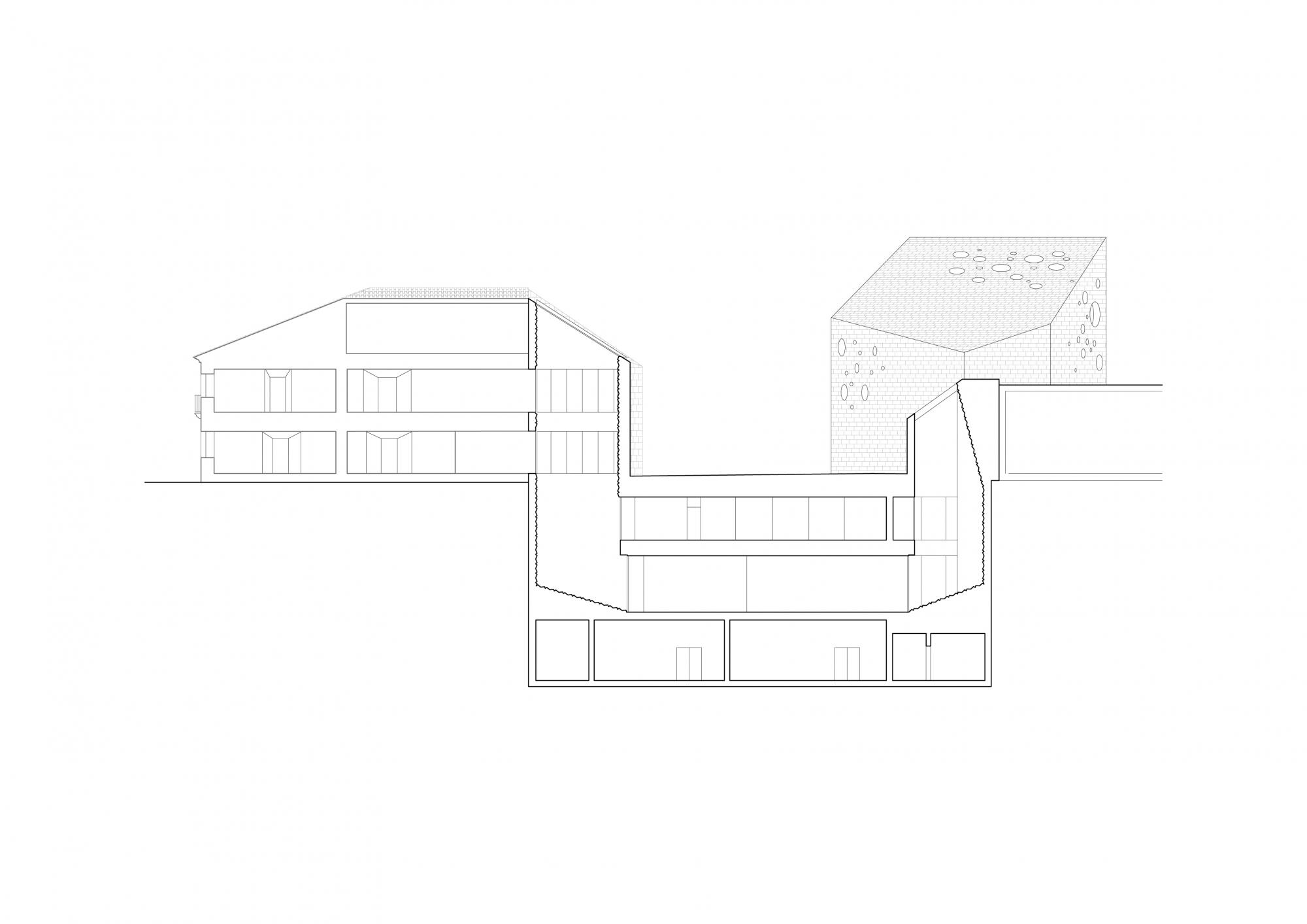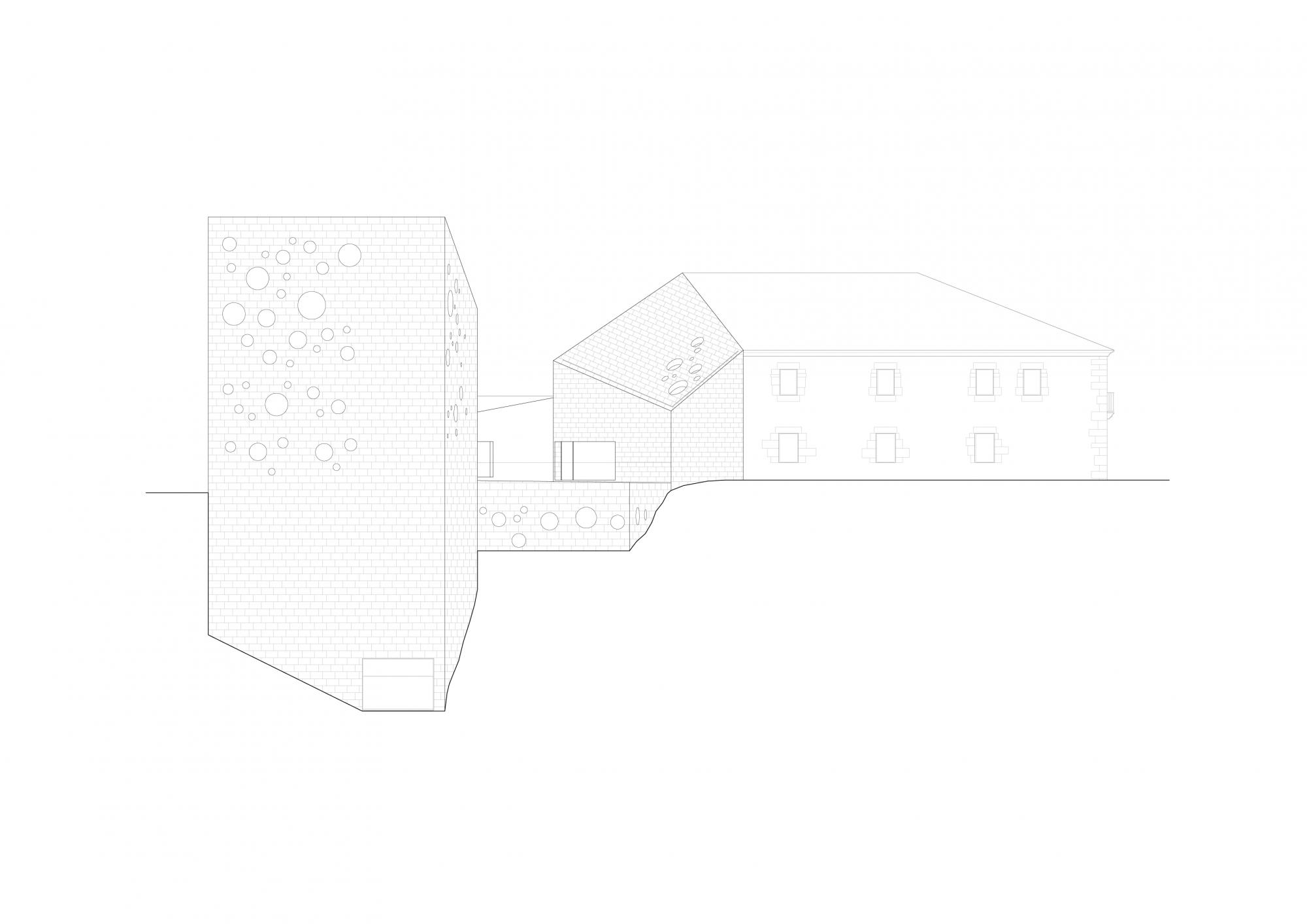 Blocks of local stone materialize this design in Roa, presenting it as a massive element of gravity. This reinforces the idea of a building which, far from having a limited lifespan, has been constructed with a material that mutates and changes with the passing of time. The relationship between the building and the historical traces of the place reveals a reality that explains the specificity of the context and enhances its value. Thus a new reality is the outcome of improbable and unexpected factors.
