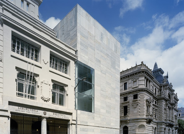 El edificio de la Nueva Biblioteca Foral de Bizkaia ocupa una manzana completa de la trama urbana del Ensanche de Bilbao. El conjunto actual integra un antiguo Palacio y dos nuevas construcciones adosadas.