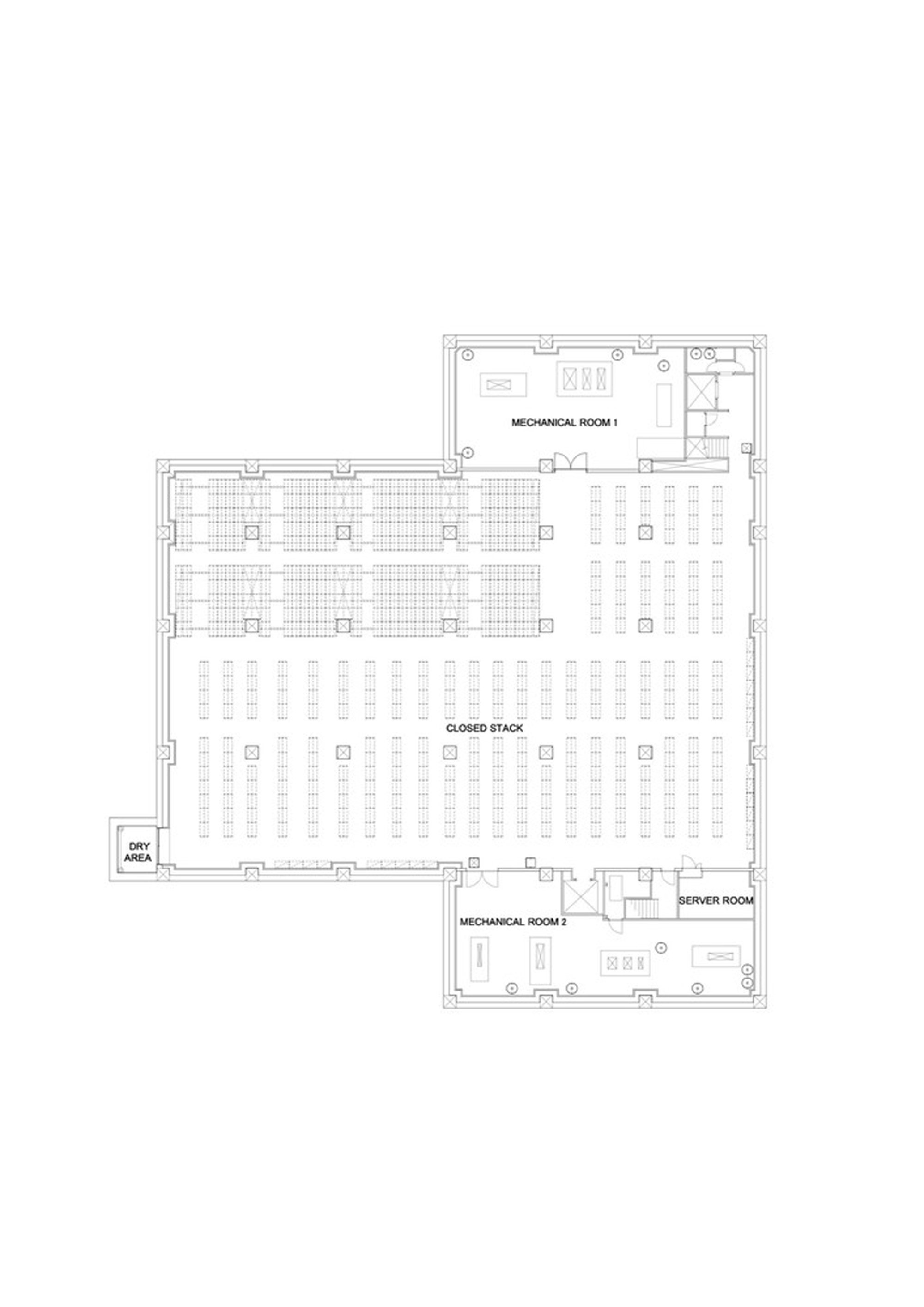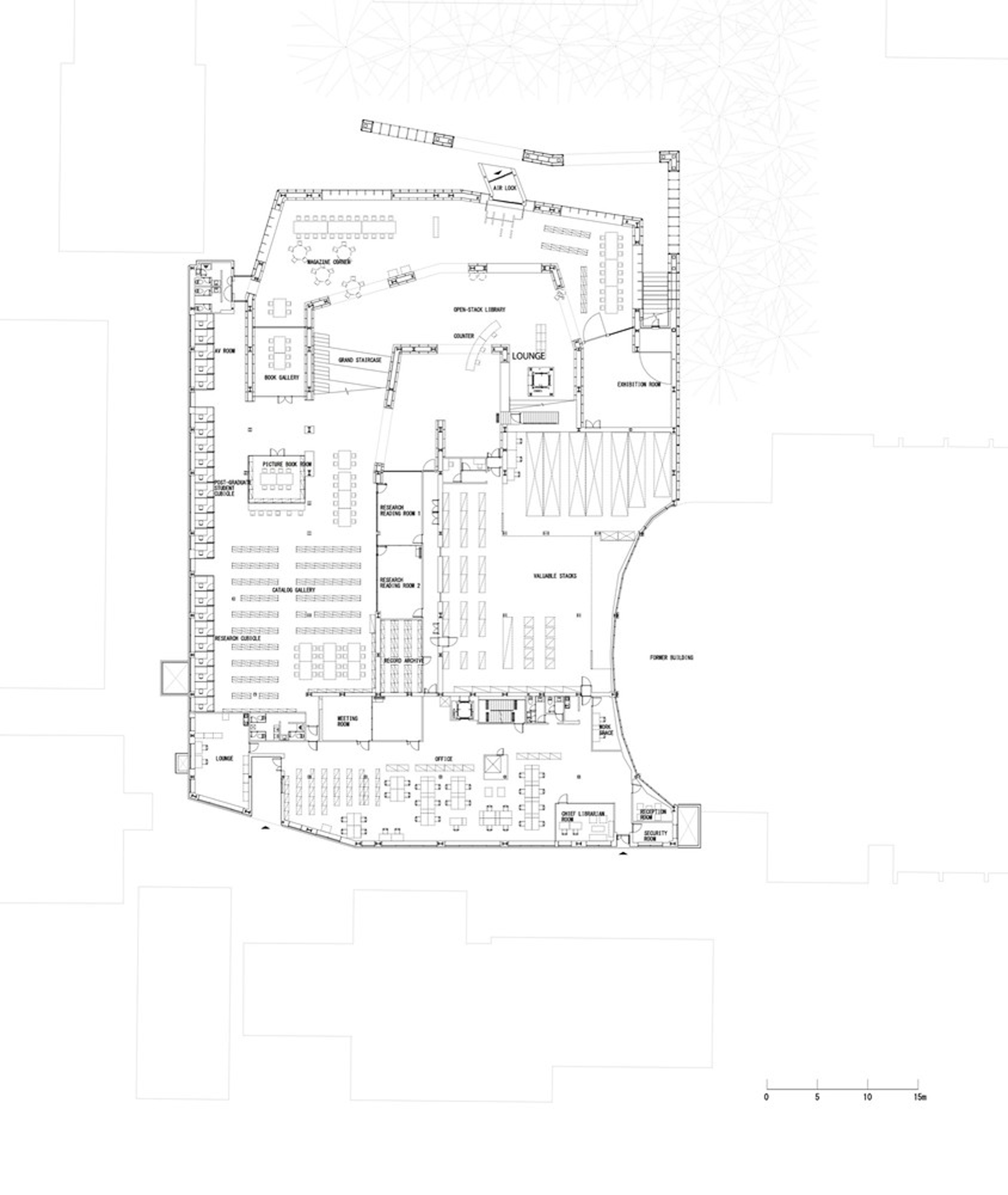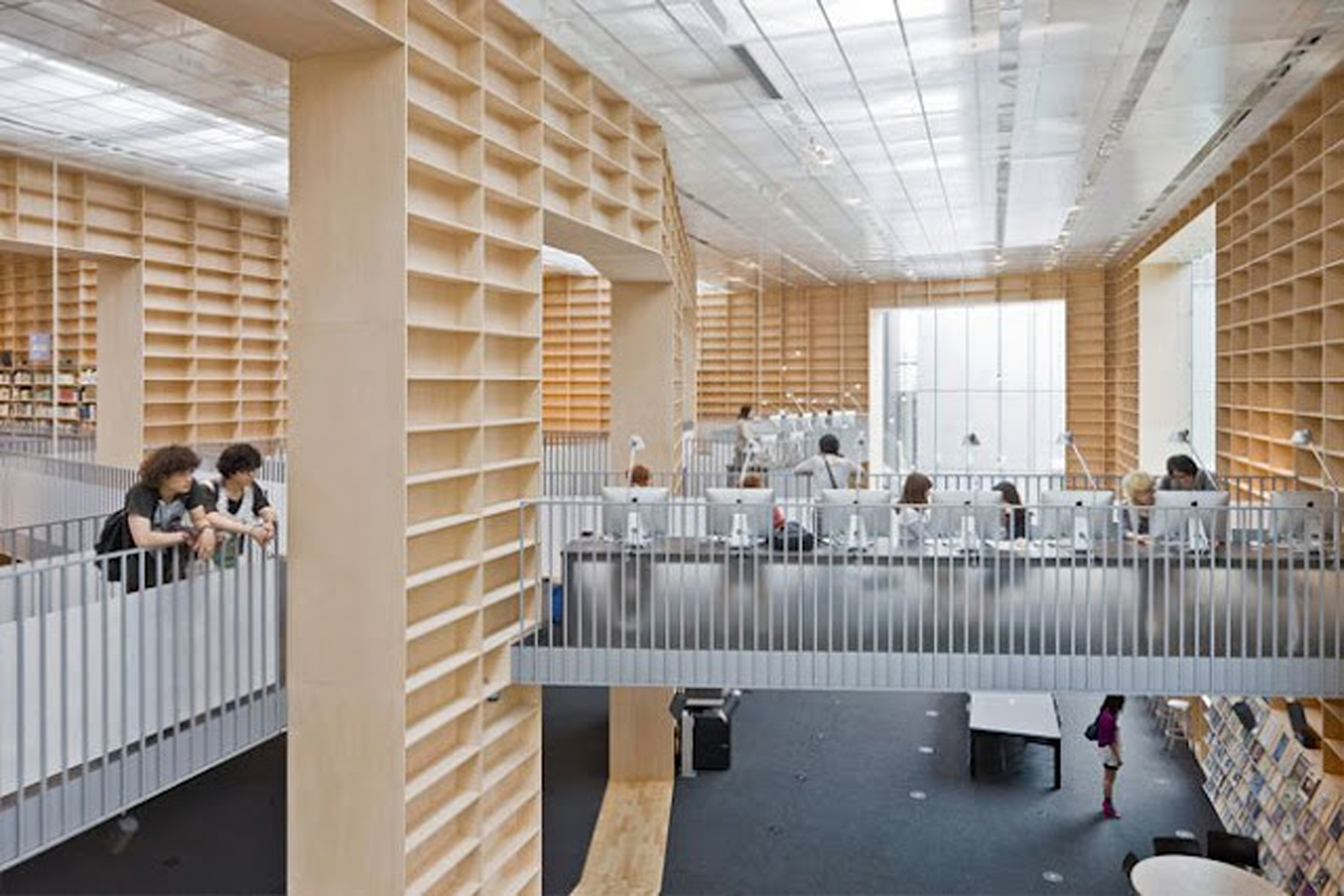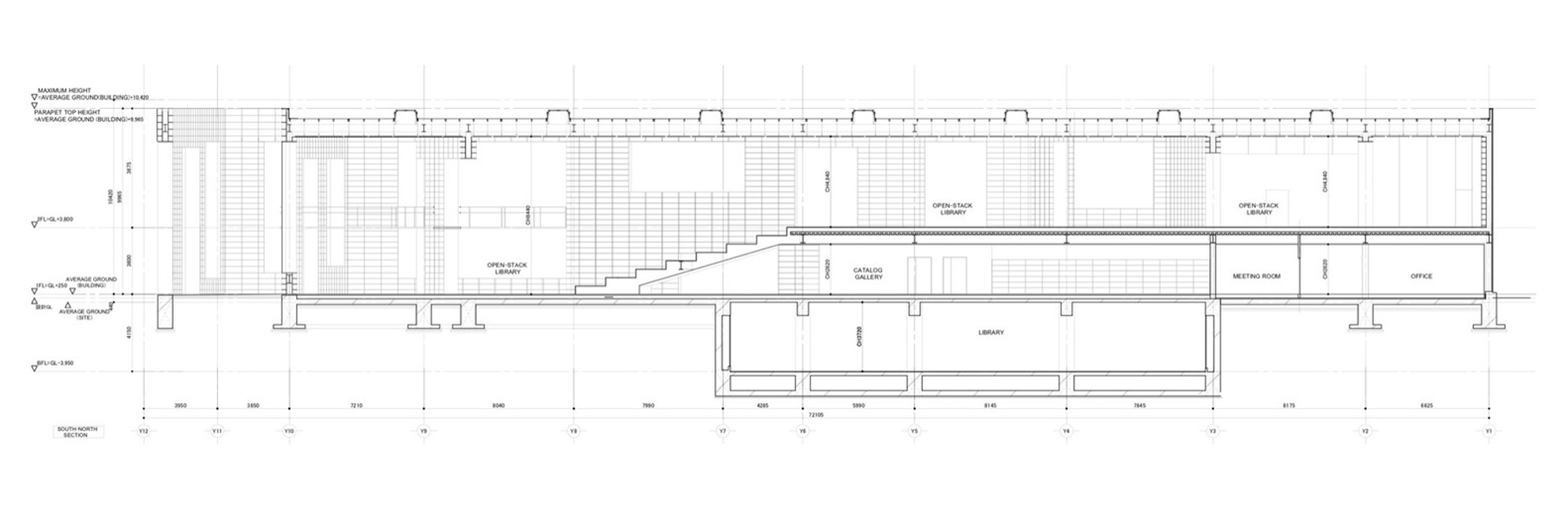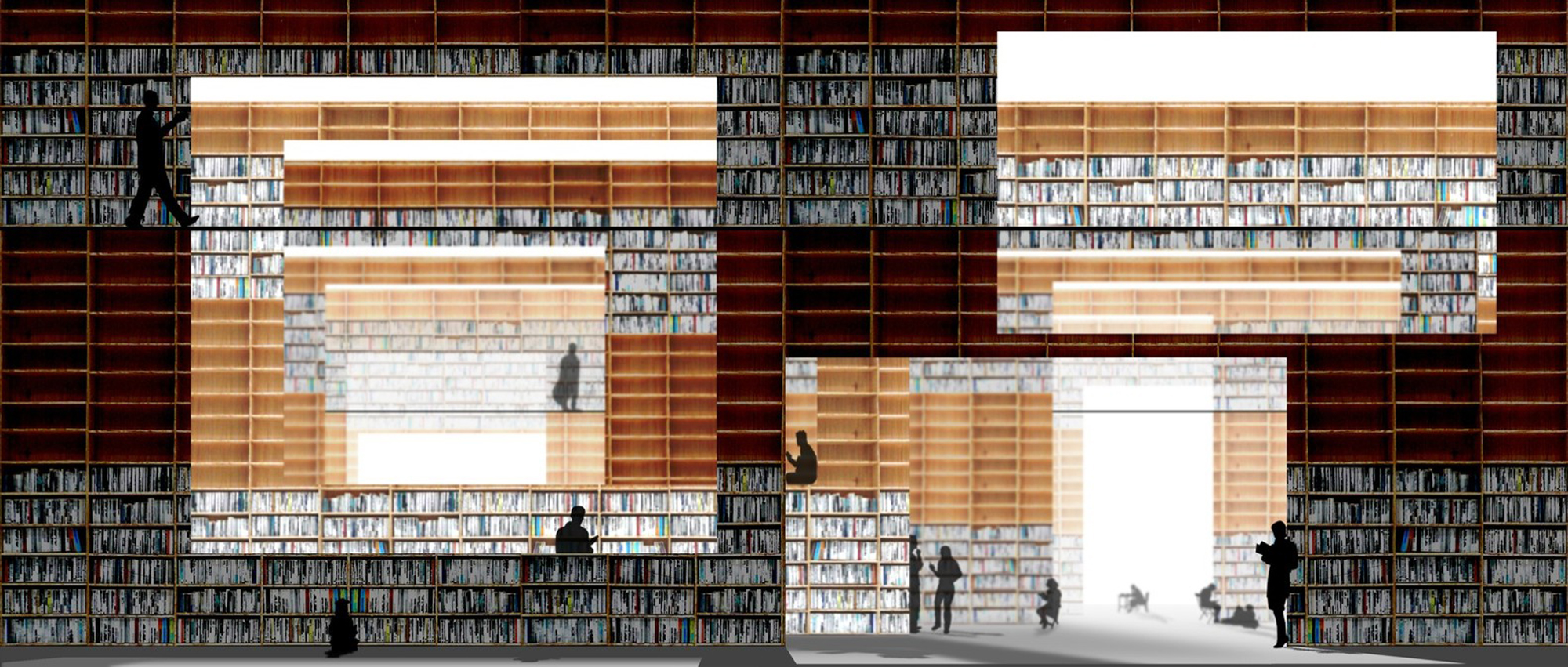 Acting as a huge ark, a total of 200,000 units, of which 100,000 will be in an open-archive, while the other half, within a closed-archive, rests within this double-storey library of 6,500㎡ in floor area. It is a library made from bookshelves.