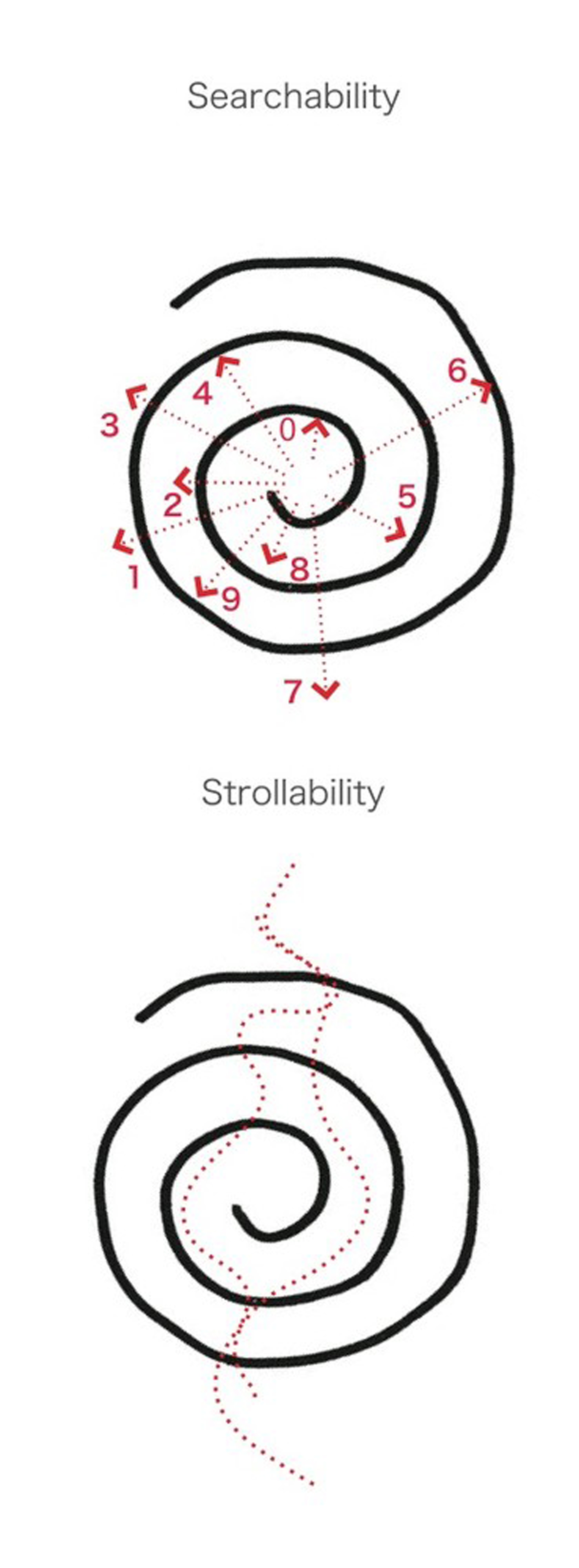 When I thought of the elements which compose an ultimate library, I imagined books, bookshelves, light and the atmosphere. I imagined a place encircled by a single bookshelf in the form of a spiral.