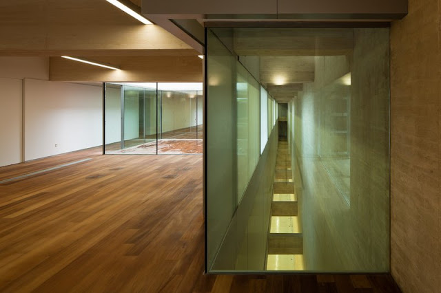El gesto directo y radical que define nuestra propuesta lleva implícito paradójicamente su práctica disolución en el paisaje del monte Urgull. Nos limitaremos a construir un nuevo muro vegetal, profundo y ligero, que se apoya en la diferencia topográfica existente, y que oculta en su interior dos pabellones que albergan el programa requerido. Esta decisión favorece la puesta en valor tanto de las construcciones históricas como de la nueva arquitectura que define la ampliación. El pabellón de acogida, en la plaza Zuloaga, constituirá la nueva entrada al museo, desde la que será posible acceder bien al antiguo edificio -que incorporará las colecciones permanentes- bien al nuevo pabellón para exposiciones temporales. El vestíbulo principal constituirá asímismo el vínculo natural con las nuevas áreas de guardarropa, tienda, salón de actos, mediateca, sala didáctica y cafetería, que completan los espacios necesarios en un museo de estas características.