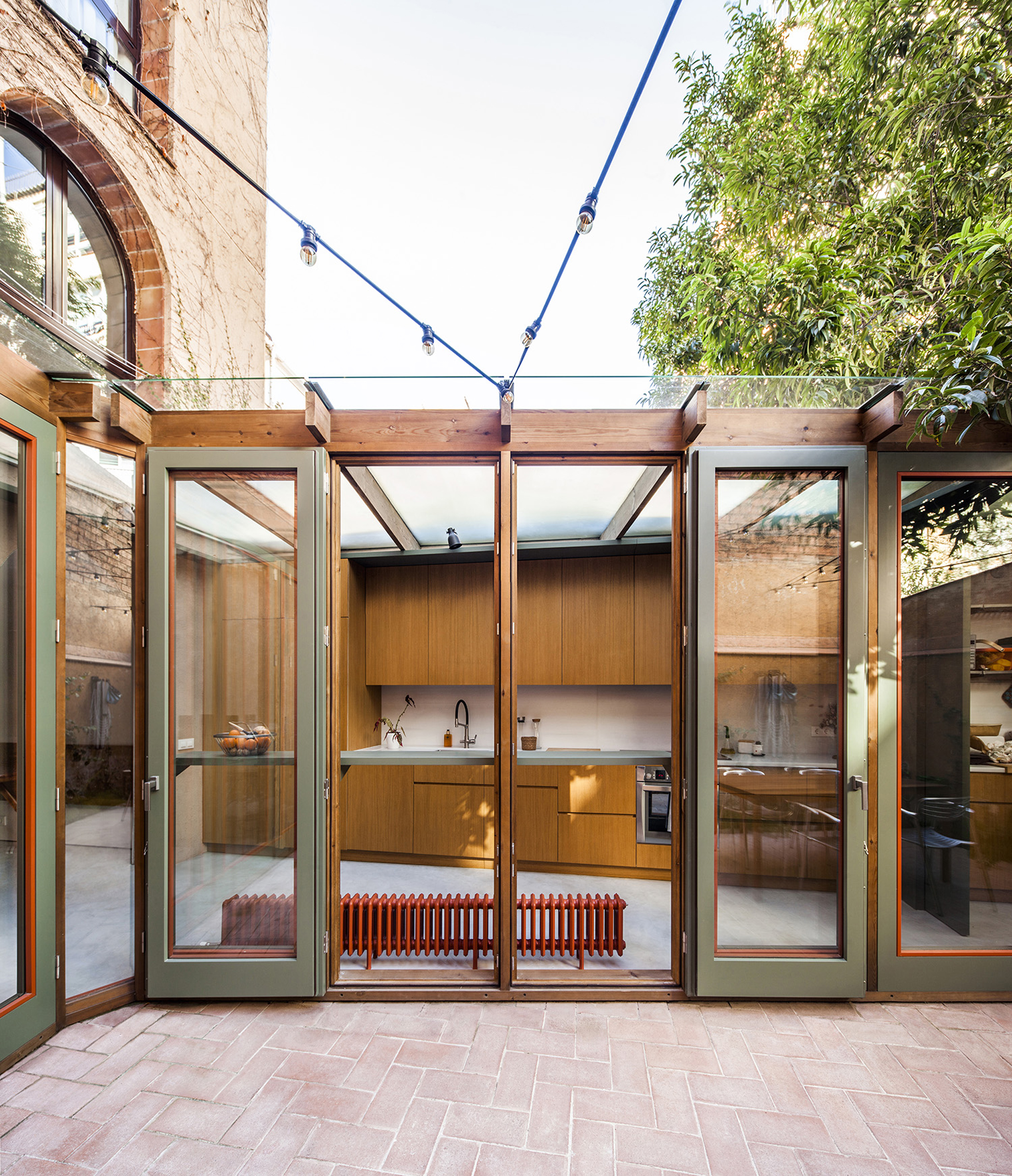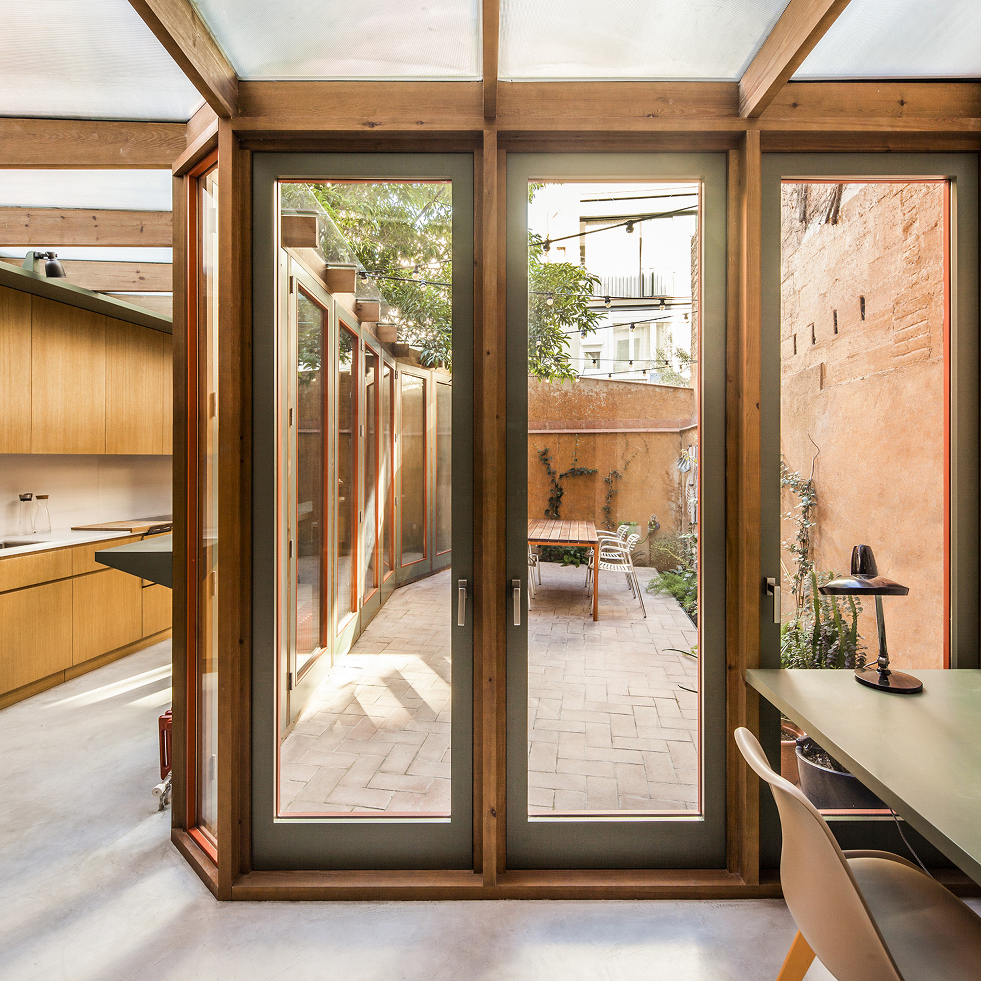 Enjoying being outdoors. Cooking, eating, and sharing the afternoon with friends under the leaves of a dense ficus tree in an open-air room. Turning the existing garden into an other room of the house creates an oasis within the neighborhood where much of the daily activity happens while enjoying the pleasant Mediterranean climate. The project consists of the renovation and expansion of a two-story house with a small garden located on the ground floor of a small block between party walls.