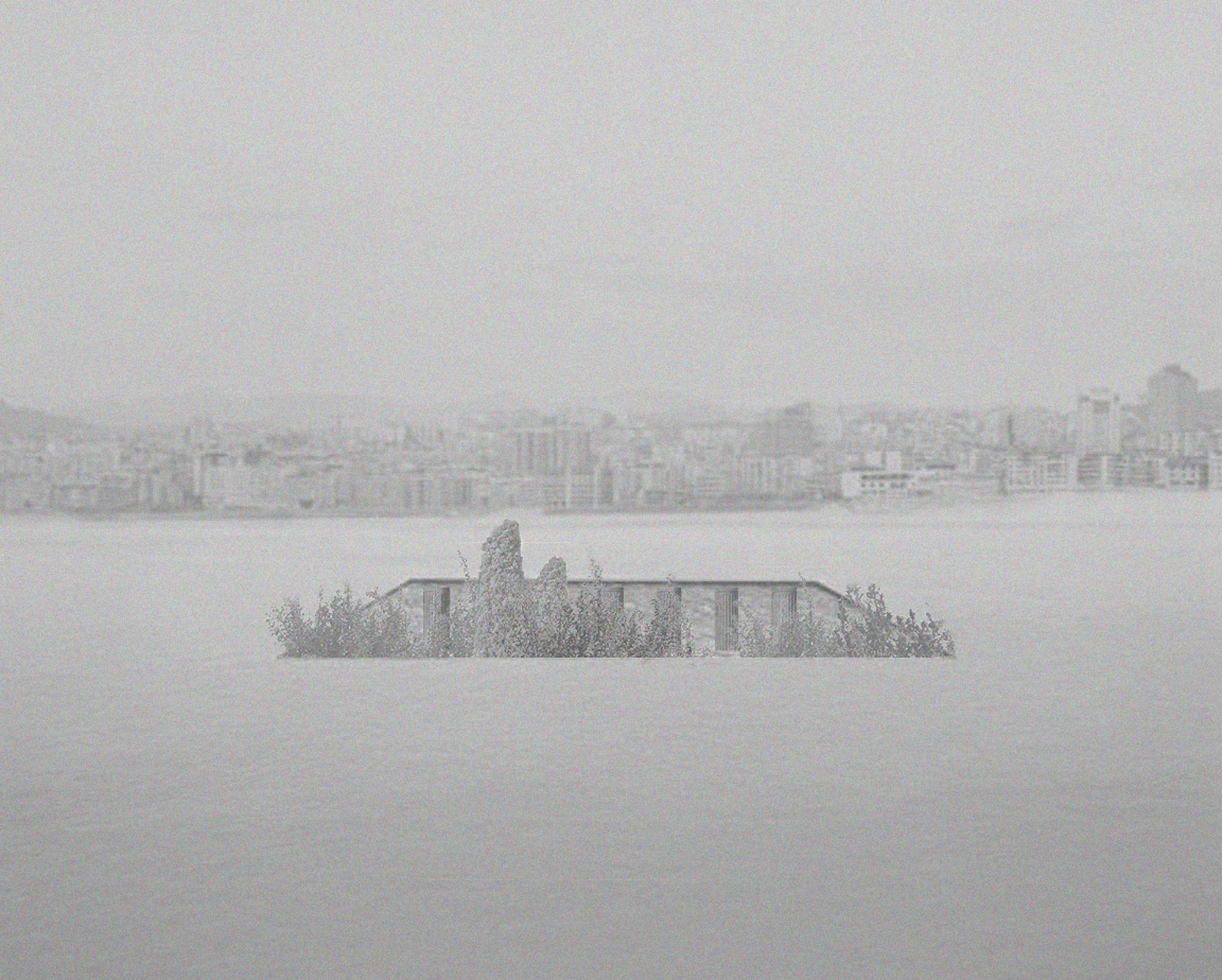 The collage made in the very beginning portraits my intuitive response to the site. It shows the atmosphere of tranquility and the mystery of the unrevealed. The contrast between the dense urban landscape in the background and the foreground presents the detachment of the site and the context. I would like to extract this sense of atmosphere between presence and absence from the place.