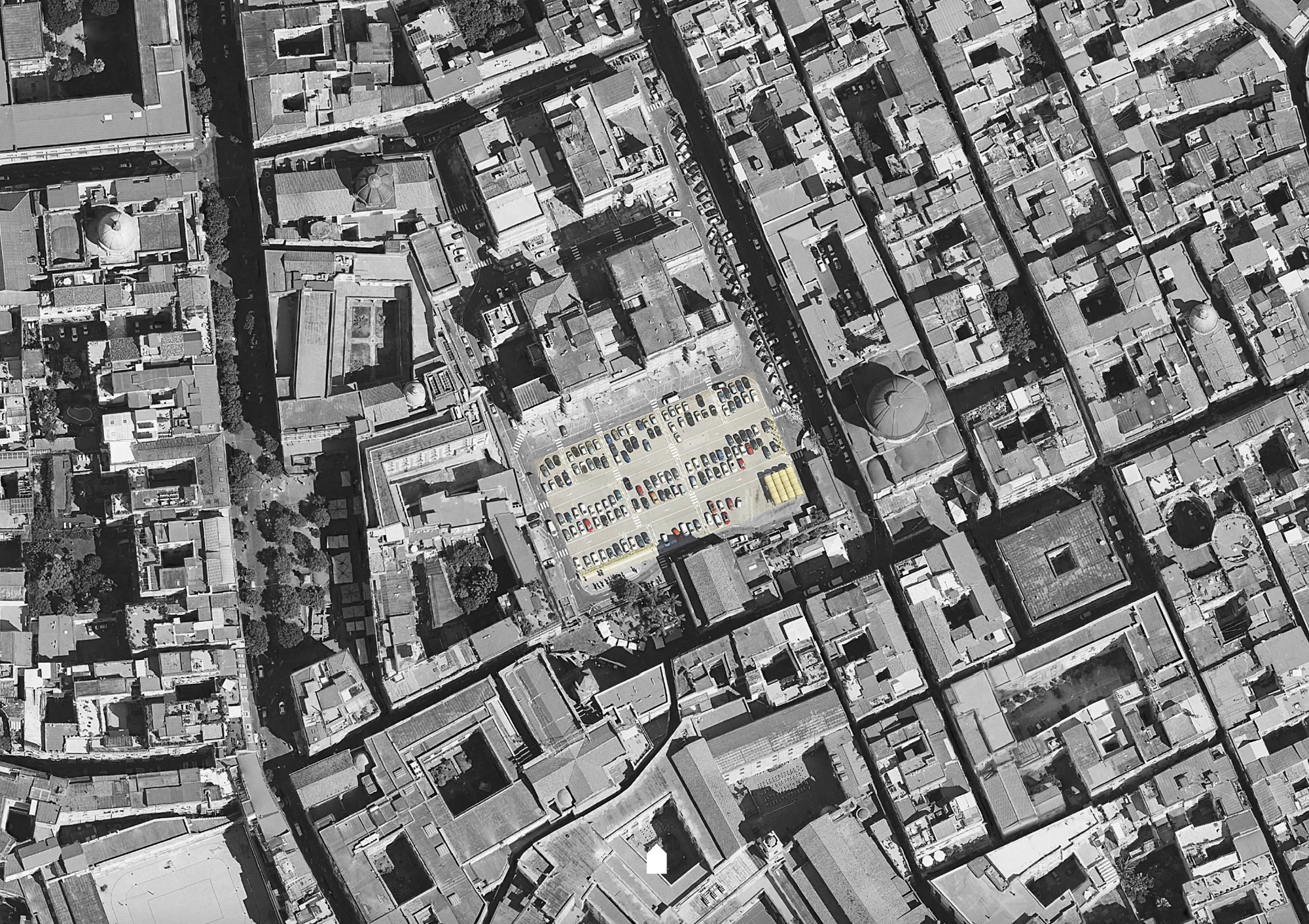 The site sits on the remains of the Greek walls. Recently, it has served as a parking lot for the adjacent hospital. The crowds do not flow through via site, but pass by a very narrow path in front of the exquisite but non-functional church. It is a forgotten open space surrounded by the backside of monuments with an unexplored history. How to take the existing value and atmosphere of the site? The given topic is “corridor”. A corridor is usually an accessory space which does not appear independently and without separate functions. I broadly categorize three spatial features for the corridor: tends to make people pass by; could be portrayed as axles from its form; with intentions or destinations. My idea is to make