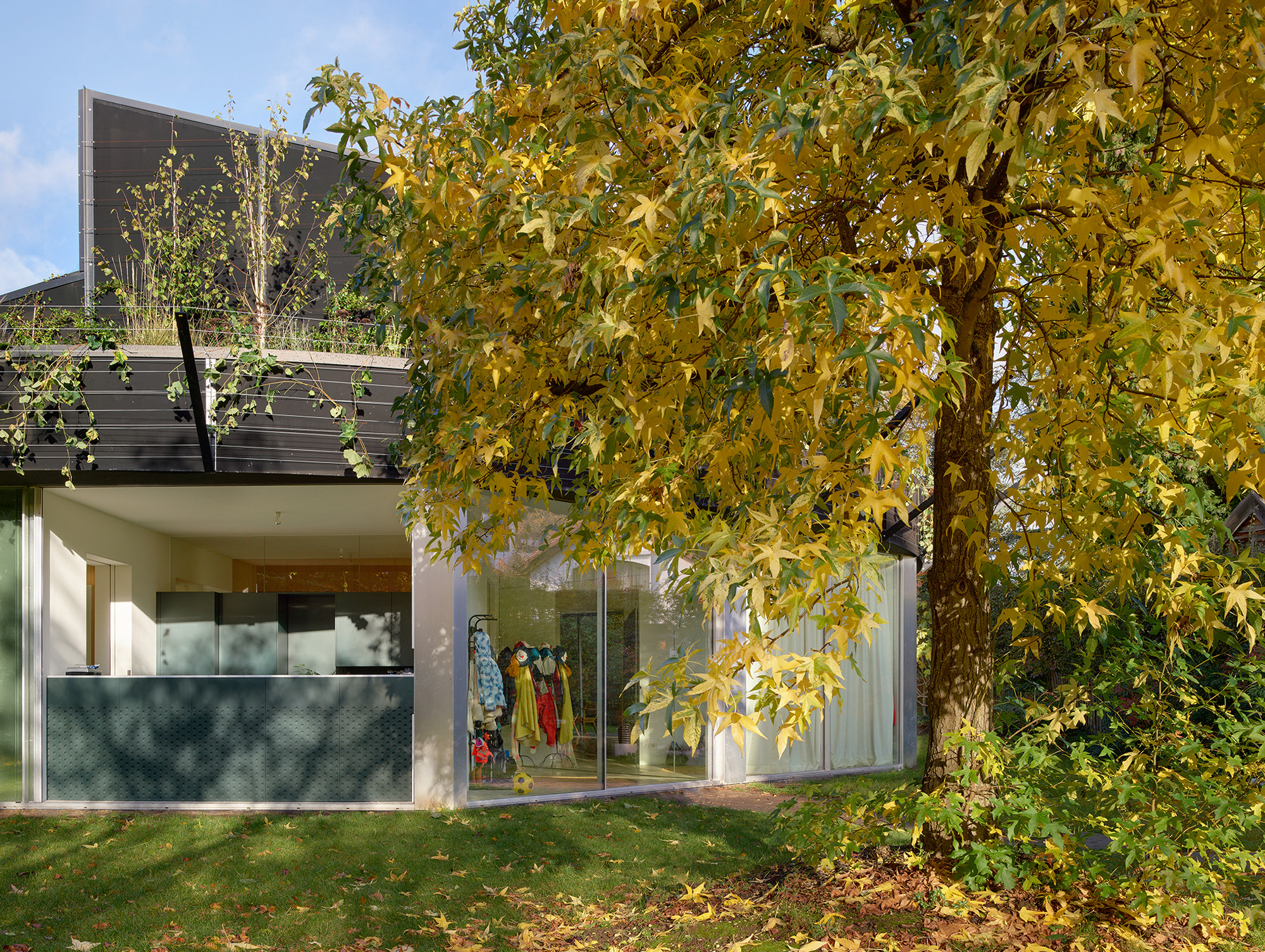 The rooms themselves are simple yet designed with maximal spatial effect; some are high and wide, others low and narrow, the room with a swimming pool is hot and humid. All of them seek a direct relationship with the outside environment. Within the different pockets of the plan, a set of breakout rooms are organised. On top of the house a second floor is ‘hidden’ in a hat-like roof. The roof is partly accessible and entirely planted, with radial metal structure extending to support the trailing plants. Ultimately all these spaces are conceived as a surplus to a generous home where dimensions defined by the exceptional (the wheelchair) are completely normalised in an attempt to make a perfectly natural space for living.