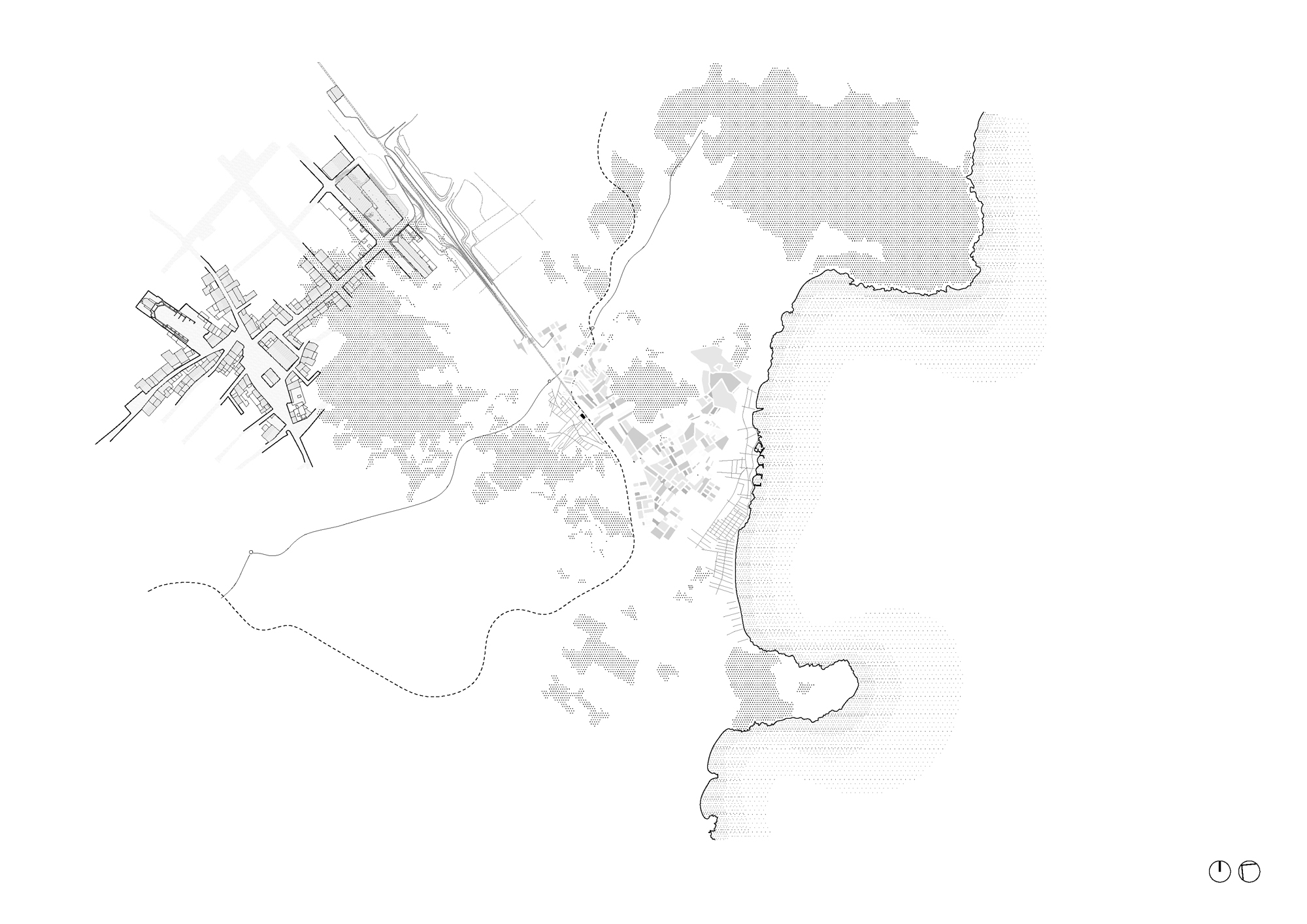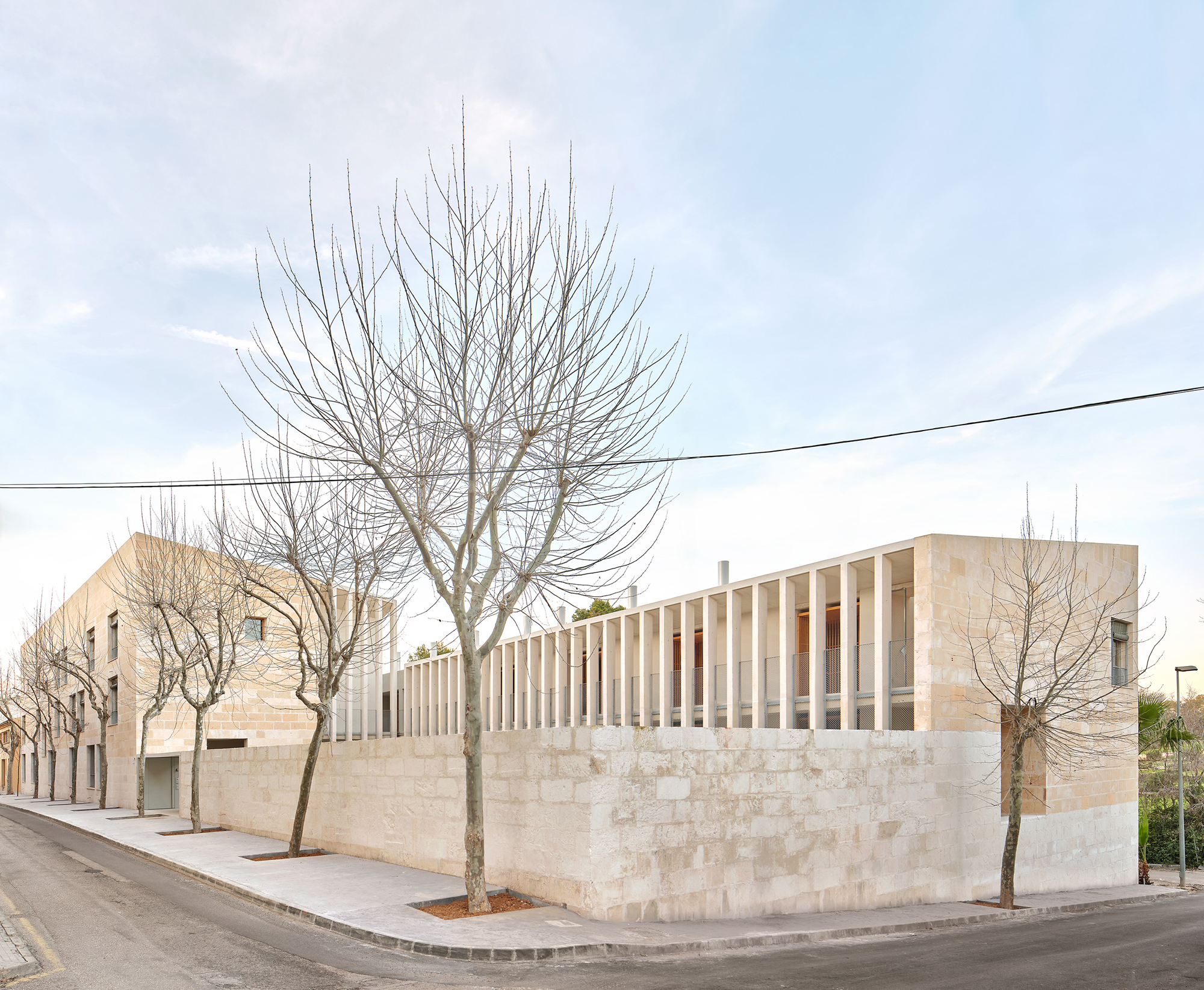 The building is articulated to align itself with two streets. In this way, the façade front is reduced so that it acquires a smaller grain typical of the fabric of the old town. This operation generates two diagonal voids in the opposite corners of the plot. These are two courtyards limited by a perimeter wall that act as intermediate spaces of different character. The sloping roofs, the façades of openings and the sea stone walls that extend the base of the building, give it a character capable of integrating and dialoguing with the place.