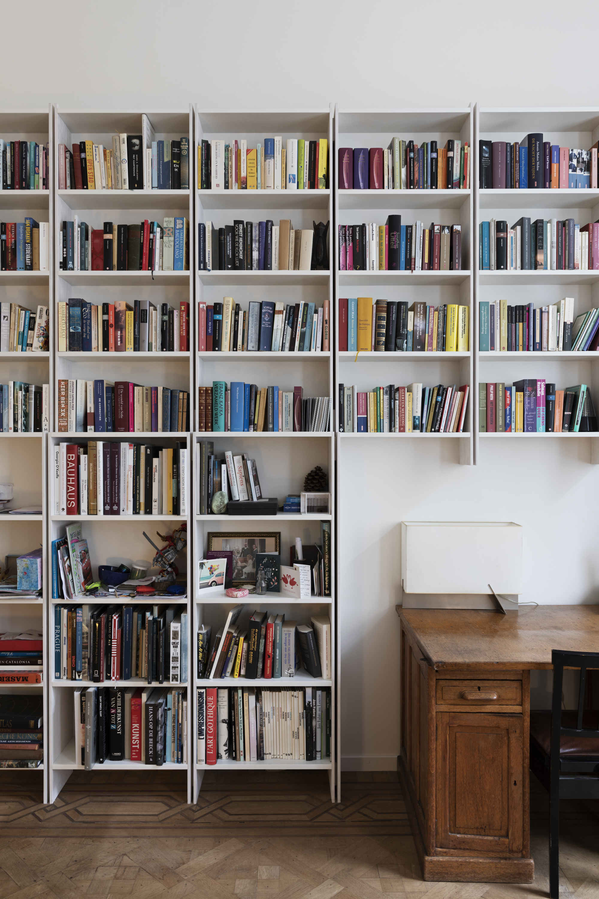 A spacious mansion in the Antwerp belle epoque district Zurenborg was renovated in 2 phases. Initially, the attic was transformed into children’s bedrooms and in the second phase the rear extension was replaced. Between these two phases, a gigantic bookcase was designed and built.