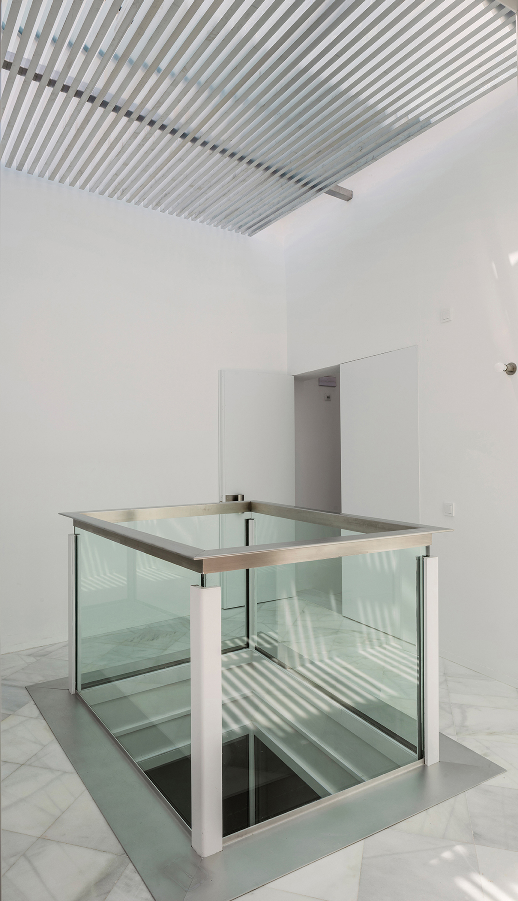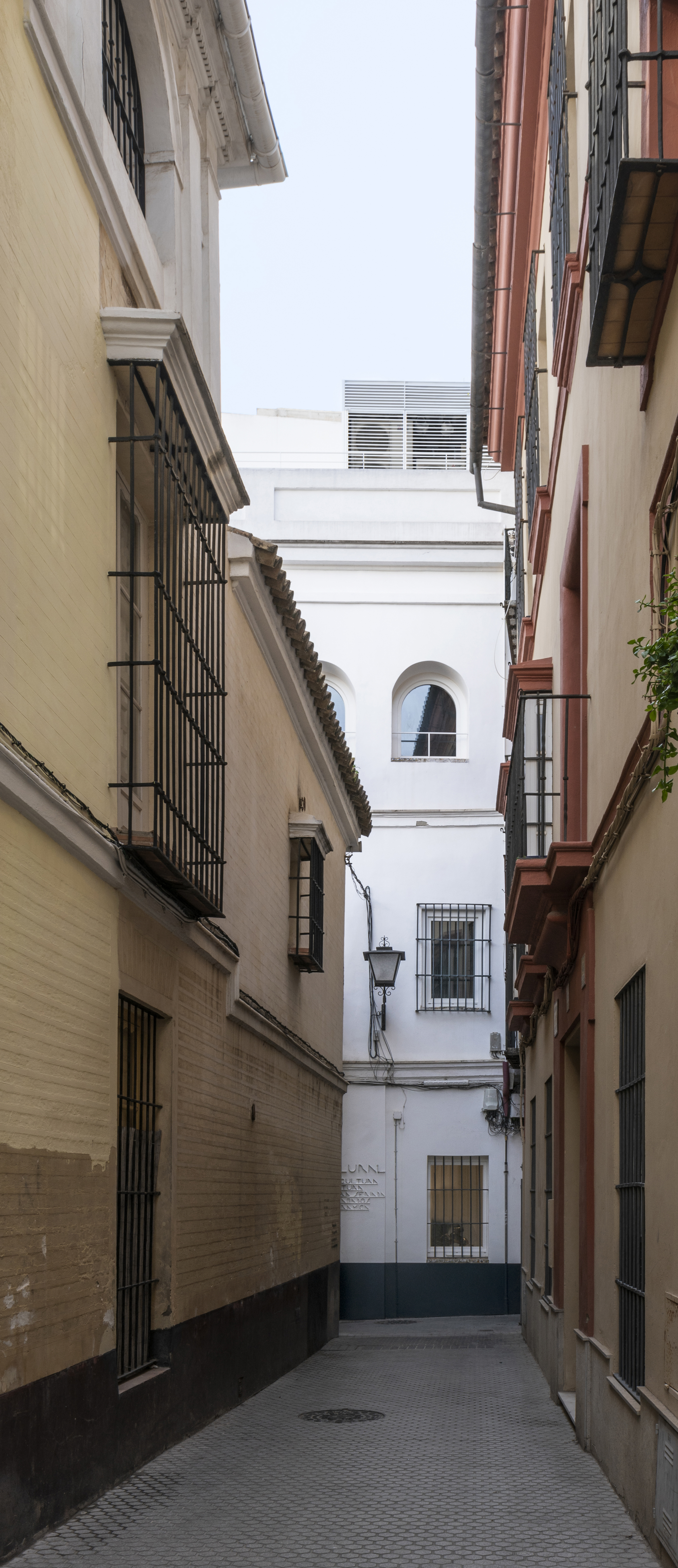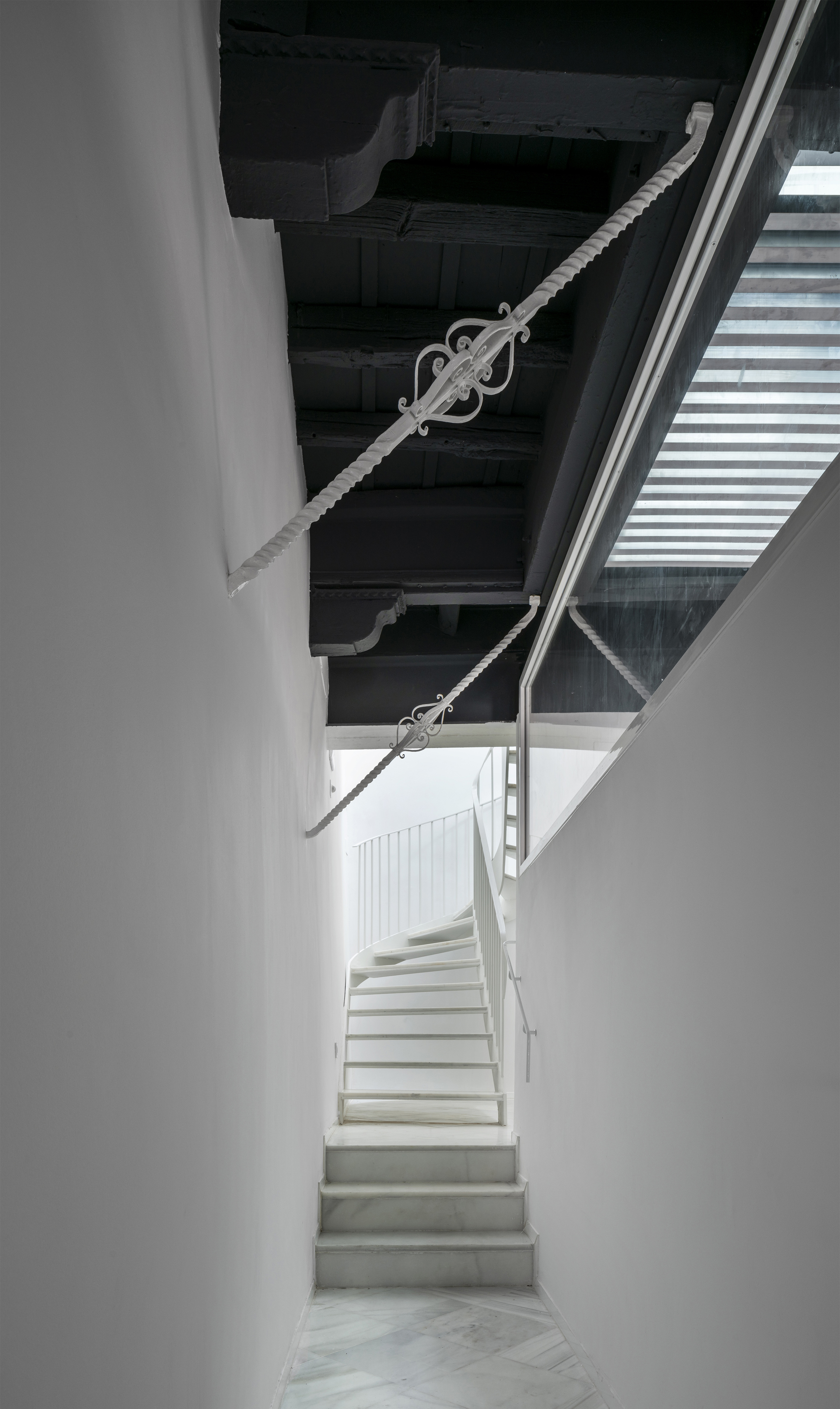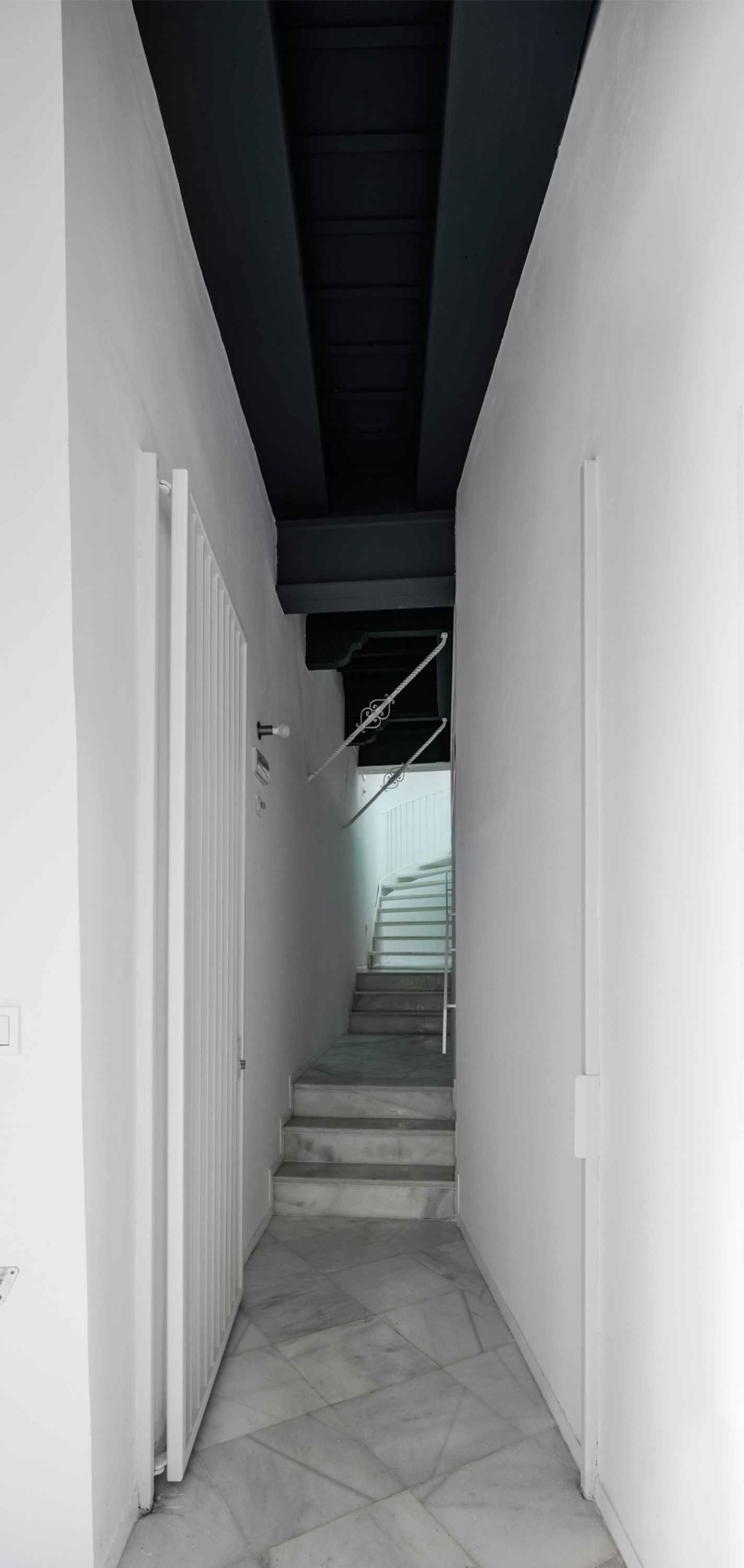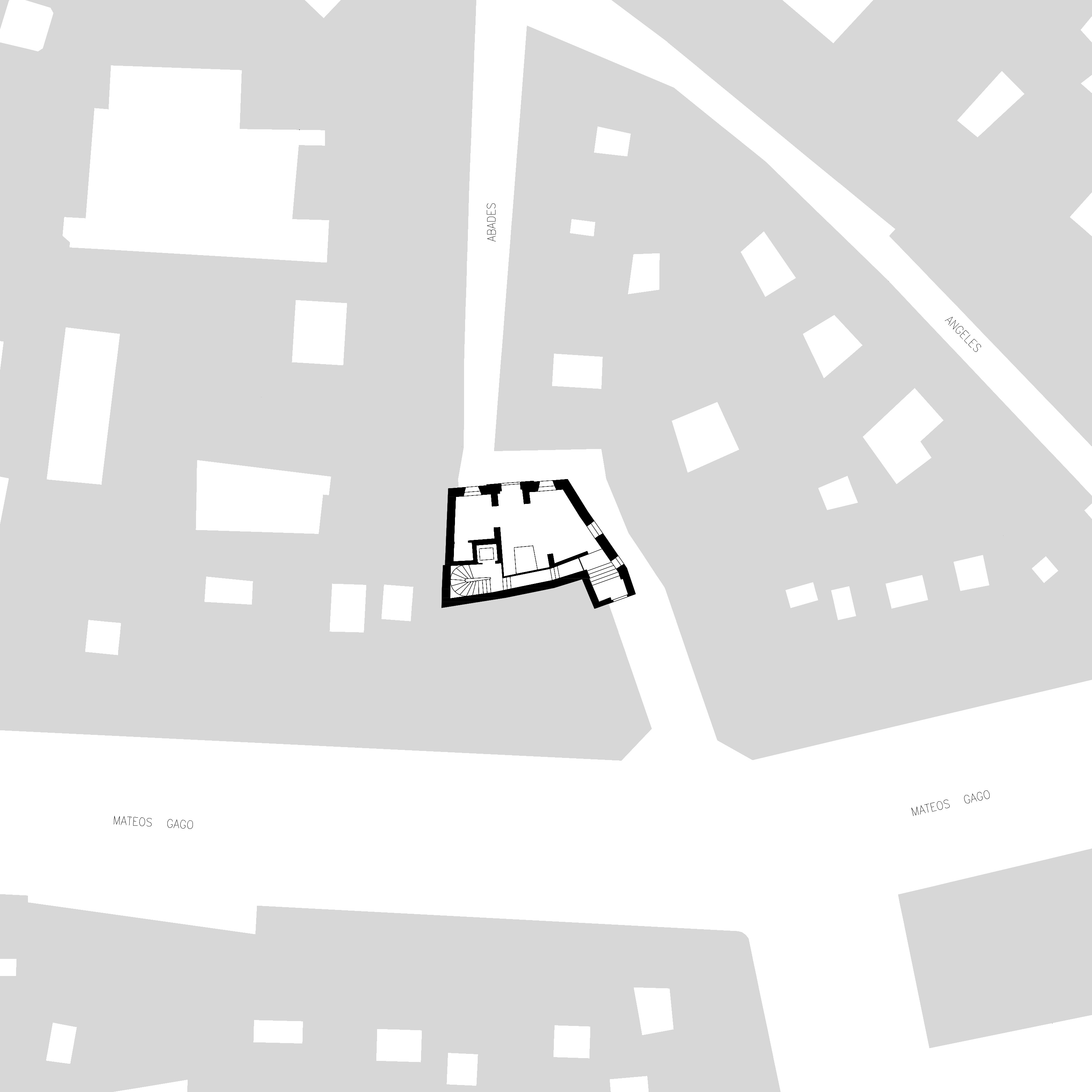The house is located right on the corner of Abades Street in the Santa Cruz district, the former Jewish quarter of Seville. It is an 18th century house with two floors, to which a second floor was added in the first half of the last century. Its unique location on the street allows it to have two large façades (North and East) and a third (South) smaller one, to which the house will open for the first time. The proposal seeks to transform this single-family house, organized around a tiny central courtyard, into two apartments and the Plural art gallery. The project should integrate these uses, achieving total independence in the operation of both. The art gallery should be developed on the largest possible extension of the ground floor and the apartments should have independent access.