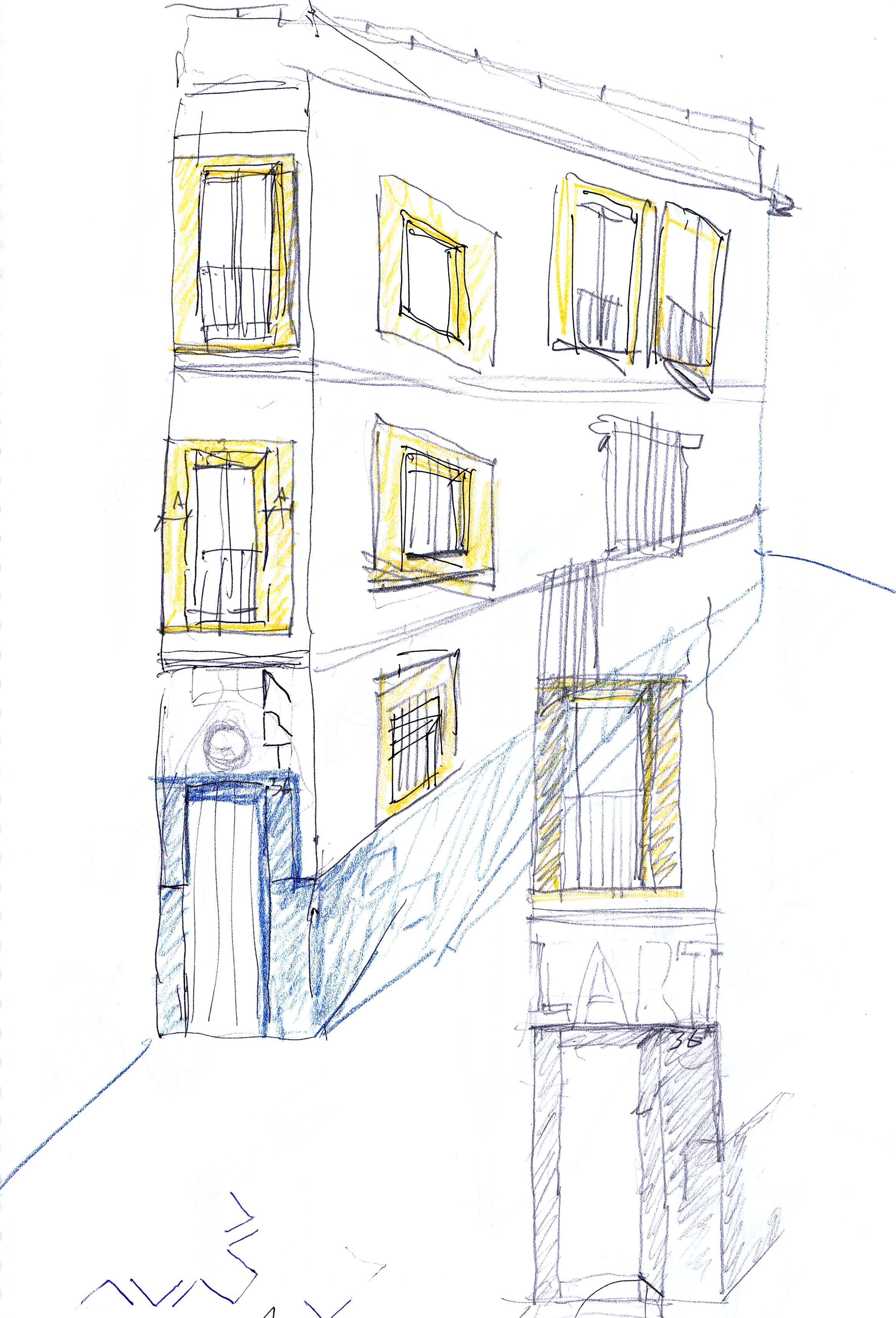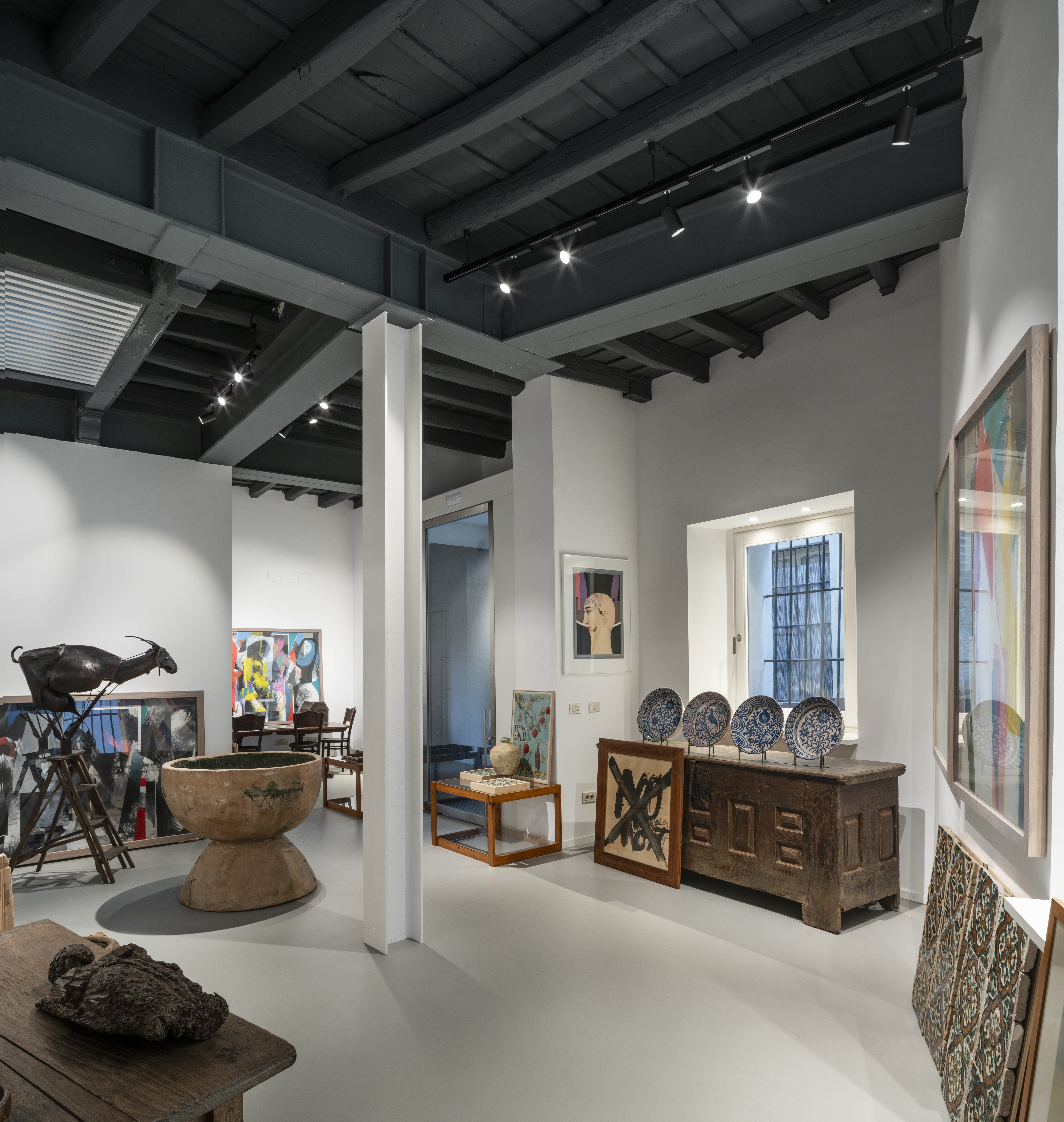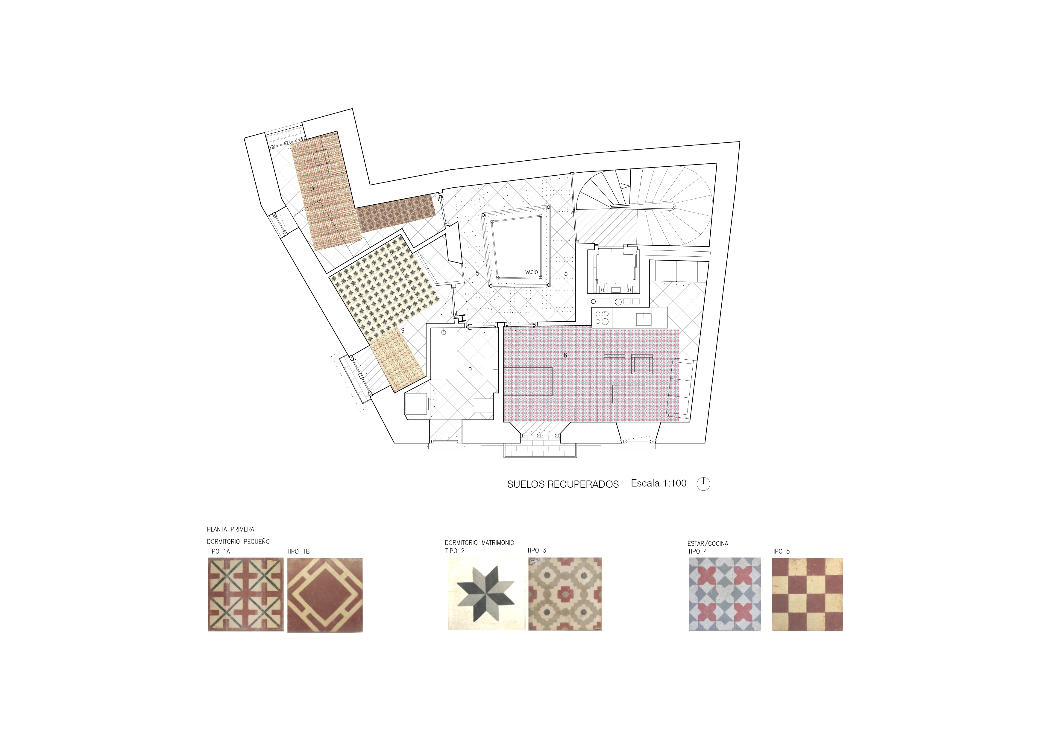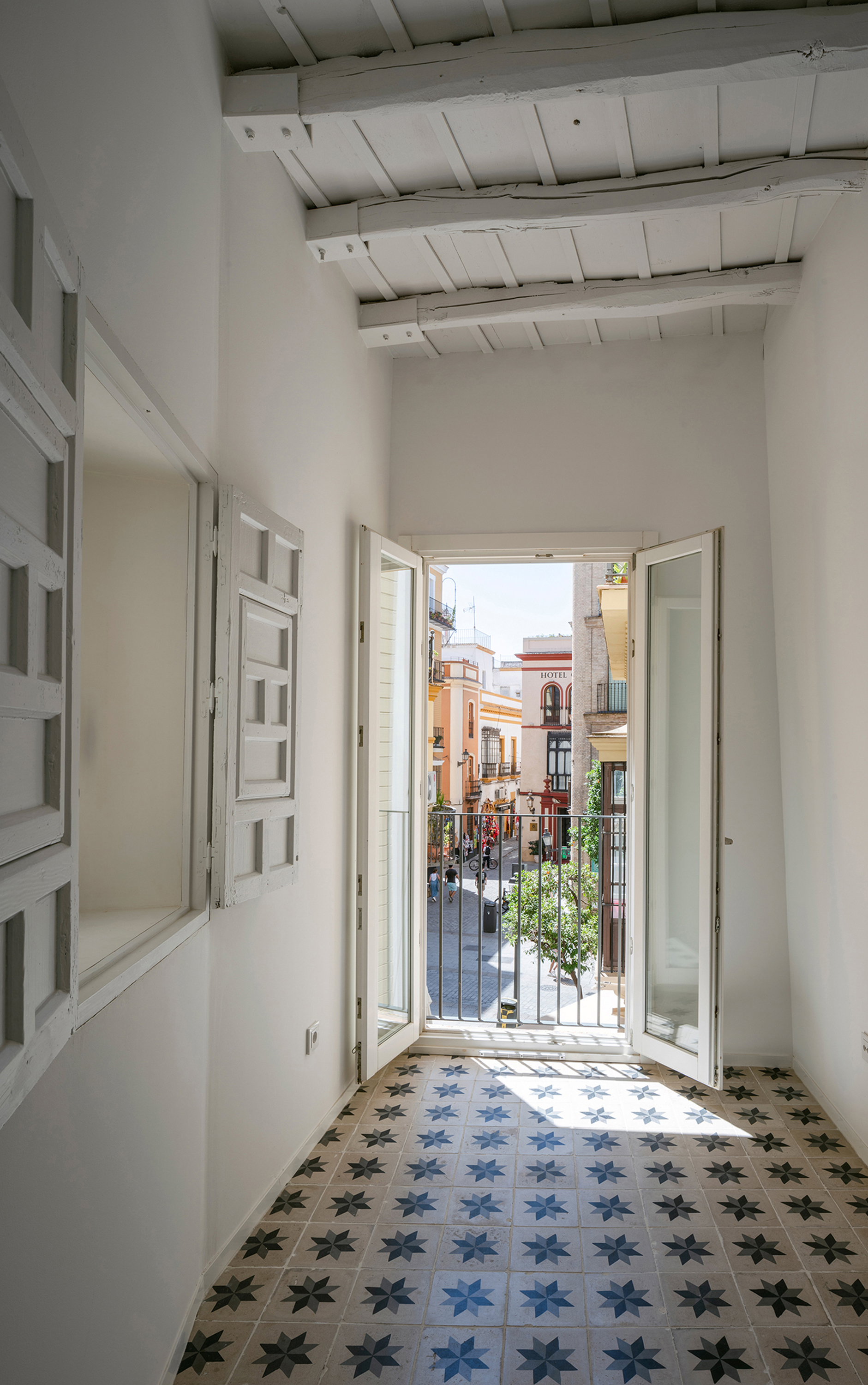 The house is located right on the corner of Abades Street in the Santa Cruz district, the former Jewish quarter of Seville. It is an 18th century house with two floors, to which a second floor was added in the first half of the last century. Its unique location on the street allows it to have two large façades (North and East) and a third (South) smaller one, to which the house will open for the first time. The proposal seeks to transform this single-family house, organized around a tiny central courtyard, into two apartments and the Plural art gallery. The project should integrate these uses, achieving total independence in the operation of both. The art gallery should be developed on the largest possible extension of the ground floor and the apartments should have independent access.