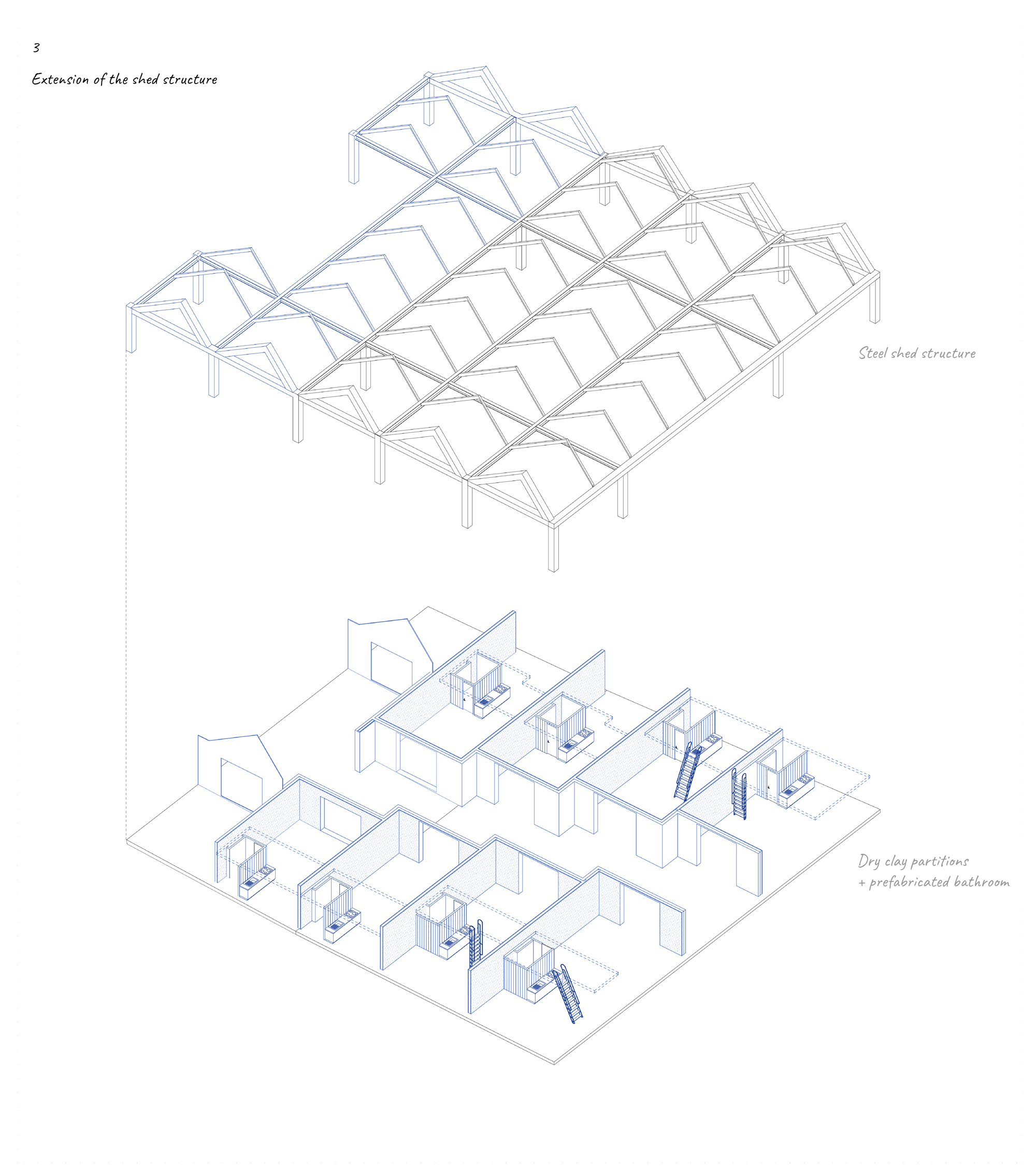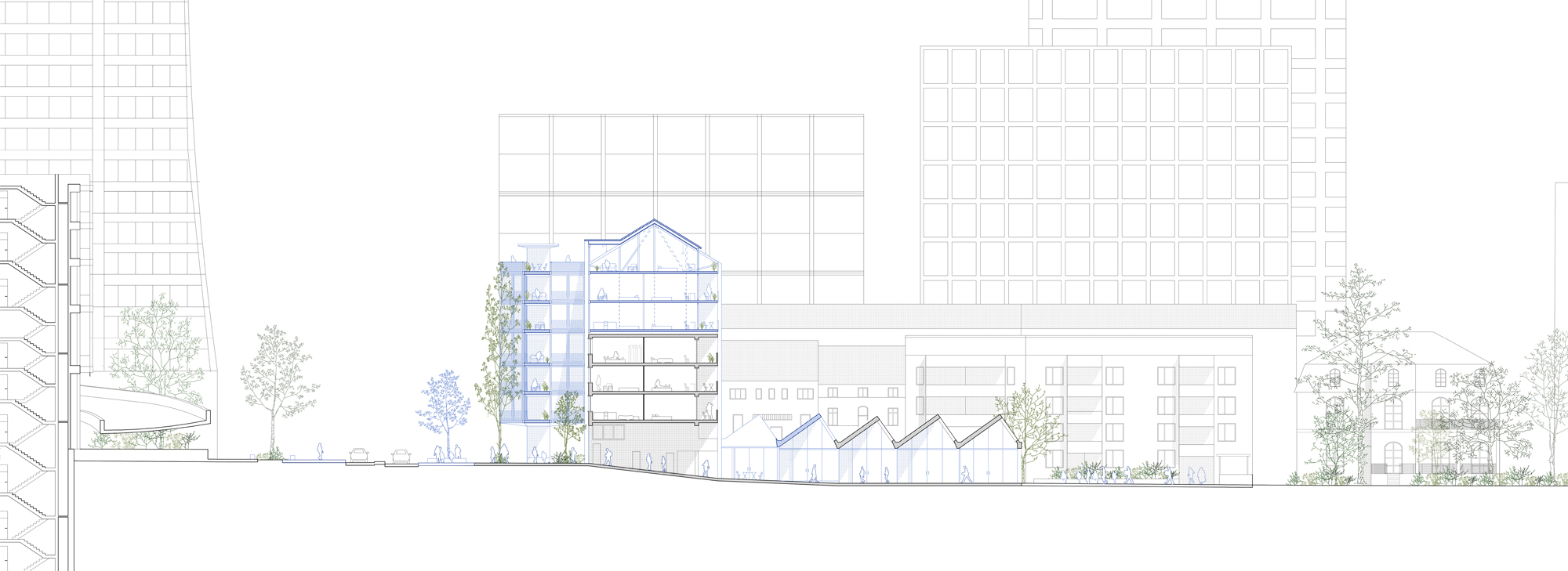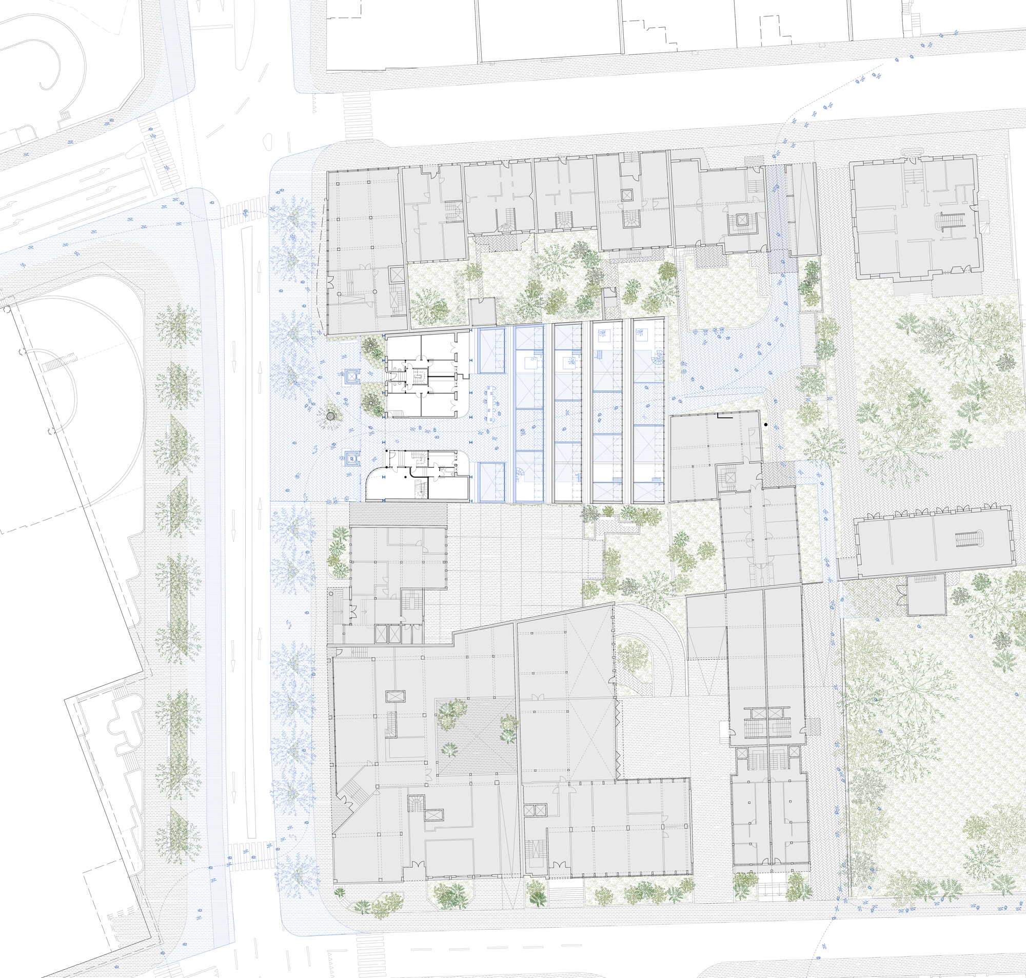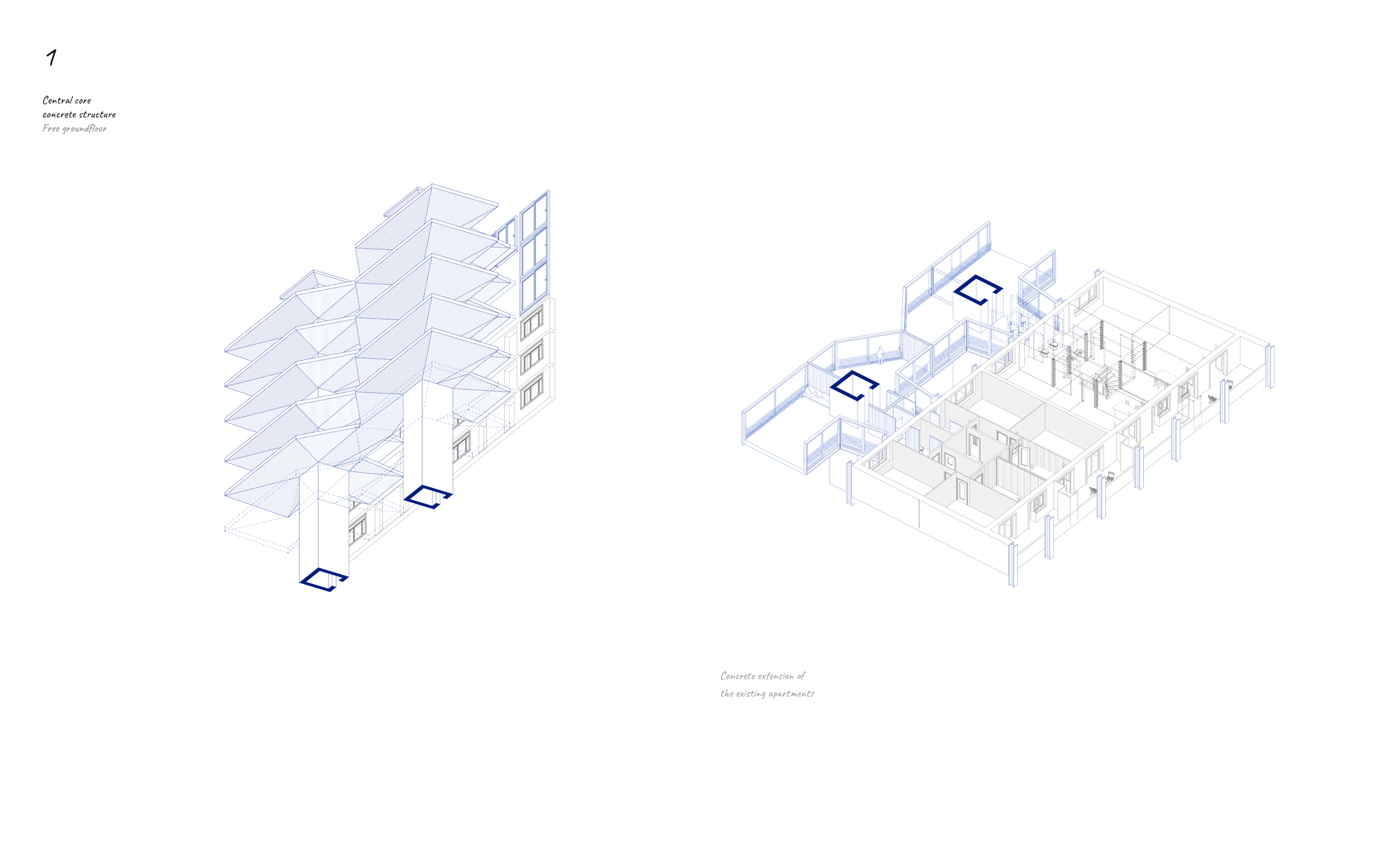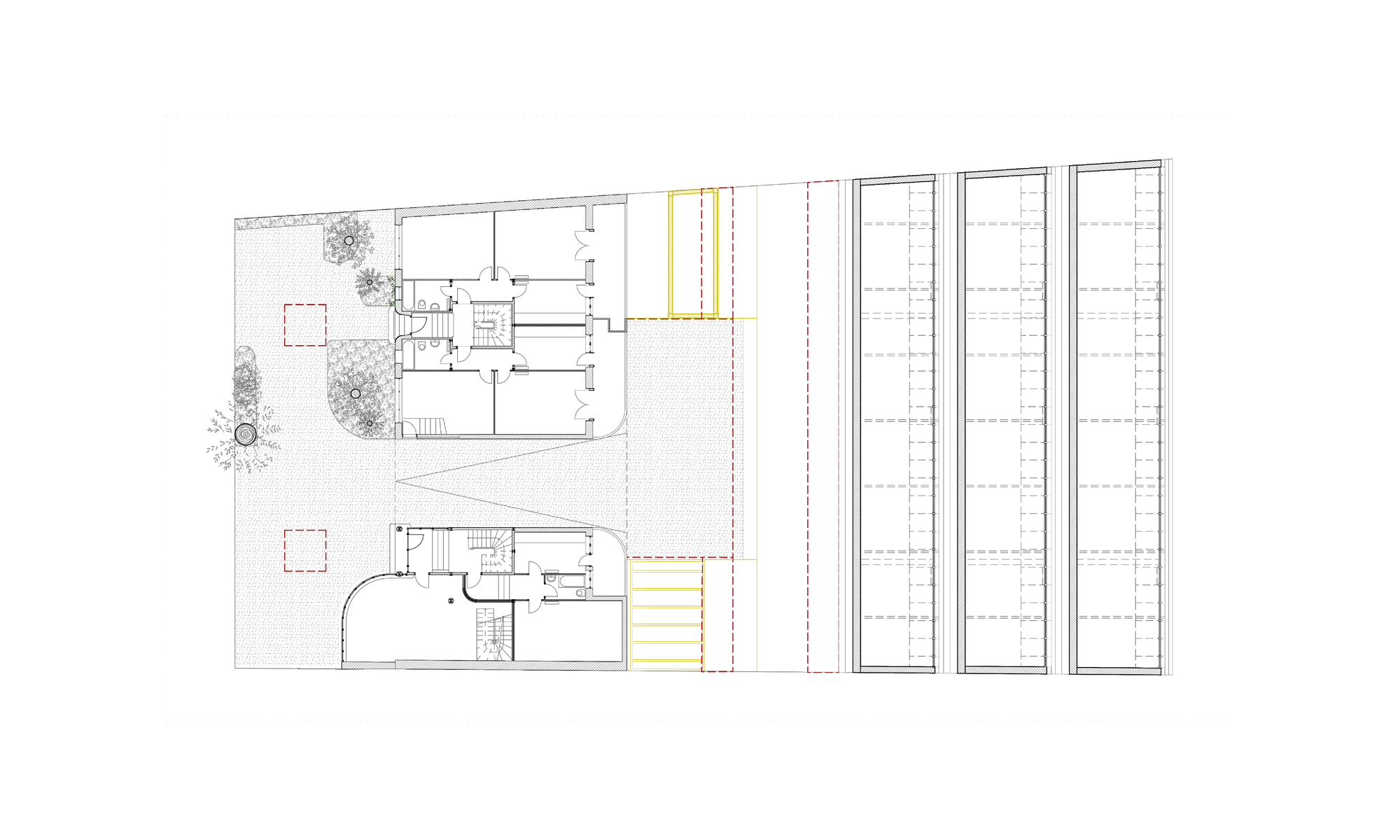 This heritage, the effective use of materials and the fluid combination of living and working are used as a starting point to develop an extension – a valid alternative to the already planned destruction and replacement of this ensemble with two new buildings. The project shows that more and better can be achieved by preserving the existing – a new typology of sharing and cross-fertilization between living and working – and between old and new.