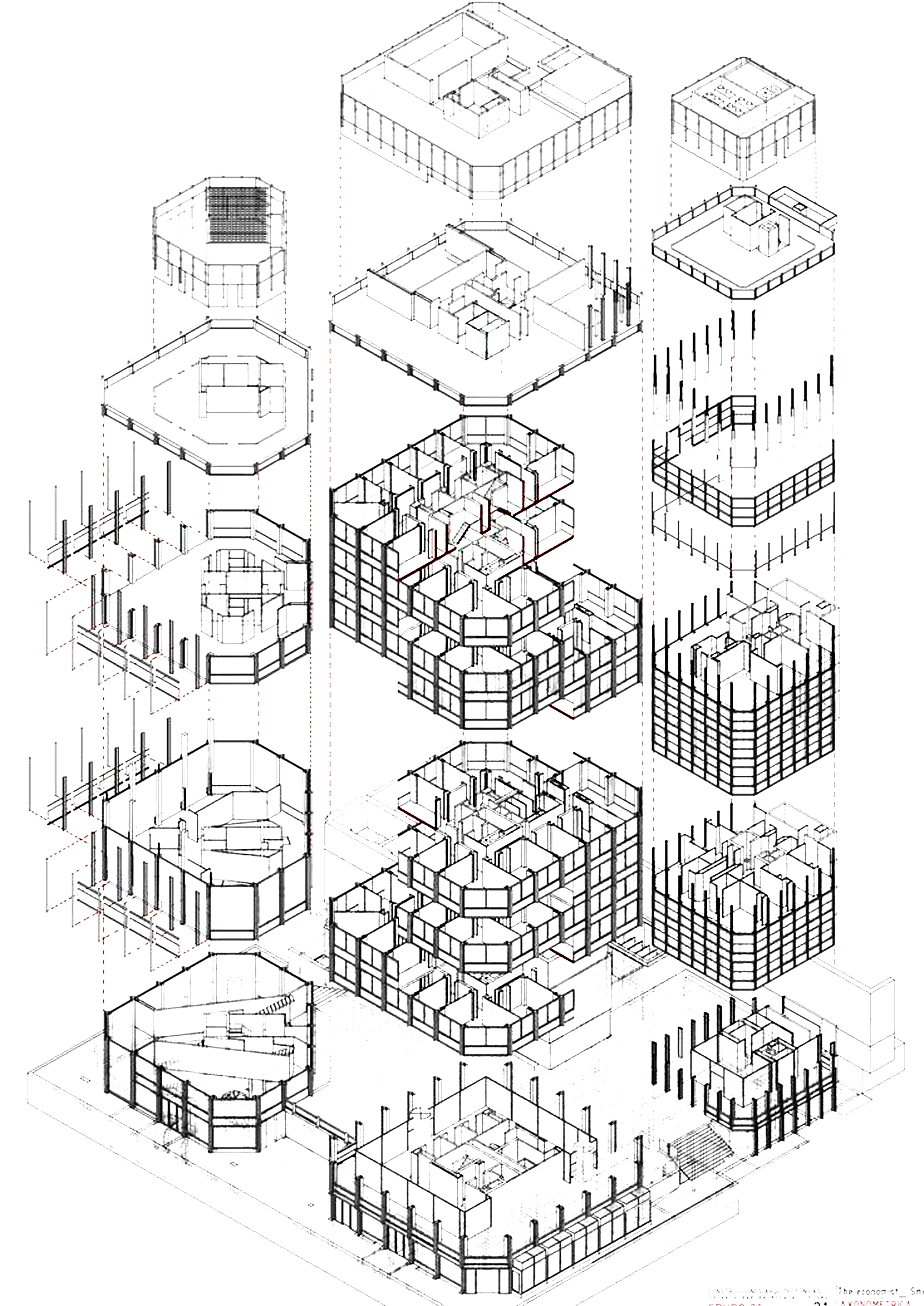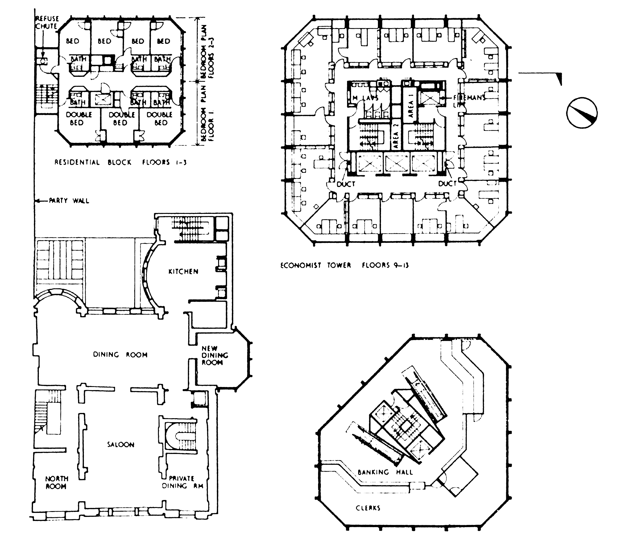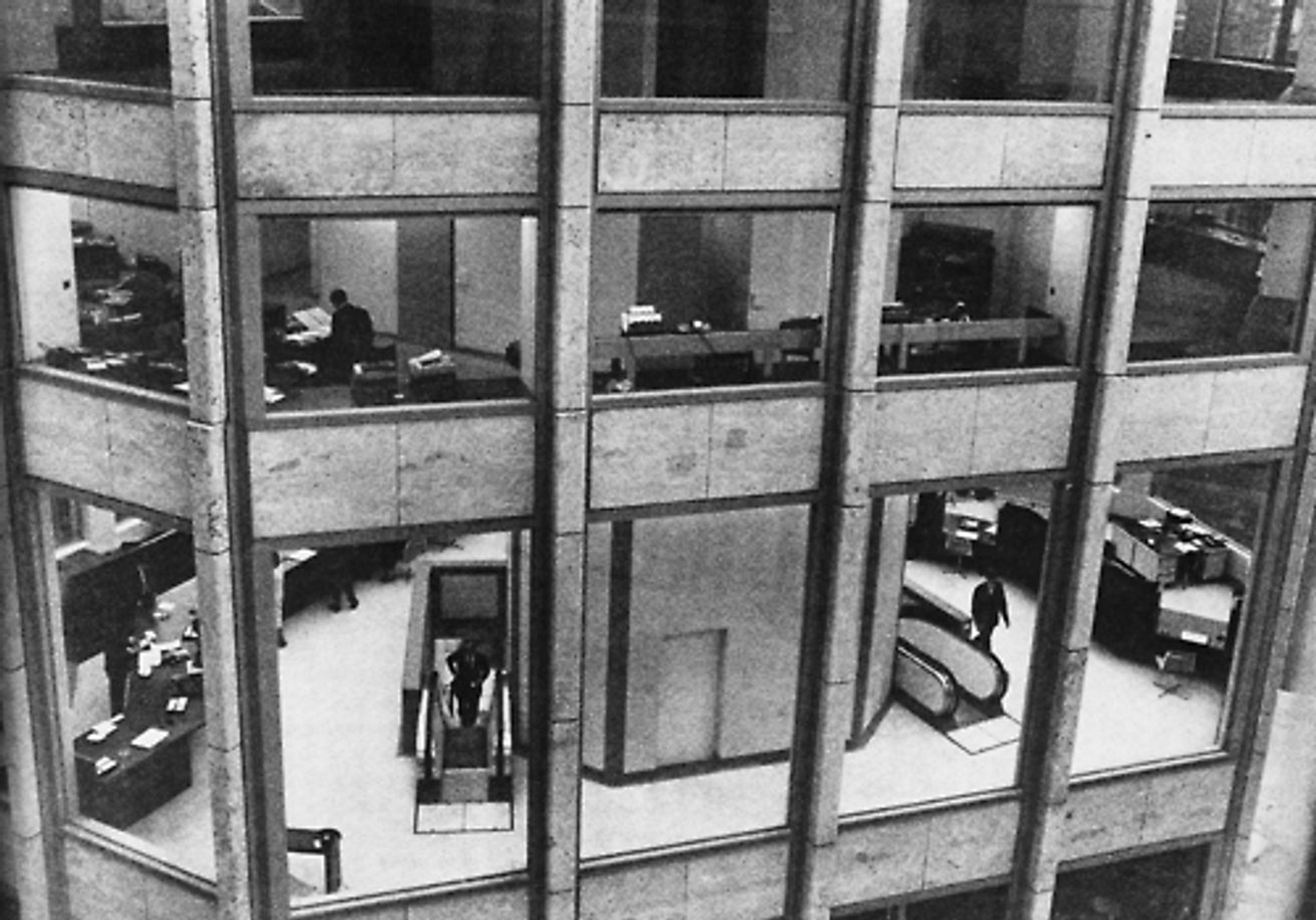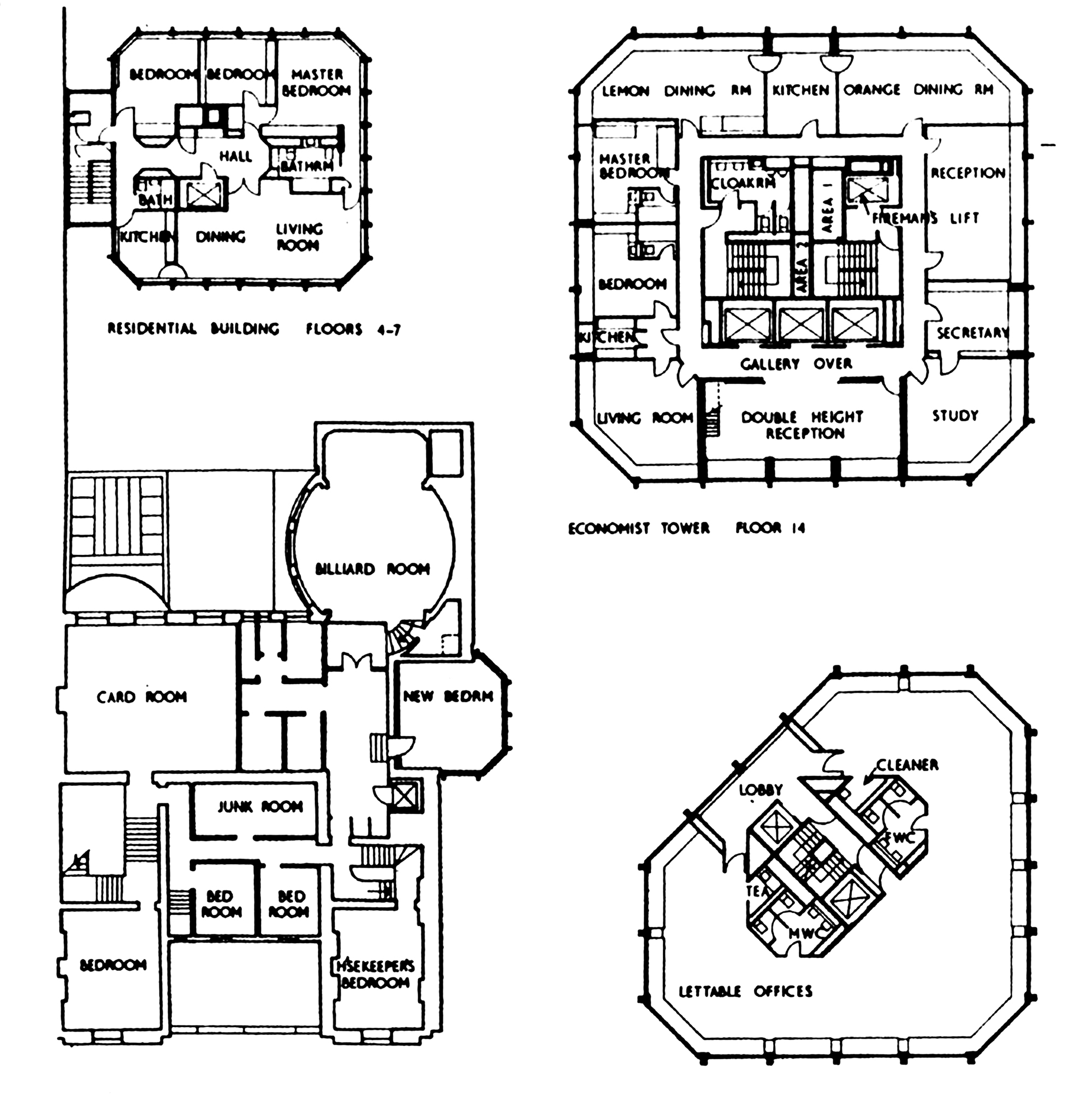In 1959, the Smithsons were commissioned to design a new headquarters for The Economist magazine in Piccadilly. Inspired by the narrow lanes and courts of the old City of London, they created an elegantly spacious pedestrian plaza as a trio of finely detailed towers, each built on a different scale, clad in traditional Portland stone. The office interiors were based on their lengthy research into the working practices of The Economist journalists. At the opening the editor Sir Geoffrey Crowther said that the staff had felt “trepidation” on first meeting the Smithsons but took “leave of them now with awe and affection”.