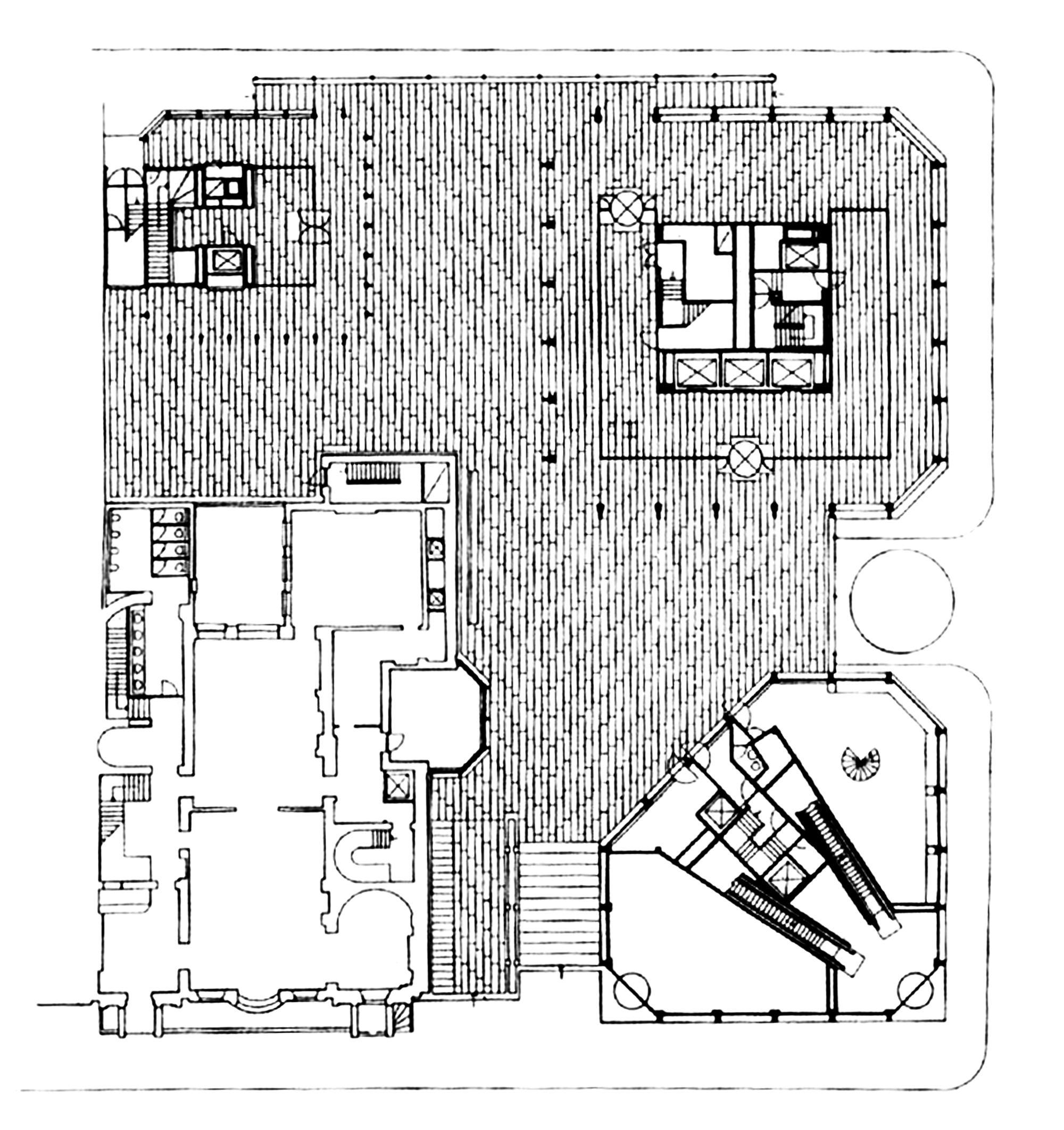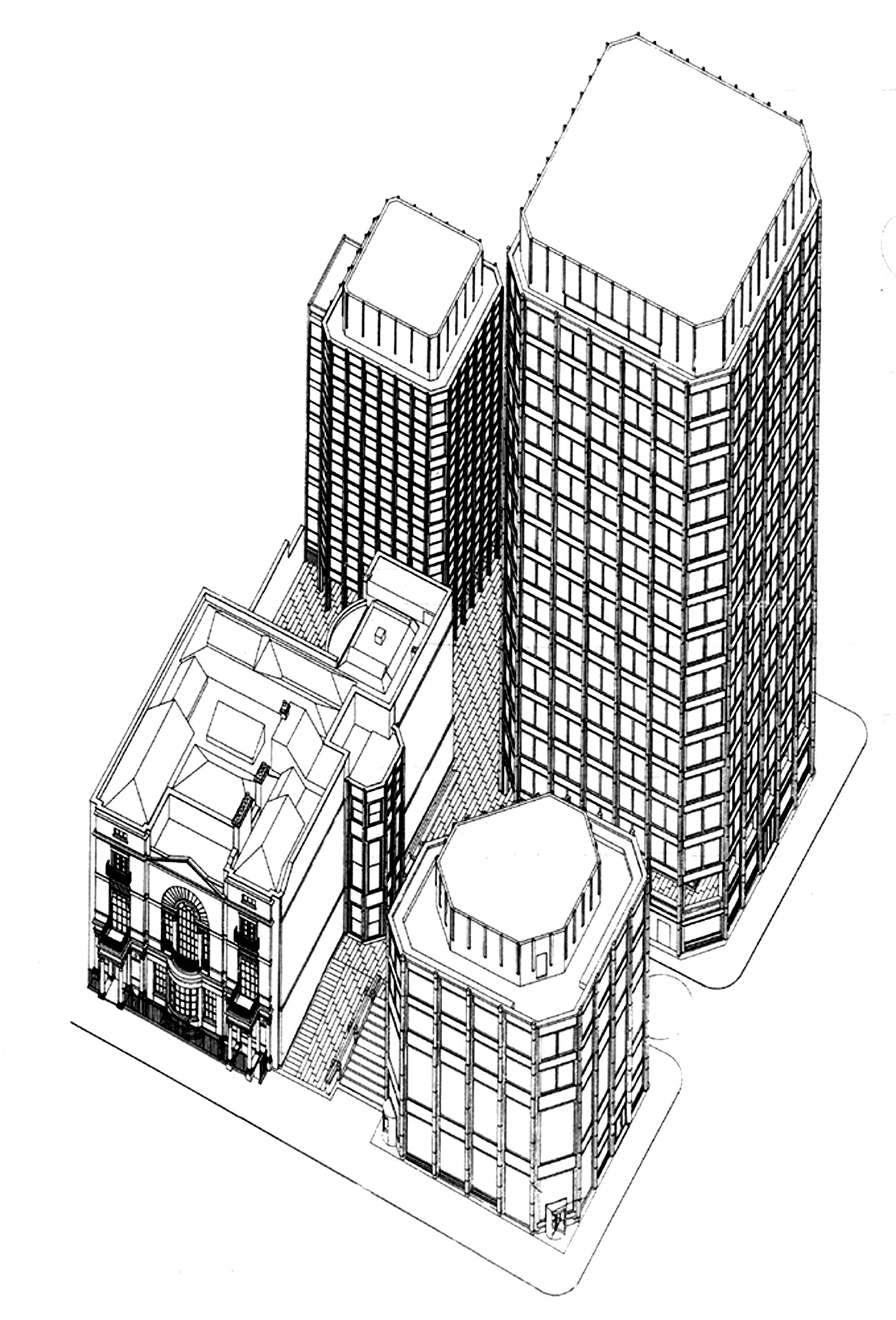 SOM (Skidmore, Owings & Merrill) refurbished the complex in 1989 Their work encompassed alterations to the tower and plaza. The technical and environmental building control system were updated and the lobby area expanded to ease internal circulation.