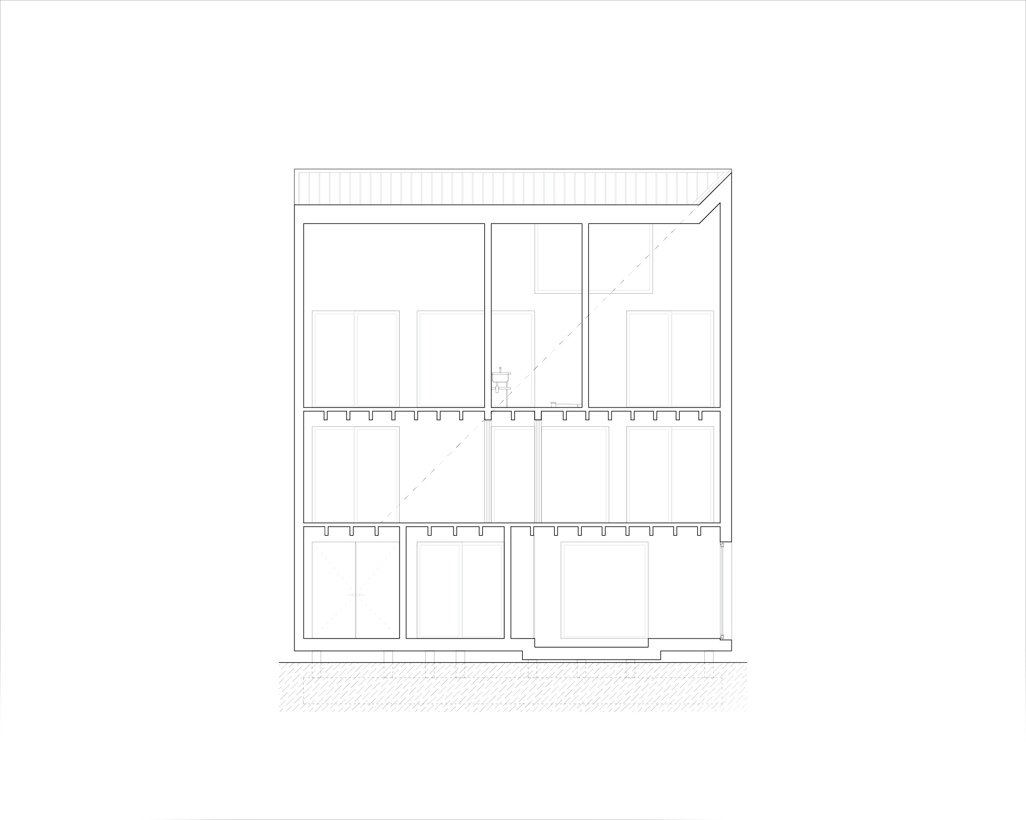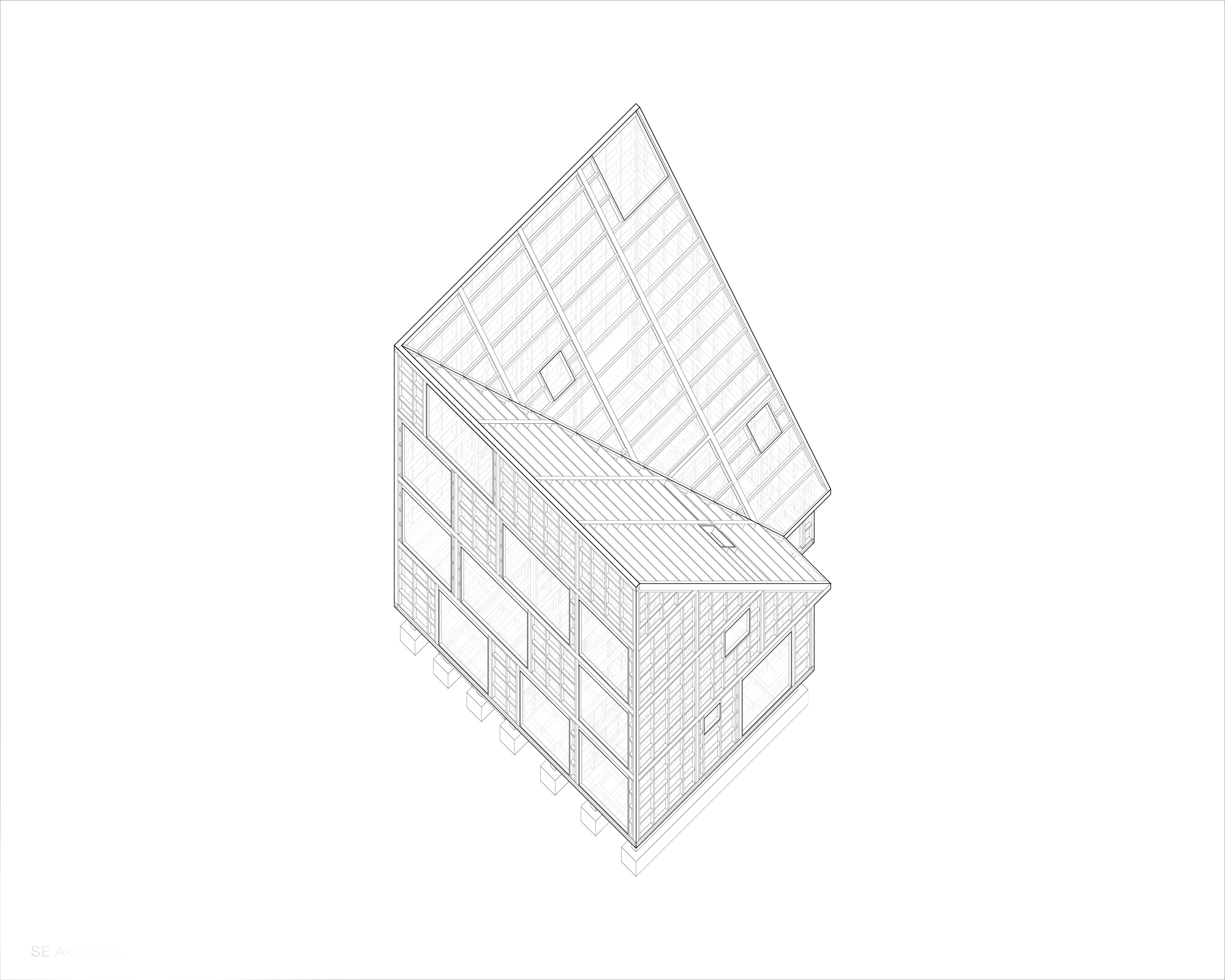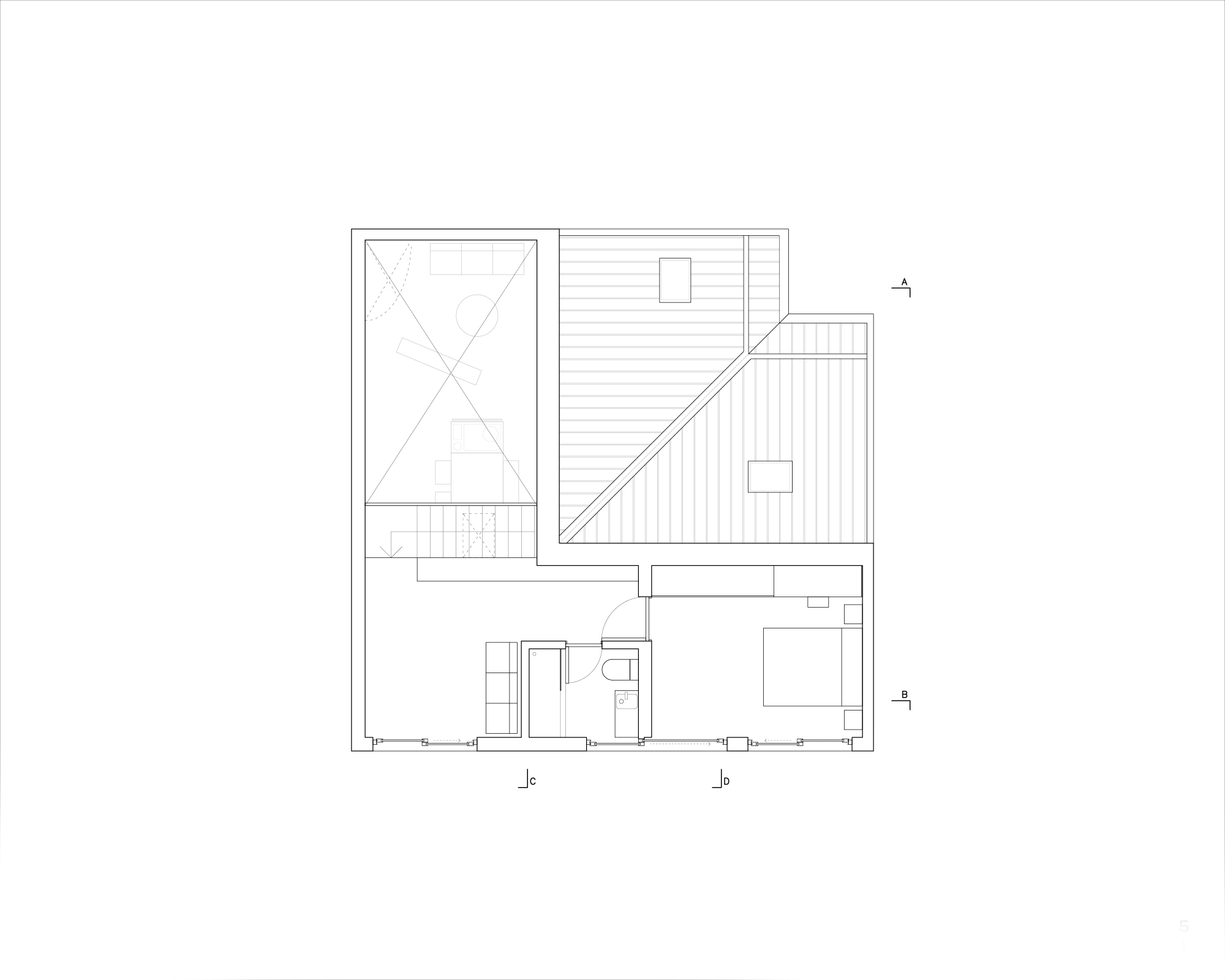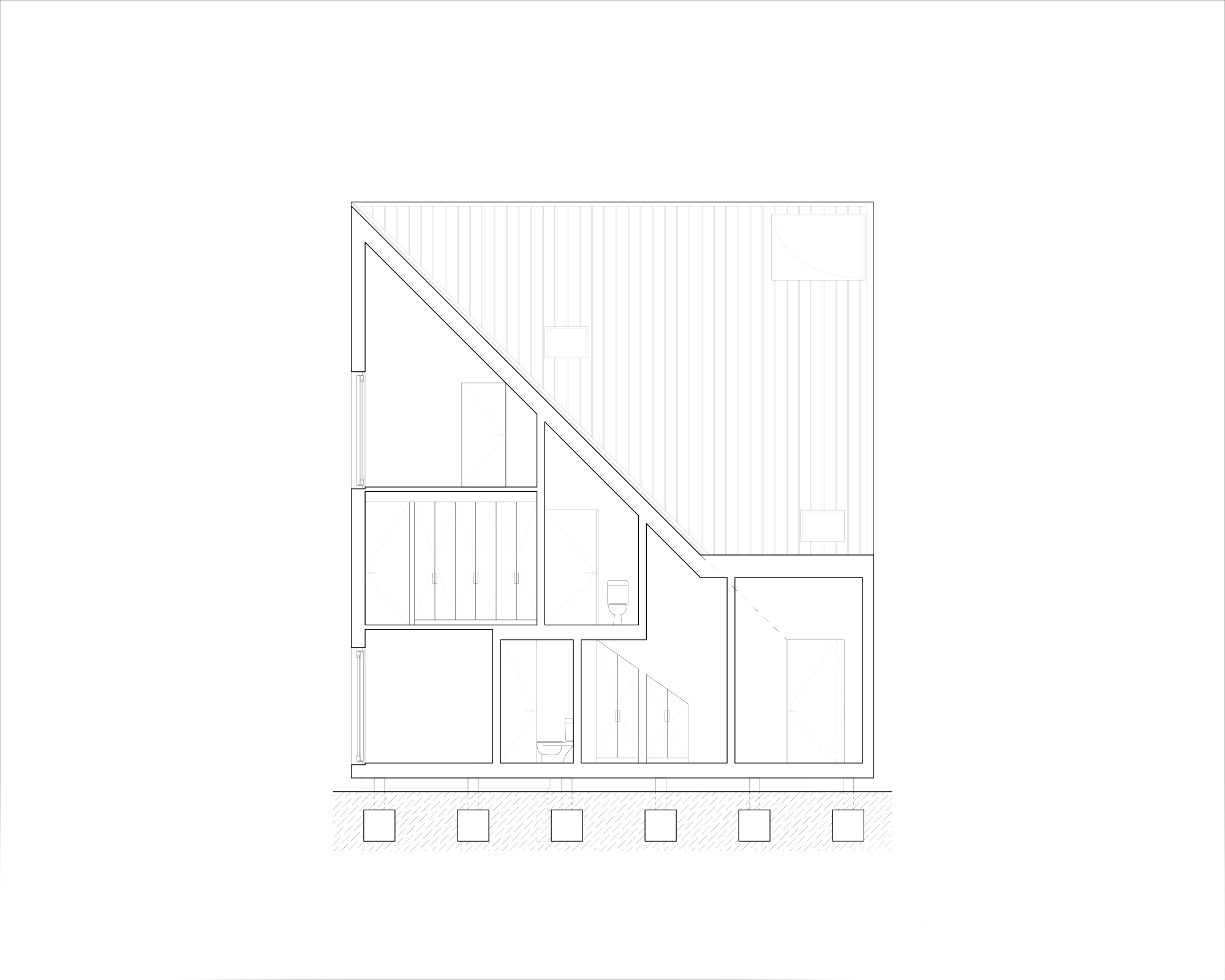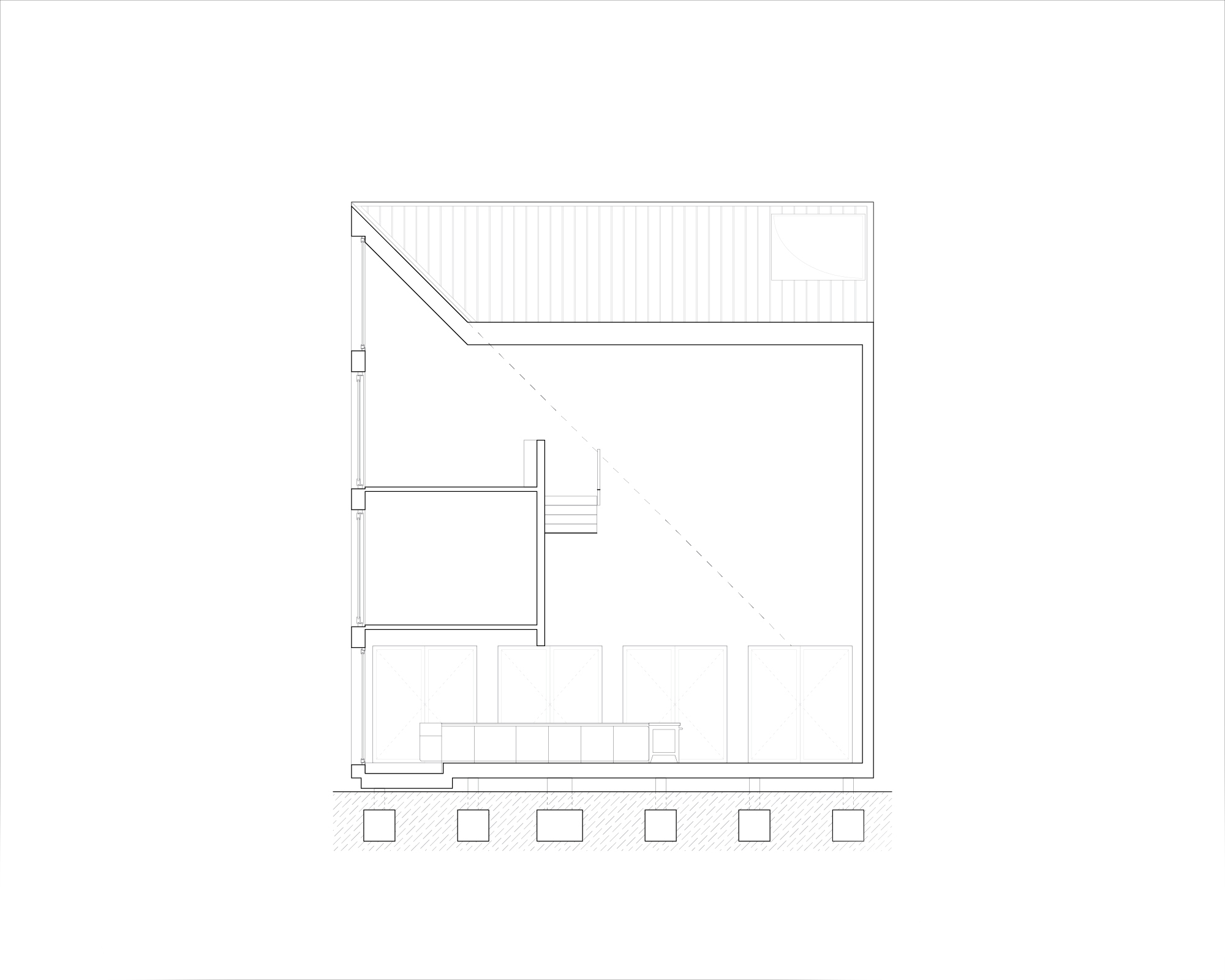 Humo house is an exercise on domestic dichotomies. Starting from a cube of 11m side with two of its faces split in half, the whole project revolves around the articulation of opposing pairs. The two larger facades open to distant views of the lake and to the site on ground floor; the two smaller ones are almost entirely blind, sheltering the entrance on the lower corner.