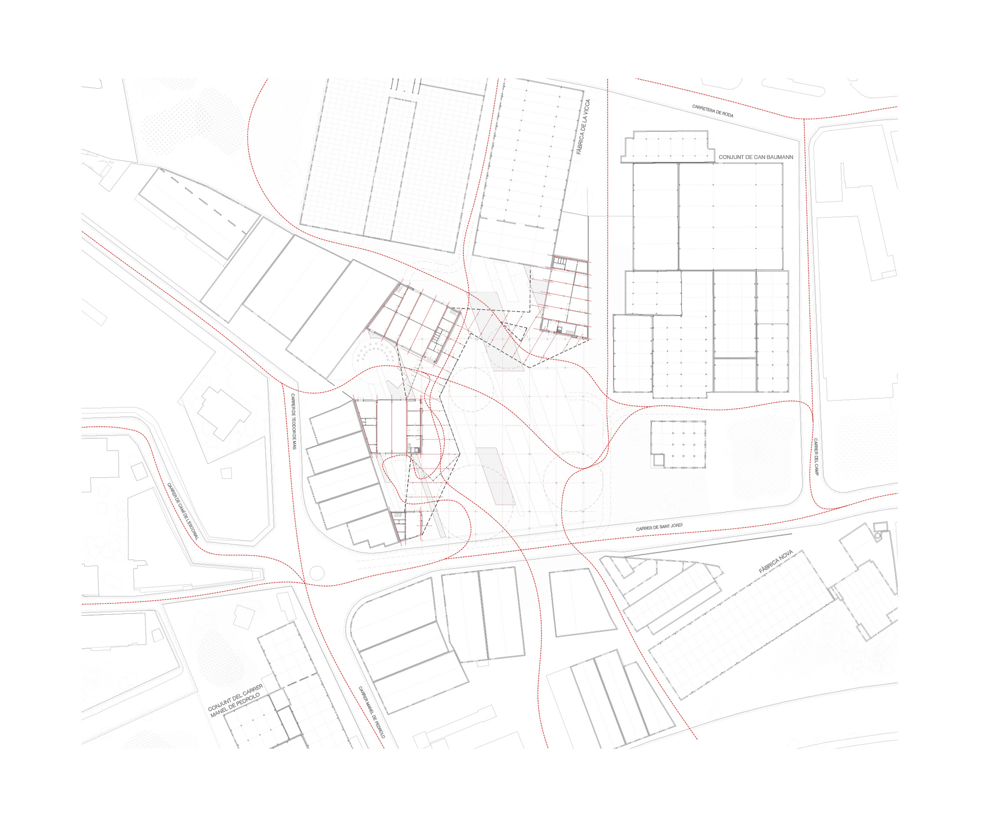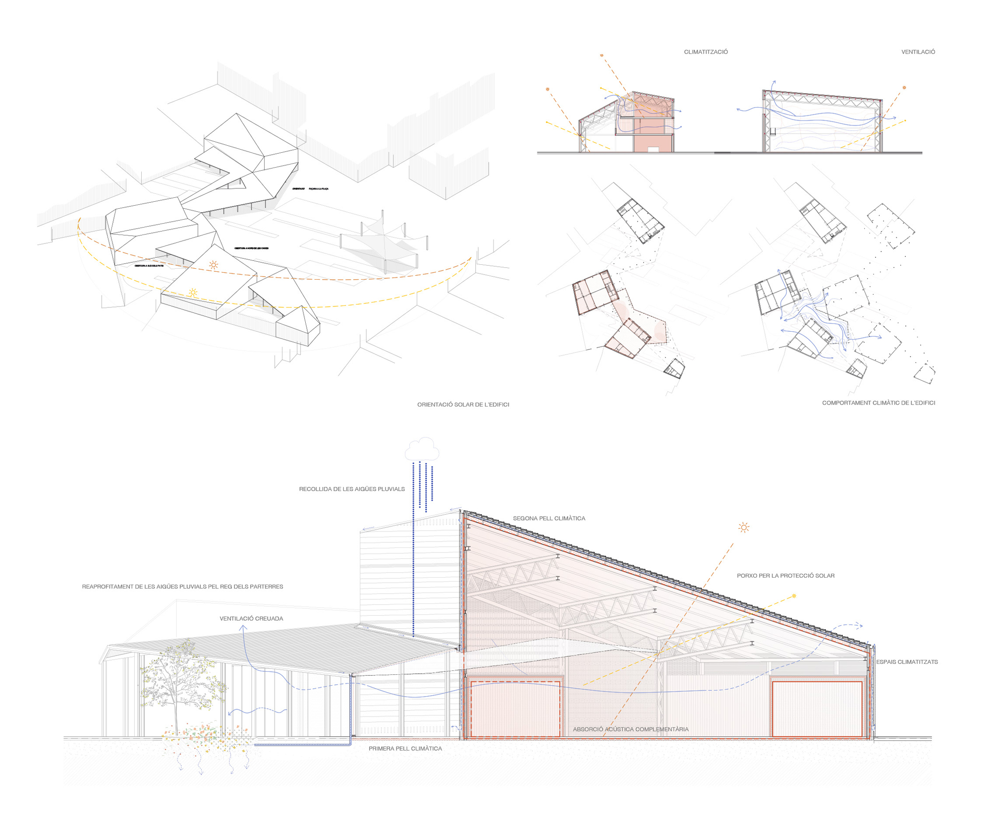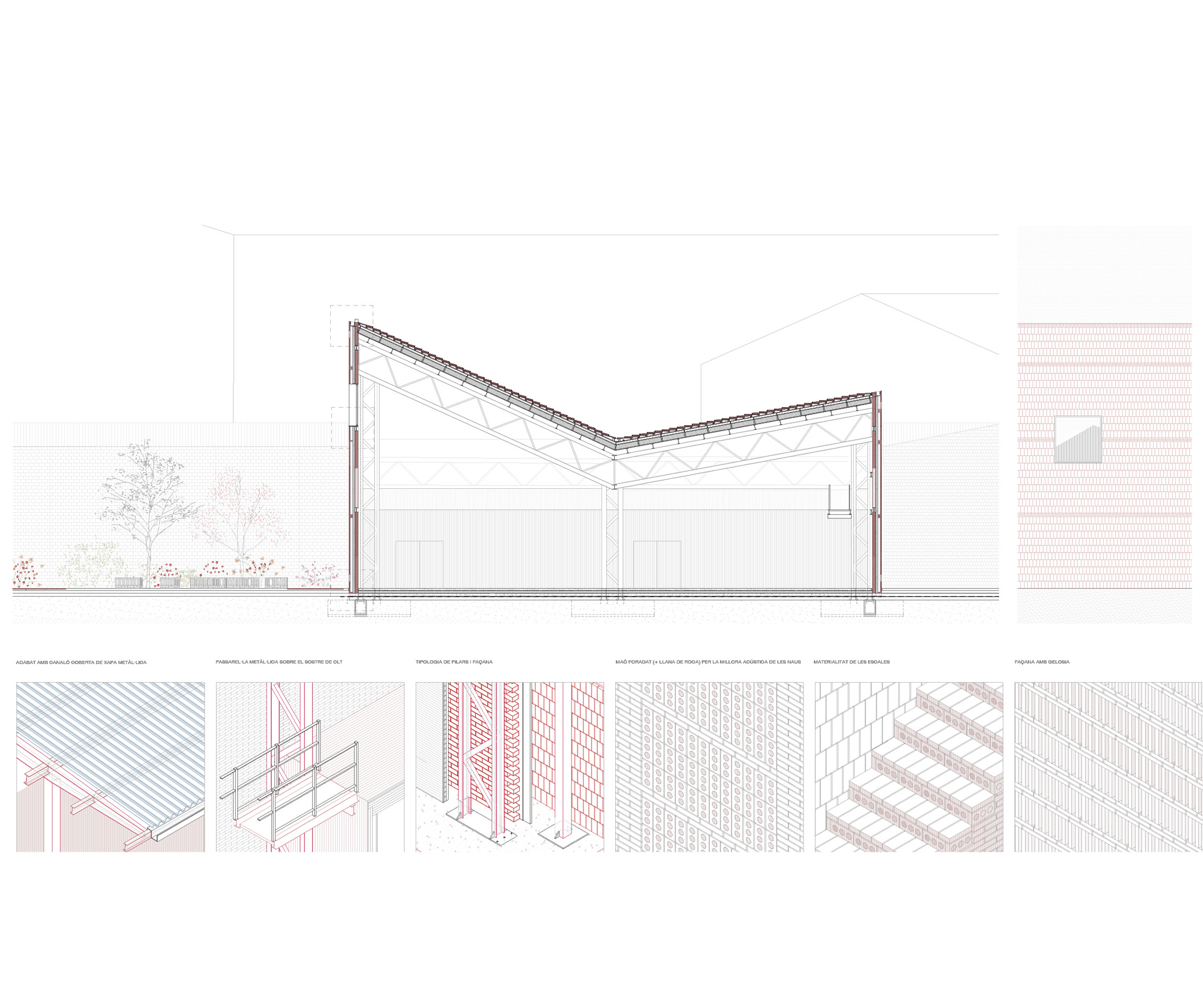 This is the case with the old industrial neighborhood of Caputxins, in the north of the city. L’Espatllat proposes a Performing Arts Laboratory that will create a new attraction point for the area, which is one of the main entrances to the city and the border point with its green belt. The project creates a new facade for the neighborhood and plays with the constructive tradition of the surroundings for the new facility.