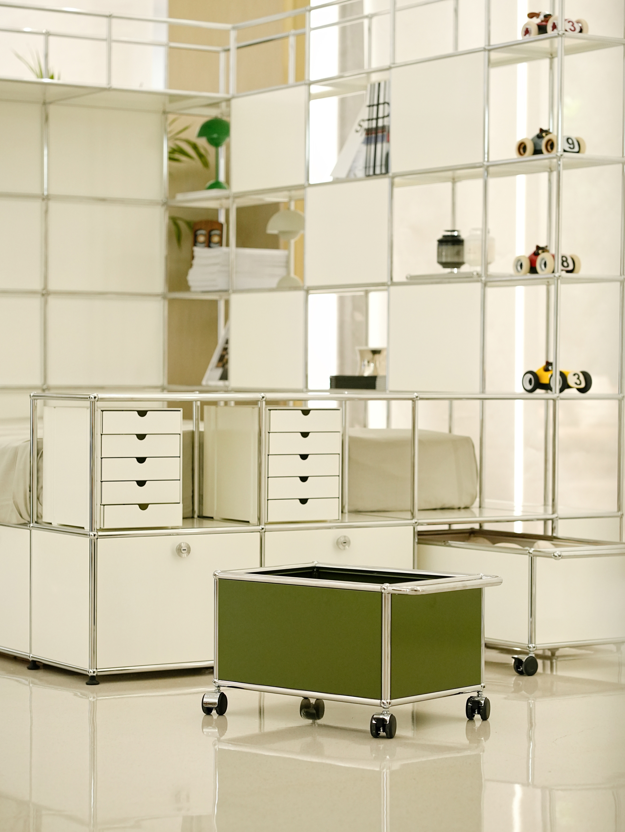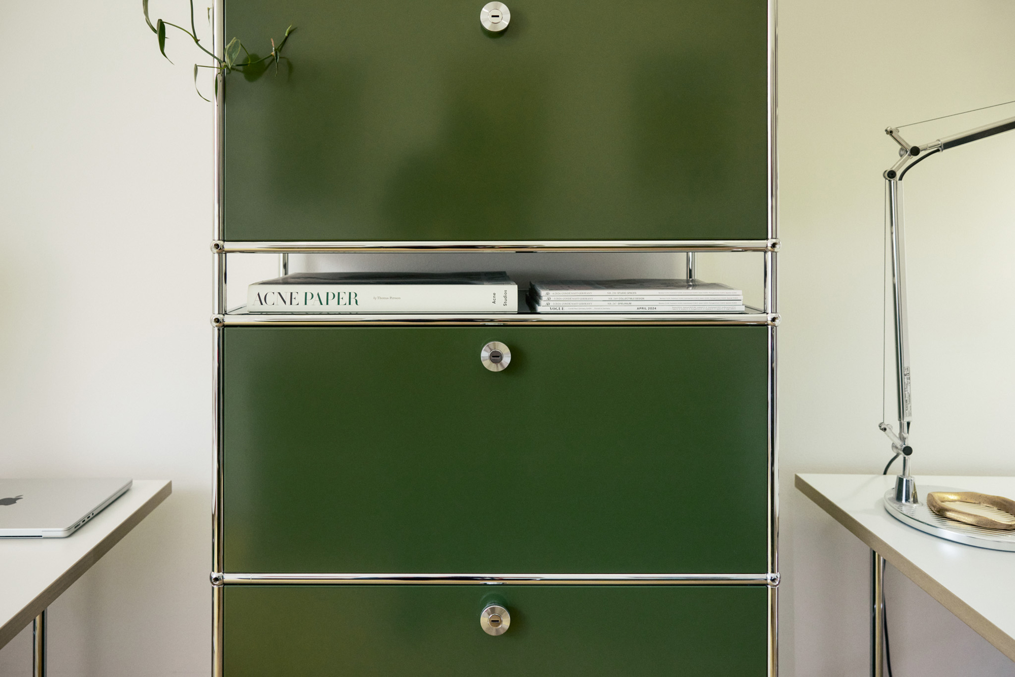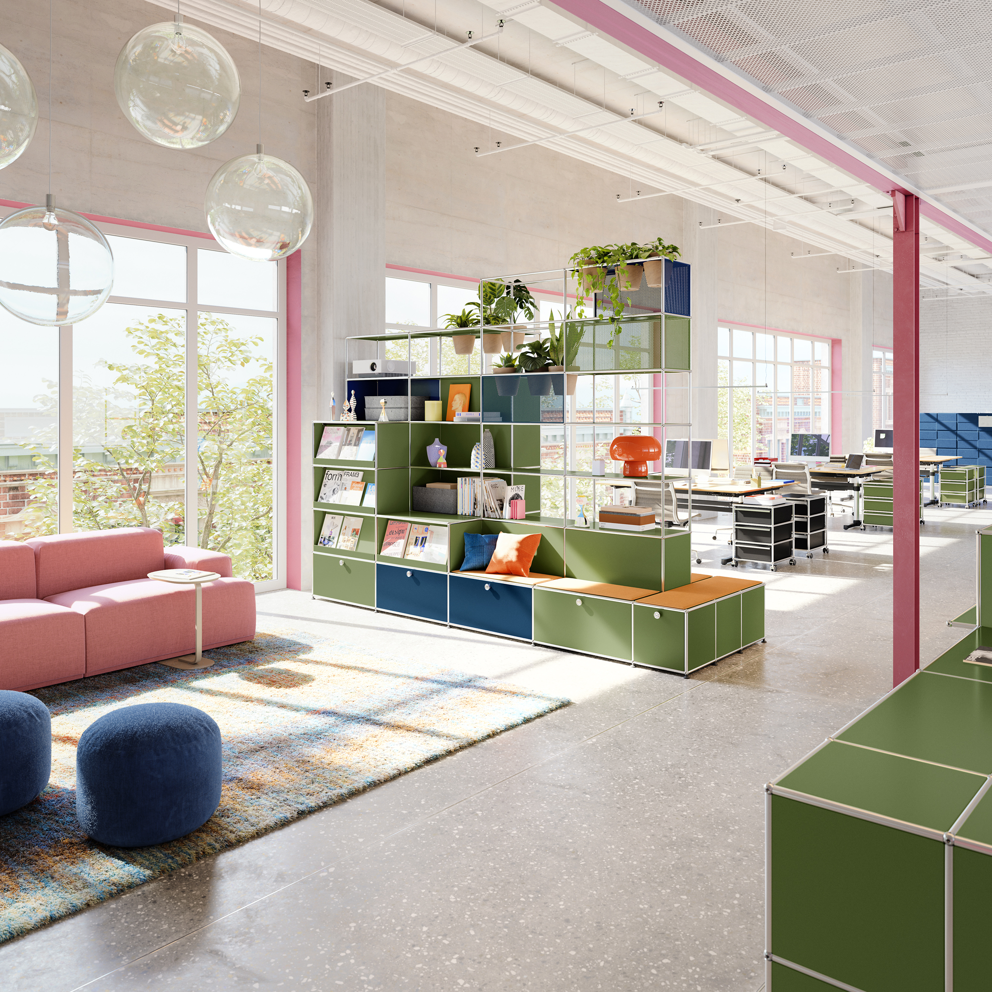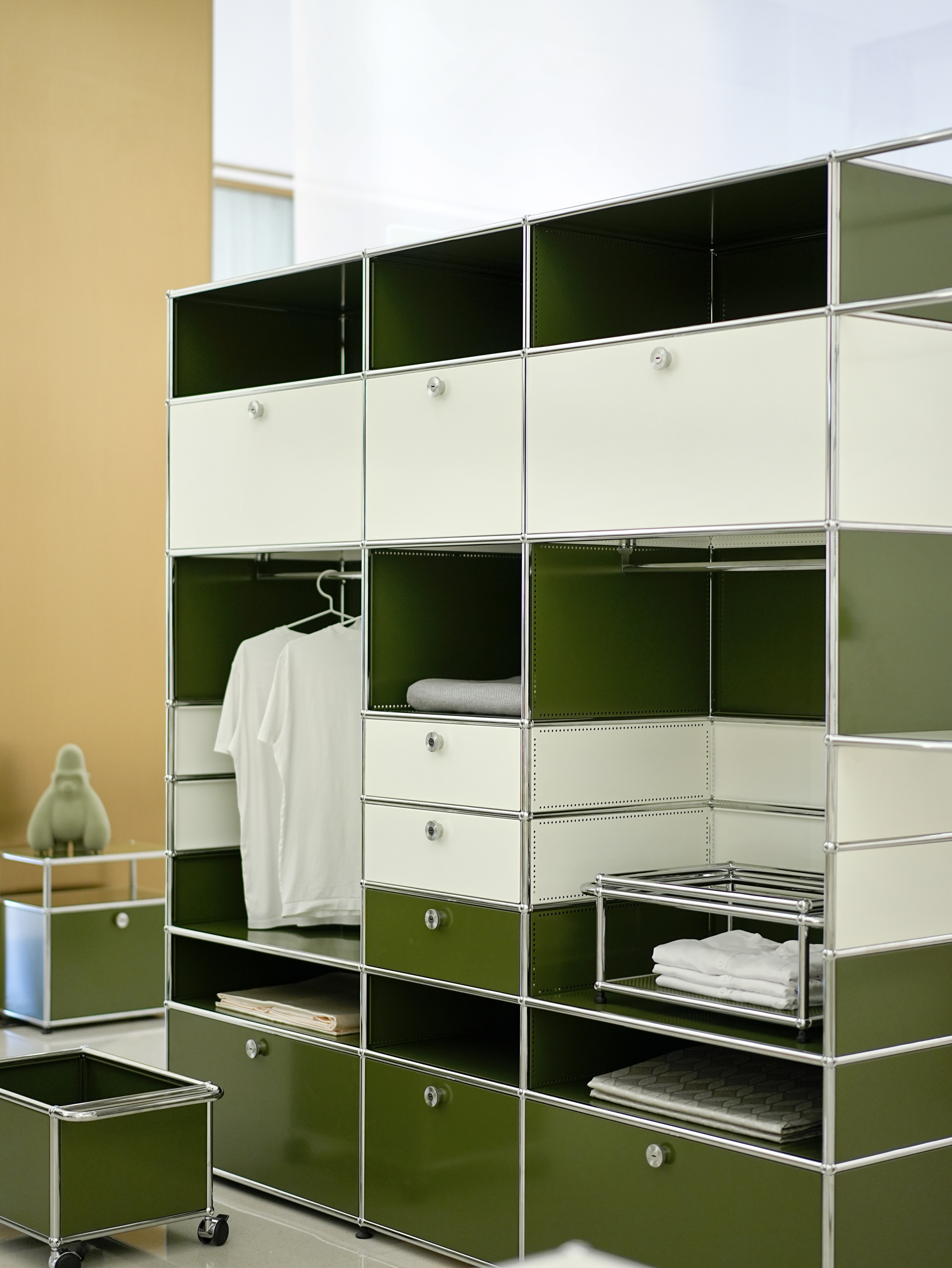 Today, the USM Haller is available in a carefully curated palette of 14 standard colors, each selected to complement a wide range of interiors, from classic to contemporary. This diverse selection allows users to create furniture that not only fits their spatial needs but also enhances the mood and atmosphere of their environment.