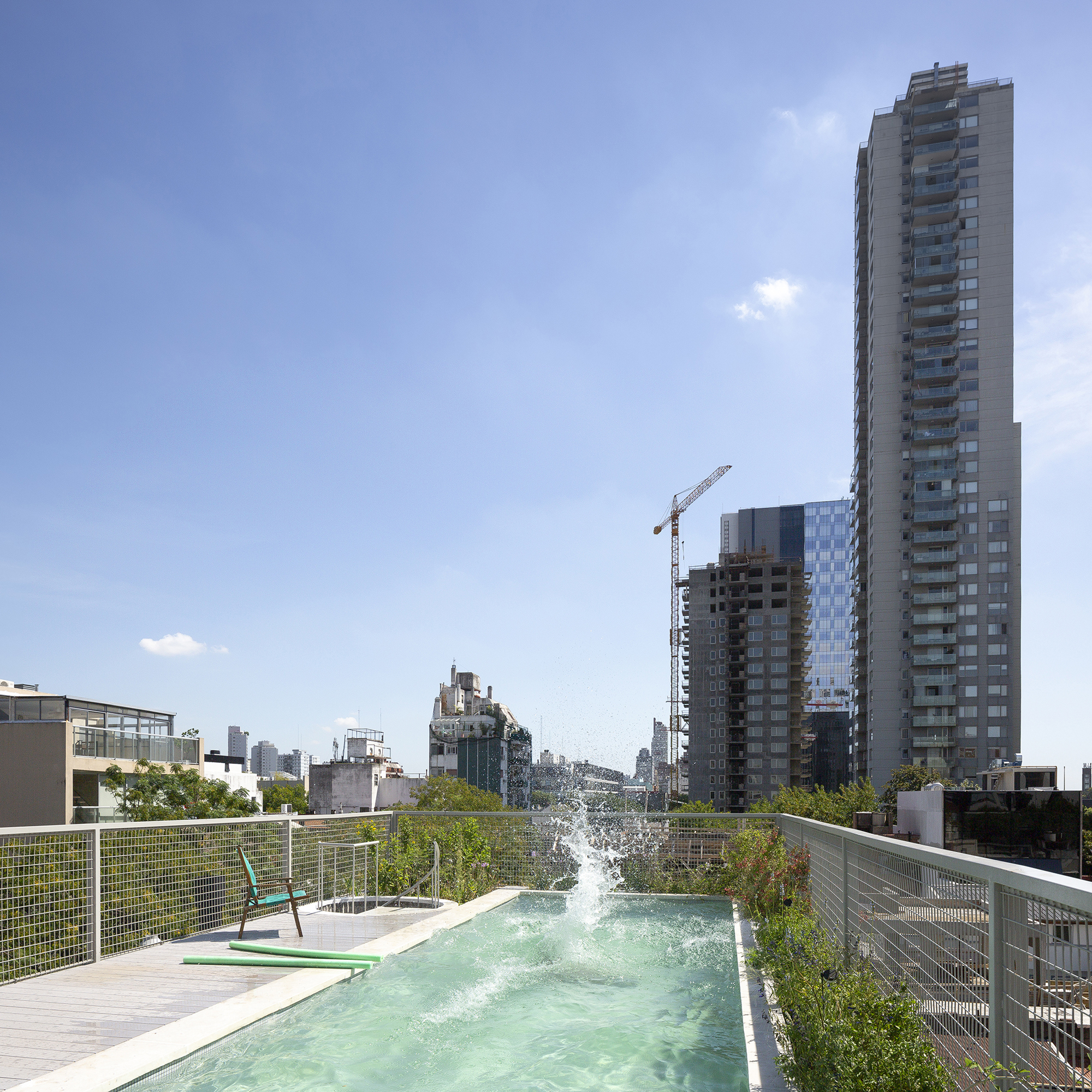 The new construction absorbs the entrances and circulations; at the same time its section delimits the exterior spaces: the access patio, the raised gardens, the roof of the old construction, and the swimming pool that completes the complex. Each of these spaces stimulates the geometry of the pavilion. Its texture and coloring try to react to the ornamental guidelines of the existing construction.