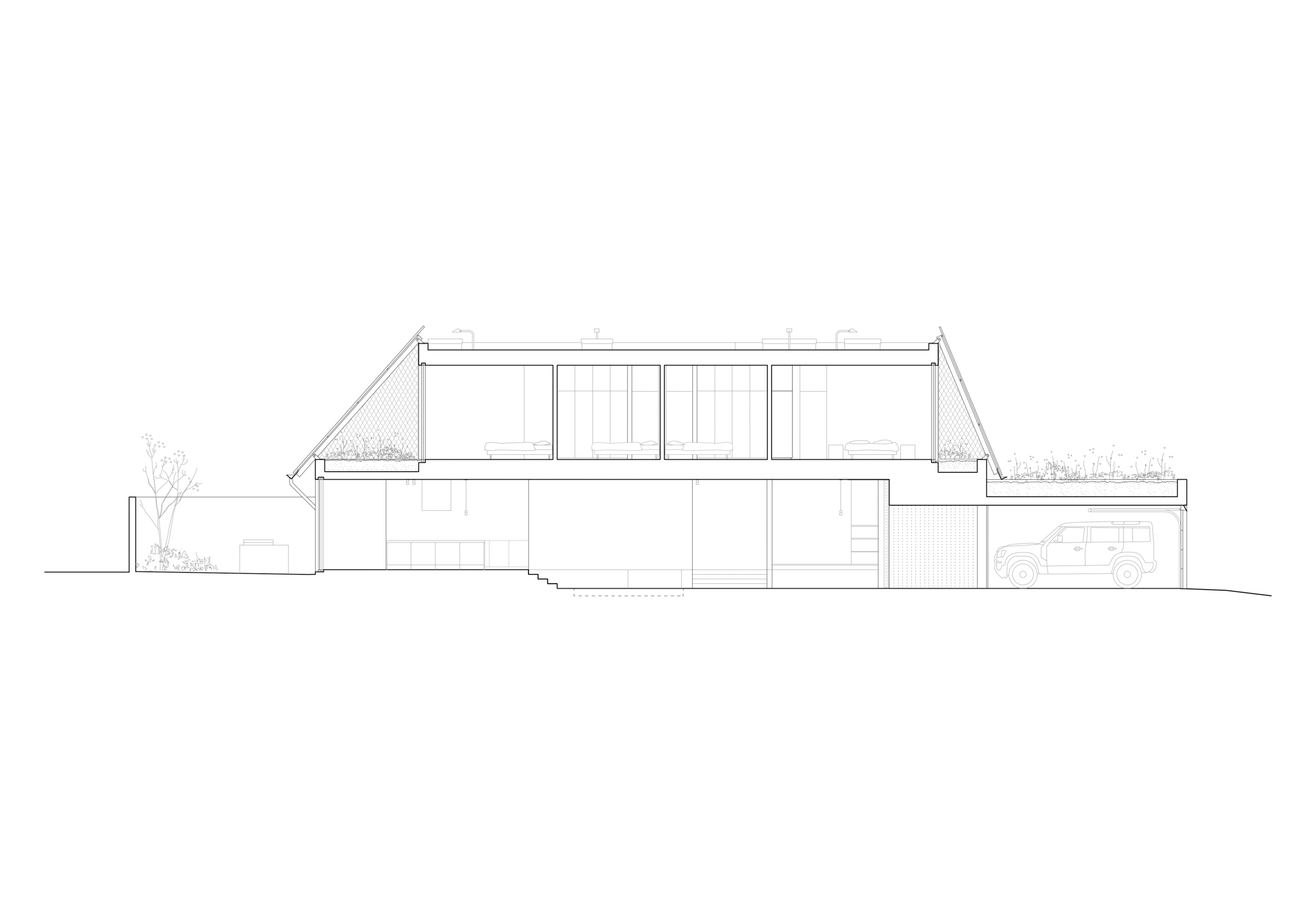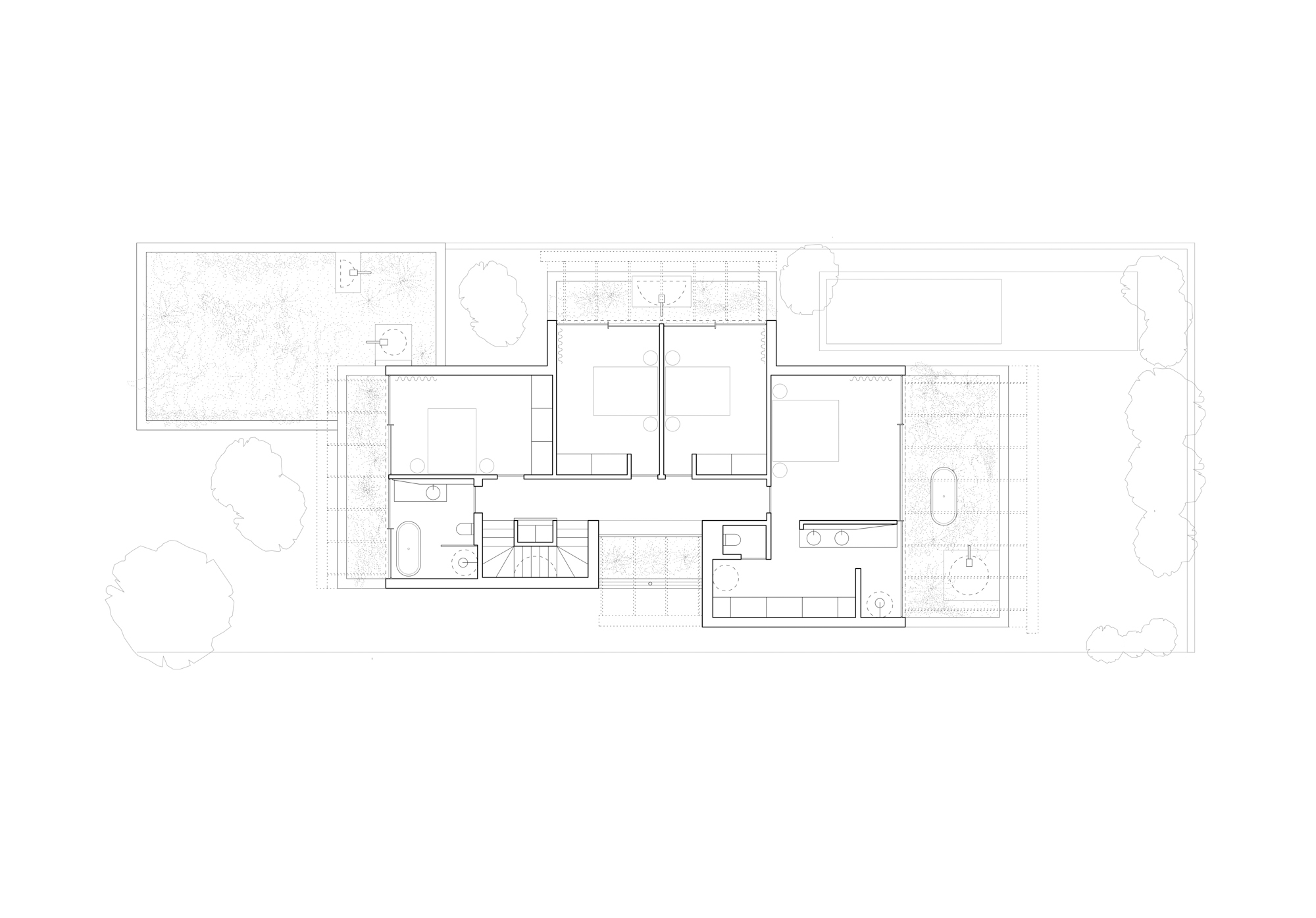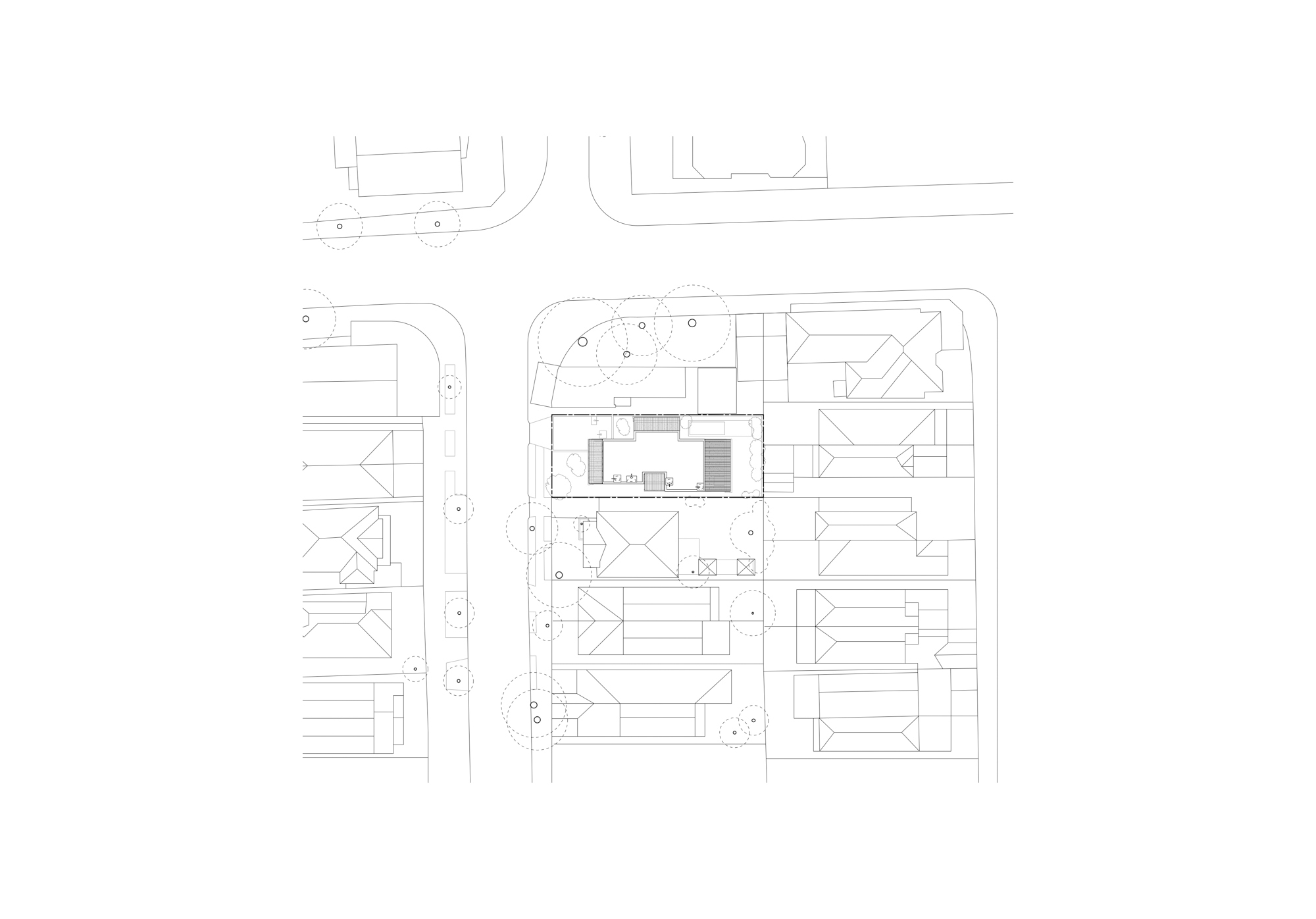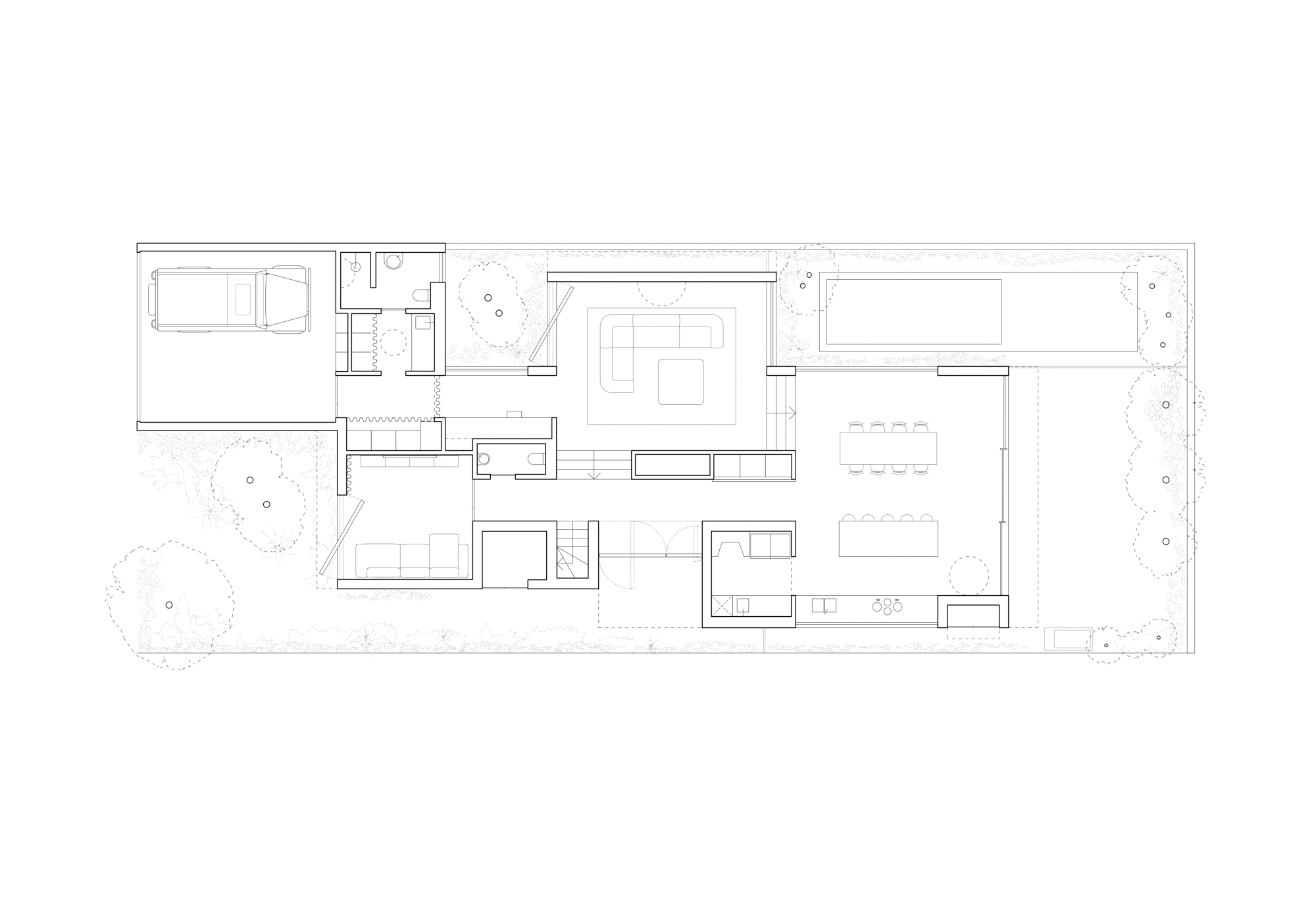 The potential for gardens to help filter neighbouring conditions and provide softness was a primary focus for the project. Early explorations with consultants enabled us to design based on a clear understanding of what the gardens would be like and how we could rely on them to address privacy and protection, carefully considering the exposure of each room. In plan, the rooms step and stagger to create distinct garden spaces that provide relief to the overall experience, bringing light and ventilation deep into the plan. The interiors are interrelated with each adjacent garden, offering privacy and different conditions to each room.