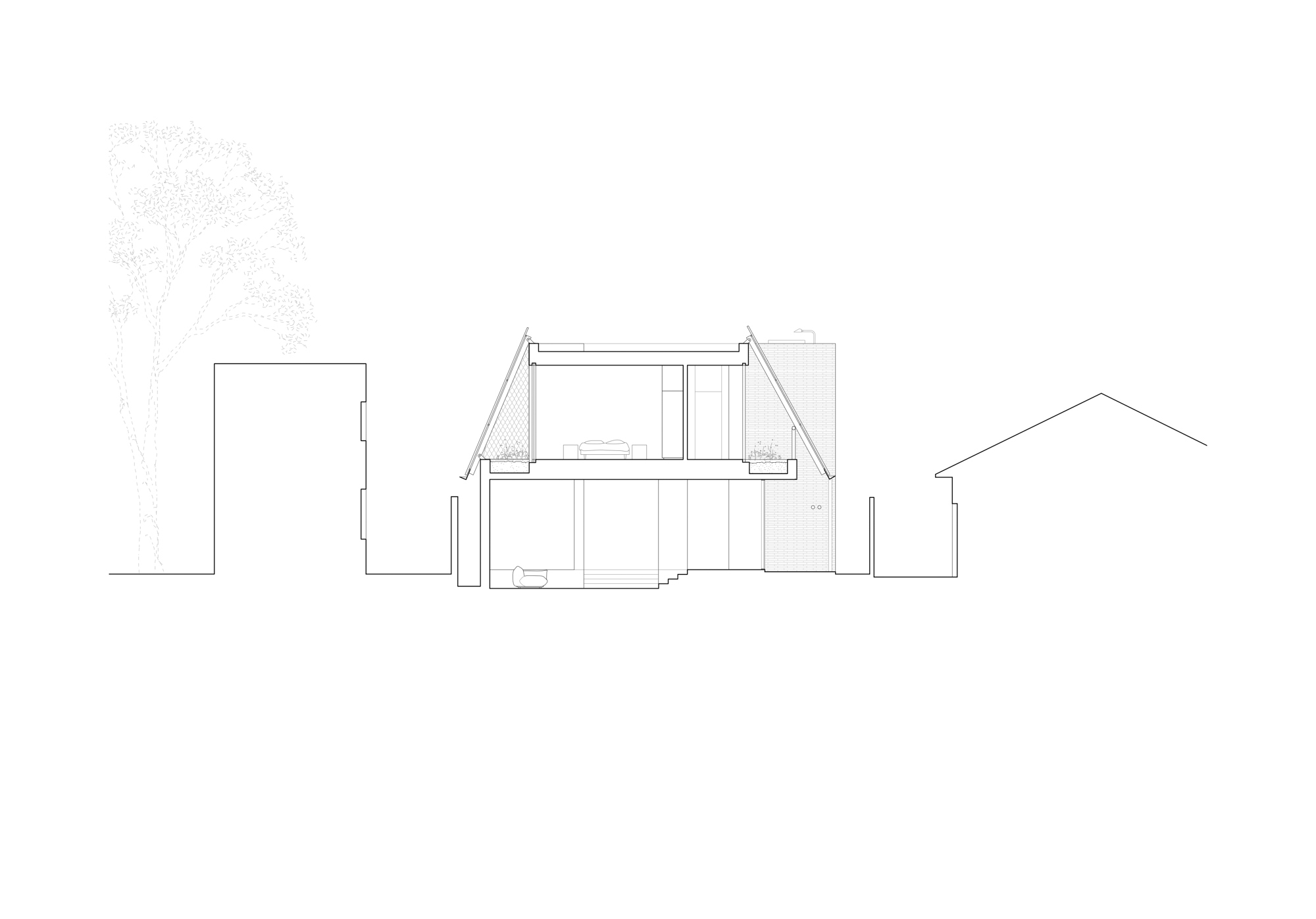 The project brief was to design a new home for a builder and his young family on the long sandy flat that runs from Bondi to the harbour at Rose Bay. The block is large for North Bondi at 415sqm and is located one house back from a busy street corner with apartments and shopfronts. This proximity means a mix of surrounding housing types and the site is heavily overlooked. There was an existing single storey bungalow on the site that was carefully deconstructed to enable the re-use of building fabric, including the bricks and timber roof framing.