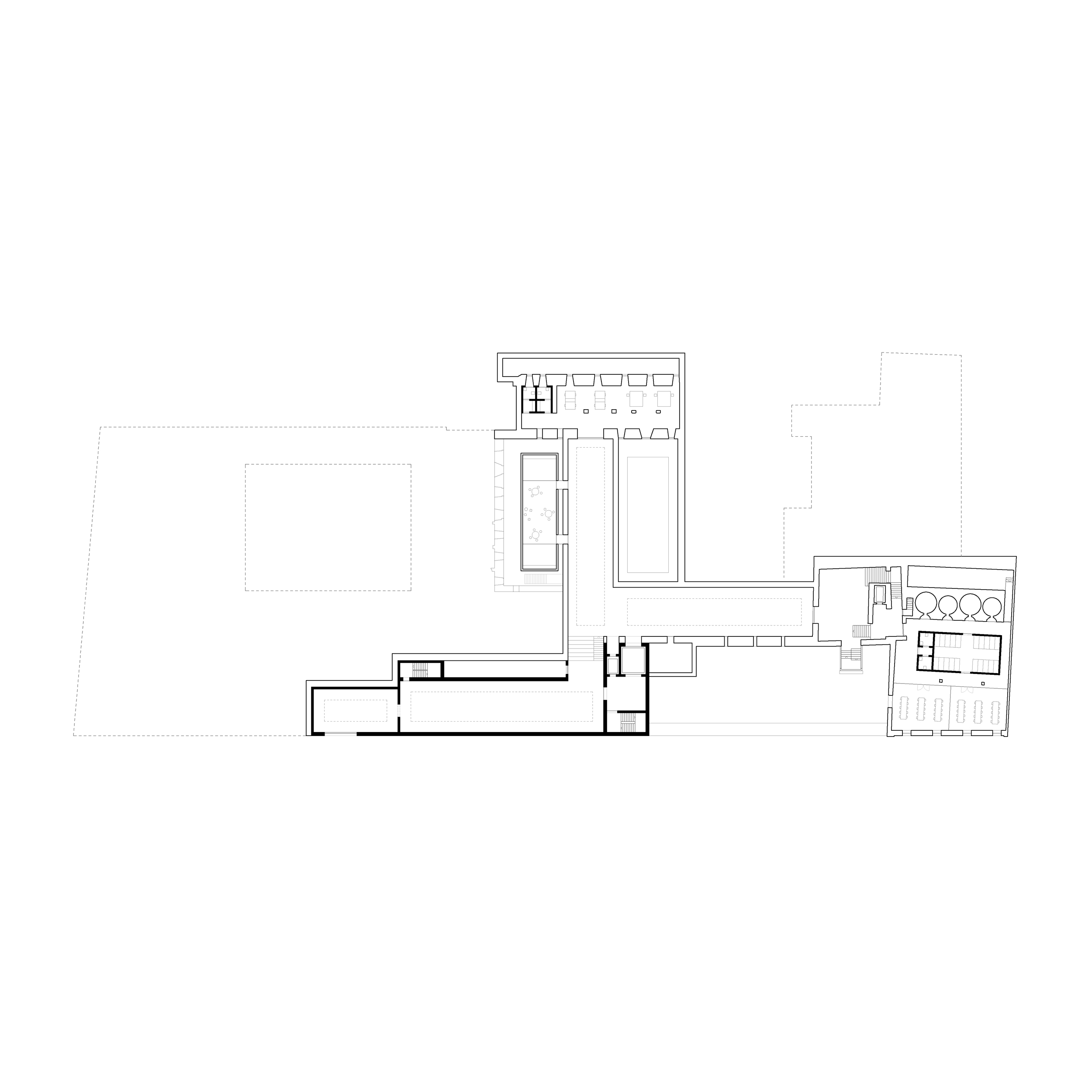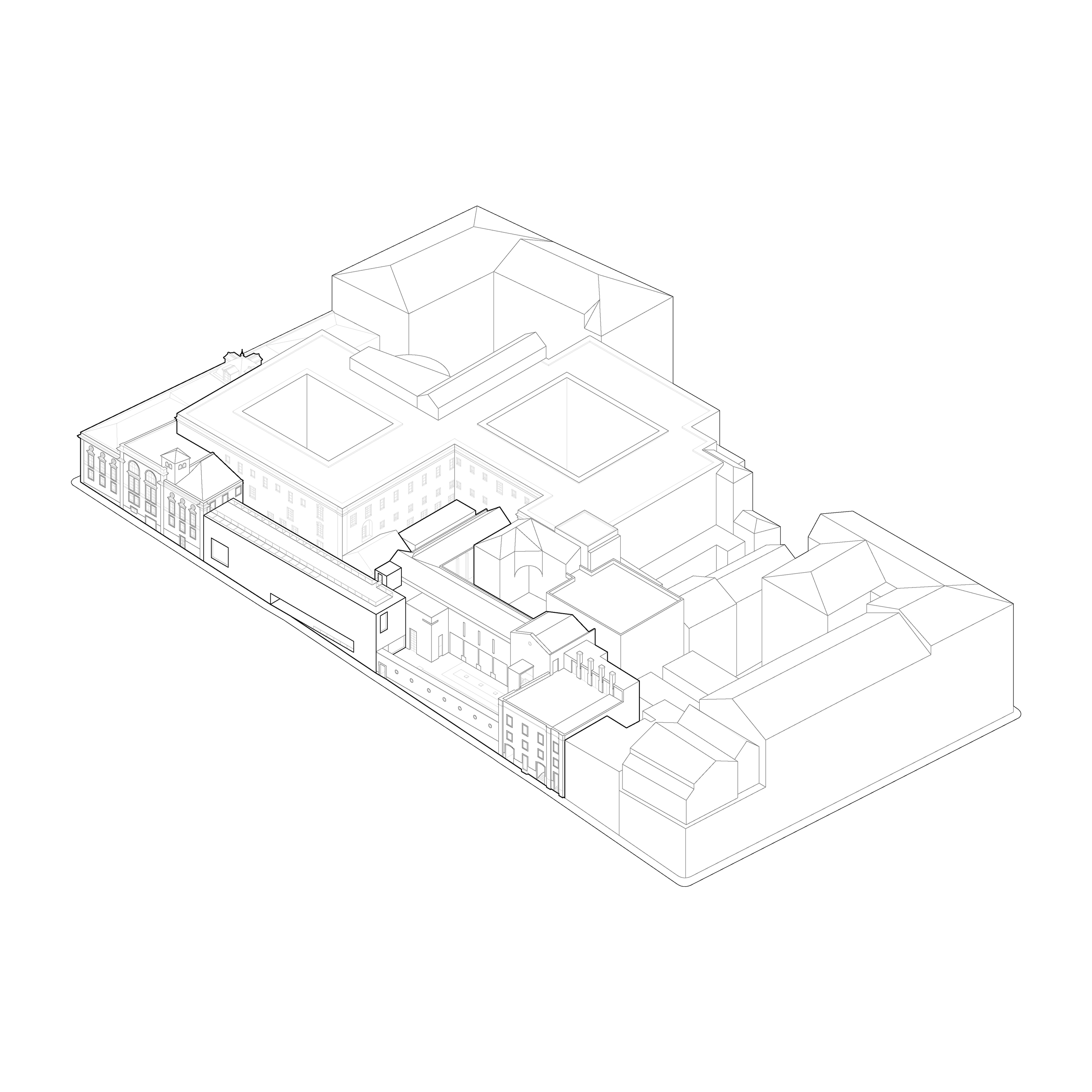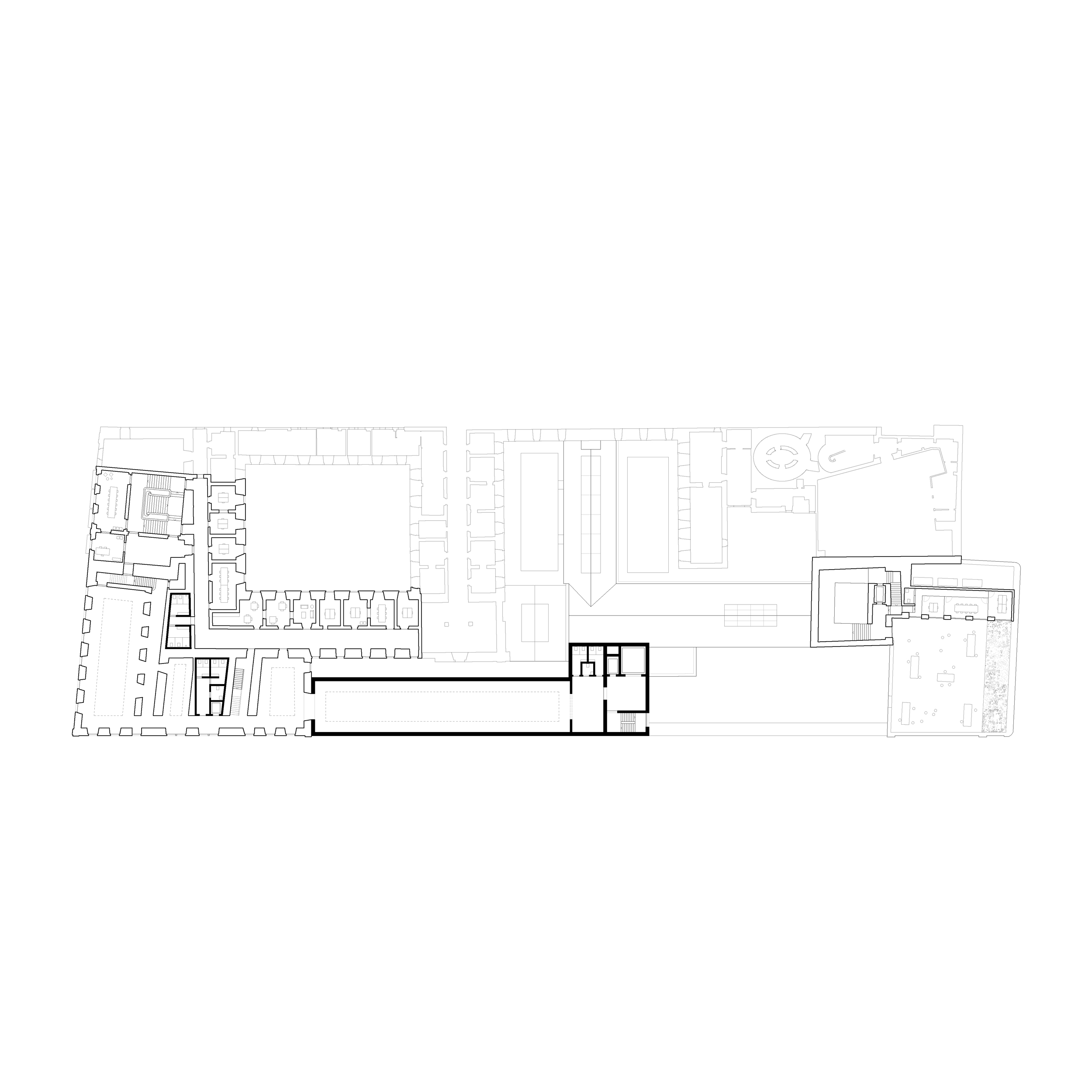 The underground floors accommodate technical and storage areas, ensuring efficient management of collections and operational services. This layout allows for a clear distinction between technical functions and public spaces, maintaining a practical distribution that facilitates staff operations without intruding on the visitor experience. On the ground level, the lobby includes a shop and café with direct access to the sculpture garden, integrating these amenities into the daily life of the neighbourhood and enabling them to function independently. Temporary exhibition rooms feature adjustable lighting and mobile elements, facilitating a flexible, versatile arrangement suited to various exhibition formats, encouraging an interactive and engaging experience.