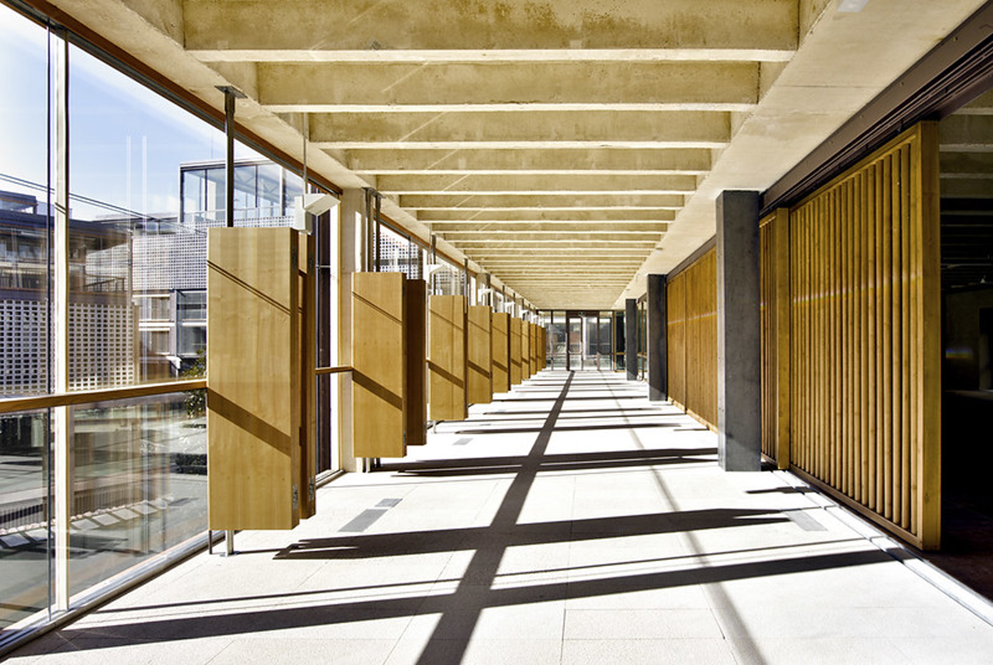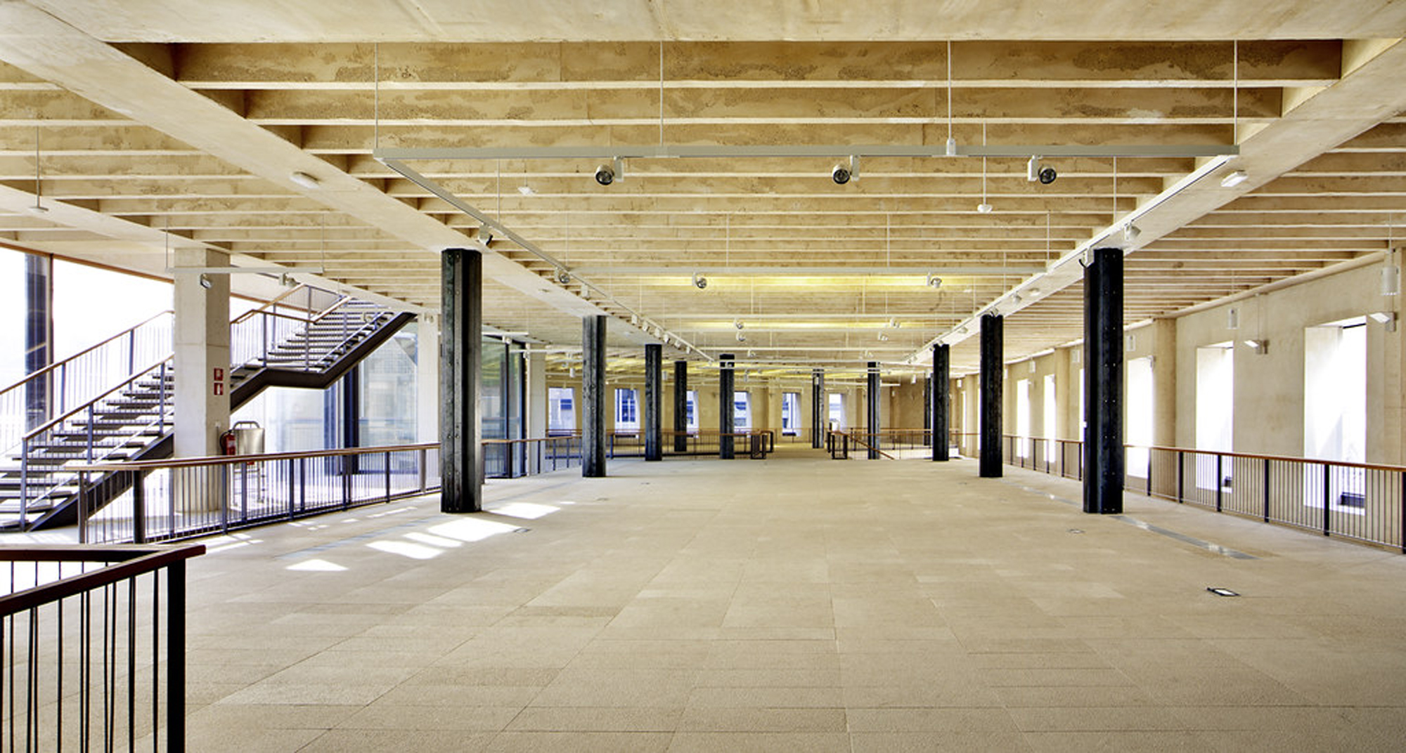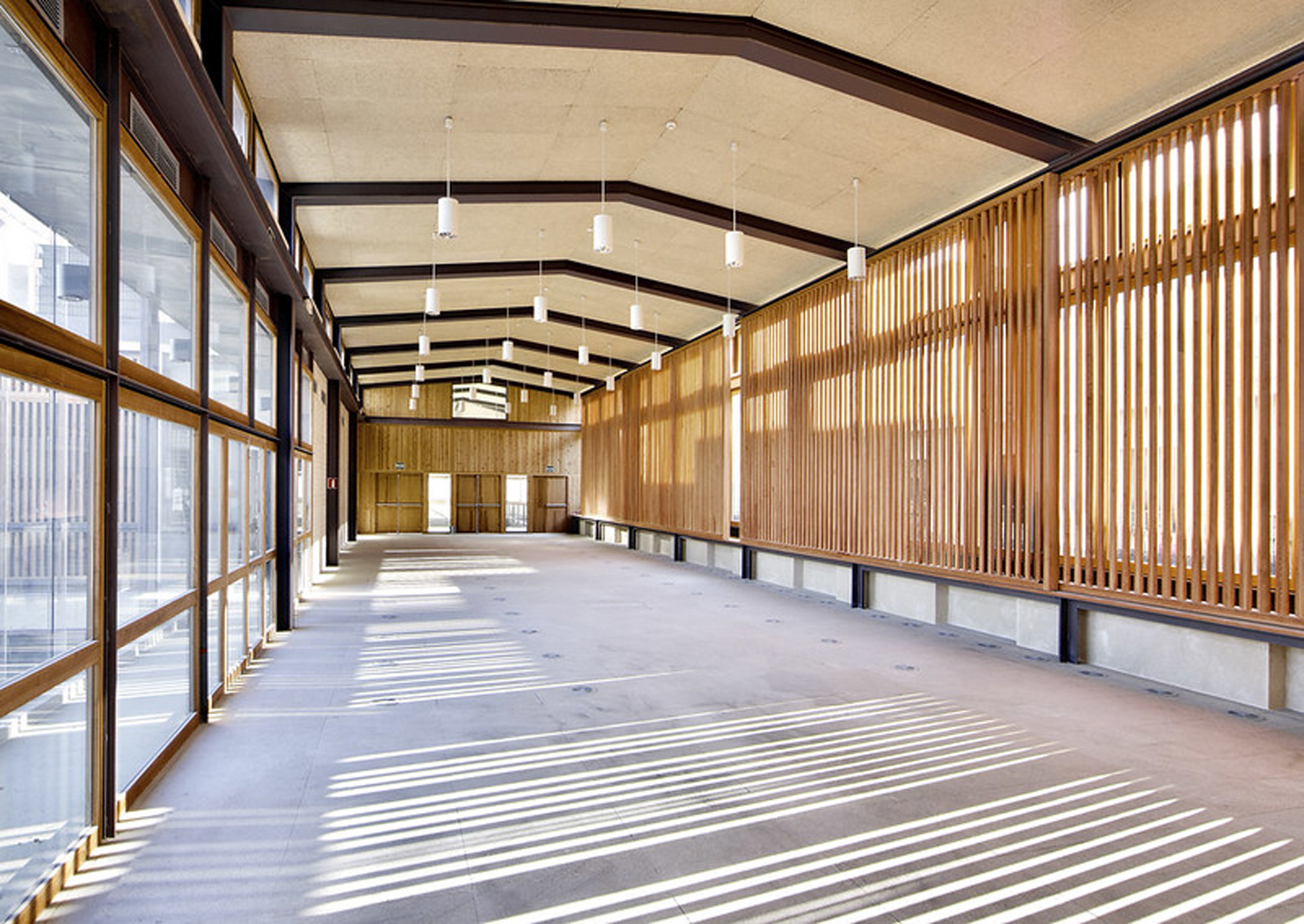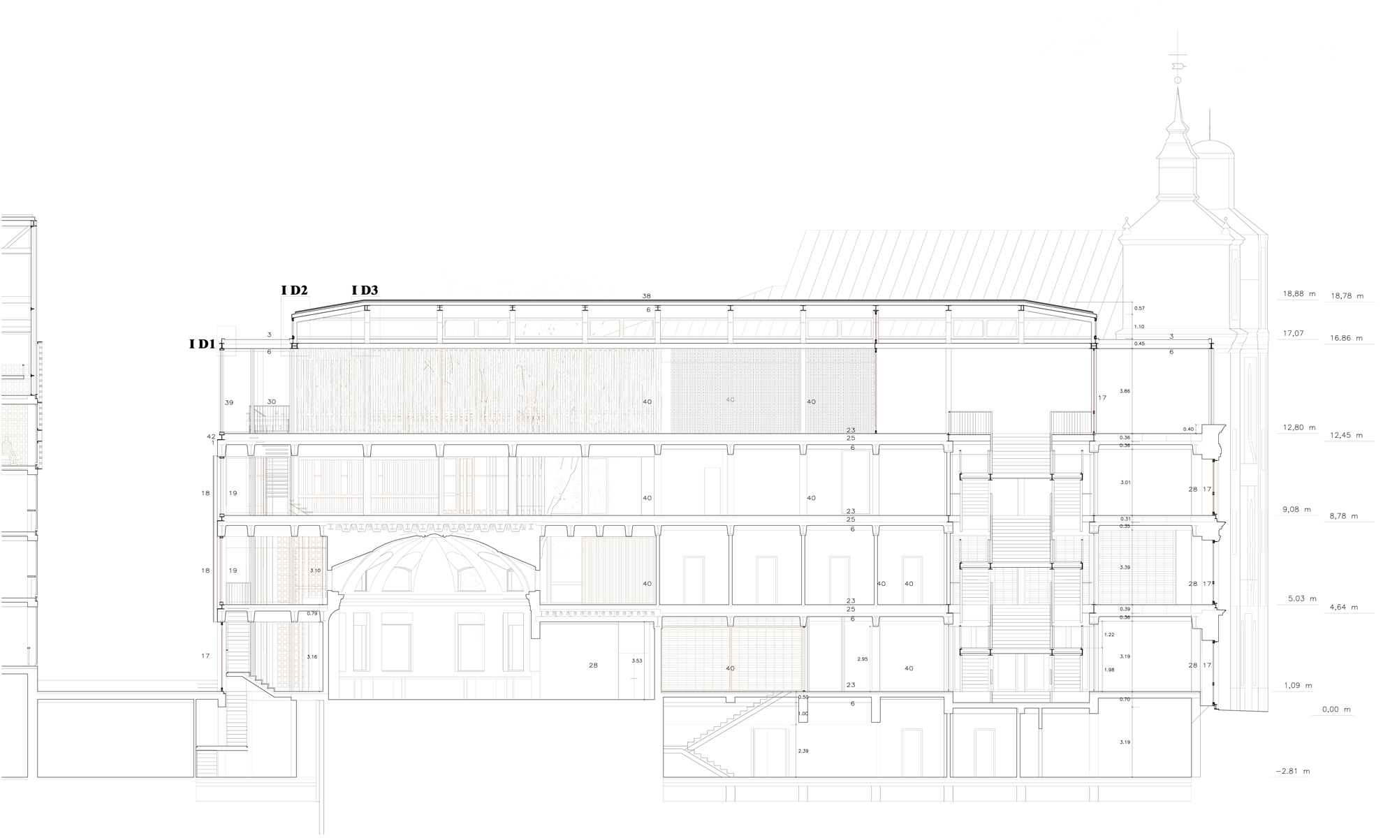 The demolition of buildings that were considered little valuable was necessary to create a tree-lined garden in the central space of the manzana, this being the key decision that articulates the entire ensemble. In this way, the garden constitutes a quiet place in the middle of the city center and has its calm that allows the complex’s work spaces to be accessed, through very permeable facades made up of a double layer of extra-clear glass. Open in the garden, the program of the new headquarters of COAM is organized in such a way that the cultural areas, whose character is more public, are available between the access floors, while the workshop zones are organized in the upper floors. On the other hand, the music school, which is located next to the church, occupies the most sheltered wing of the building, and is organized around the space at double height of the old sacristy. The rest of the municipal equipment is organized on a floor topped with swimming pools, located on the upper floor and designed as unique viewpoints over the city.