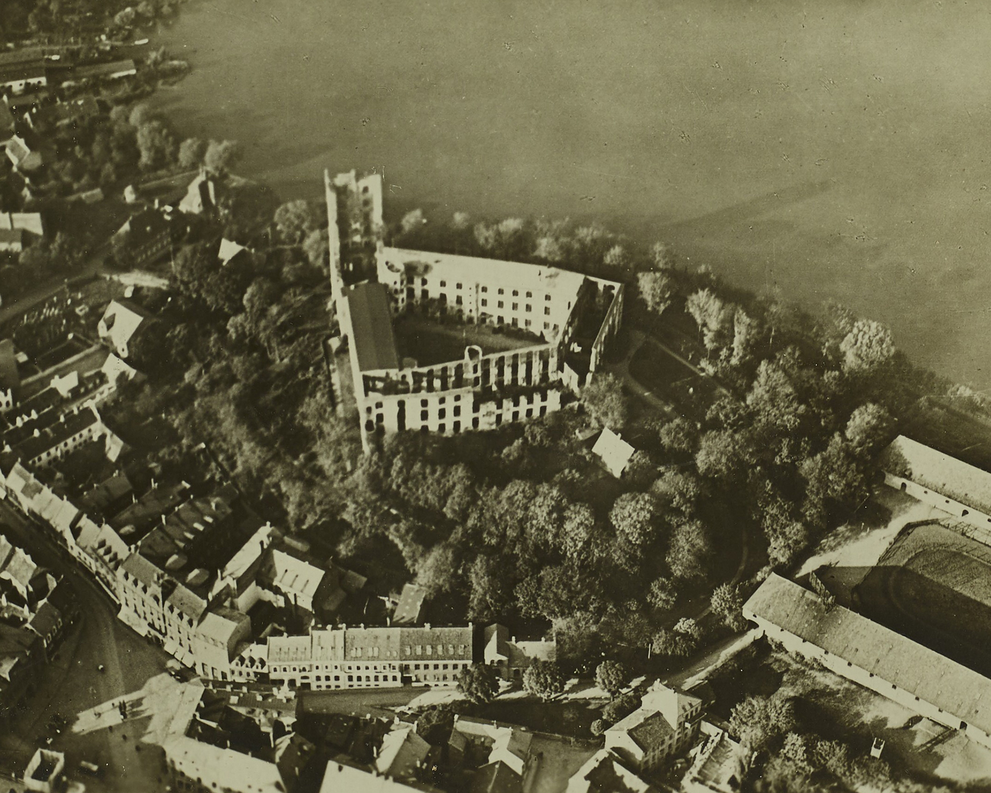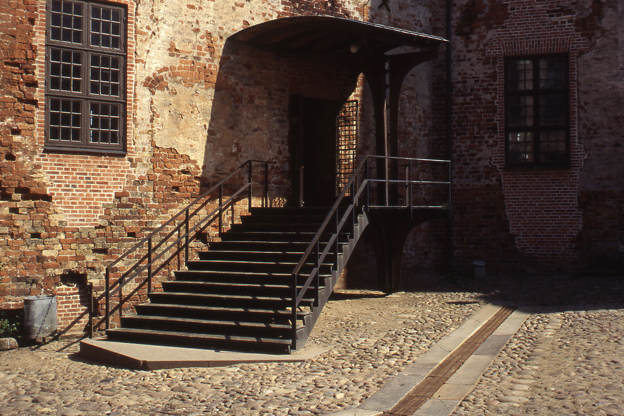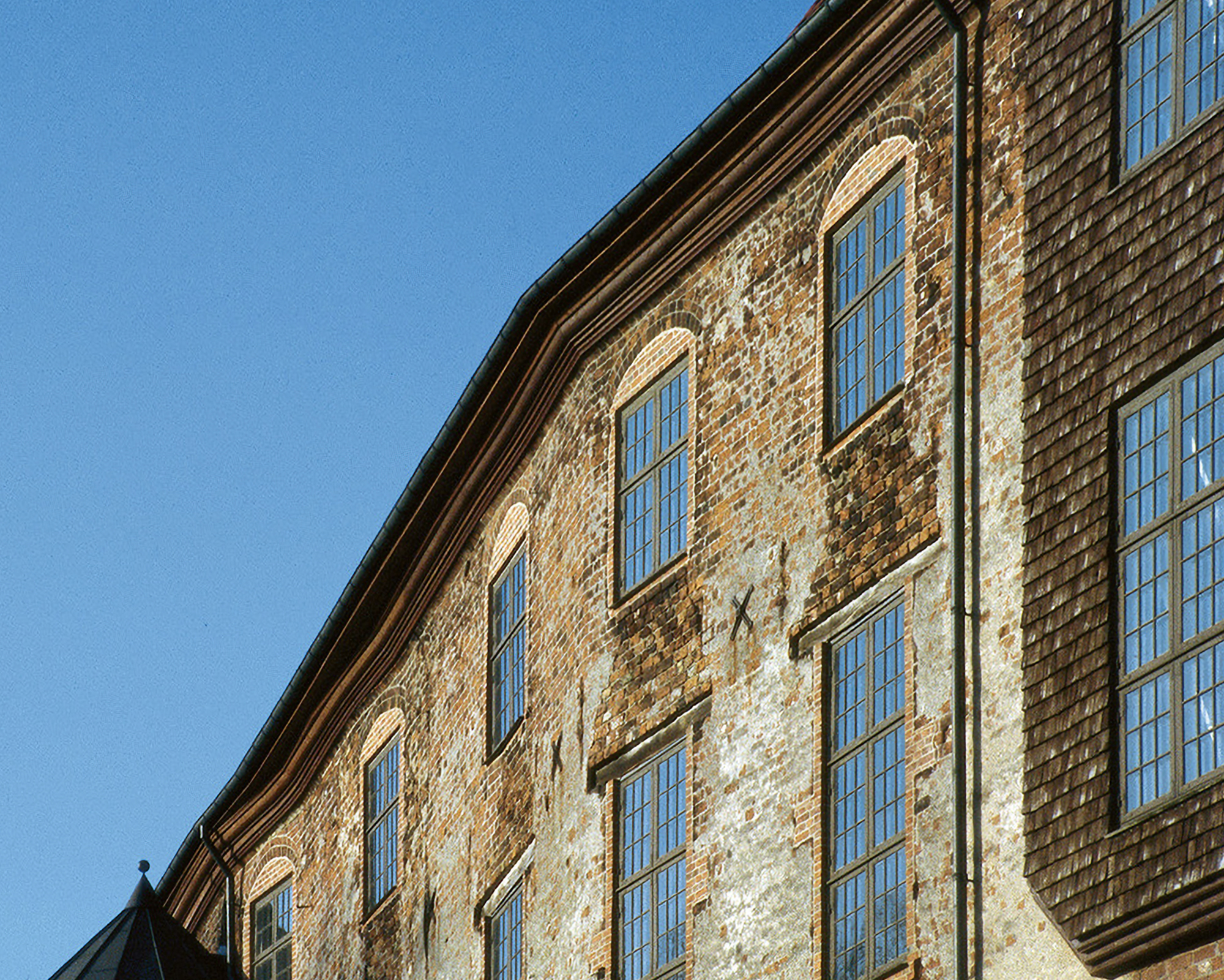 A proposal to protect the ruins by means of a simple structure supporting a roof and walls, otherwise maintaining the ruins untouched, was worked out and approved by the building committee. We believed the proposal would be well received by all the parties concerned, but local opposition arose and Det Saerlige Bygningssy (building surveying committee) would not approve. The result was a compromise which is now being carried out, in which the castle’s exterior is being given a general form corresponding to the time before the fire, while the ruins appear mostly in the interior. We evolved a basic principle that the main periods of the castle’s history were to be respected in such a way that its long and eventful life was clearly illustrated. As it was to be a museum, it was obvious that the most important exhibit was Koldinghus itself, and the different historical periods and events would have to be emphasized architecturally in the various parts of the building.