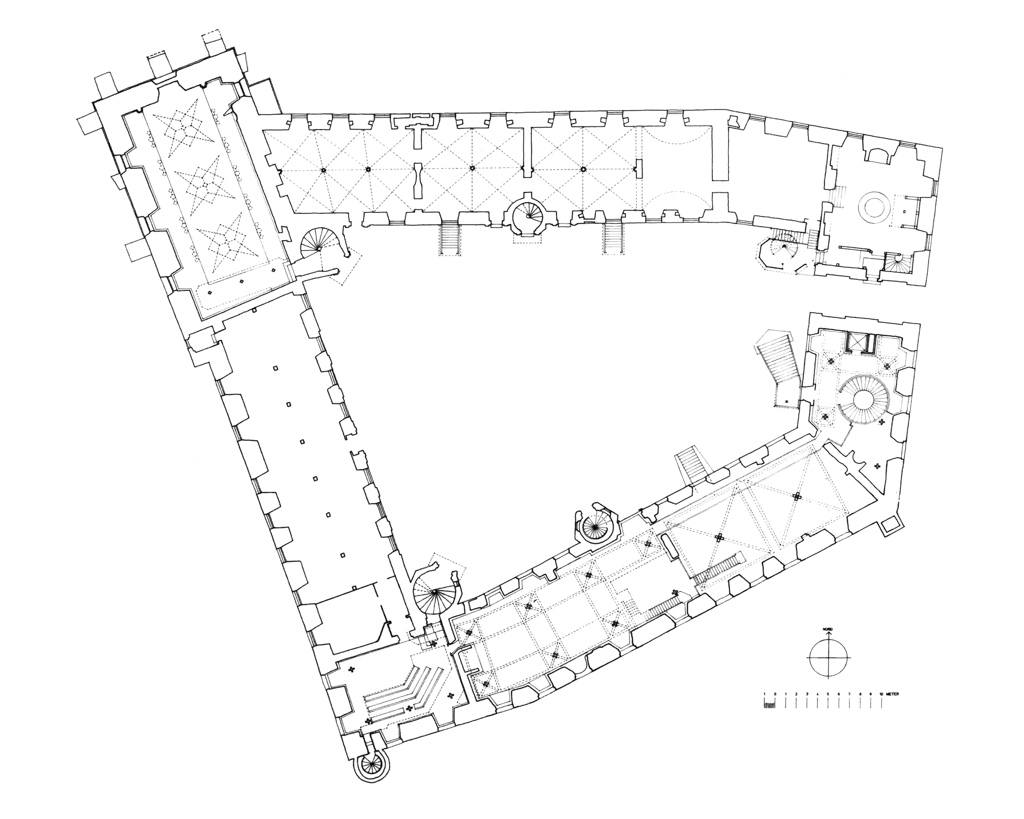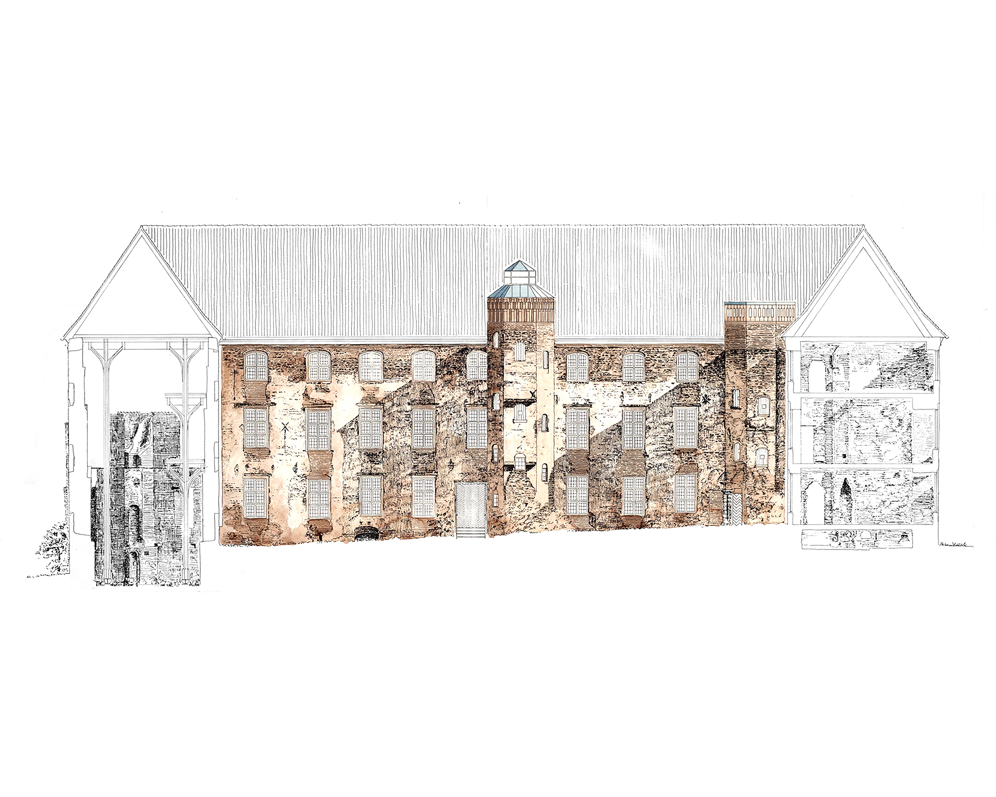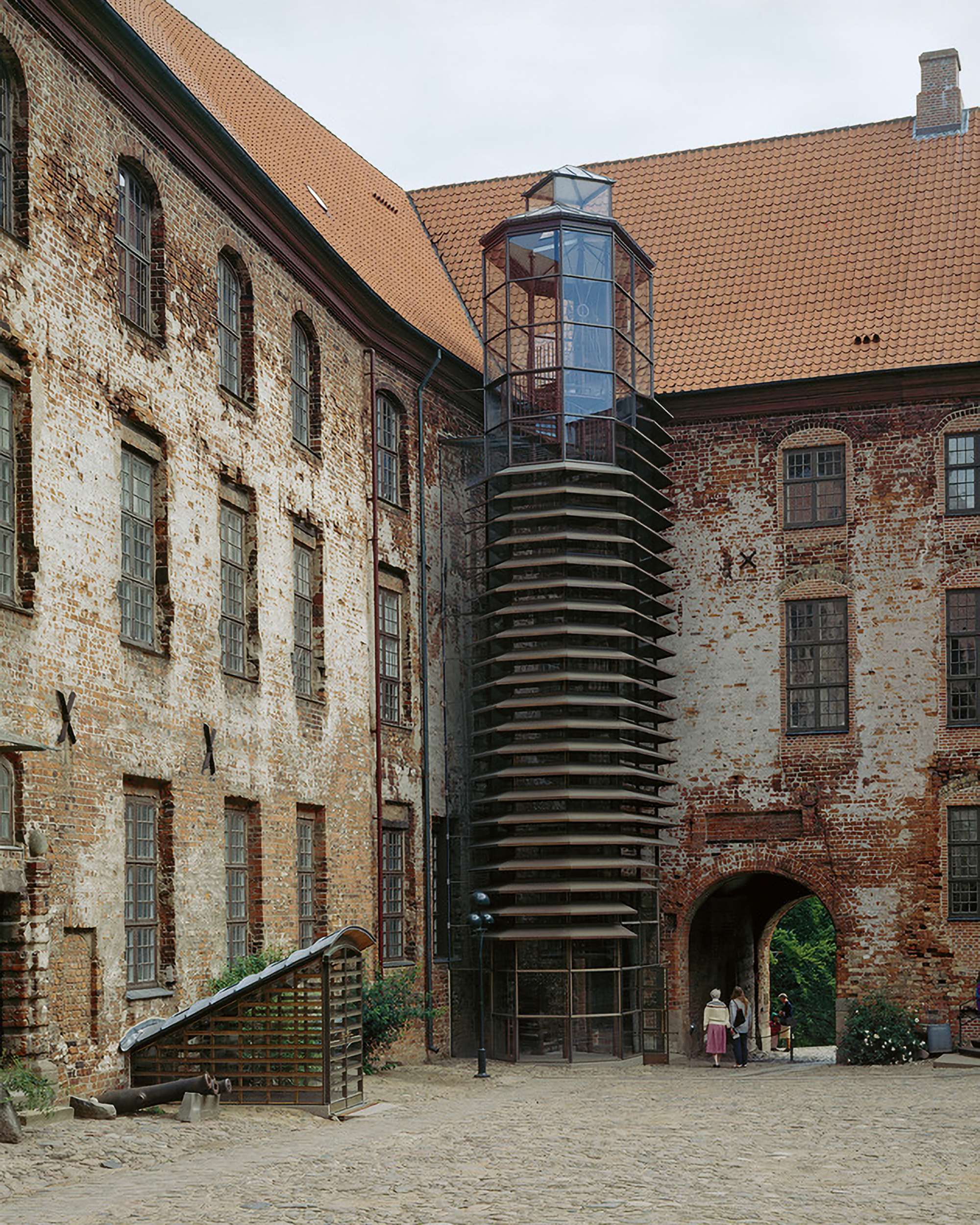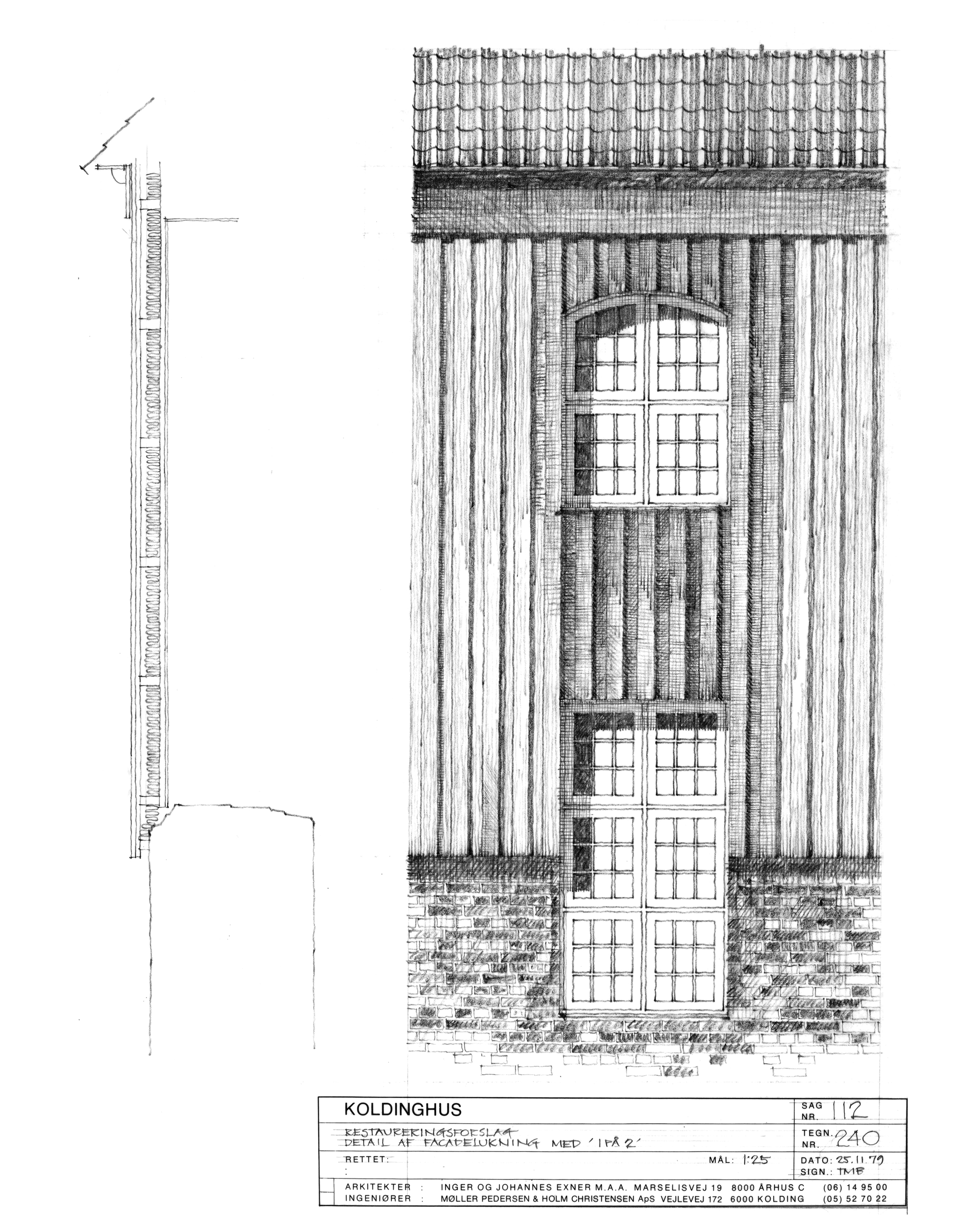 A proposal to protect the ruins by means of a simple structure supporting a roof and walls, otherwise maintaining the ruins untouched, was worked out and approved by the building committee. We believed the proposal would be well received by all the parties concerned, but local opposition arose and Det Saerlige Bygningssy (building surveying committee) would not approve. The result was a compromise which is now being carried out, in which the castle’s exterior is being given a general form corresponding to the time before the fire, while the ruins appear mostly in the interior. We evolved a basic principle that the main periods of the castle’s history were to be respected in such a way that its long and eventful life was clearly illustrated. As it was to be a museum, it was obvious that the most important exhibit was Koldinghus itself, and the different historical periods and events would have to be emphasized architecturally in the various parts of the building.
