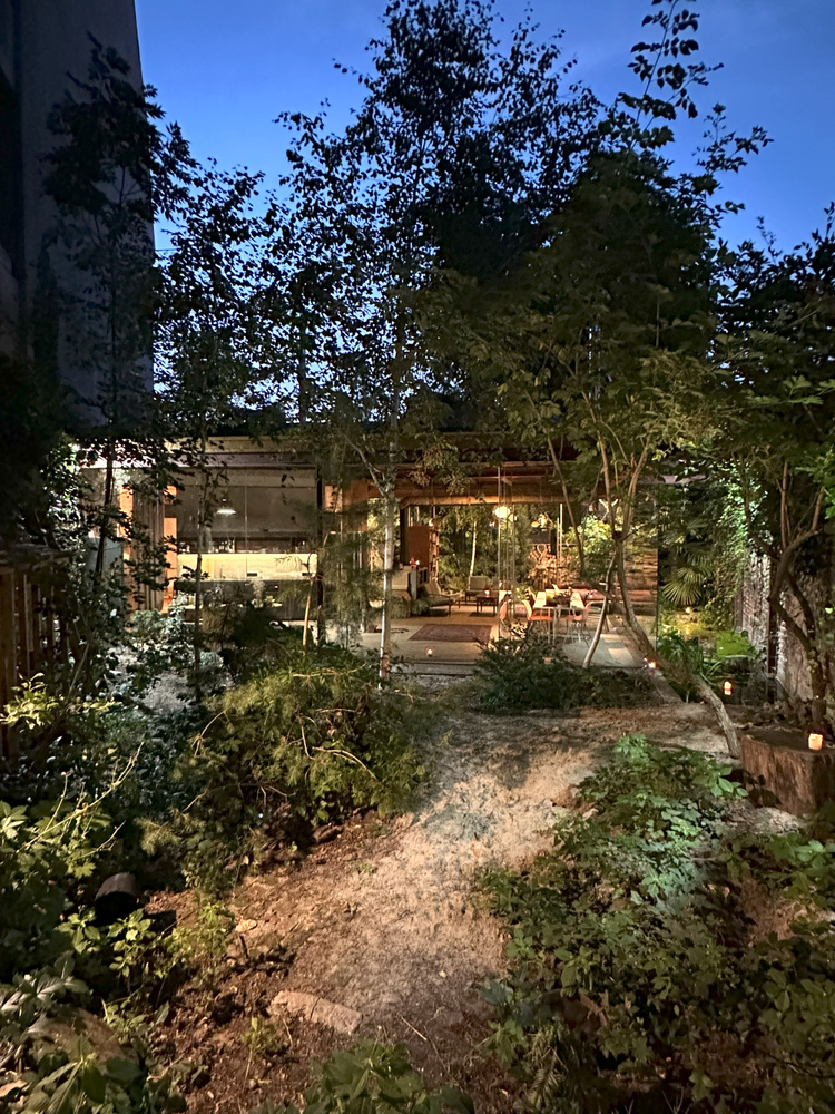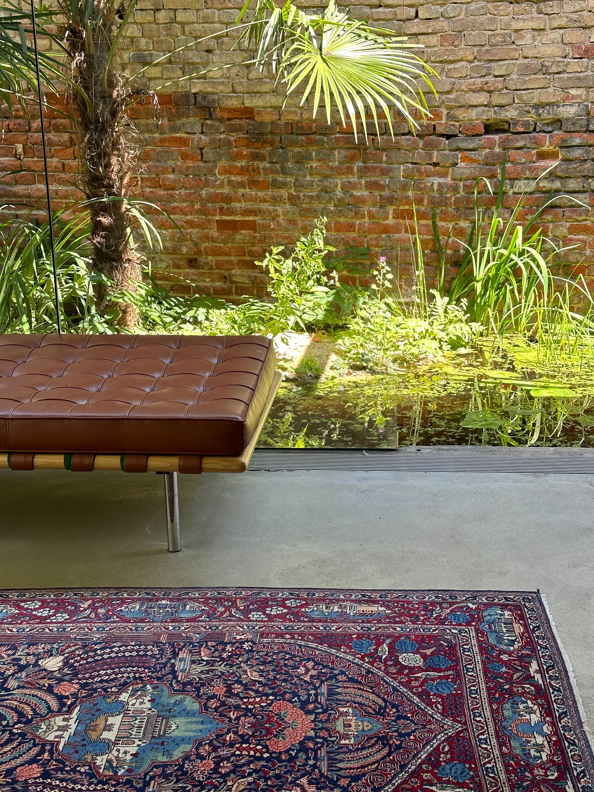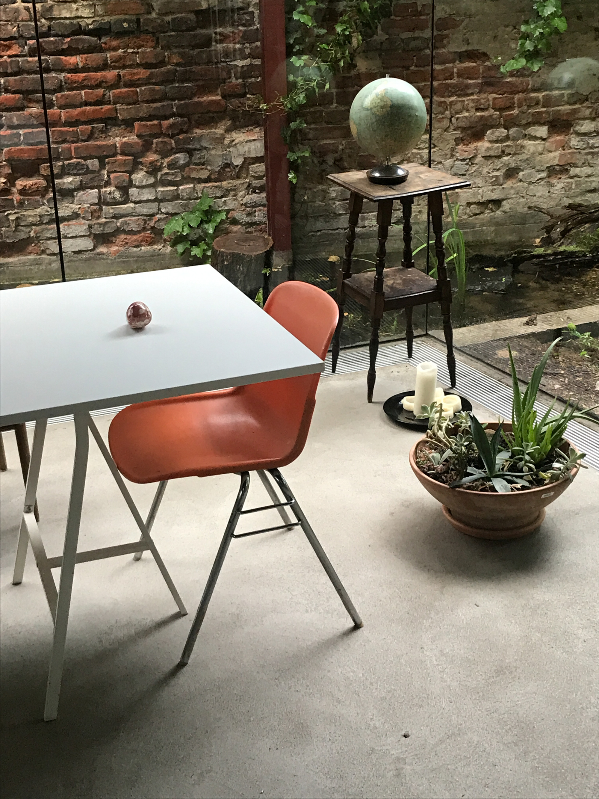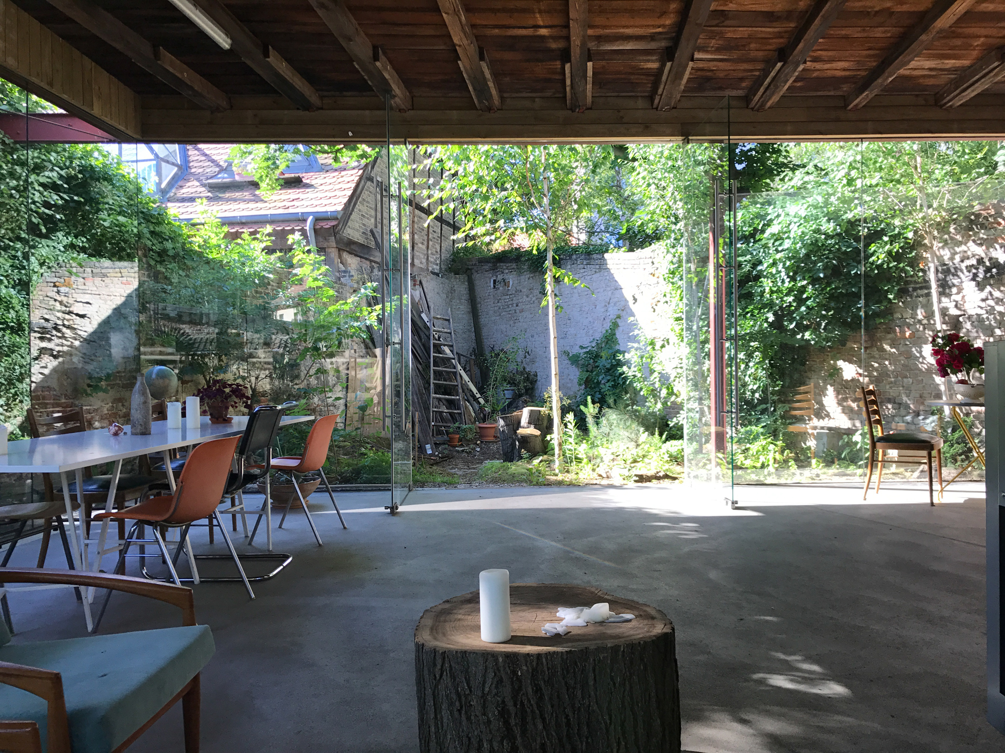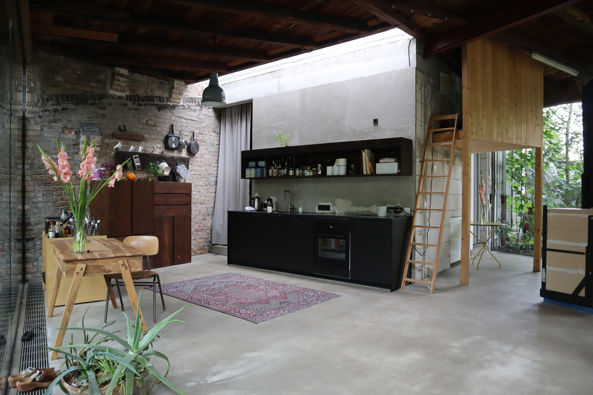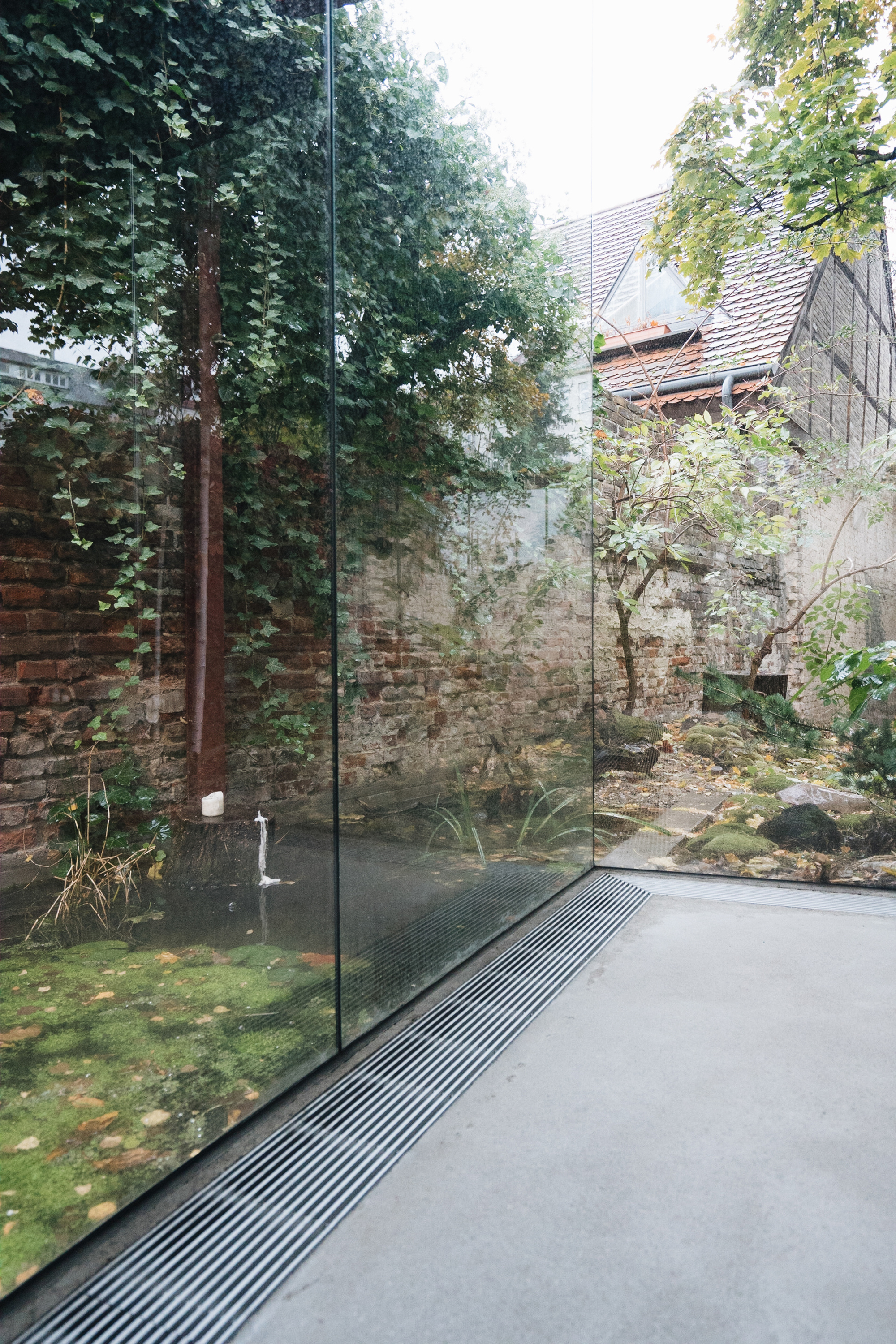 Today, the unsealed plot and green roof of the pavillon host an incredible diversity of plant, animal and funghi species. A unfiltered, 12 metre long pond, that is over 2 meters deep, connects the wild northern and southern parts of the garden. The roof is covered by another garden, which is slightly less wild, and more focused on food production. In winter, the house itself orients around a large fireplace, which‘s chimneys comically long shape responds to the legal exhaust distances in the dense urban environment. In summer, it opens to the pond and gardens.