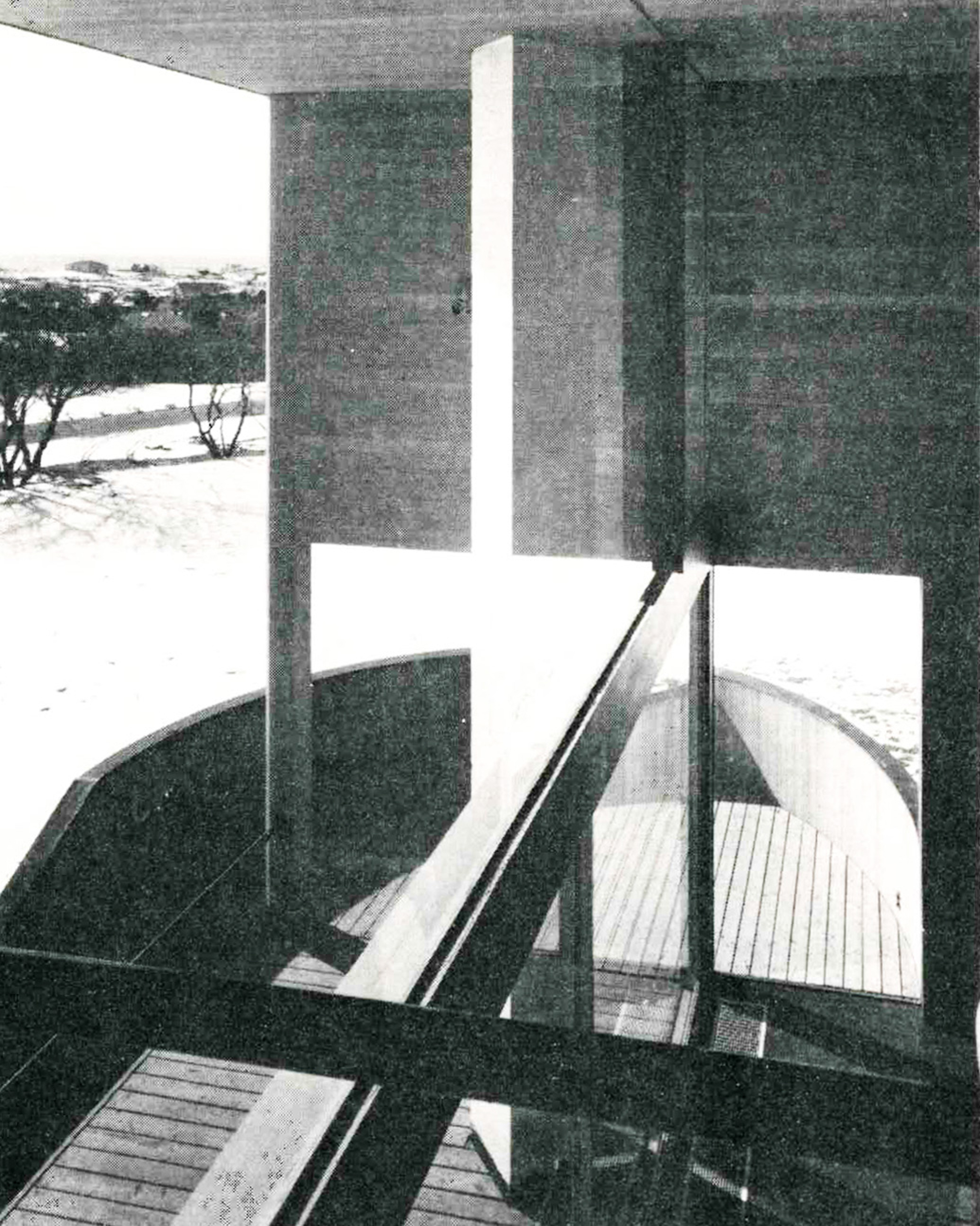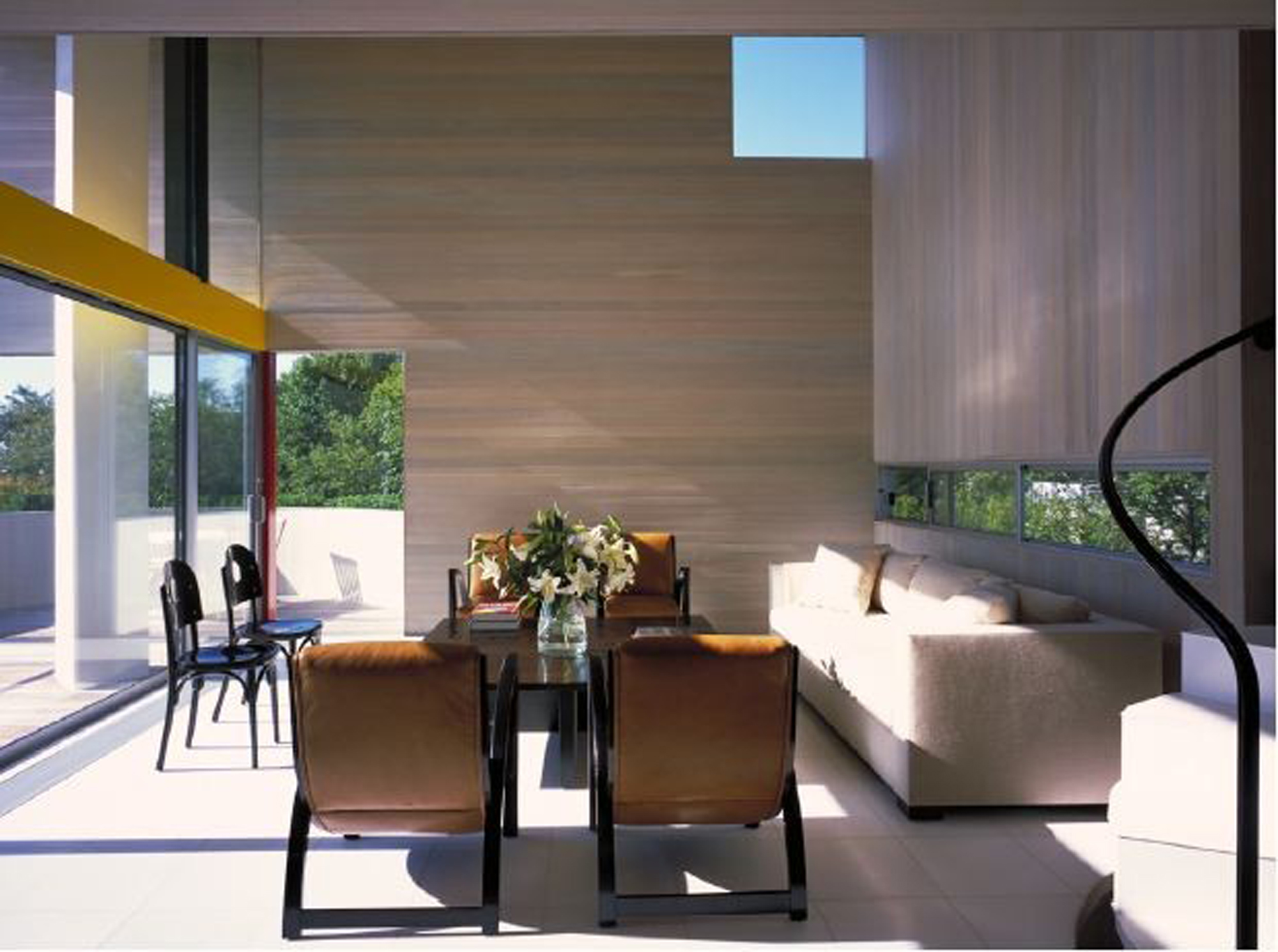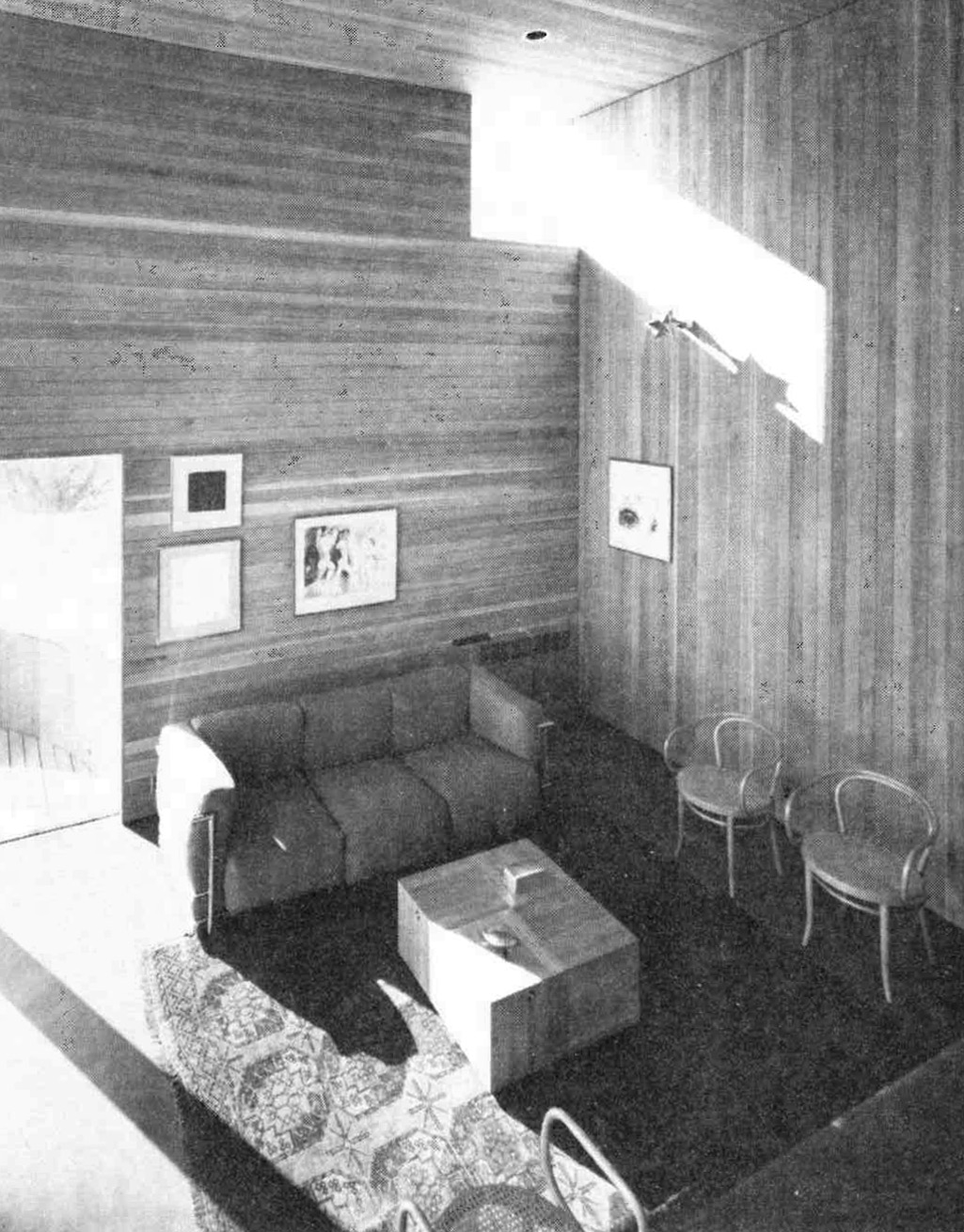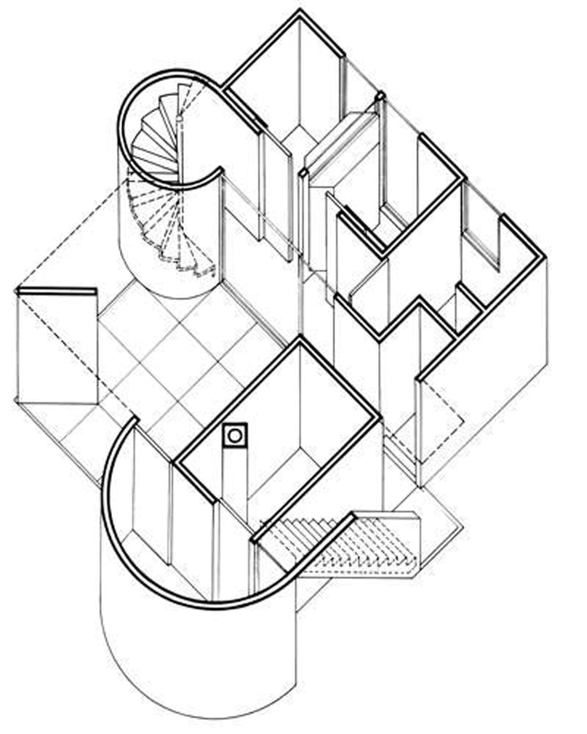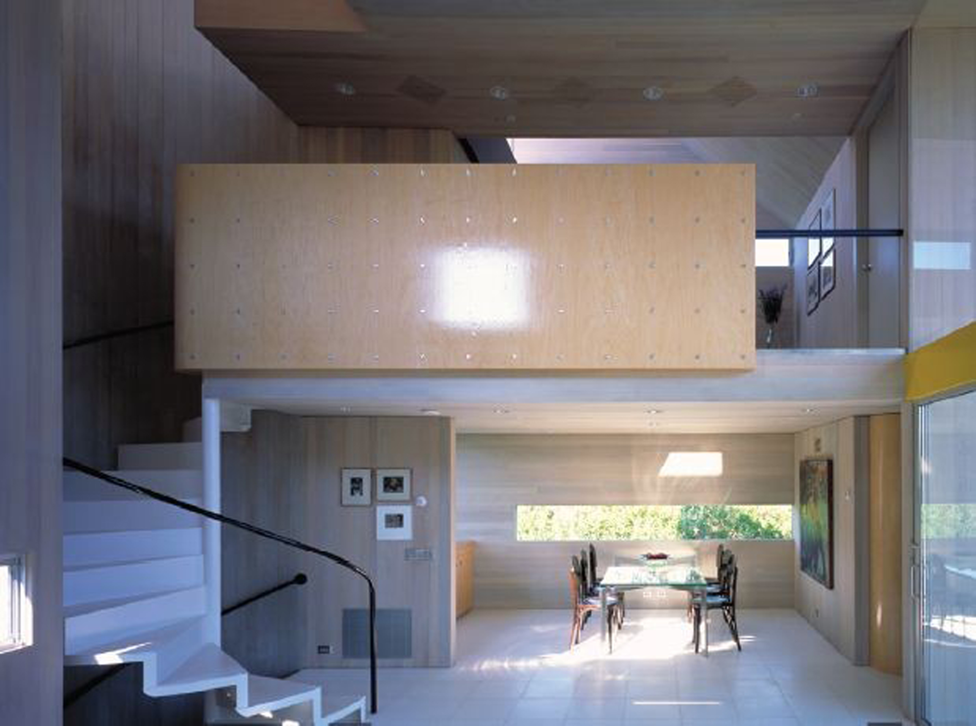 Gwathmey intended for the house to be sculpture on the site, and he approached this by carving out primitive forms, such as cubes, to create different spaces. The “carving” of these spaces was determined by responses to the site, solar orientation, program, and structure. The intended spaces for the original 1200 square foot house were a living and dining space, kitchen, master bedroom and studio, two guest bedrooms, and a workroom.