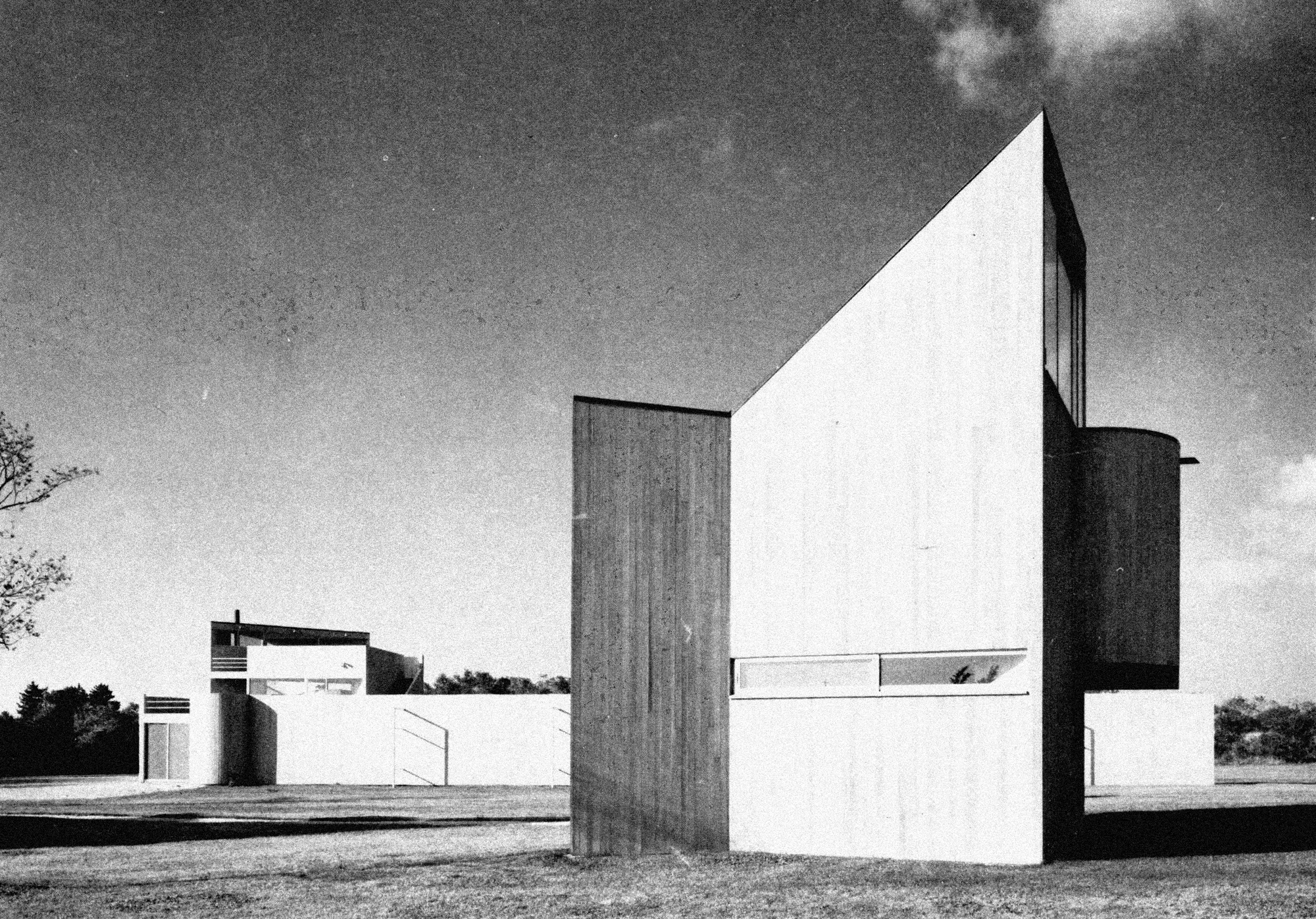 Part of the New York Five, architect Charles Gwathmey designed the Gwathmey Residence and Studio for his parents in 1965. The house was located on a one-acre flat site on eastern Long Island, New York near the ocean surrounded by undeveloped land (this land was planned to be used for an addition to the house). As his first residential project, Gwathmey was given the freedom by his parents to have full control of the design as long as it was in their $35,000 budget.