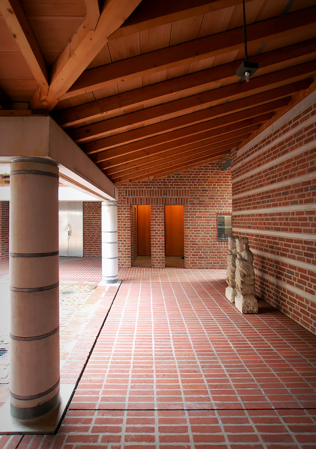 Outside the crowds, they were introduced to Heinz Bienefeld. It clicked, and as a test they asked him to design a garden wall. When the wall was finished, the bricklayer living across the street told them that the wall was wrong, as Bienefeld used his signature rear-facing bricks, which the bricklayer saw as a fundamental error. But the couple liked the result and Bienefeld was commissioned to design the living room for the house. He created the living room as an atrium that brought tranquility to the home, improved the organization of the house, and gave it a central ‘core’.