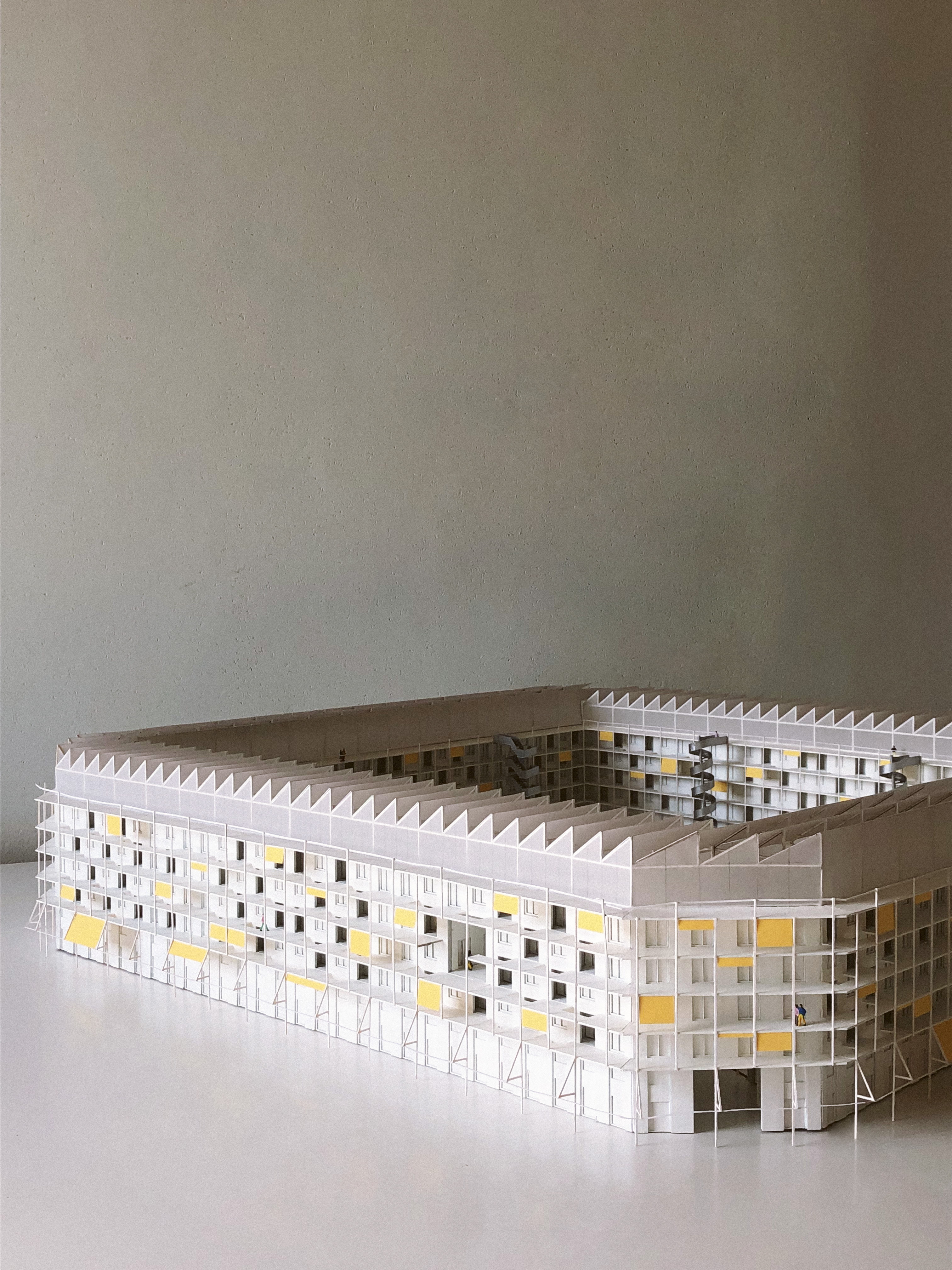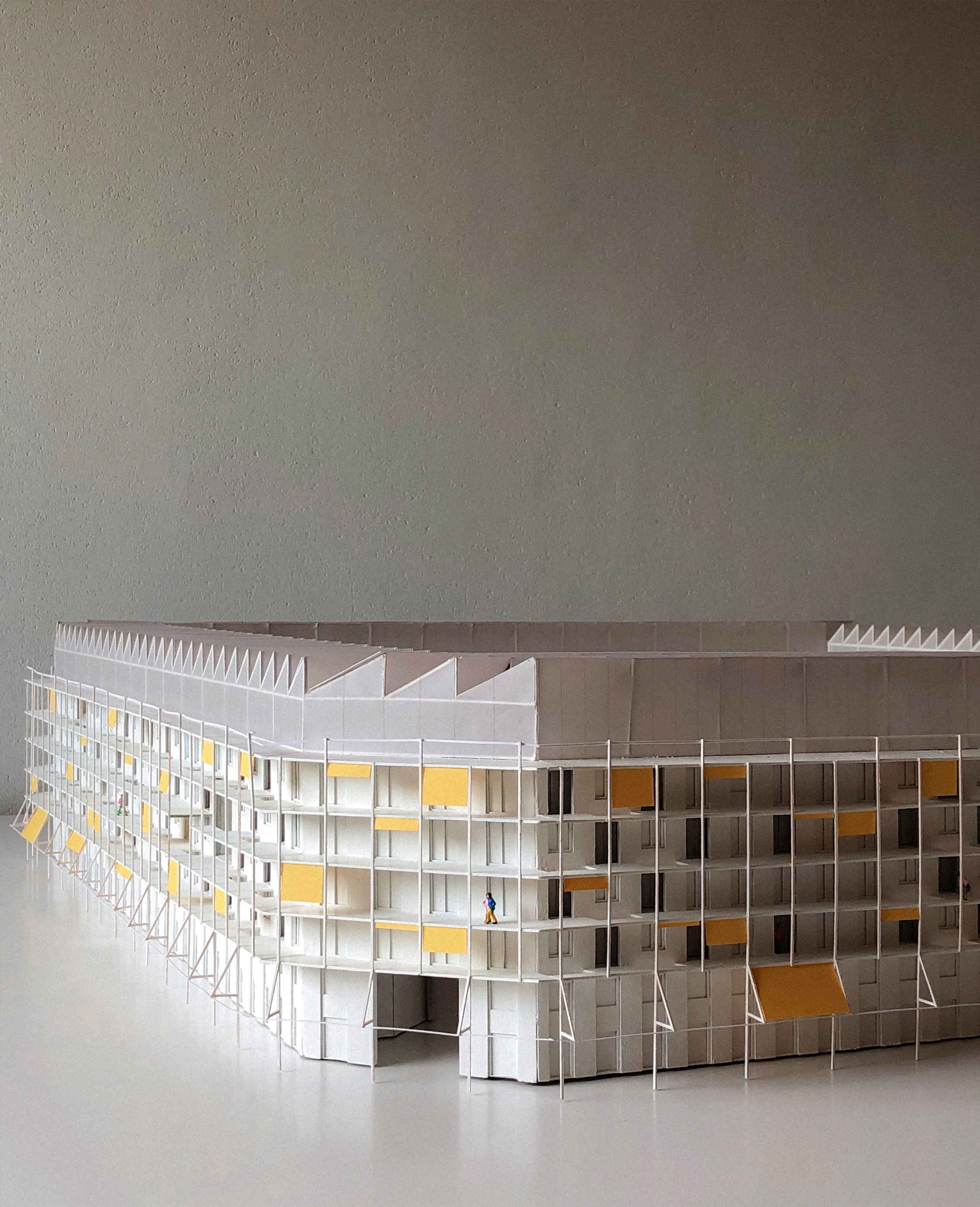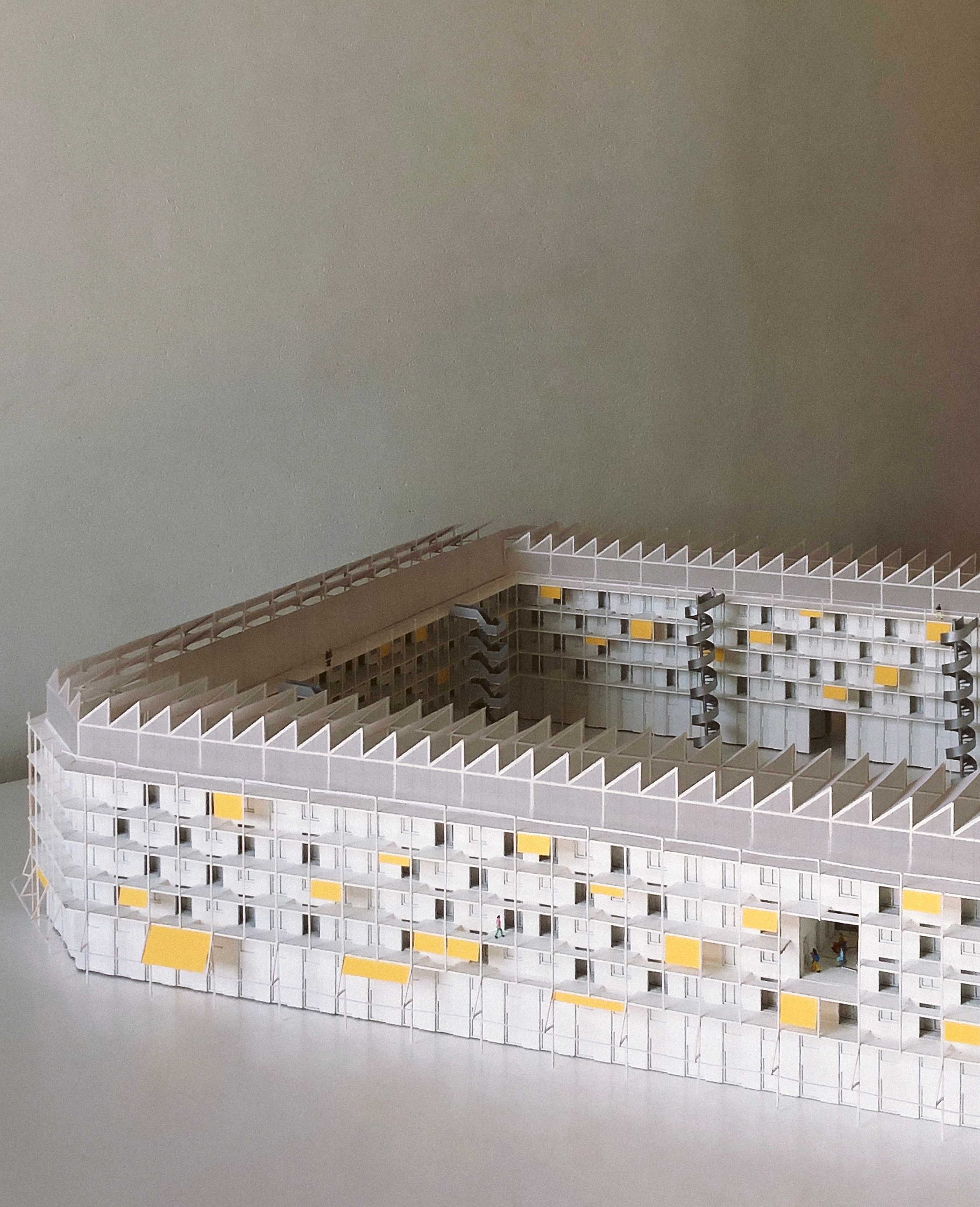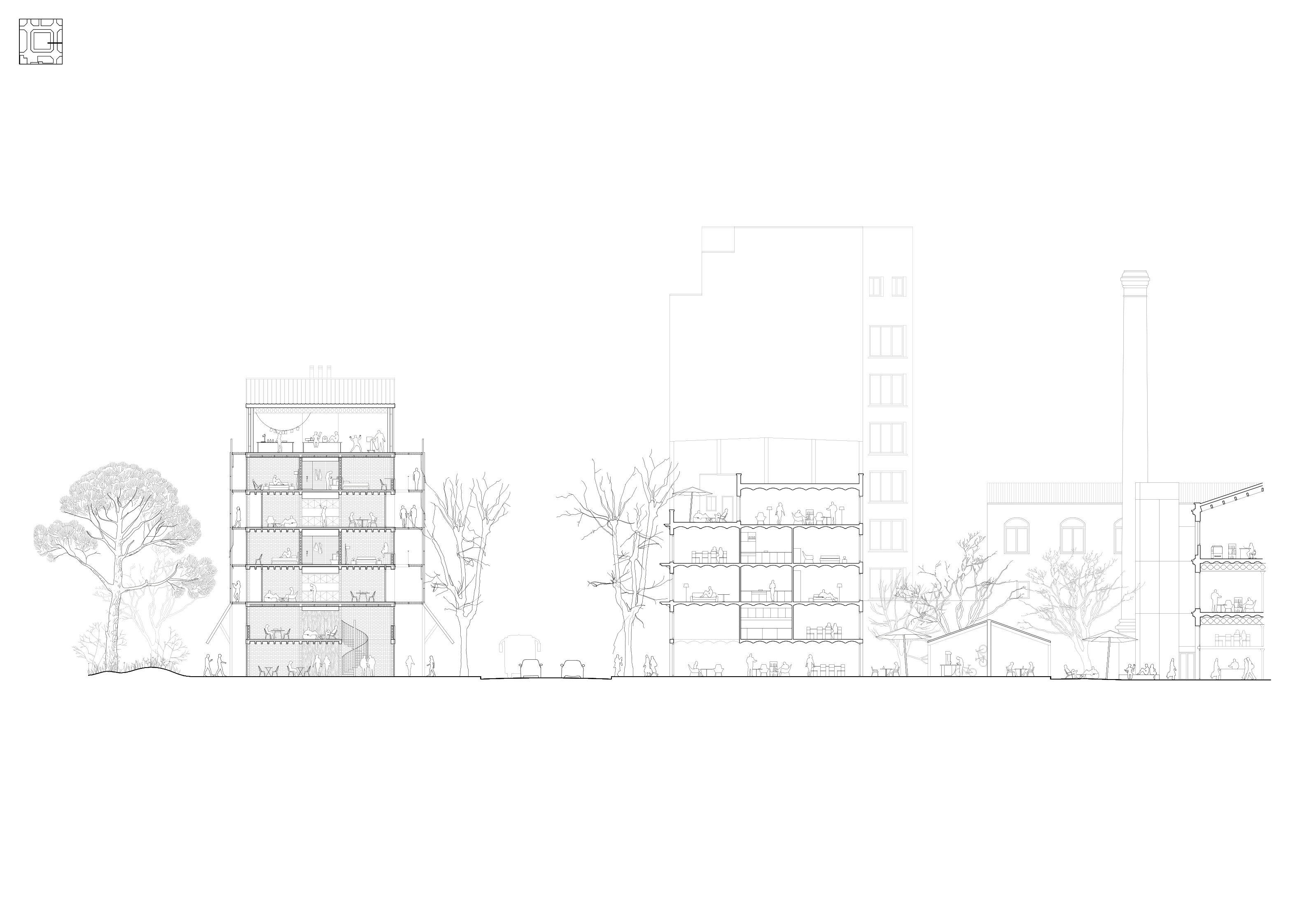 The design evolves systematically, adapting to the site and program. Its neutral structure supports flexible uses across three dimensions, with a commercial plinth and reconfigurable residential spaces above. Housing units can expand horizontally or vertically, while voids within the building form elevated plazas, fostering interaction. At its crown, the project hosts workspaces for design universities, reinforcing ties to local industry.