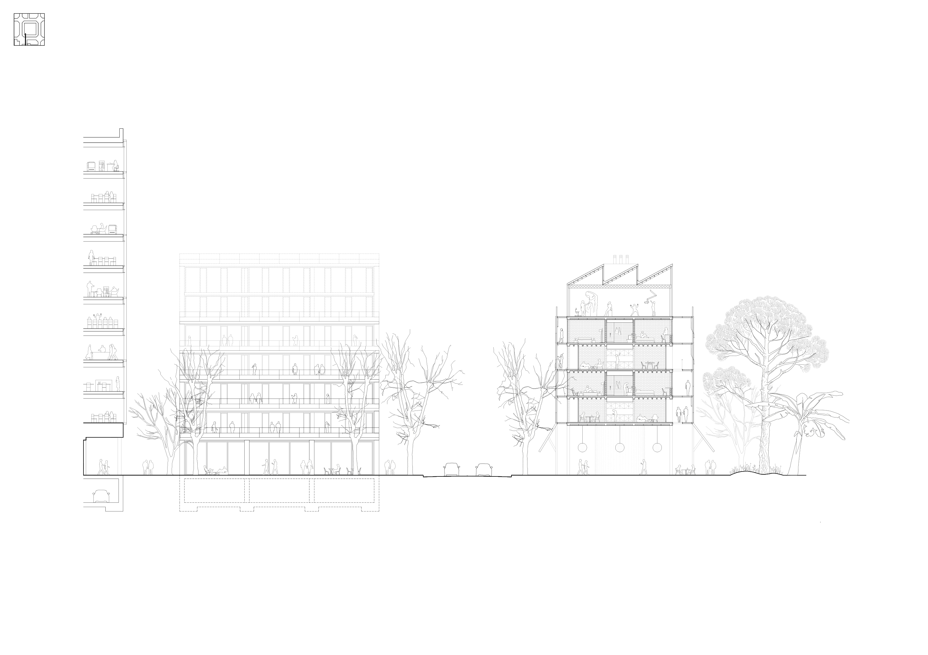 The Eva’s Apple consolidates analyses and actions under the Urban Improvement Plan for Subsector 12.P6 in Barcelona’s 22@ District. It challenges existing planning, addressing urgent housing and green space needs in a location suited for transformative intervention. This unique block enables a comprehensive project that redefines urban planning, balancing formal ambition with practical solutions.
