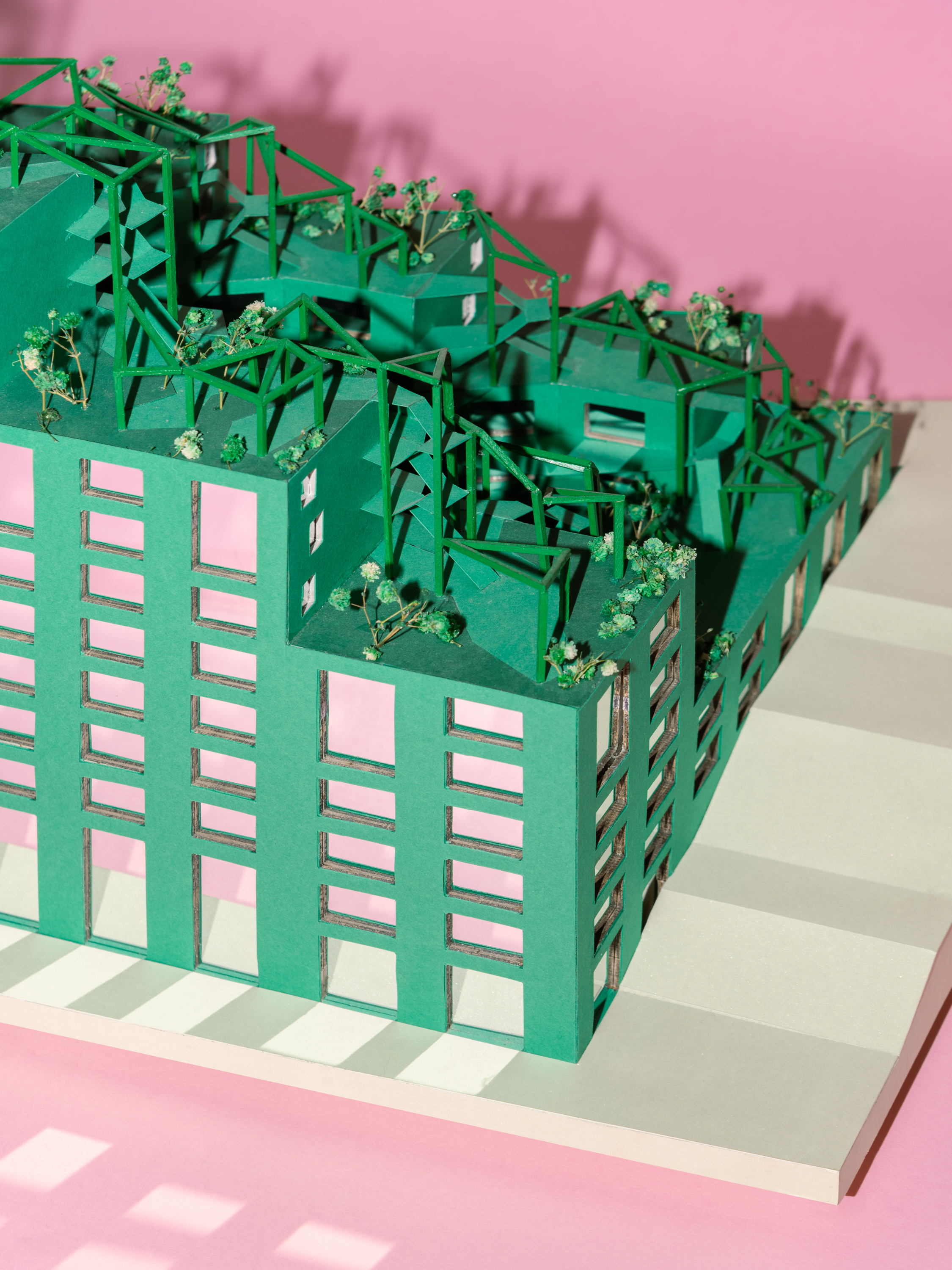 The Europan competition, an international platform that invites young architects and urban designers under 40, was the starting point for the design of Kop Dakpark. In 2019, H3O won the 15th edition of Europan with a proposal inspired by the idea of creating a building that serves both humans and nature.