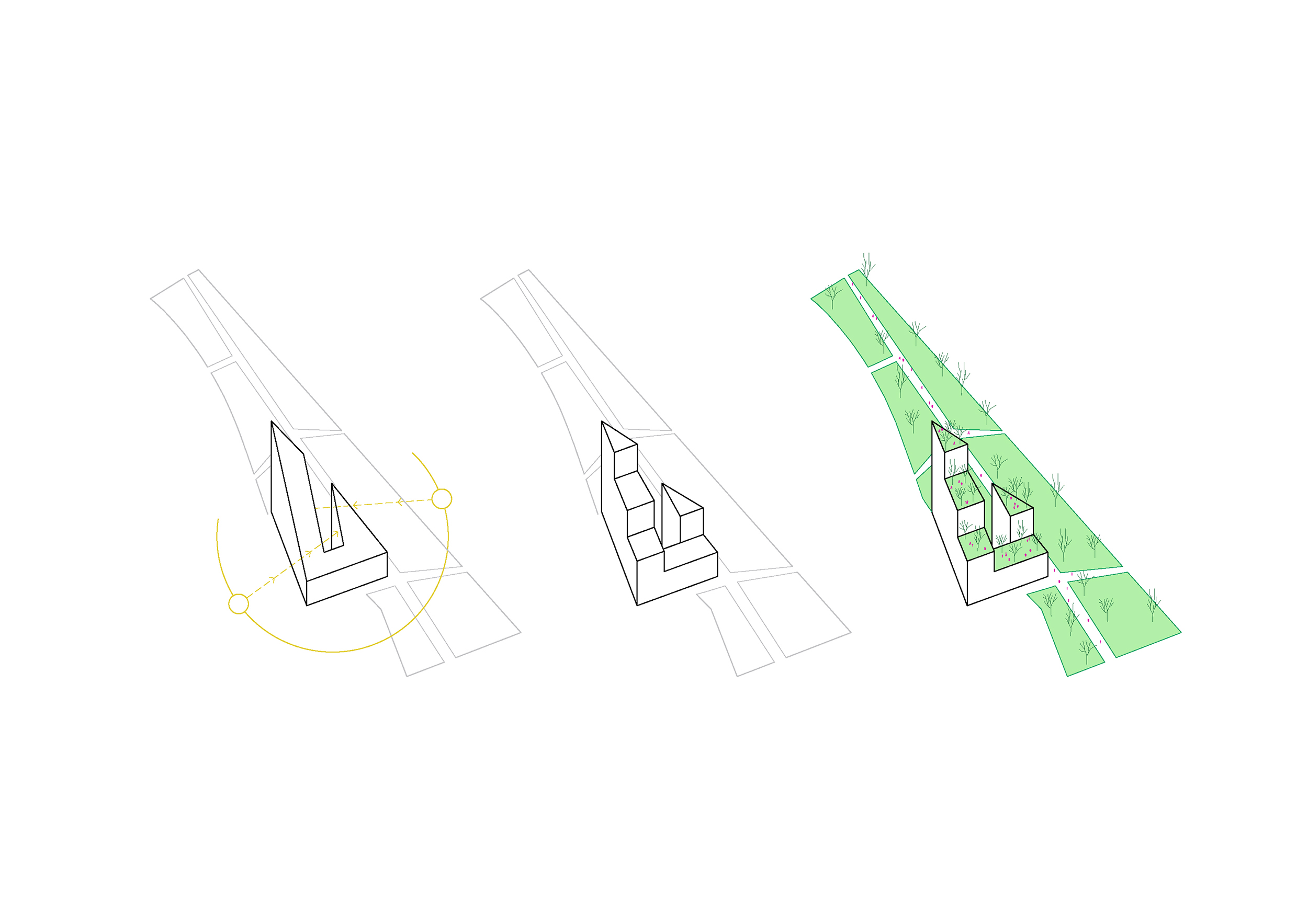 Strategically located on one of Rotterdam’s busiest traffic nodes, the project is not just about housing; it’s about community building in the park. Kop Dakpark connects the neighborhoods of Delfshaven and Merwe-Vierhaven, bridging the gap between natural and urban spaces. With its green terraces, inner courtyards, and lush rooftop gardens, the building becomes an extension of the elevated Dakpark, offering a peaceful retreat from the city’s hustle and bustle. Here, young families and elderly residents alike will find their place in a community-oriented, nature-inclusive environment.
